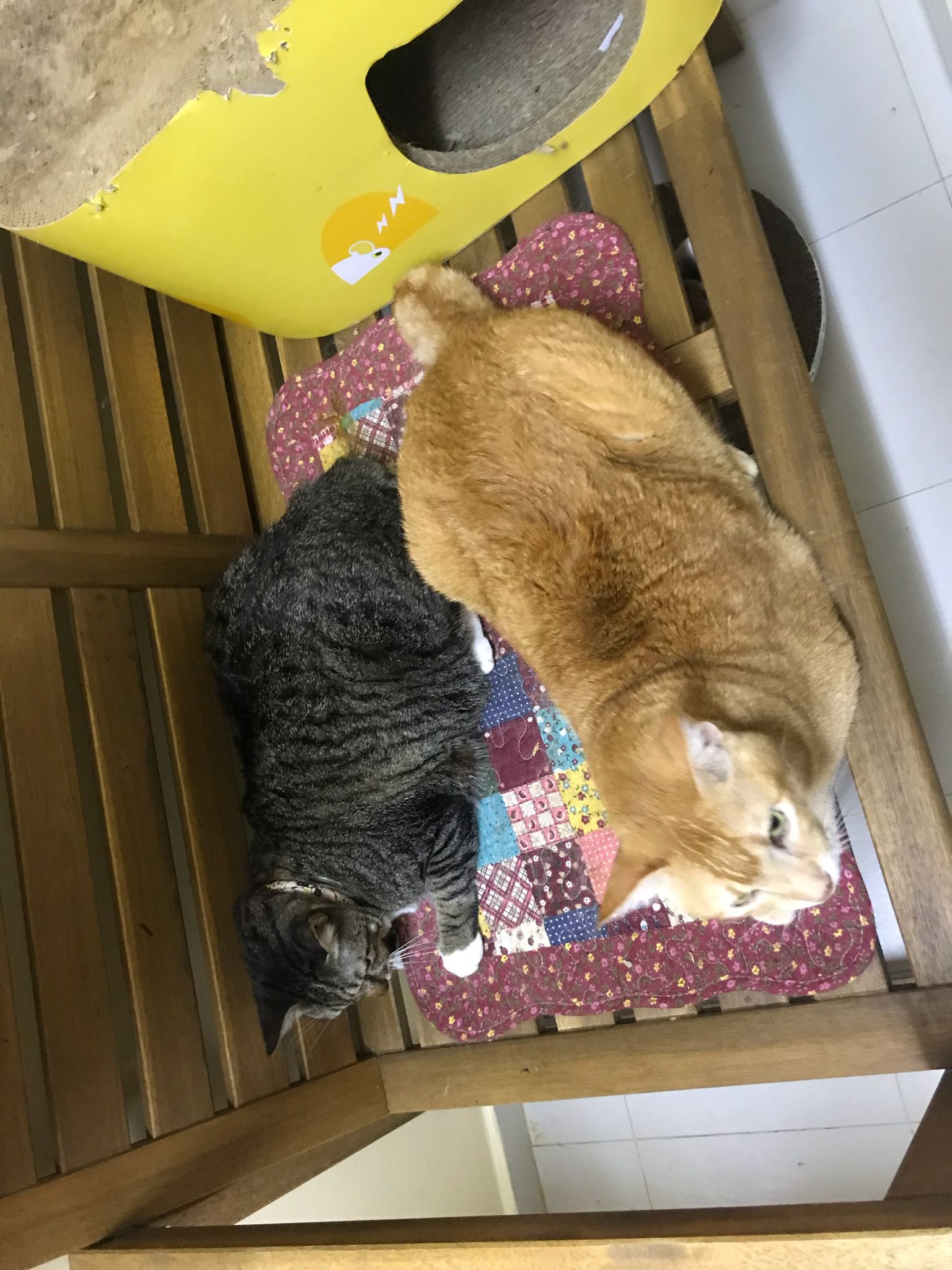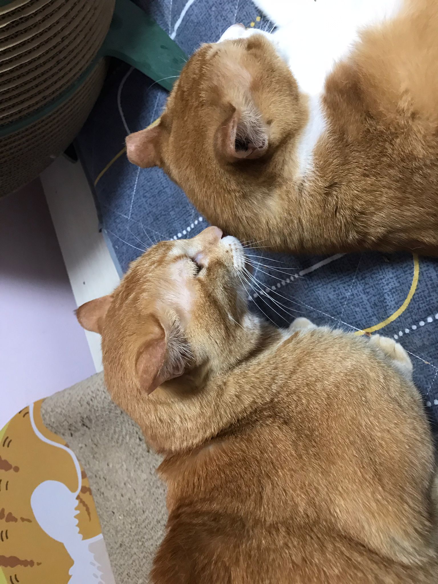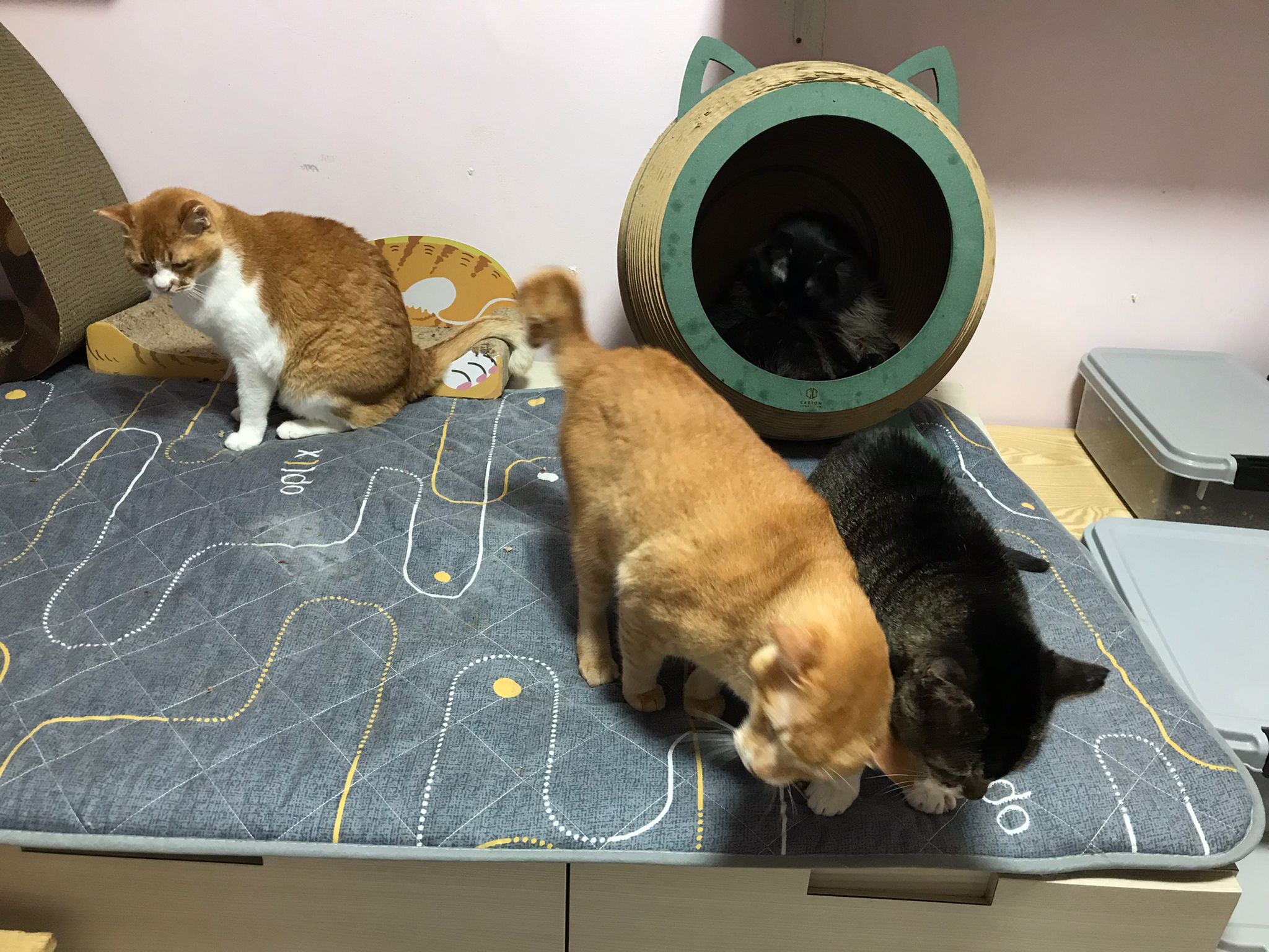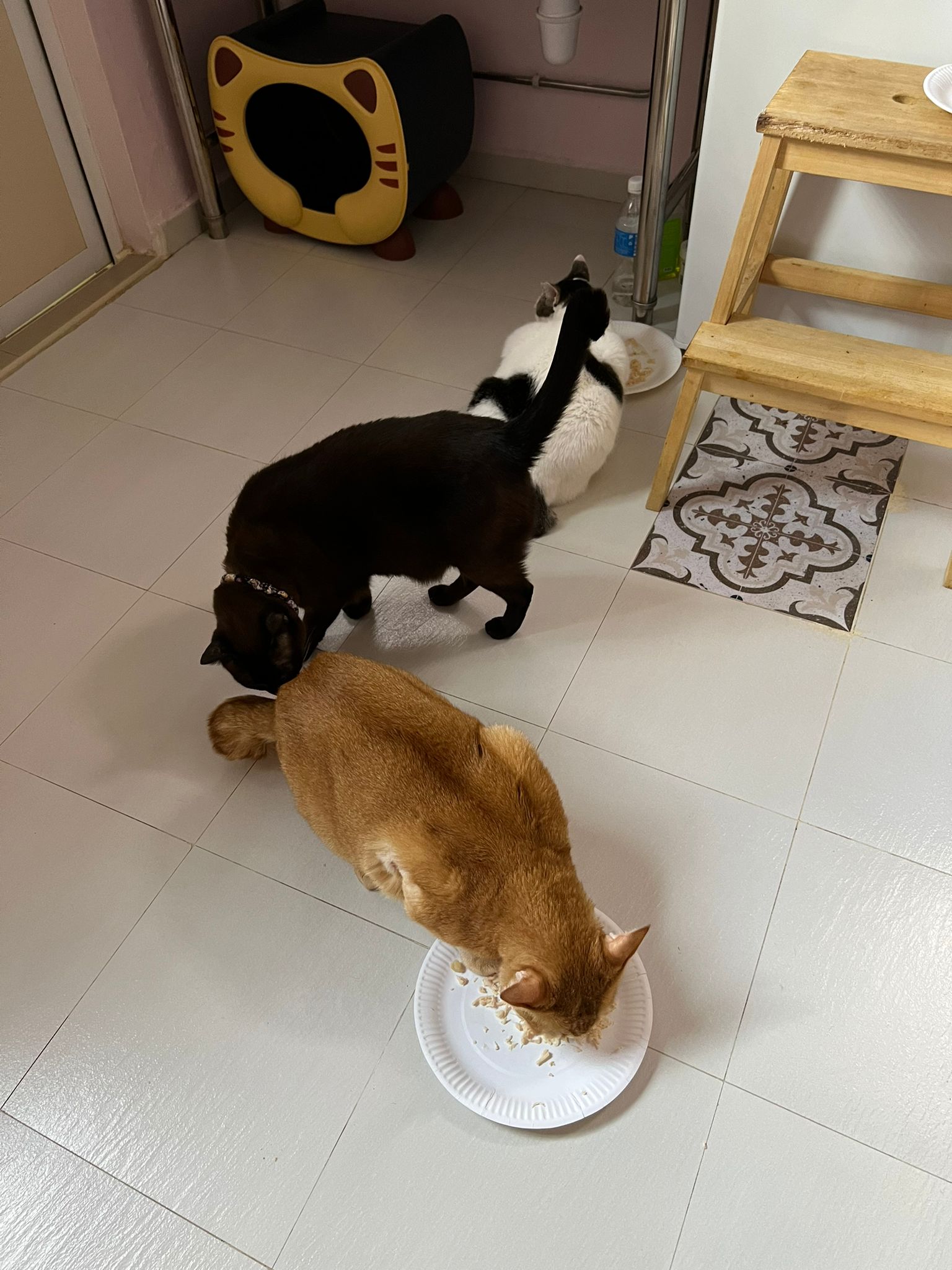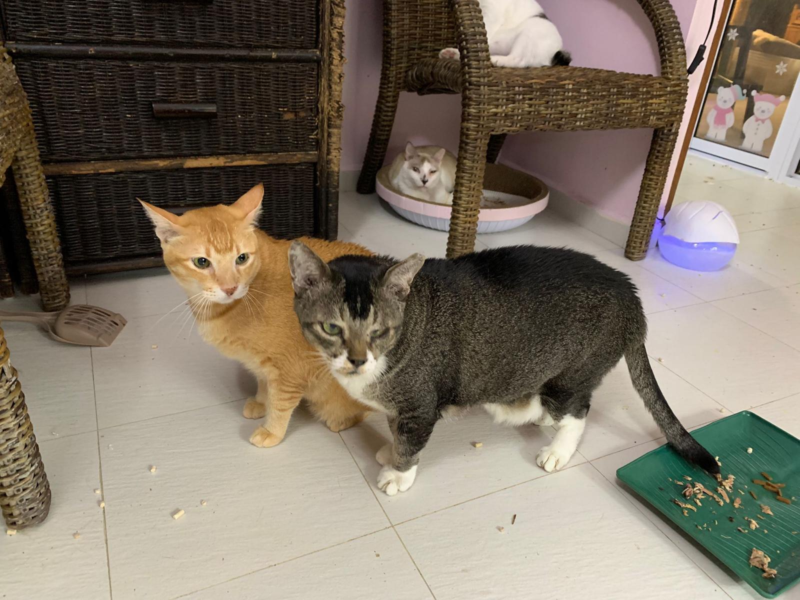 Morning: sunny and junior will head butt. Actually v good in good term mah, then Sunny will meow at him for no reason. Provoke? Just wanna play? WhT!!!? Junior didn’t react and that’s it.