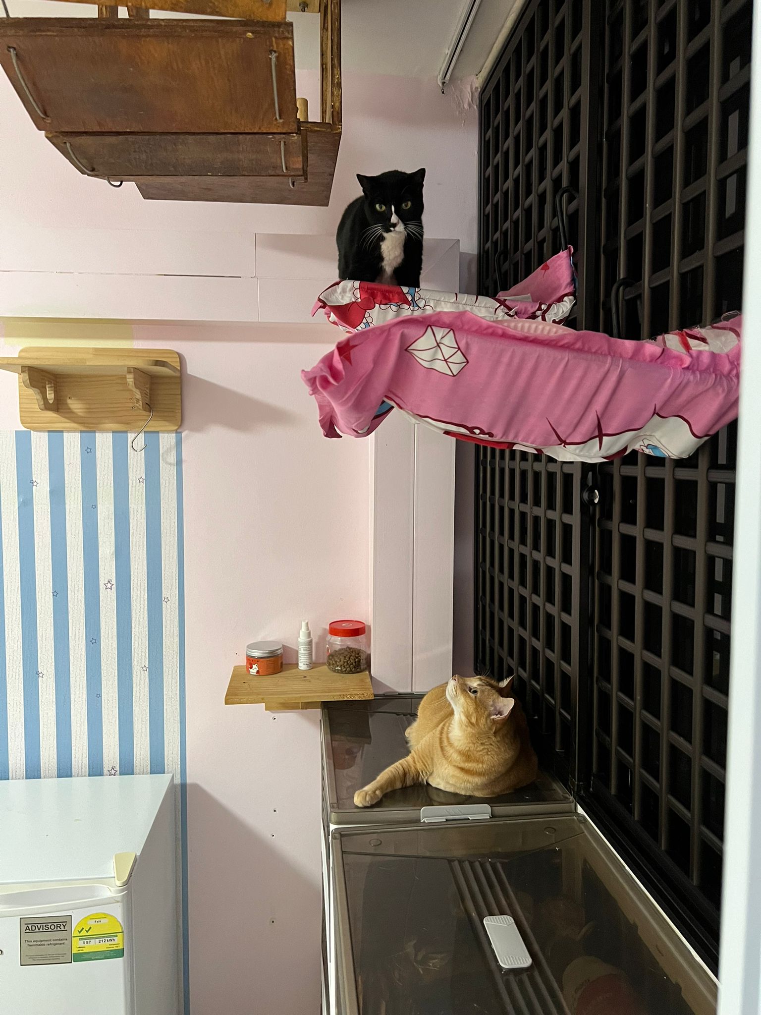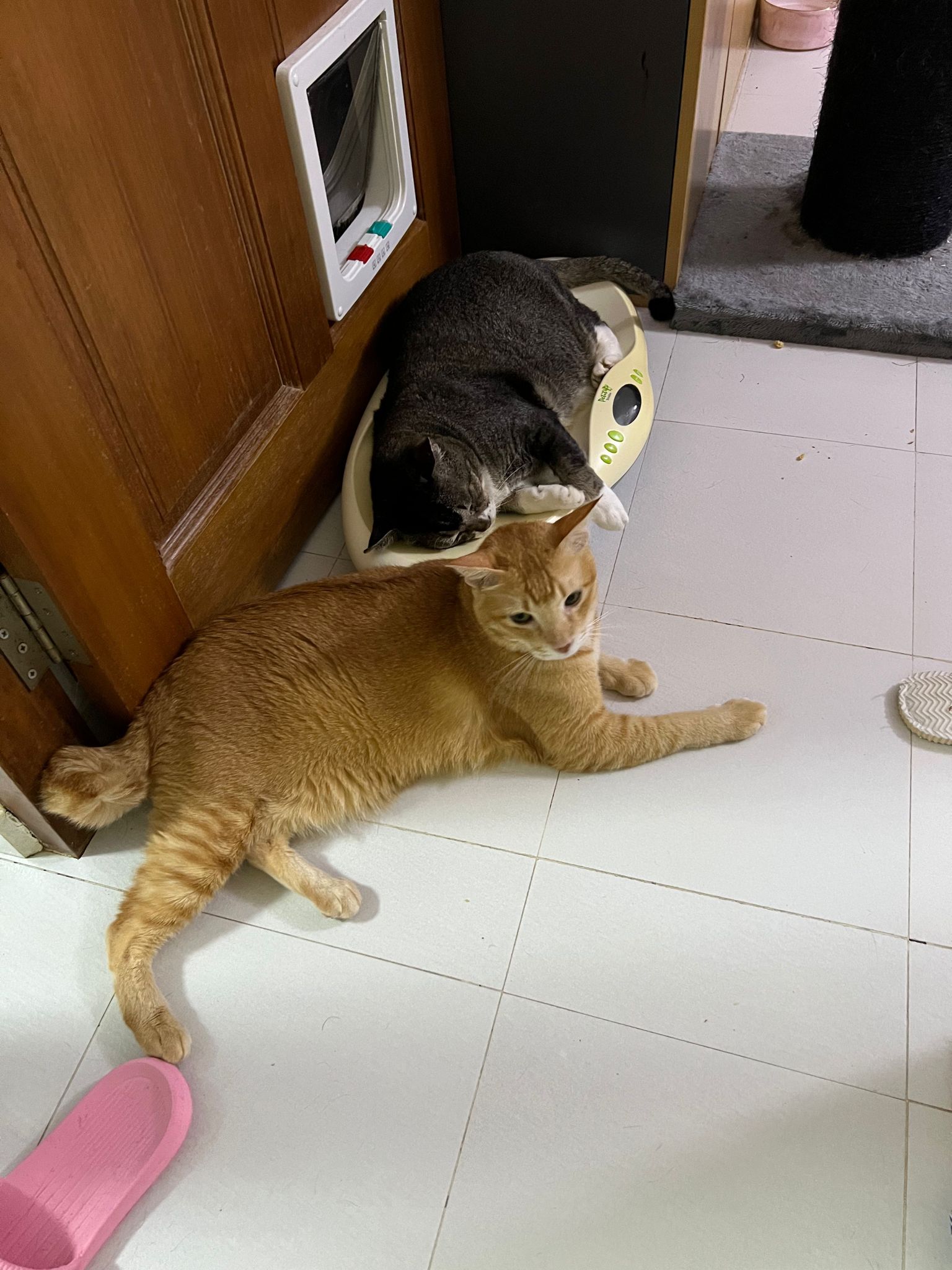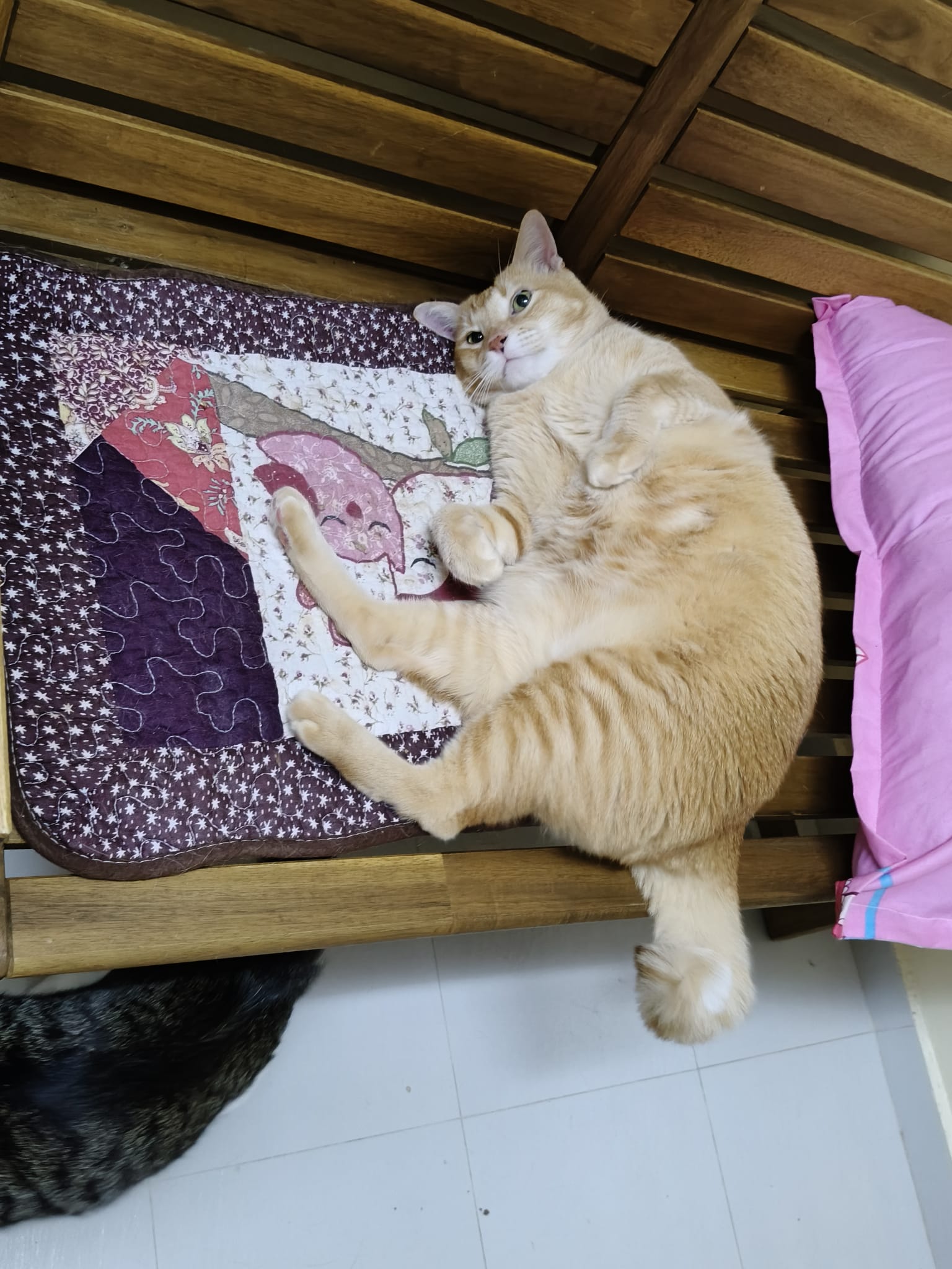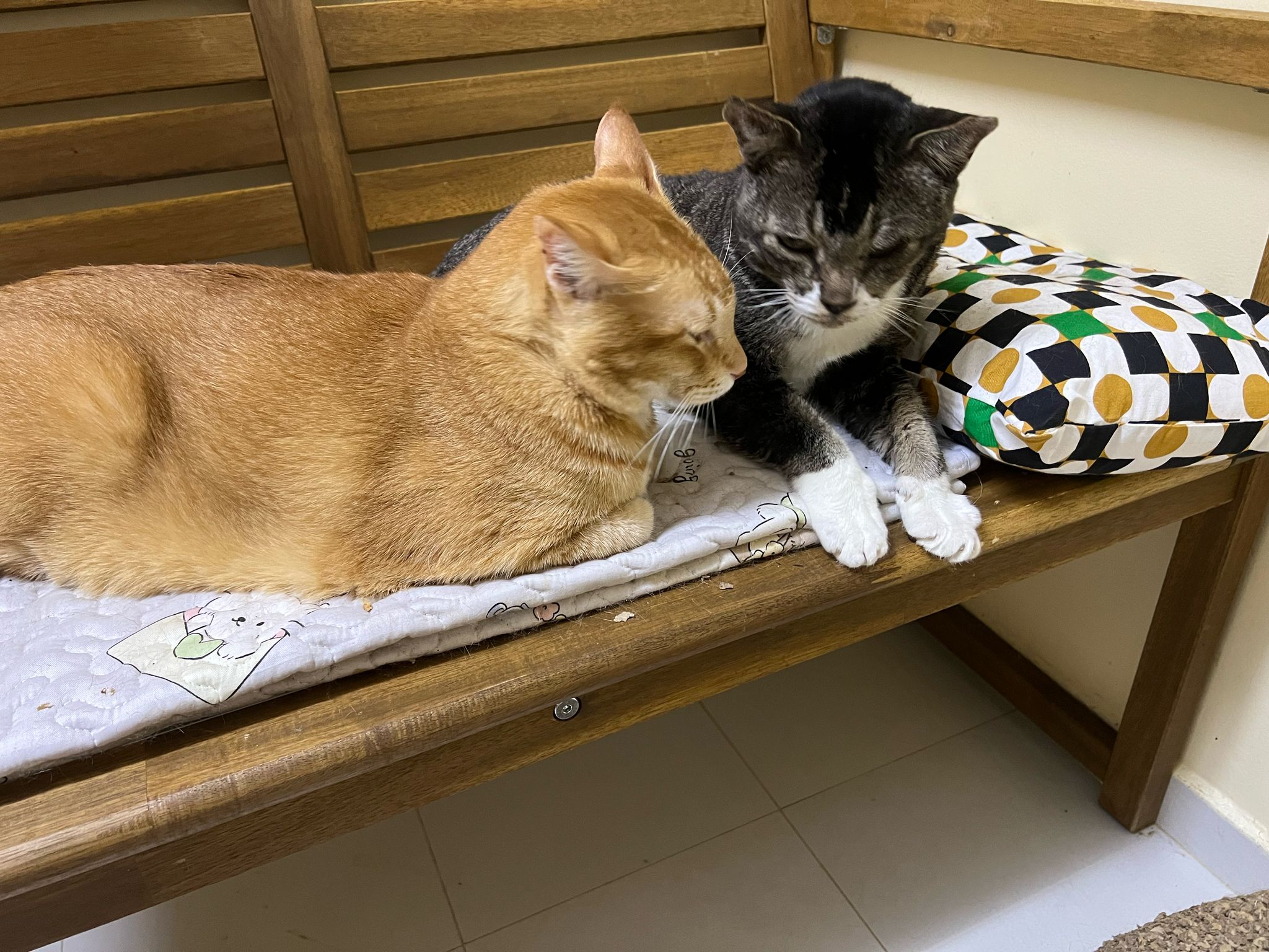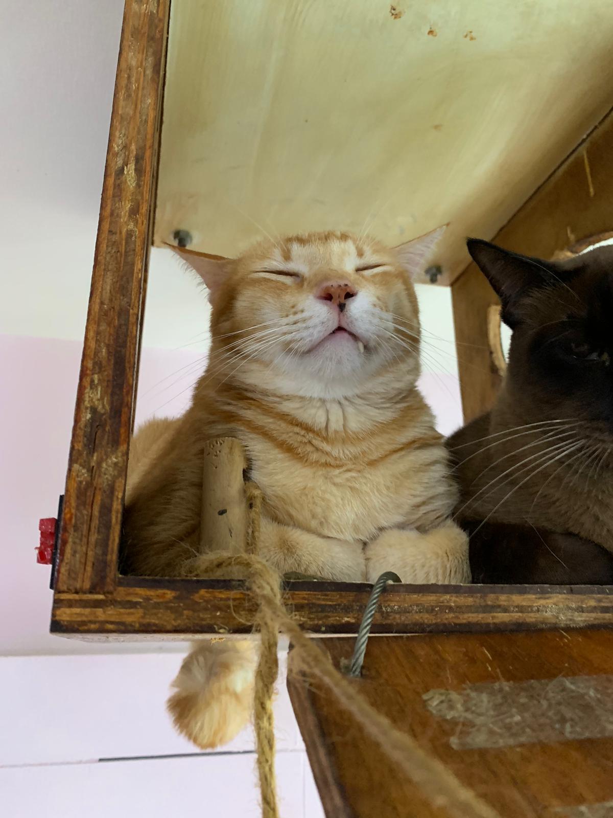 Morning: sunny and junior will head butt. Actually v good in good term mah, then Sunny will meow at him for no reason. Provoke? Just wanna play? WhT!!!? Junior didn’t react and that’s it.