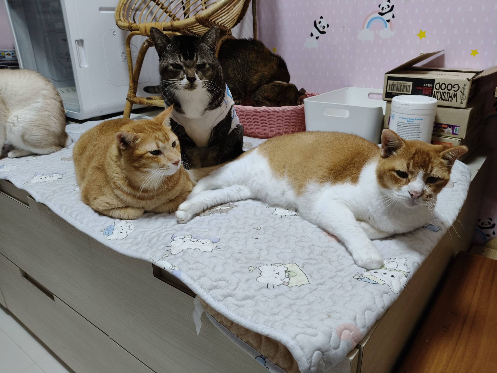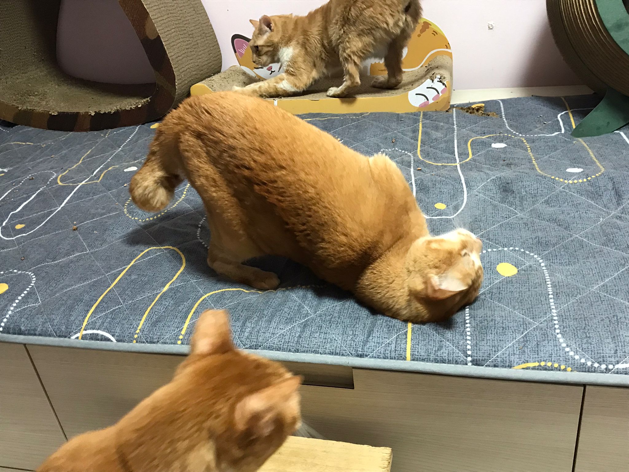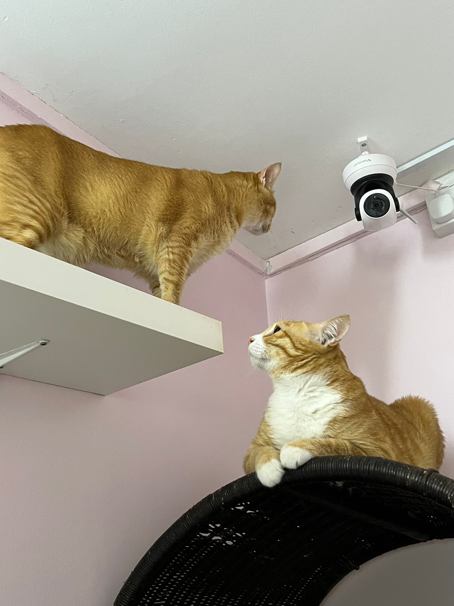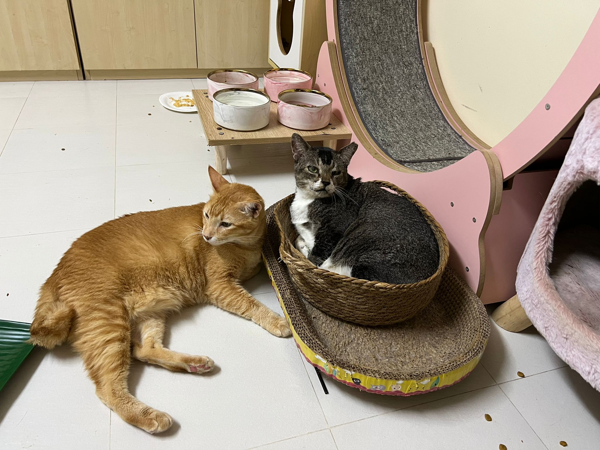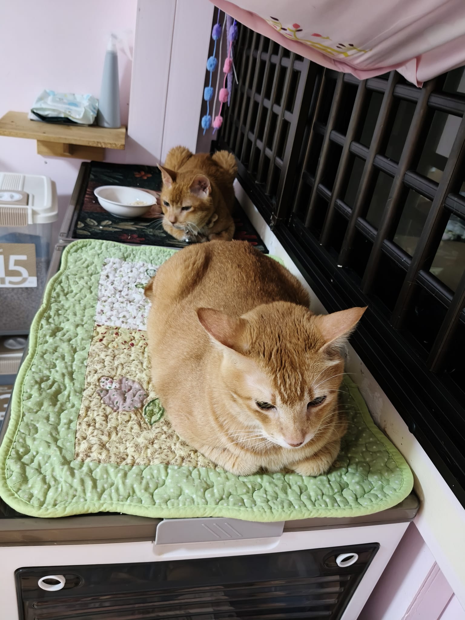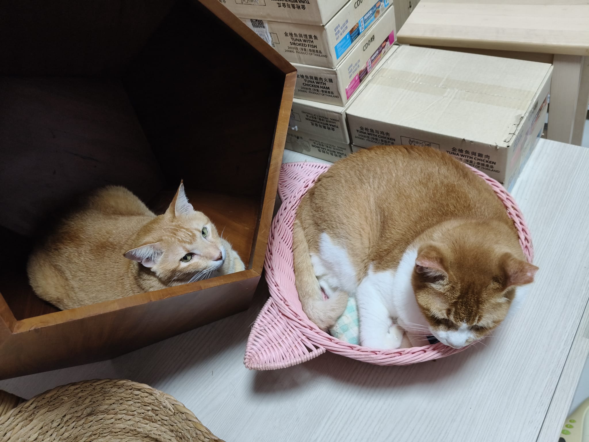 Morning: sunny and junior will head butt. Actually v good in good term mah, then Sunny will meow at him for no reason. Provoke? Just wanna play? WhT!!!? Junior didn’t react and that’s it.