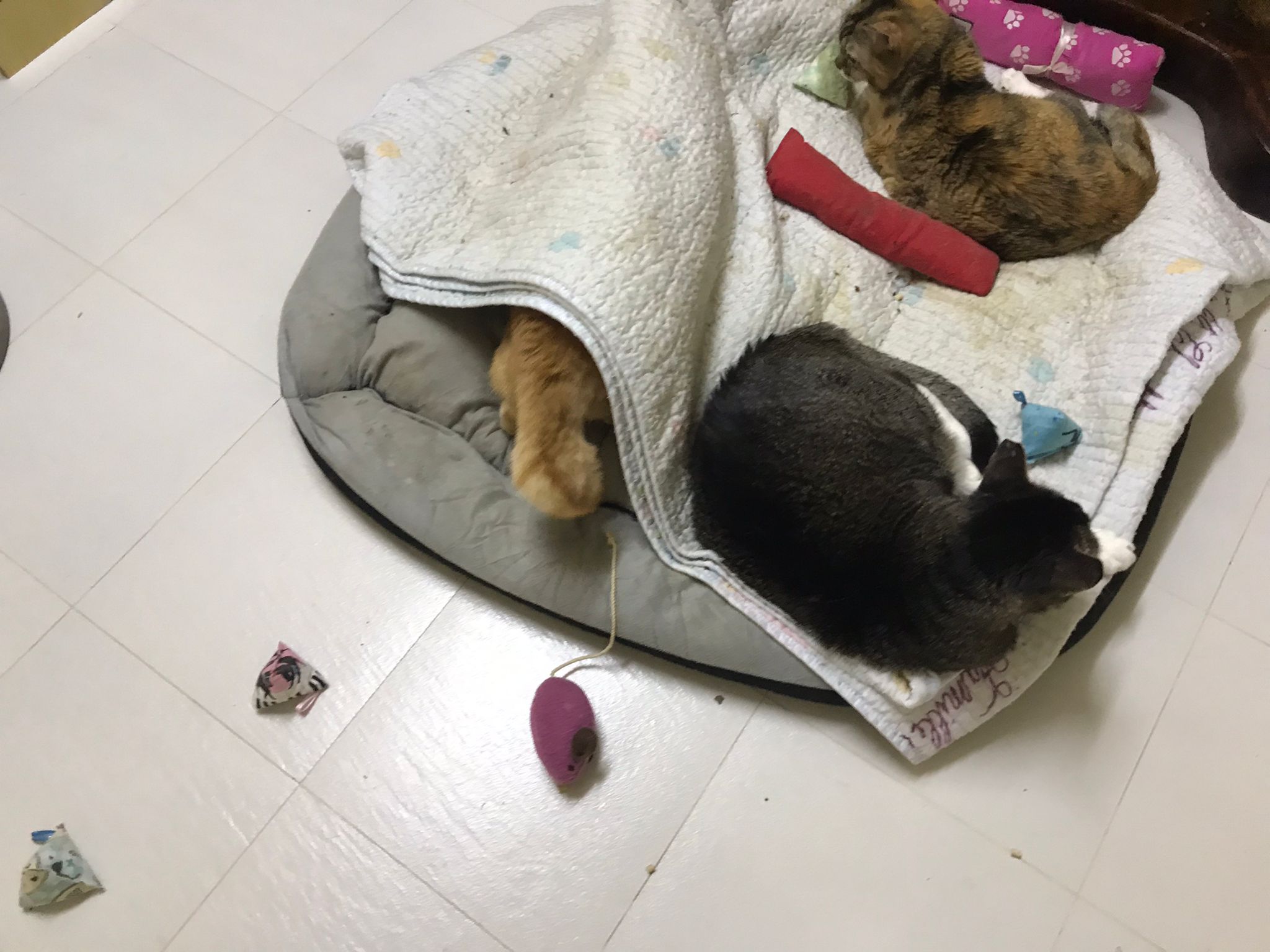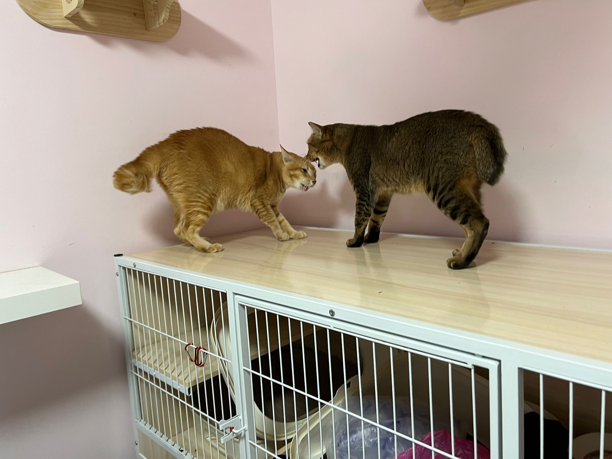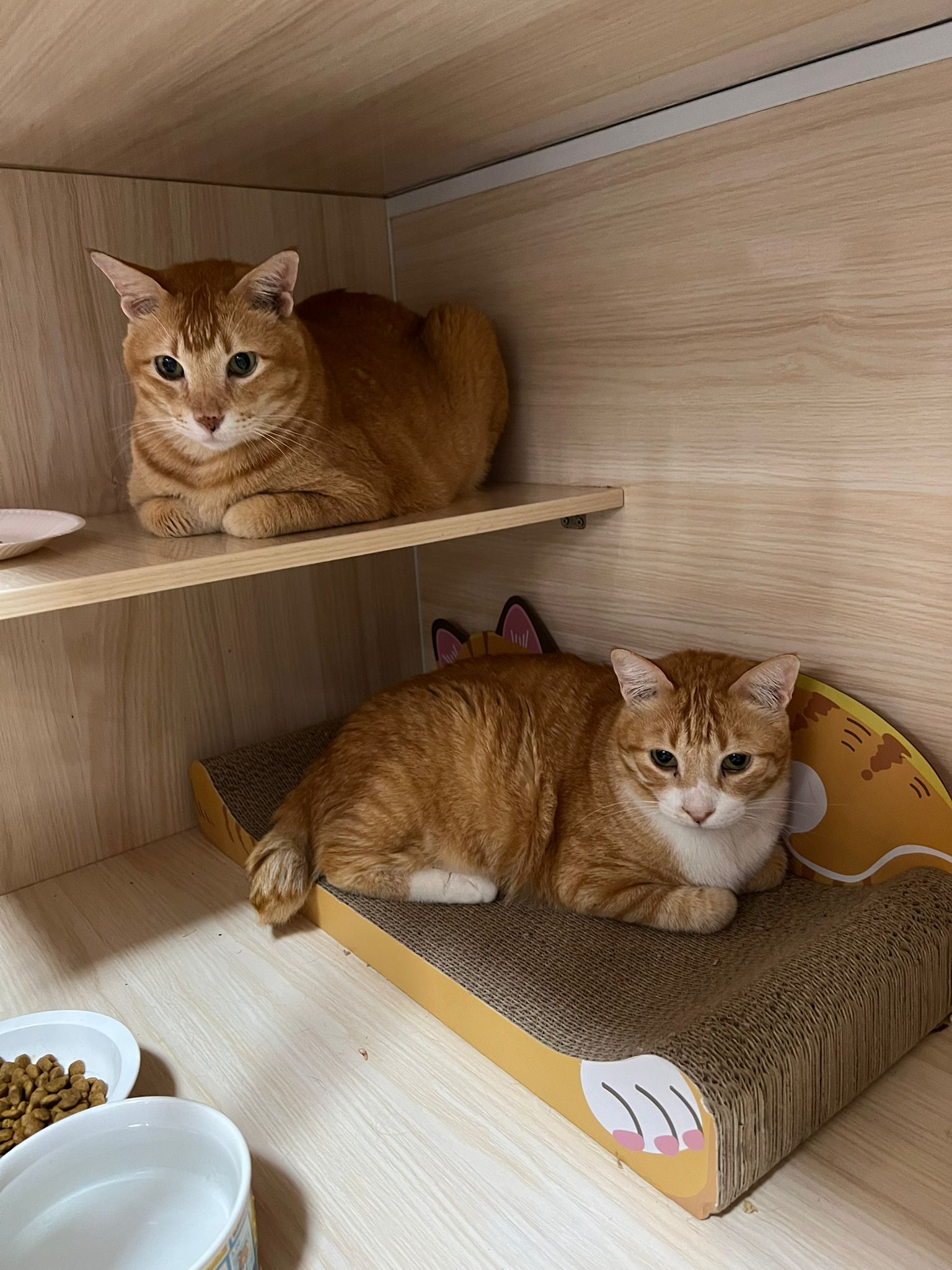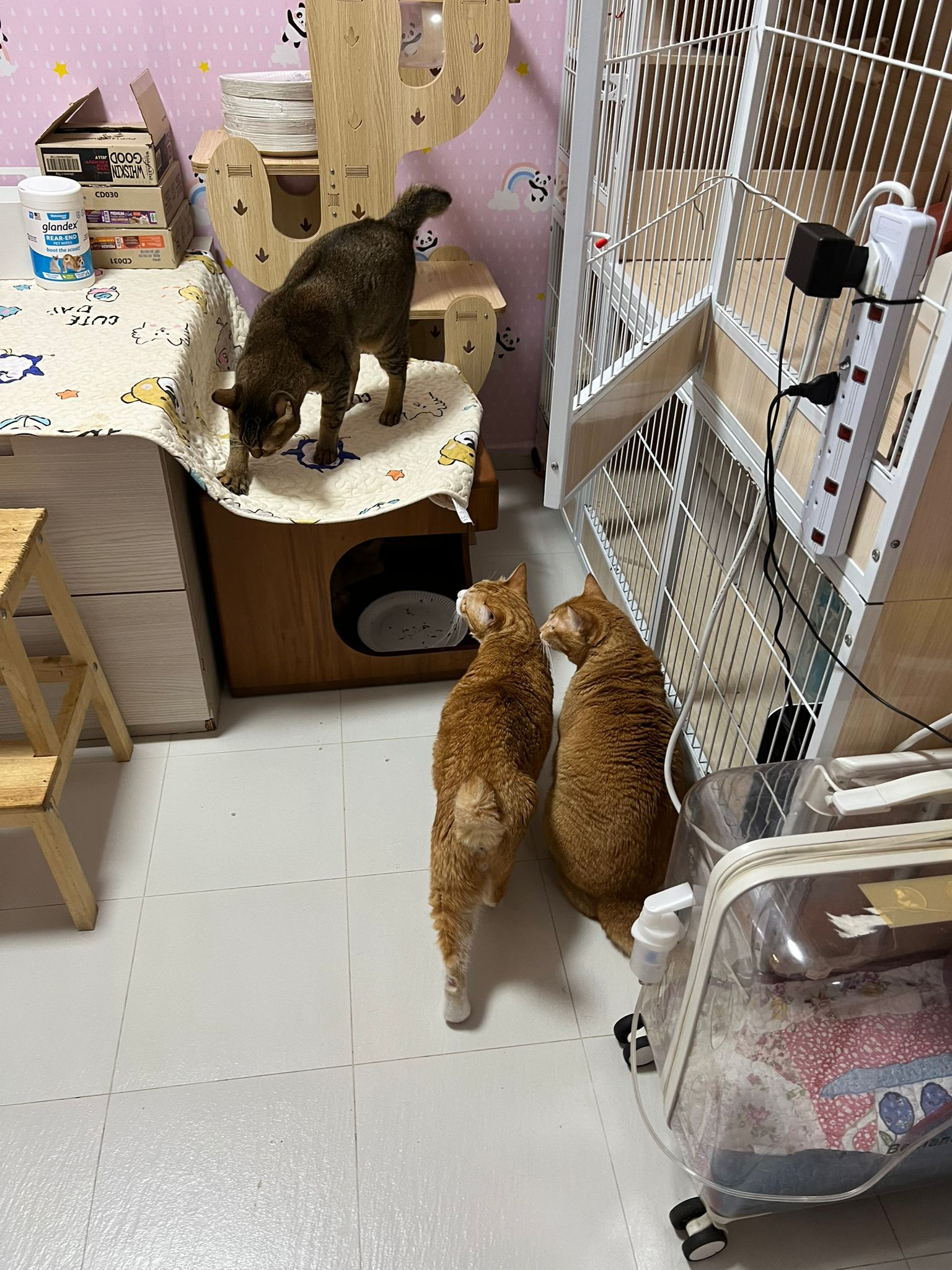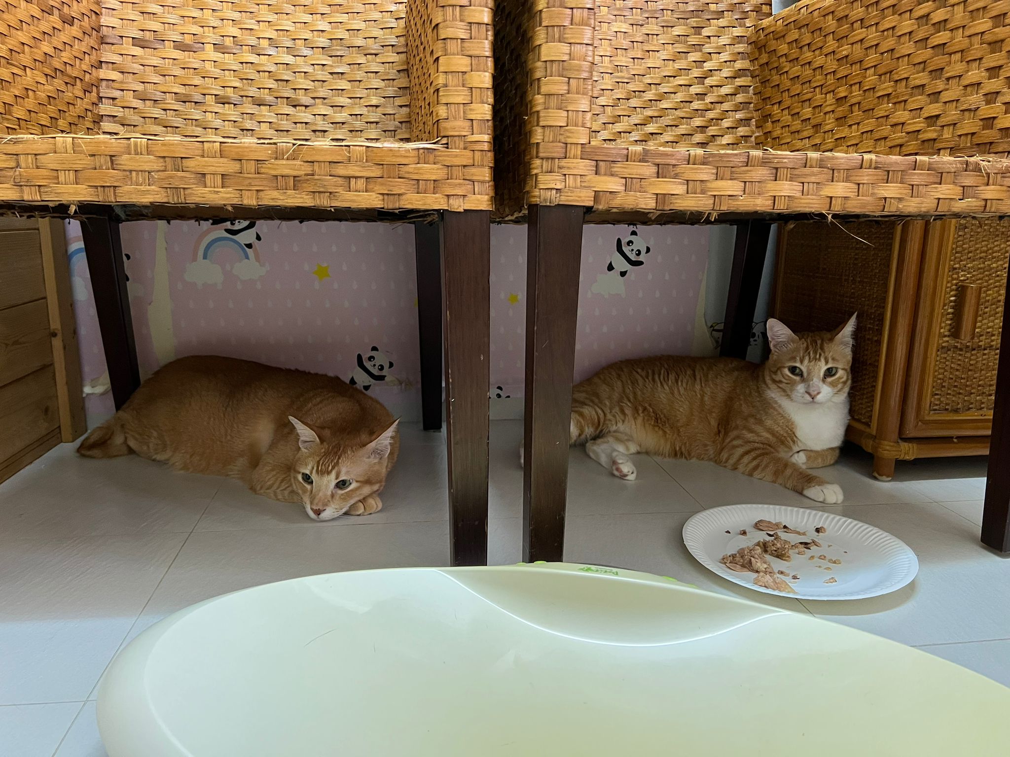 Morning: sunny and junior will head butt. Actually v good in good term mah, then Sunny will meow at him for no reason. Provoke? Just wanna play? WhT!!!? Junior didn’t react and that’s it.