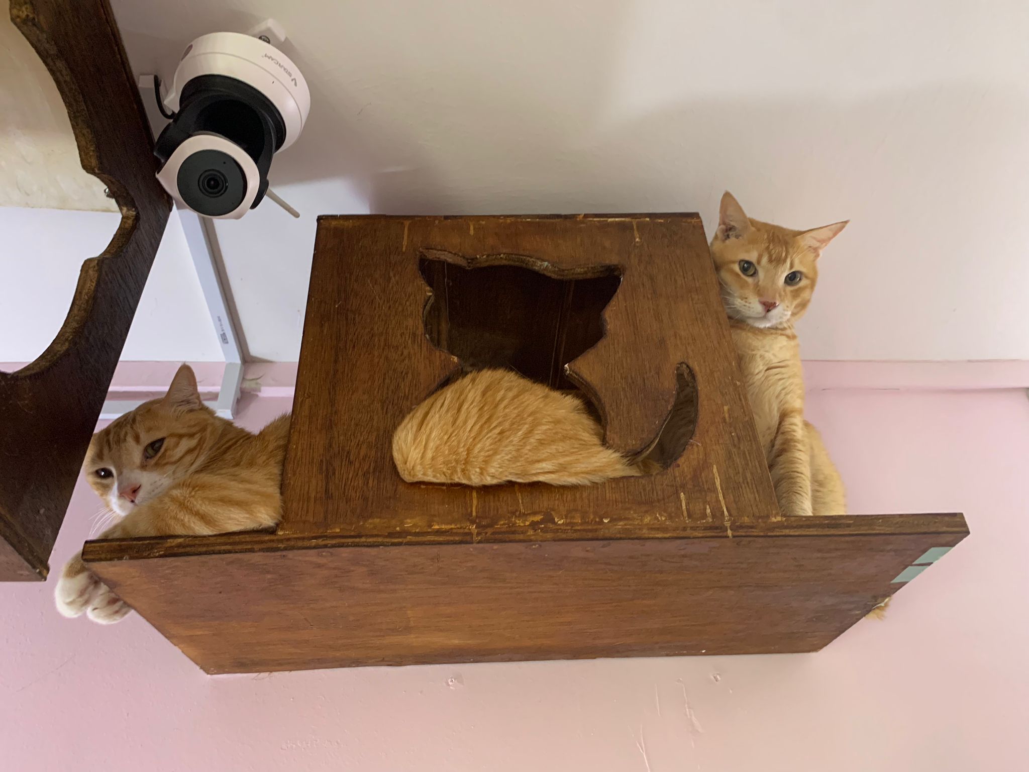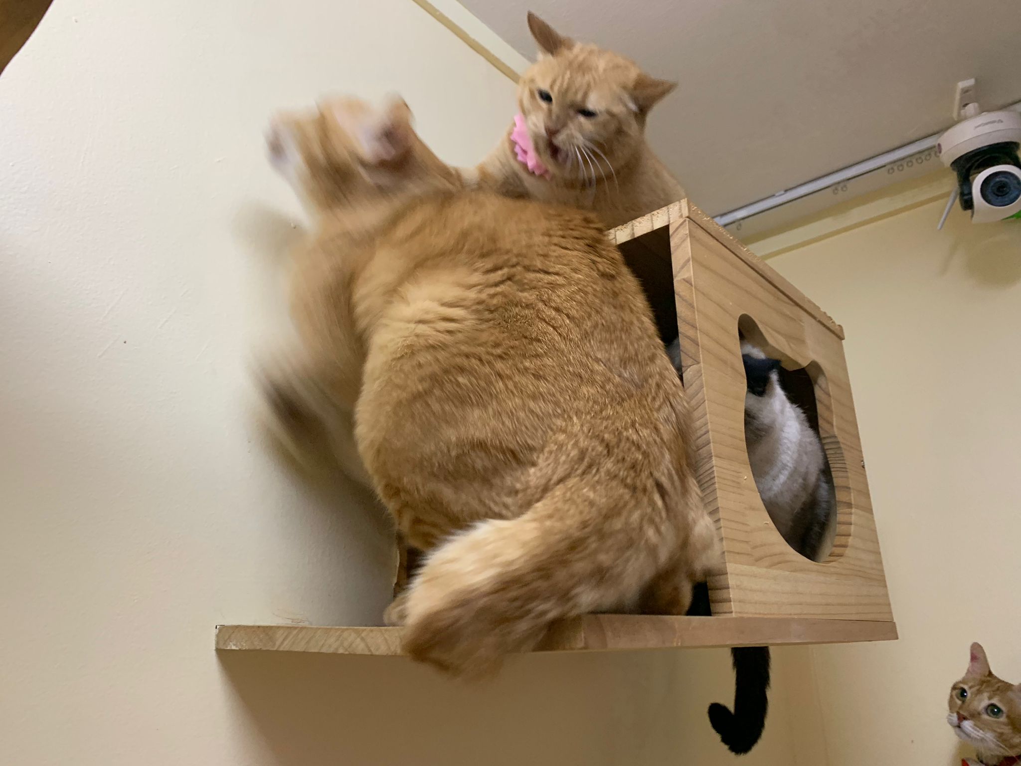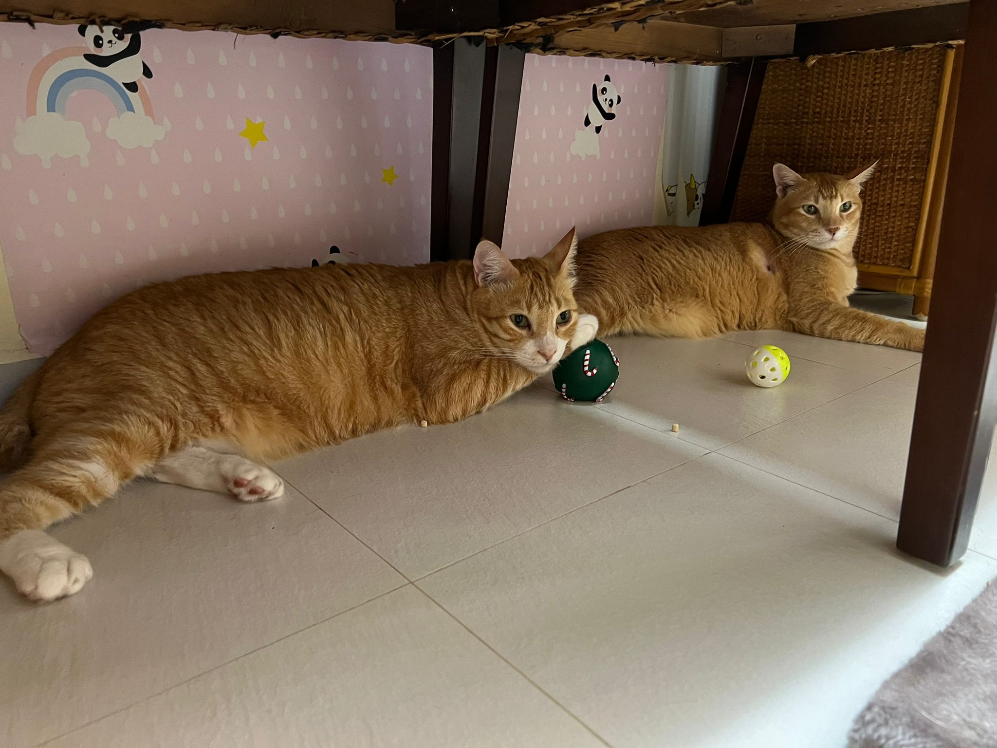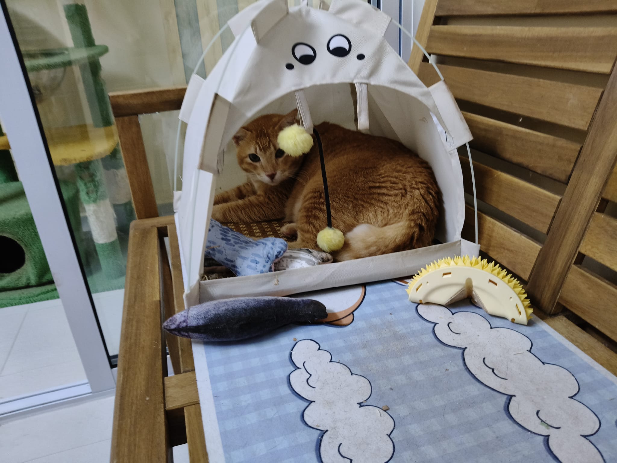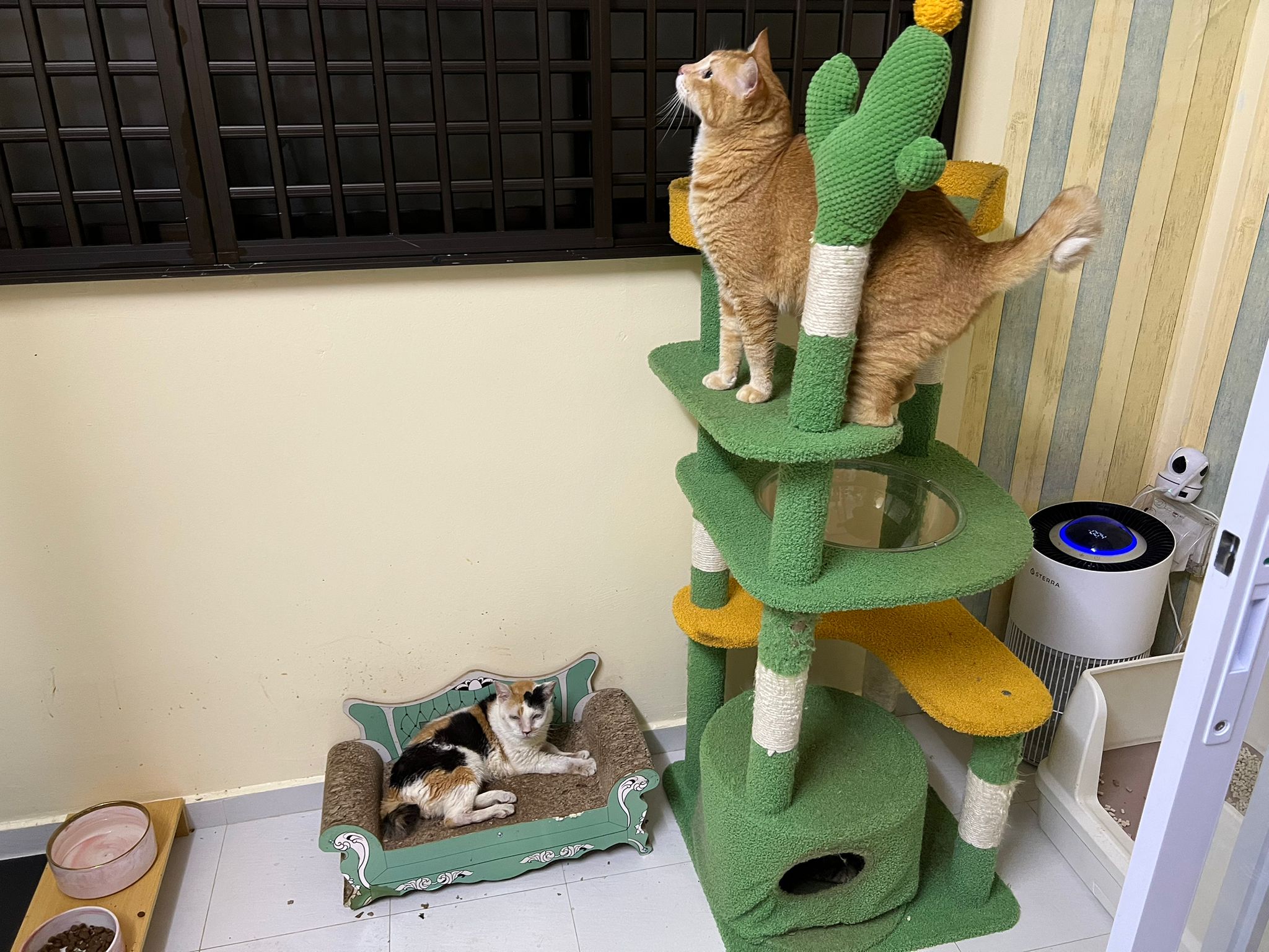 Morning: sunny and junior will head butt. Actually v good in good term mah, then Sunny will meow at him for no reason. Provoke? Just wanna play? WhT!!!? Junior didn’t react and that’s it.