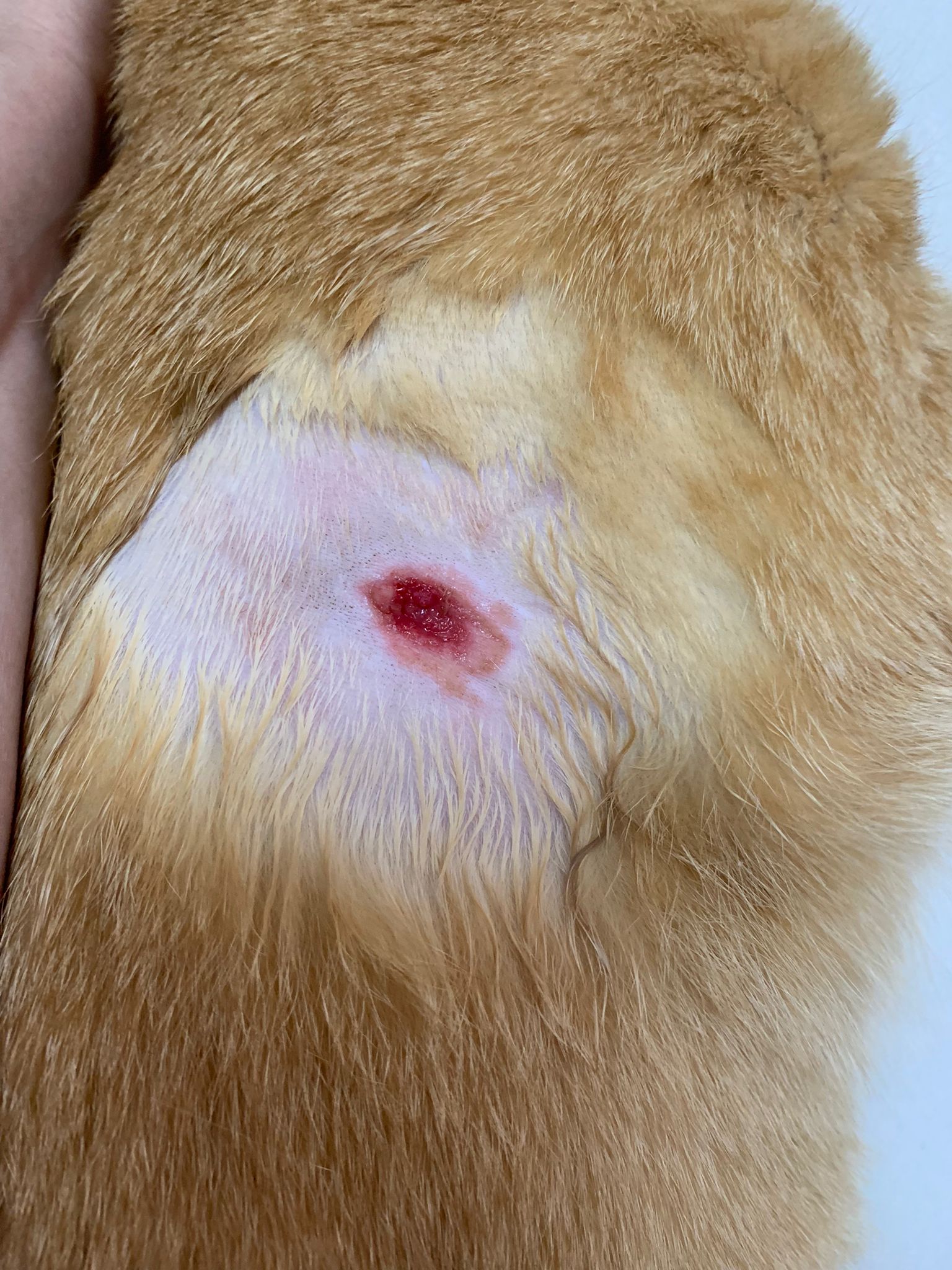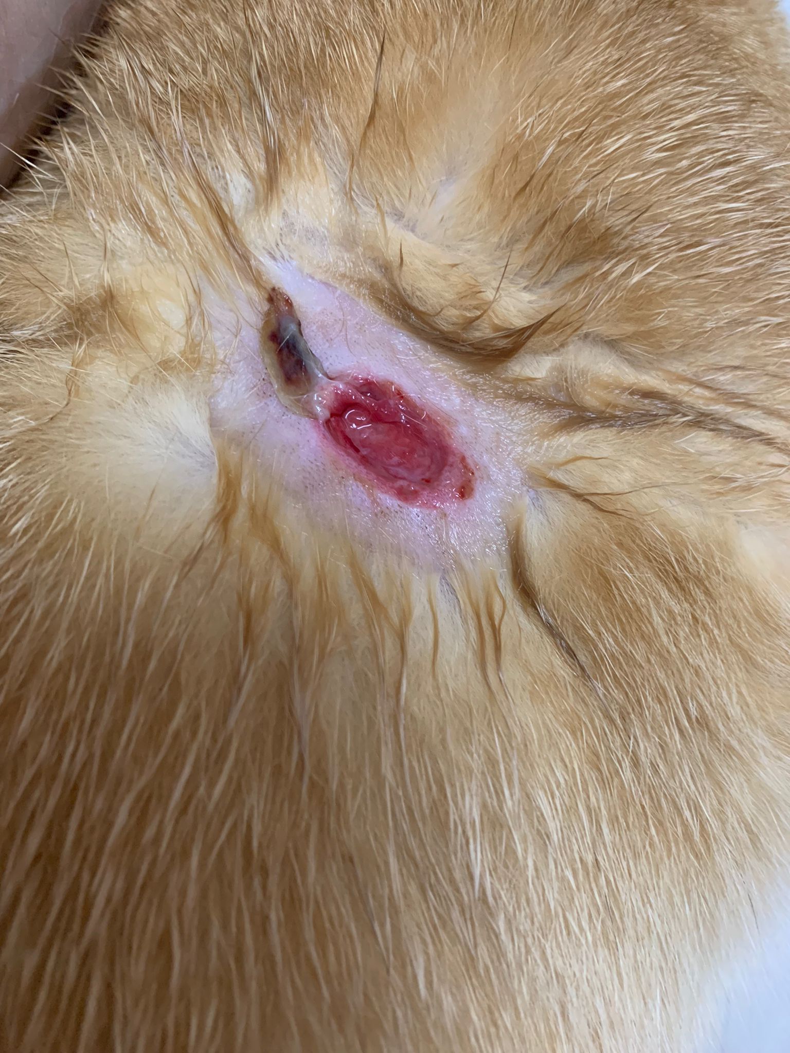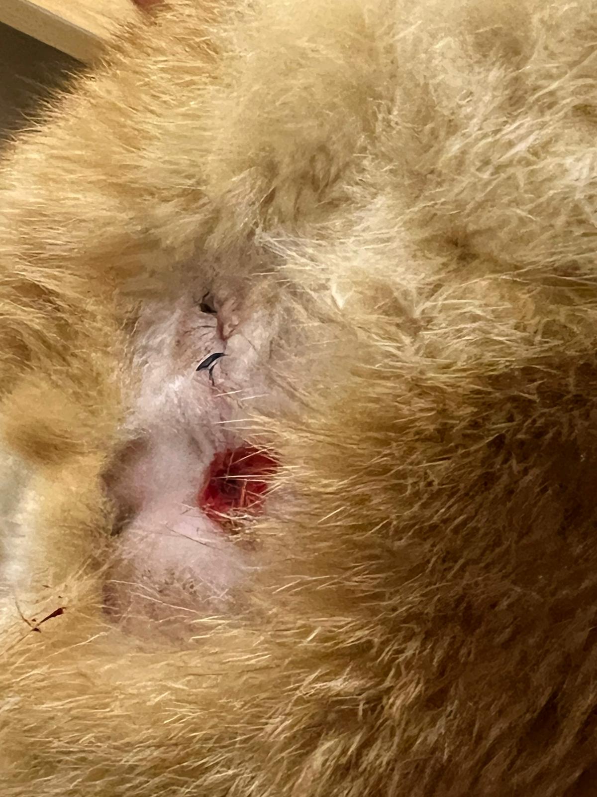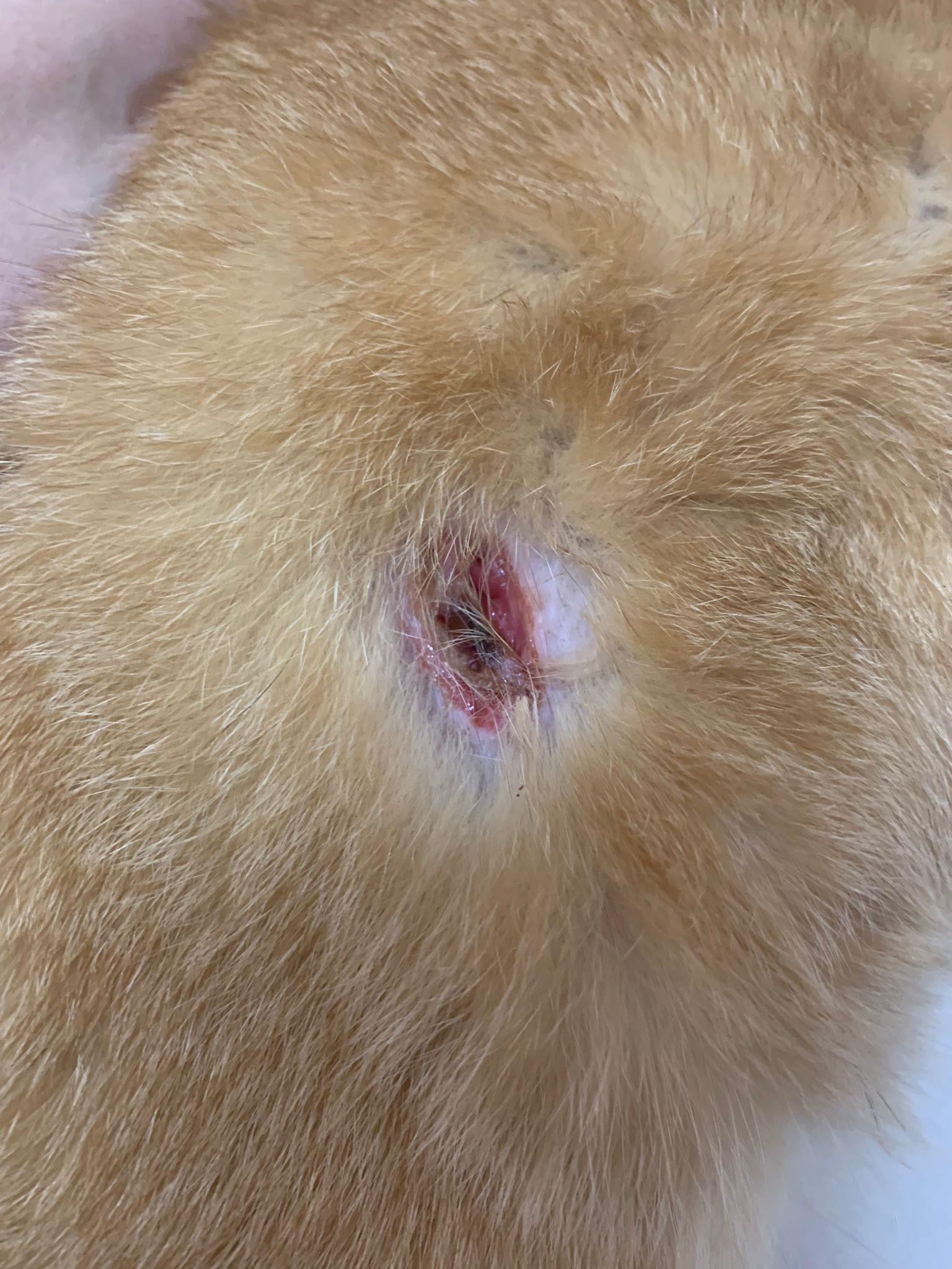 Morning: check butt, looks surface wound, press surrounding didn’t look like got pus clean w silver and let him go.