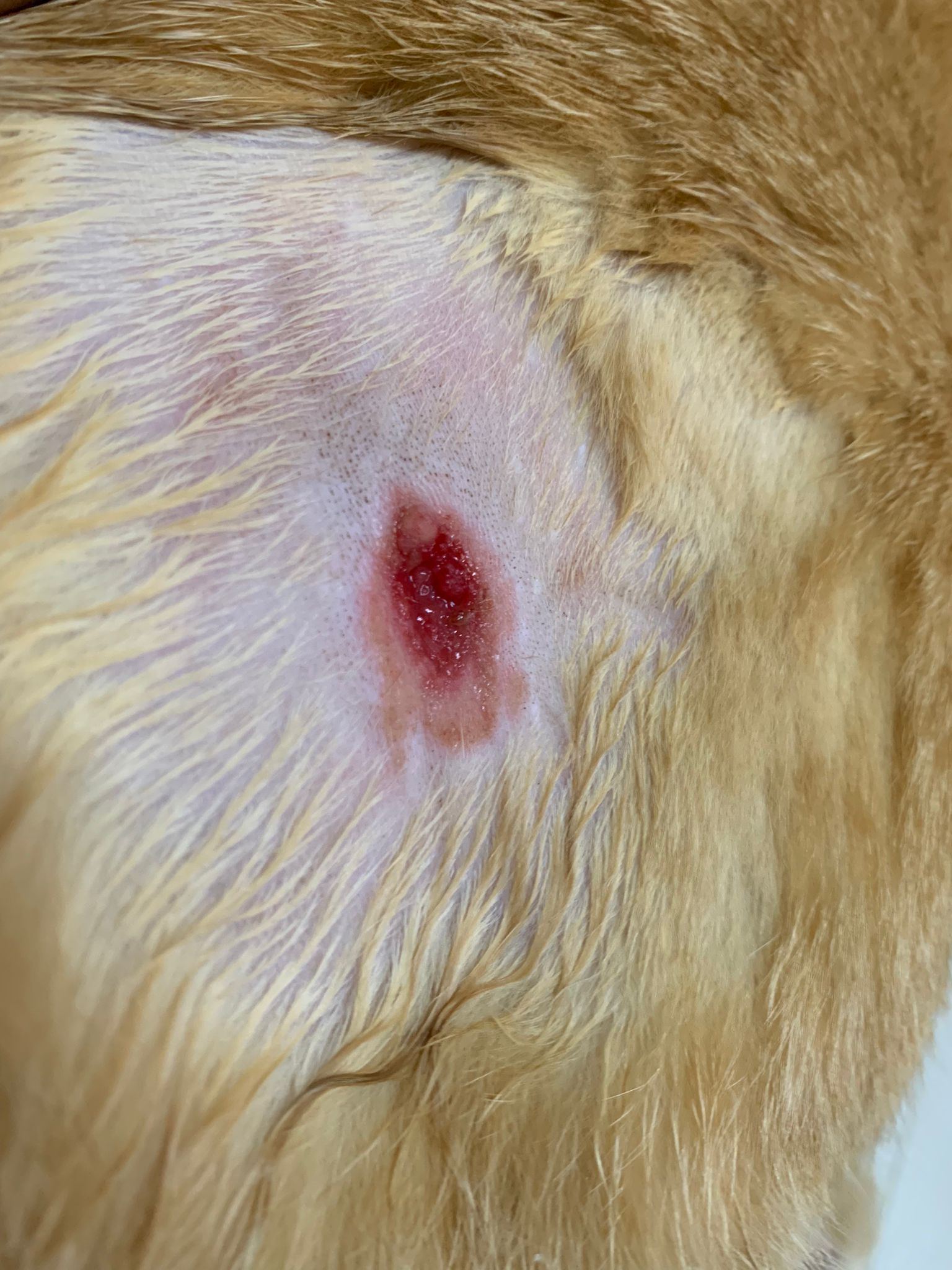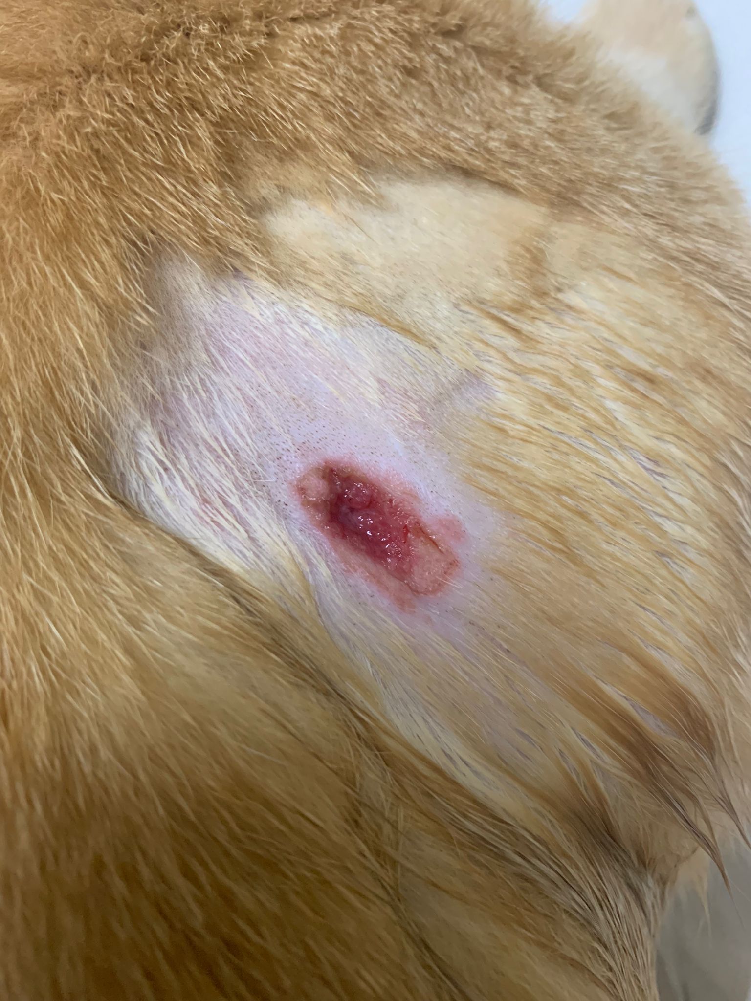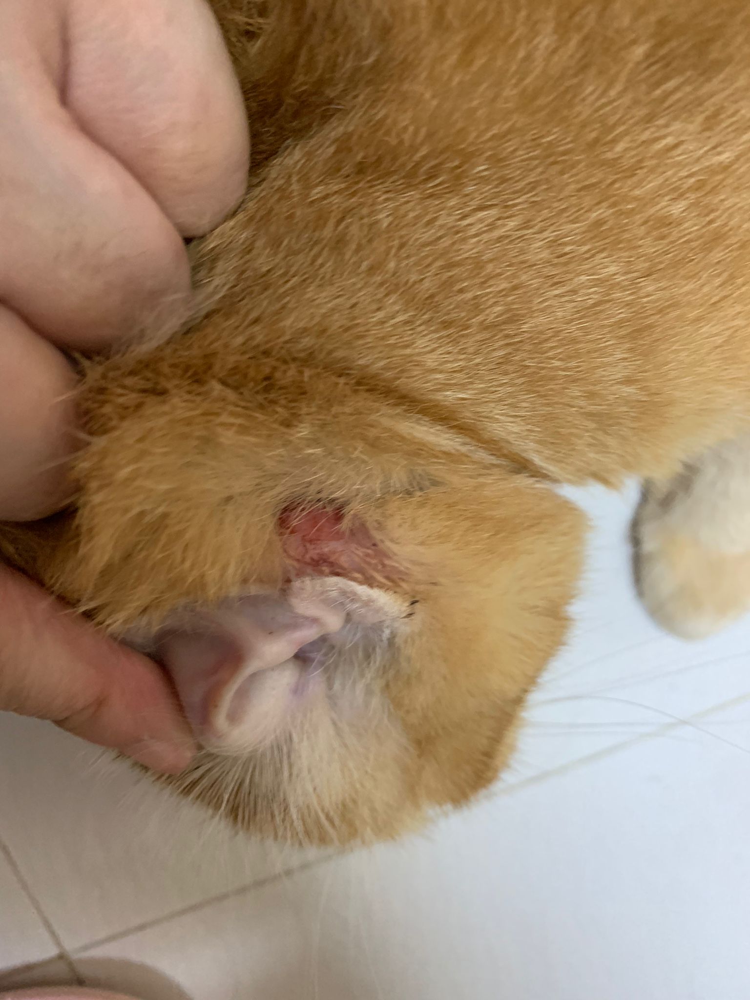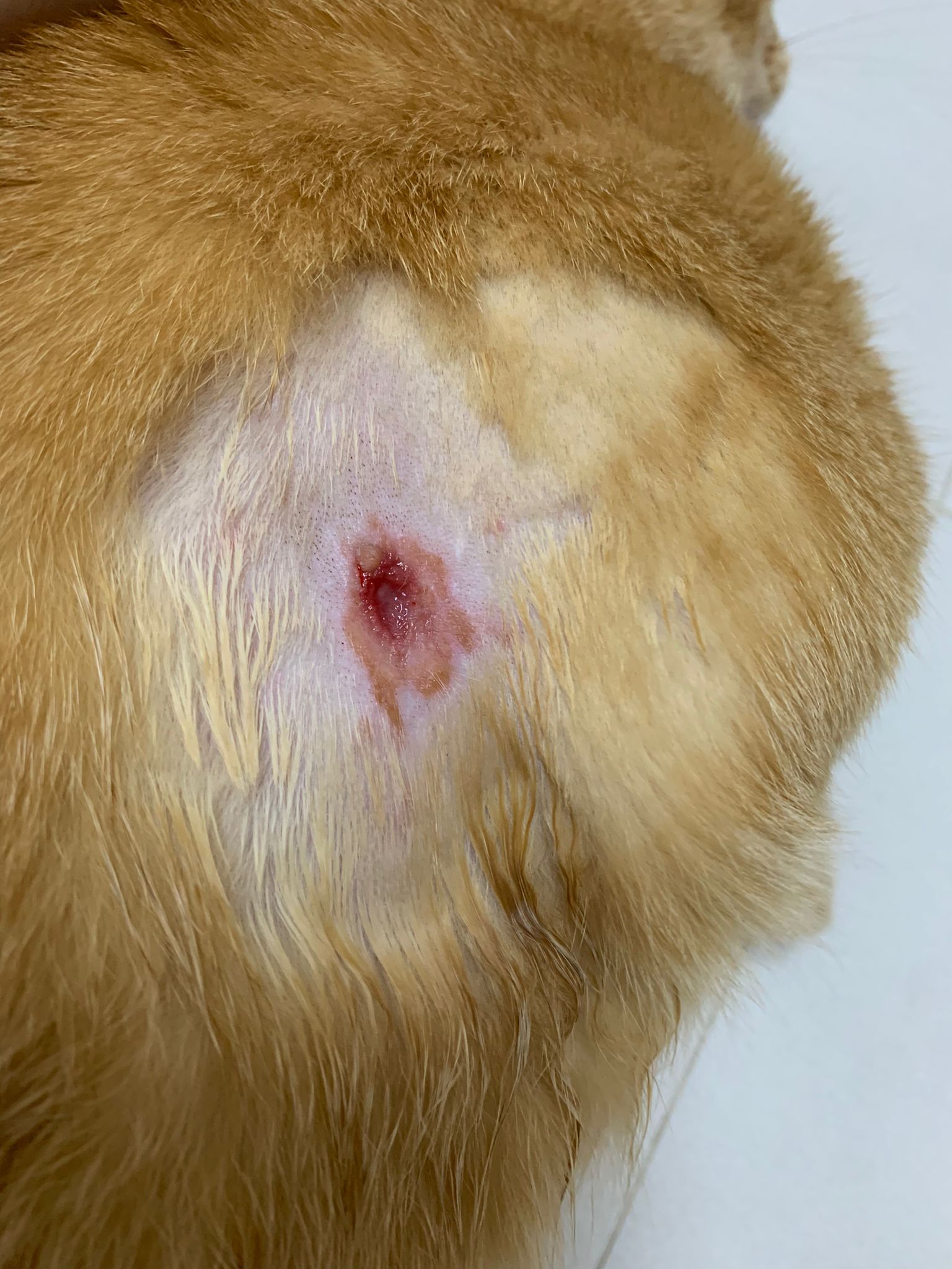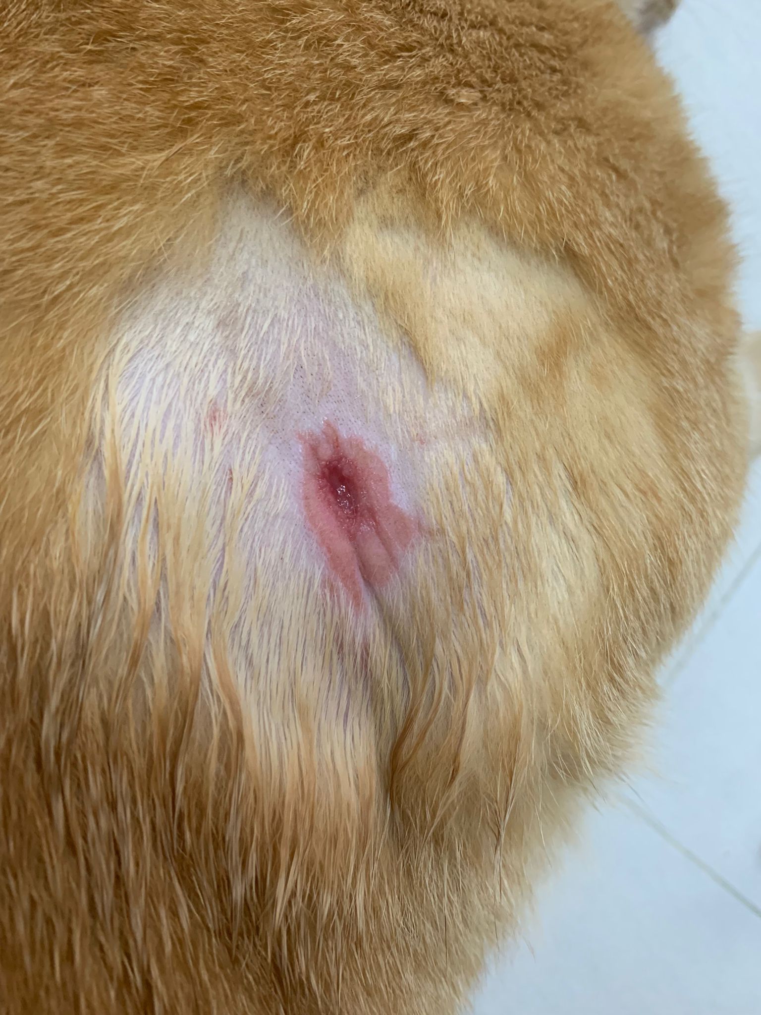 Morning: check butt, looks surface wound, press surrounding didn’t look like got pus clean w silver and let him go.