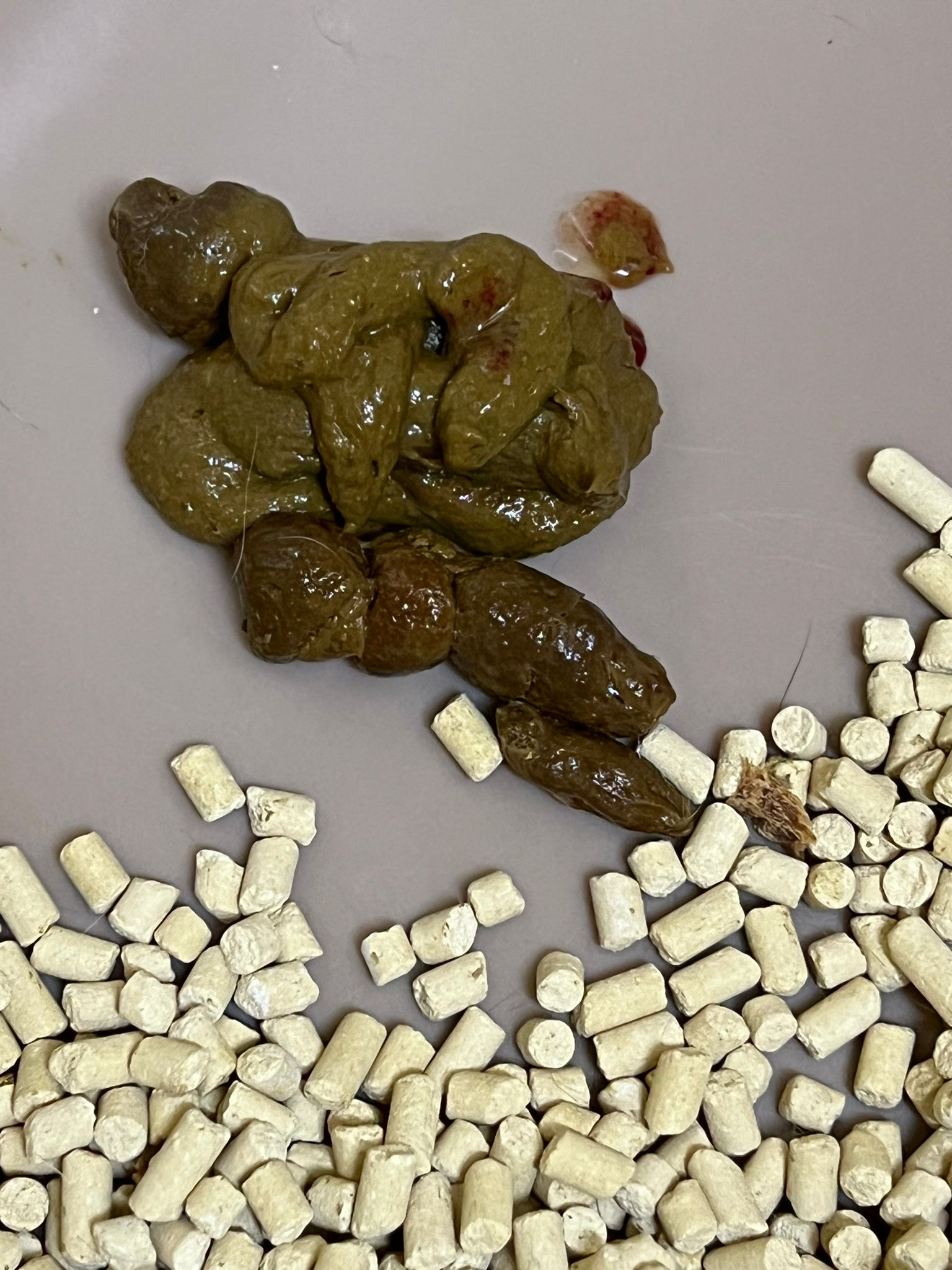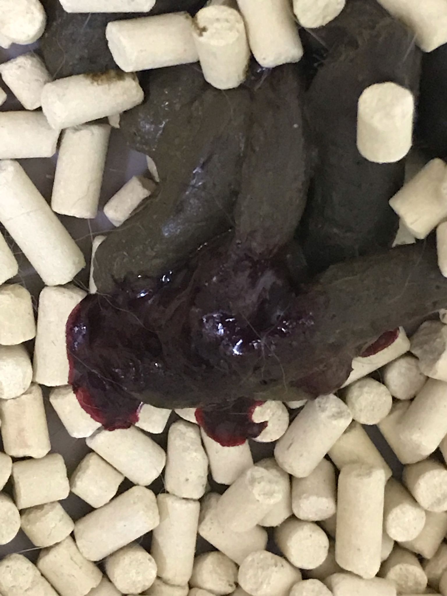 9Am: saw him poo, 2.5/10 w tinted blood – KIV