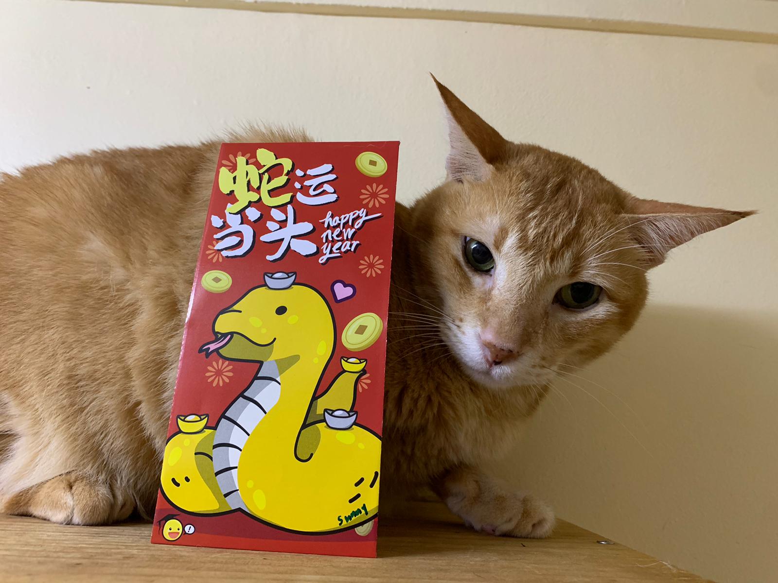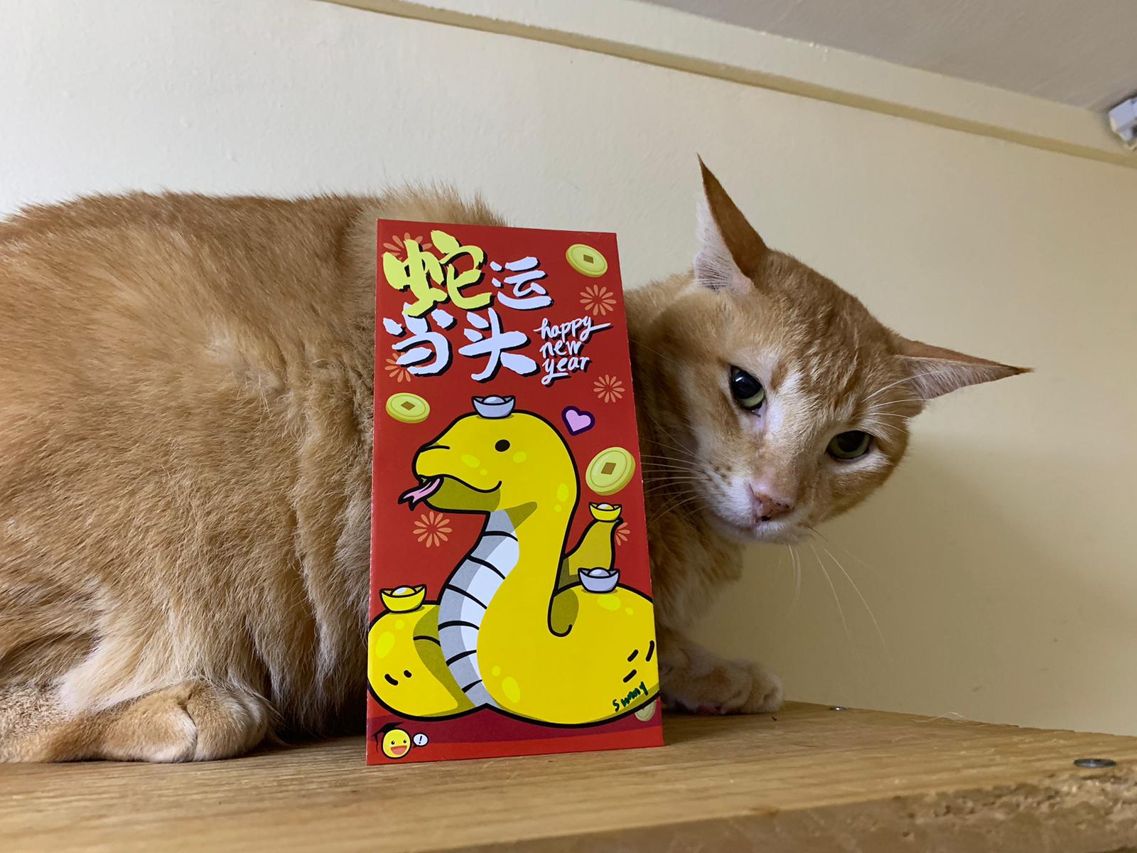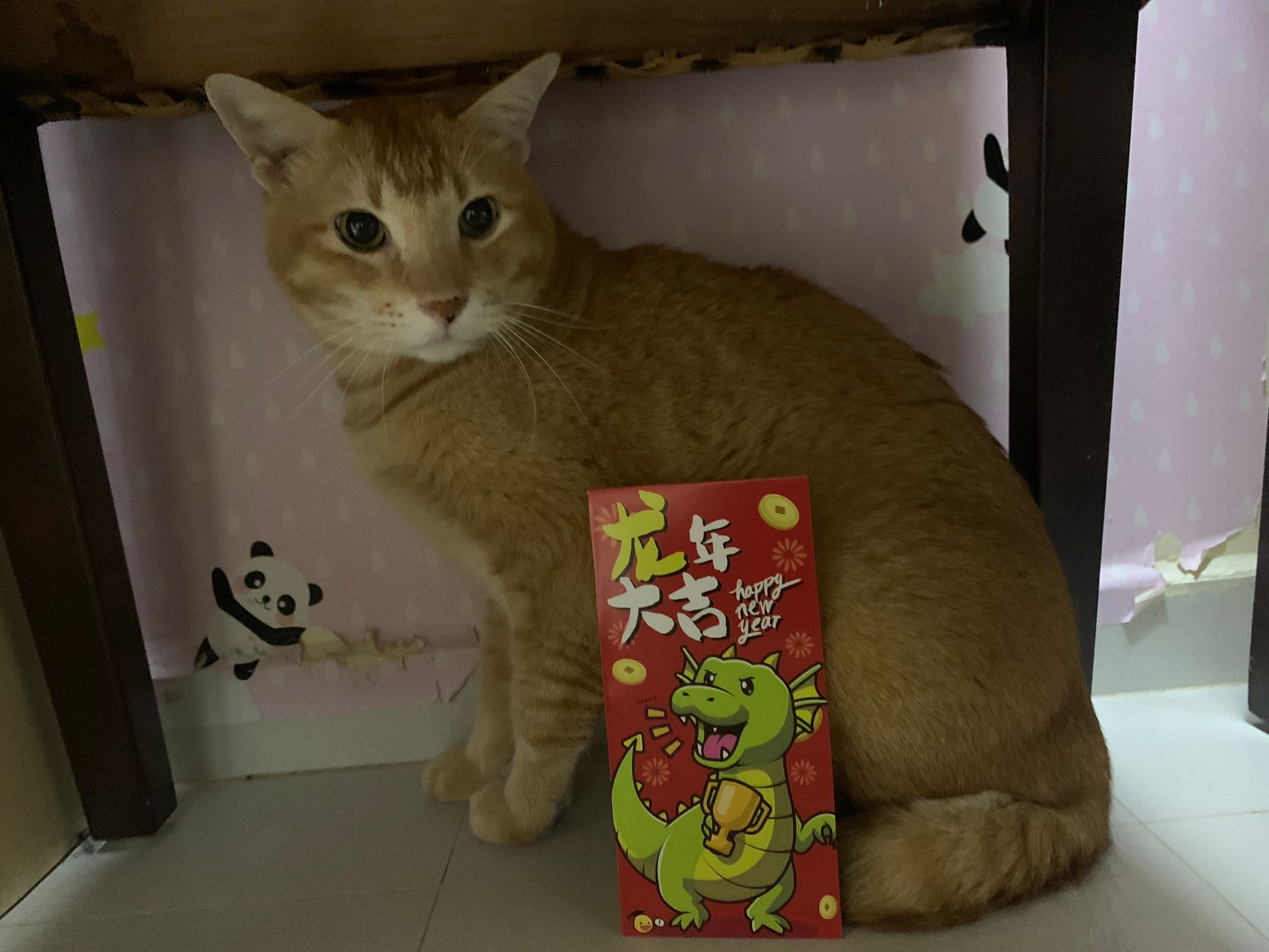 12pm+: given him a Ang bao. 压岁钱、told him stay healthy and cute baby.