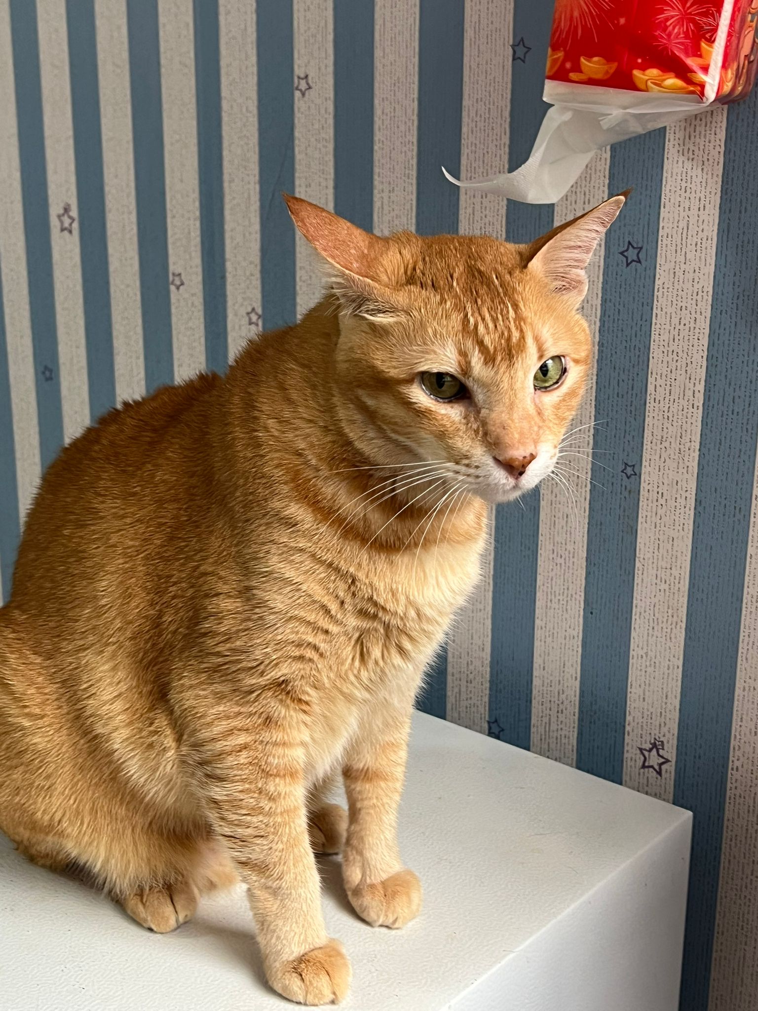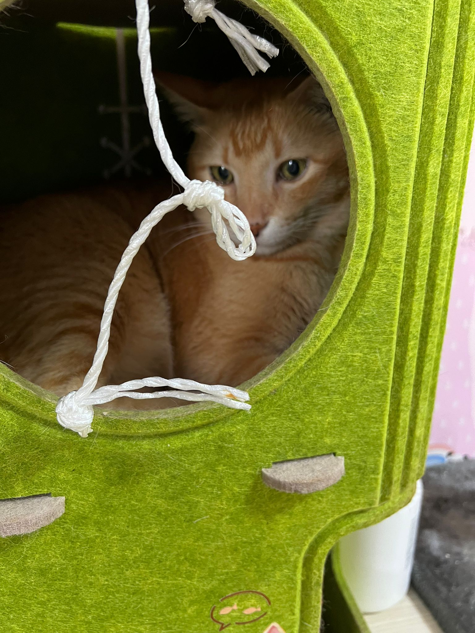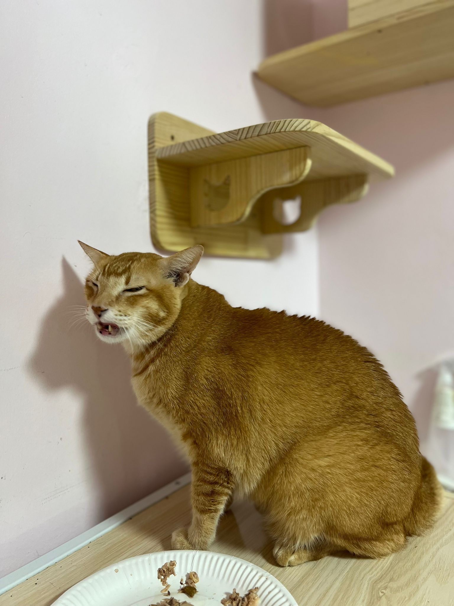 • naughty sunny like to chew plastic. Today he chew the wallpaper and vomit out the hello kitty paper