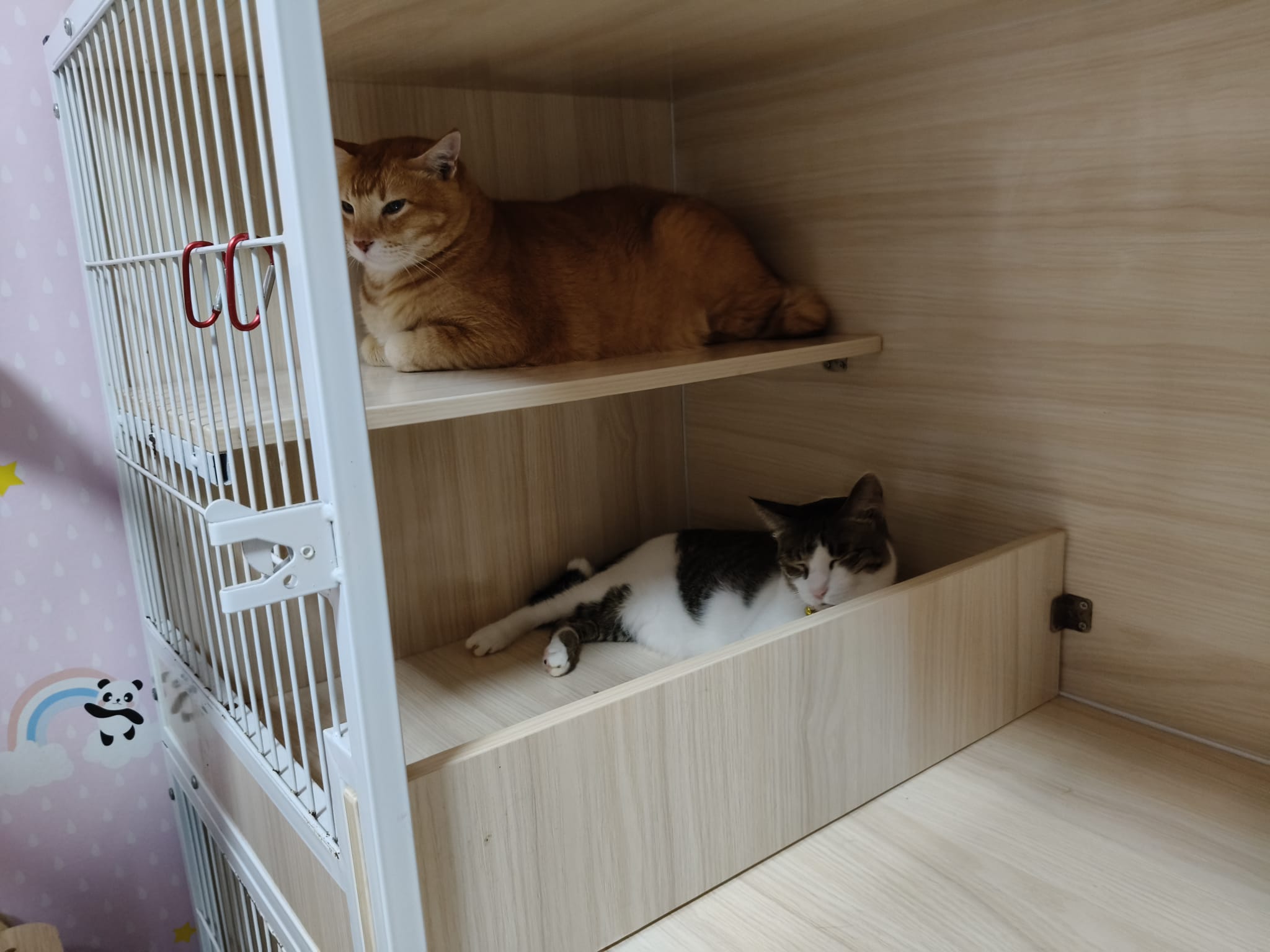 Night: the whole family, Amber mama and her sons Sunny and sunshine like to sit in cage? Ha this cage door will be left open for all to go in to laze ard bah