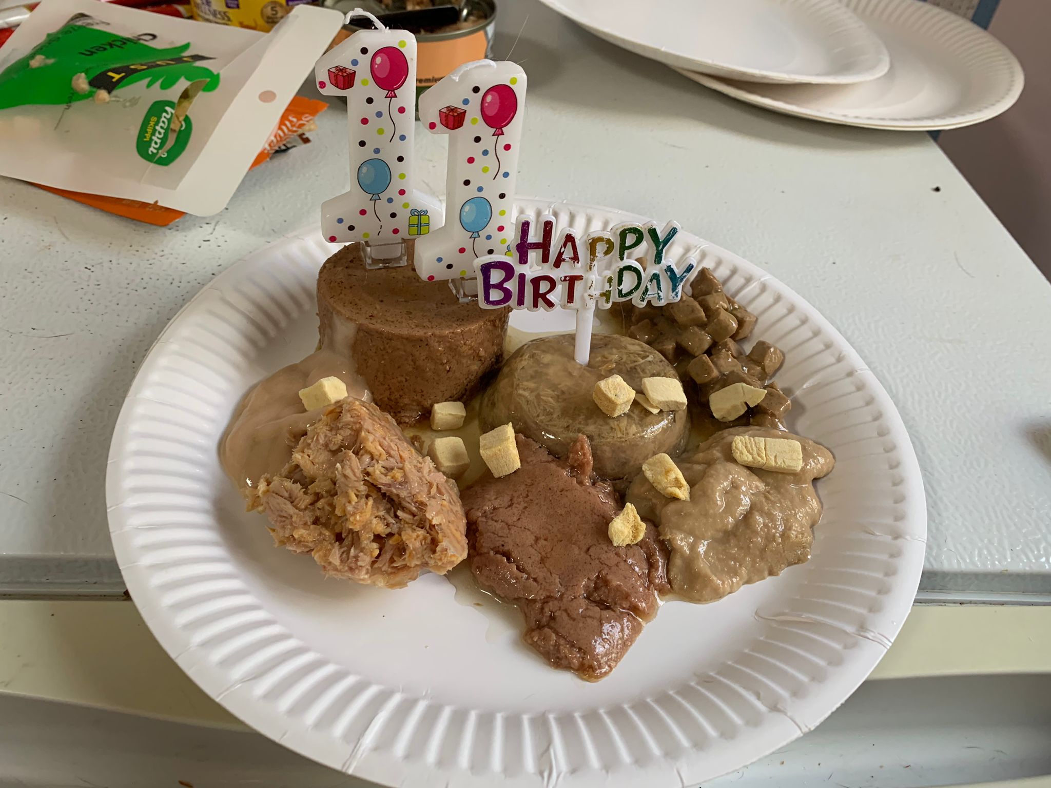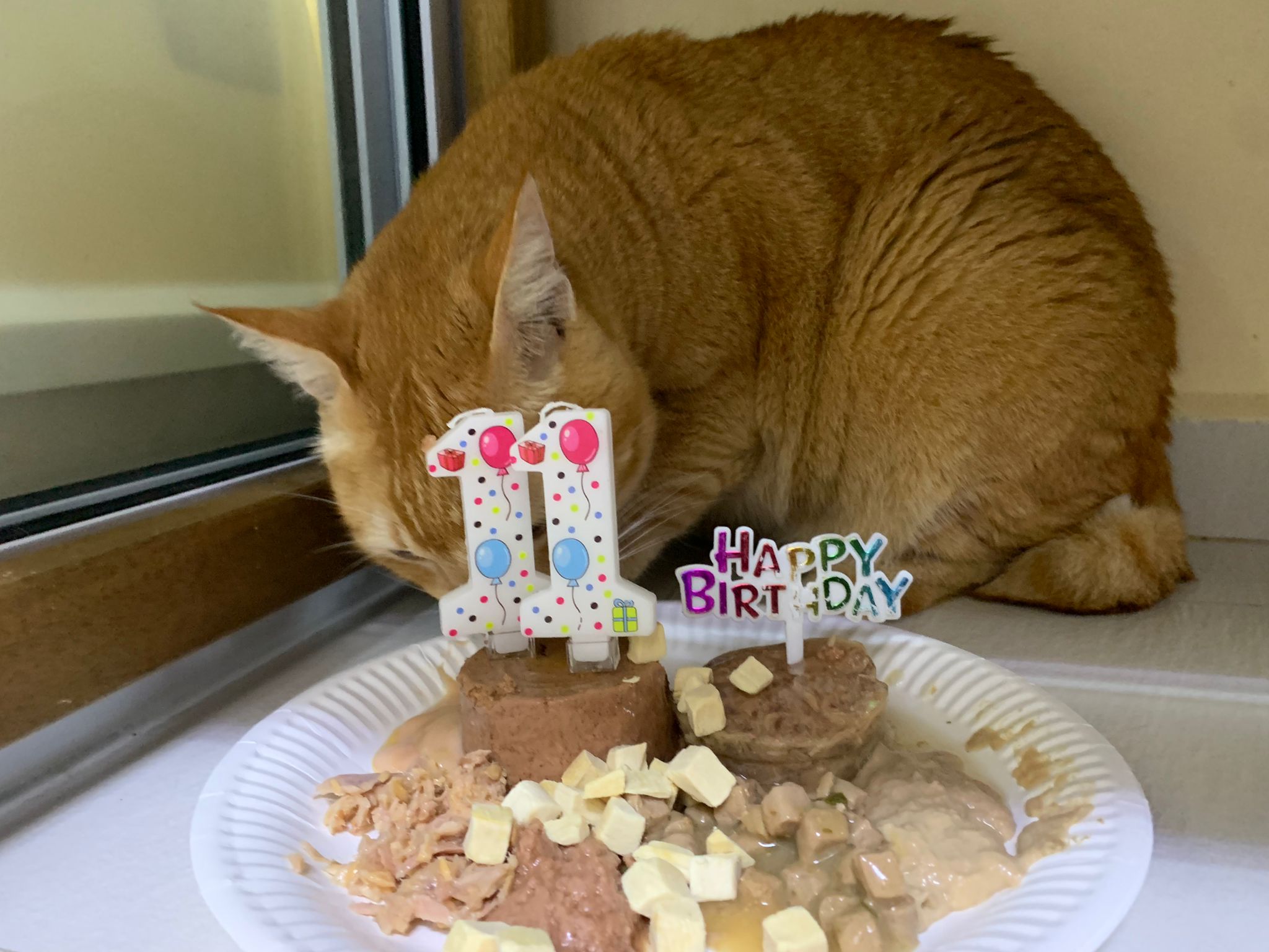 Morning: Amber n sunny n sunshine celebrate 11th bday in 猫房. Of cos can sayang sunny la. He ate some of his cake n I spilt up for pa and his Jack papa