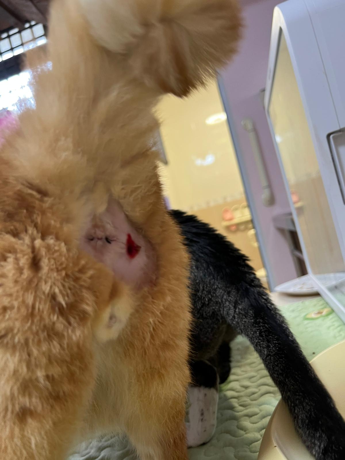9Am+: jo photo show Sunny butt got one hole. Smaller than 5c. Tmr will check whether is surface abrasion or is a wound.