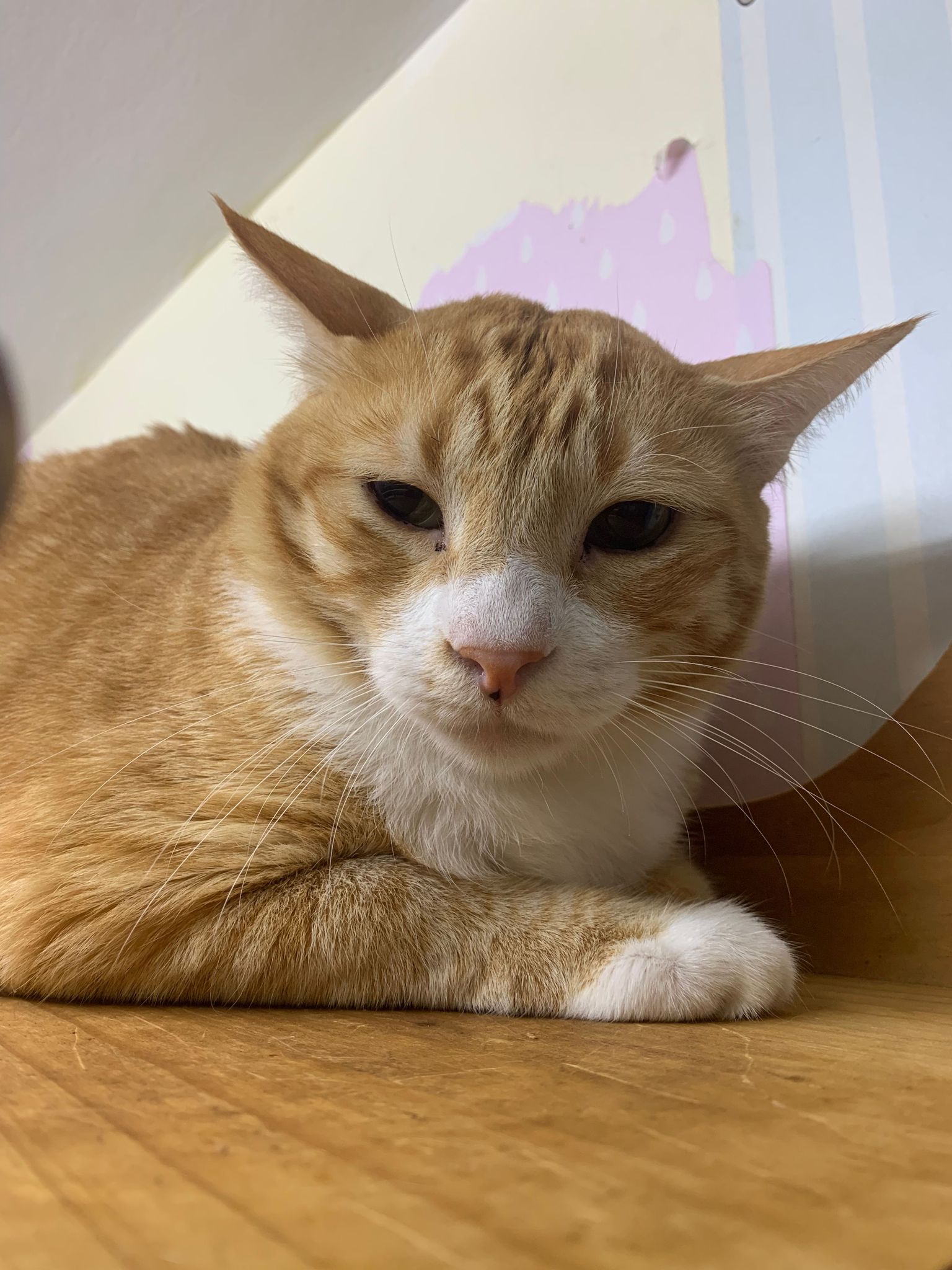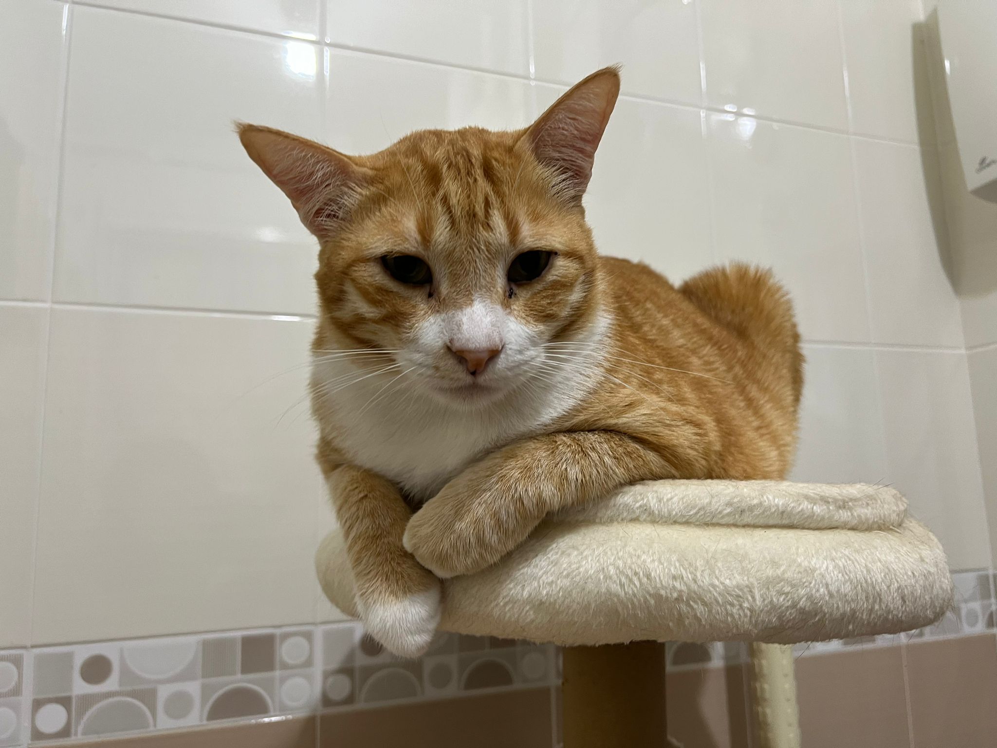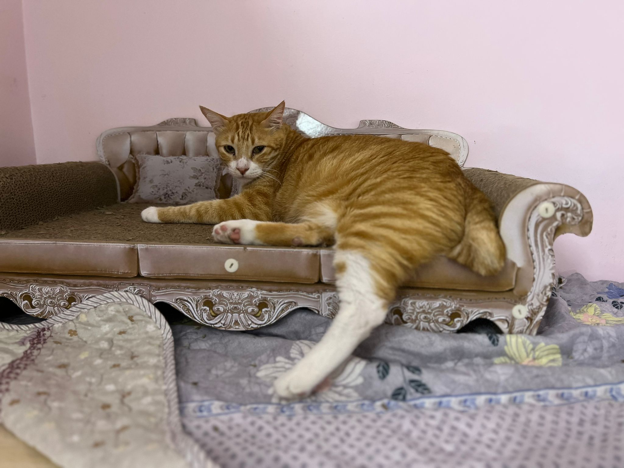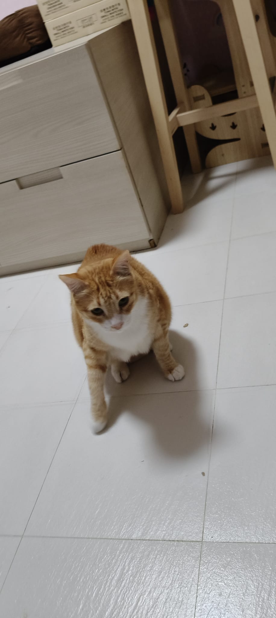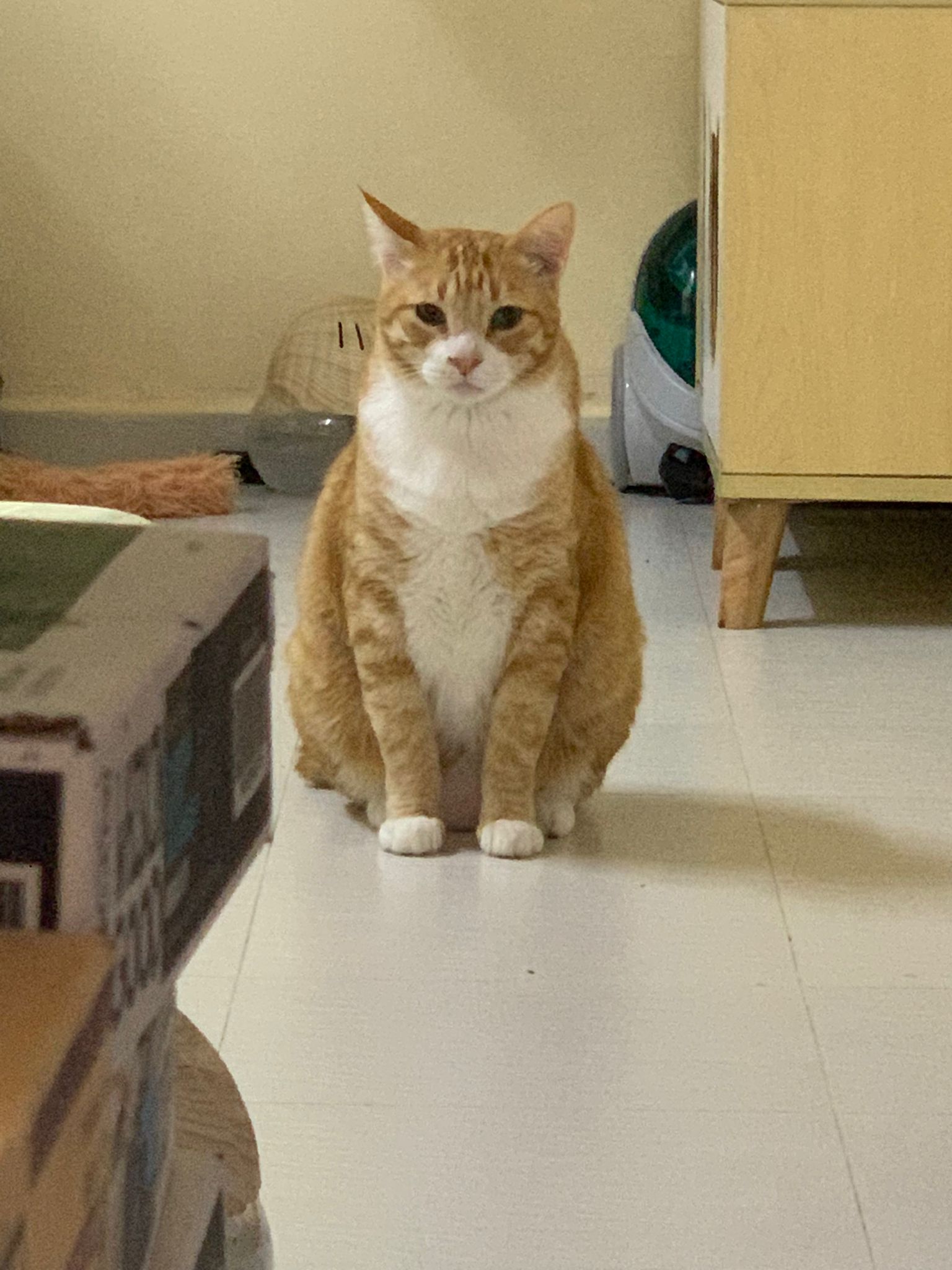 Follow his mummy Amber since young, scare of human, don’t allow touch. He don’t really attack me if I touch him but he will fly away. He is playful, play feather time n laser light he will come. I assume he grow up well in 猫房 – muscular and strong.