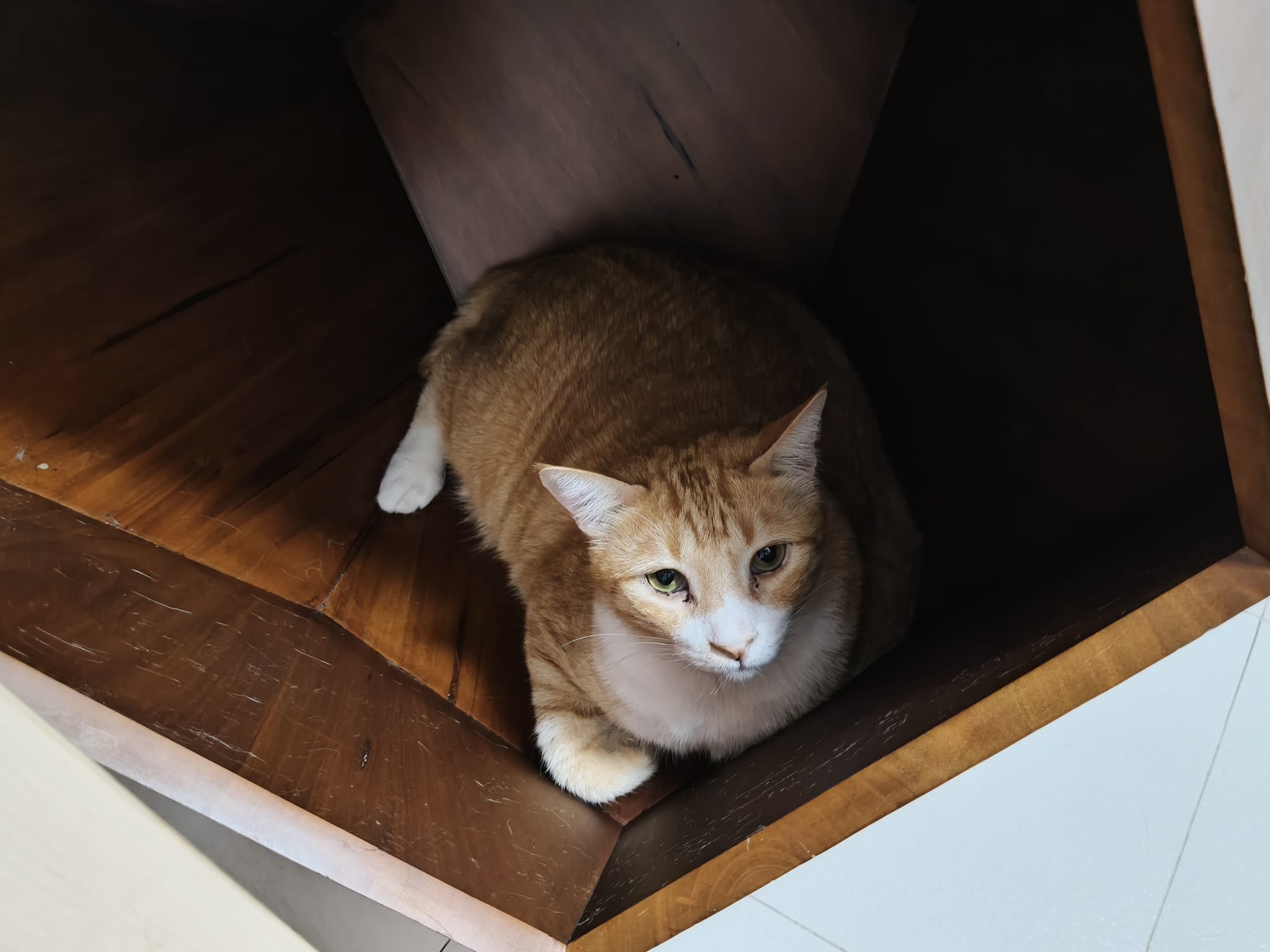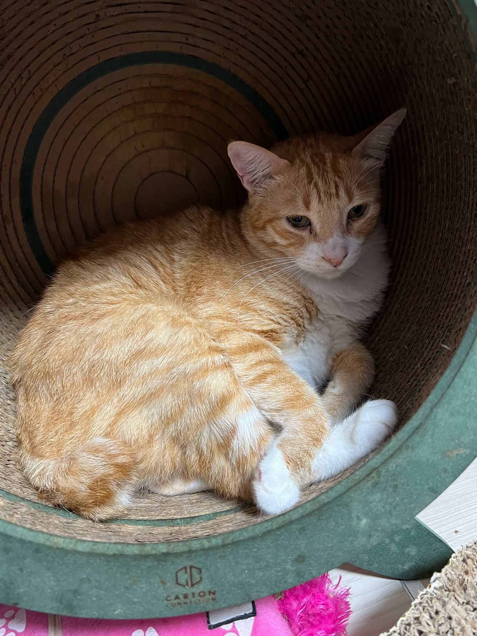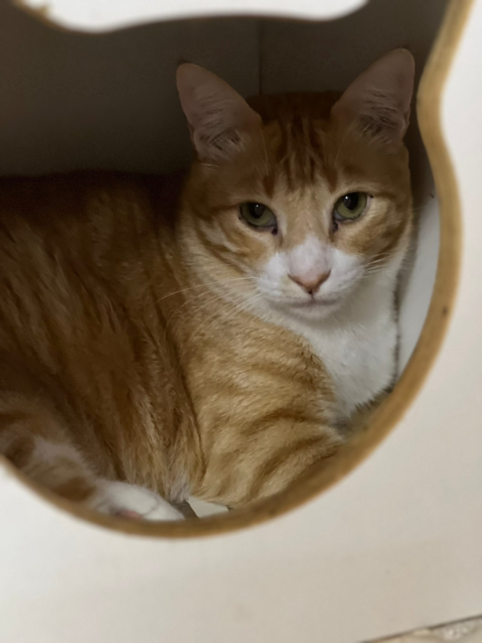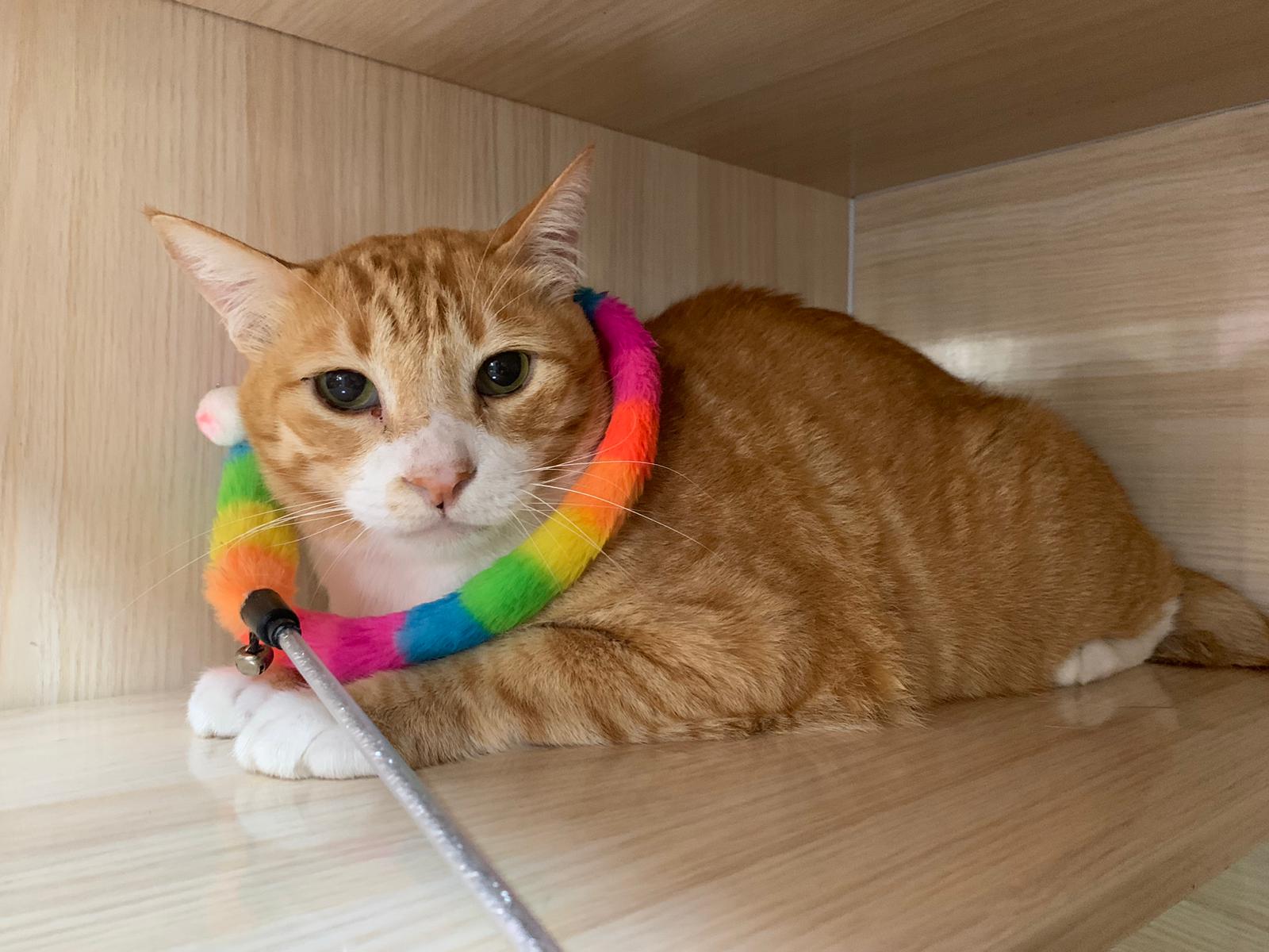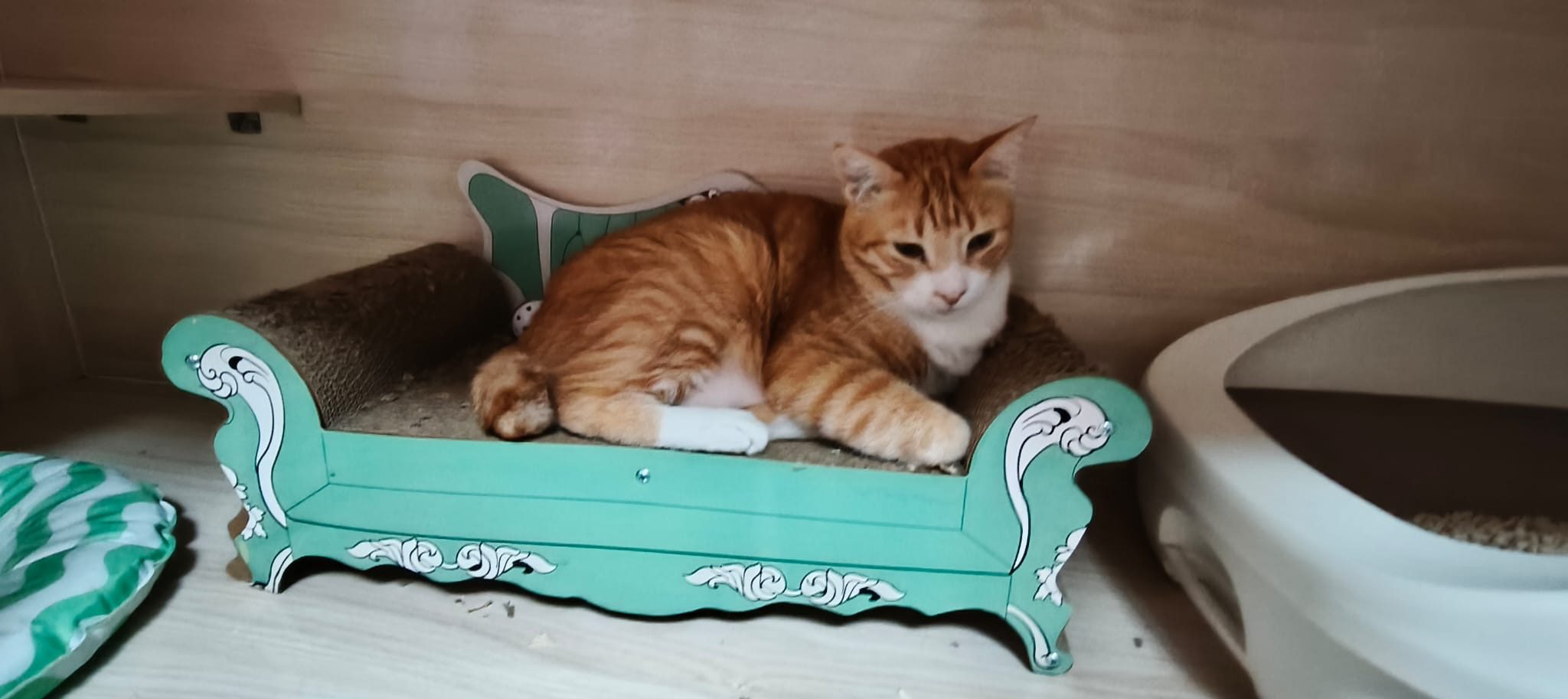 Follow his mummy Amber since young, scare of human, don’t allow touch. He don’t really attack me if I touch him but he will fly away. He is playful, play feather time n laser light he will come. I assume he grow up well in 猫房 – muscular and strong.