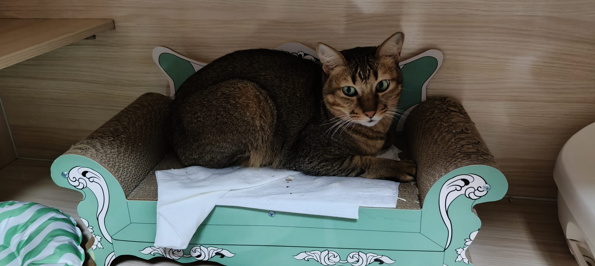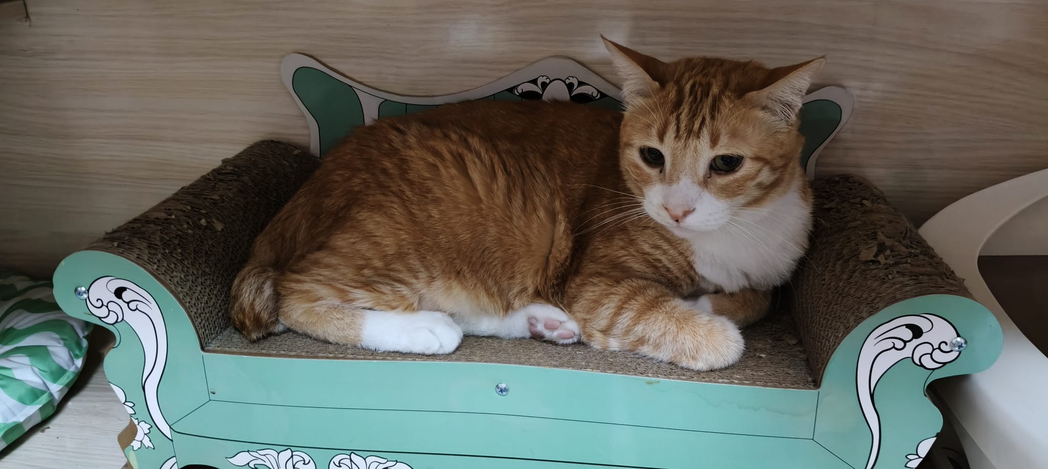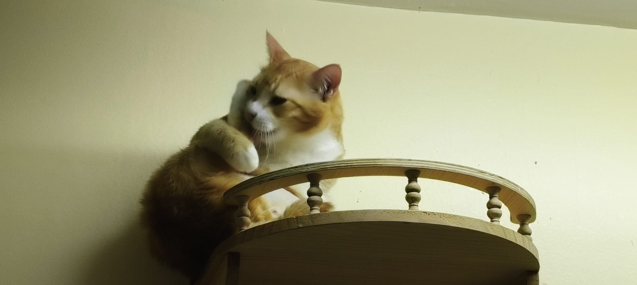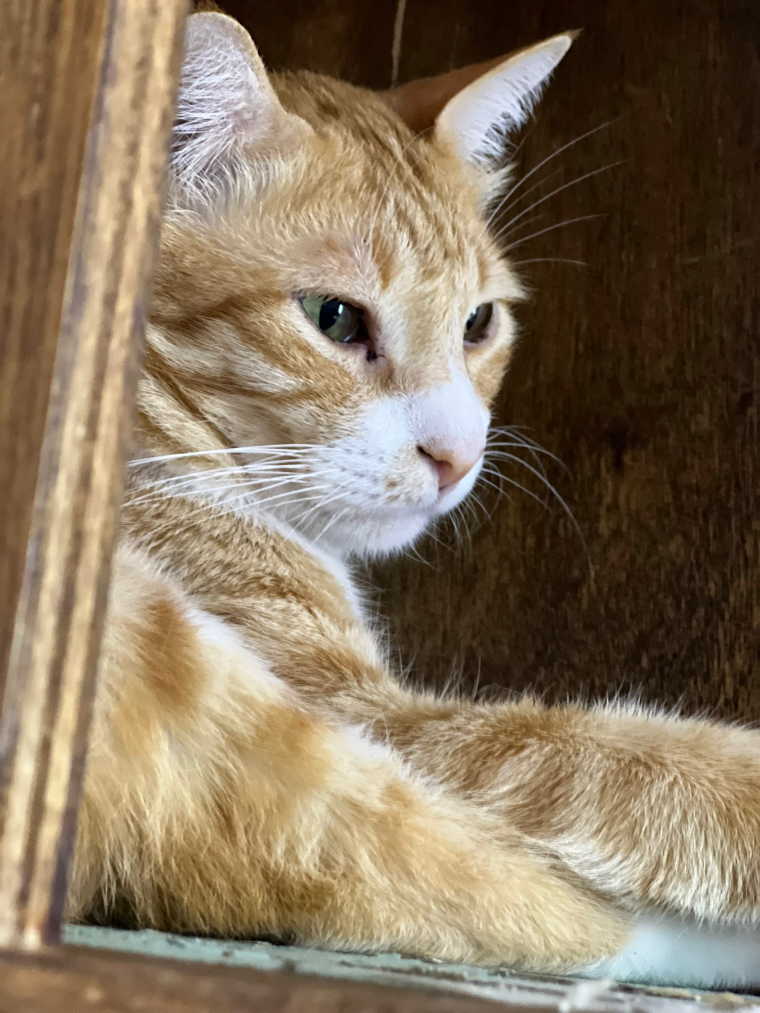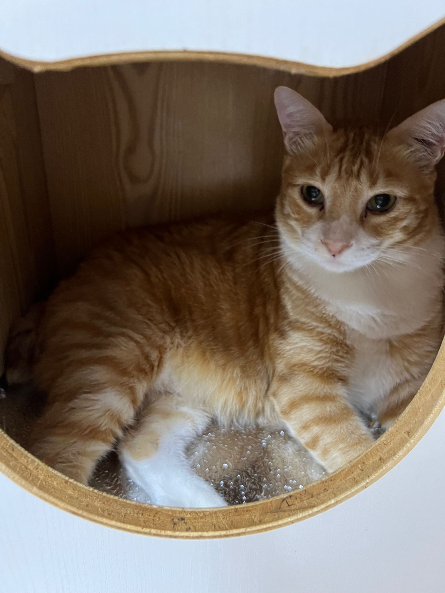 Follow his mummy Amber since young, scare of human, don’t allow touch. He don’t really attack me if I touch him but he will fly away. He is playful, play feather time n laser light he will come. I assume he grow up well in 猫房 – muscular and strong.