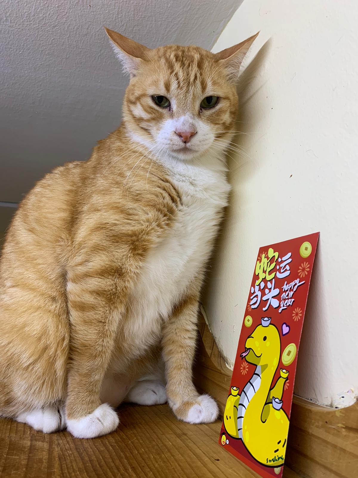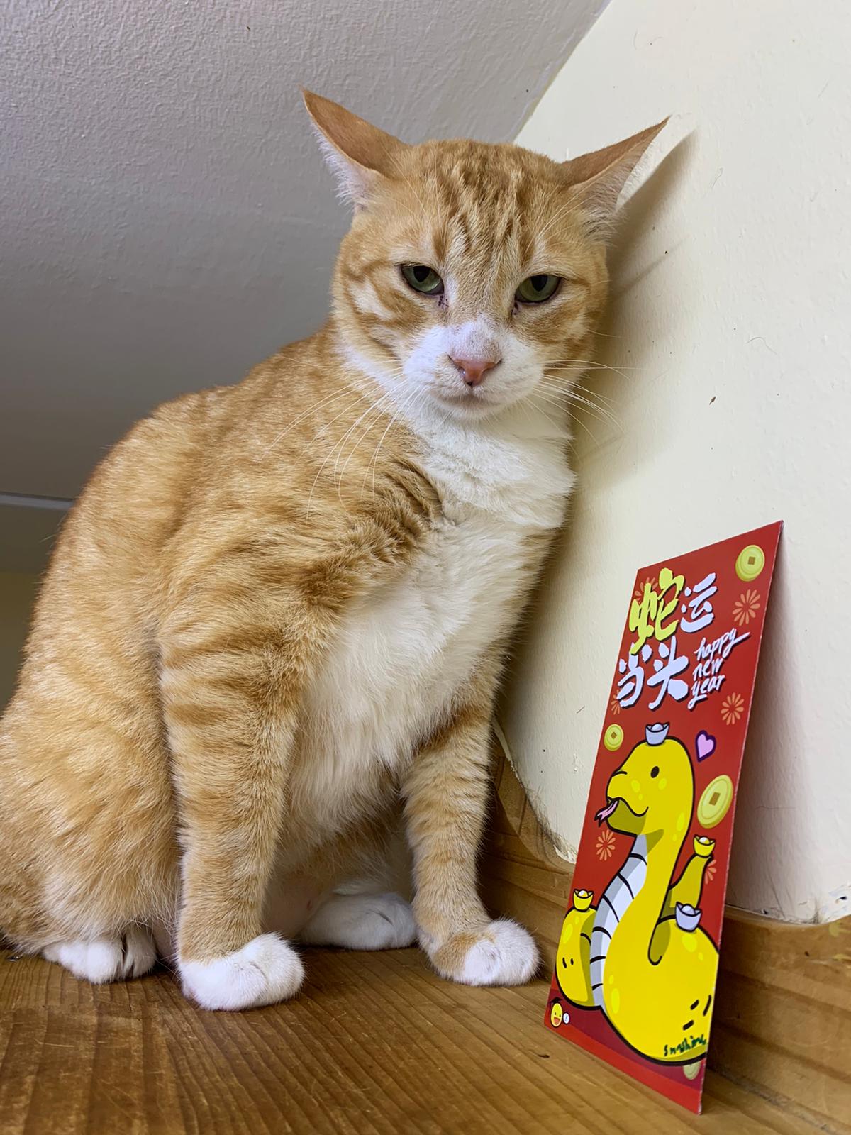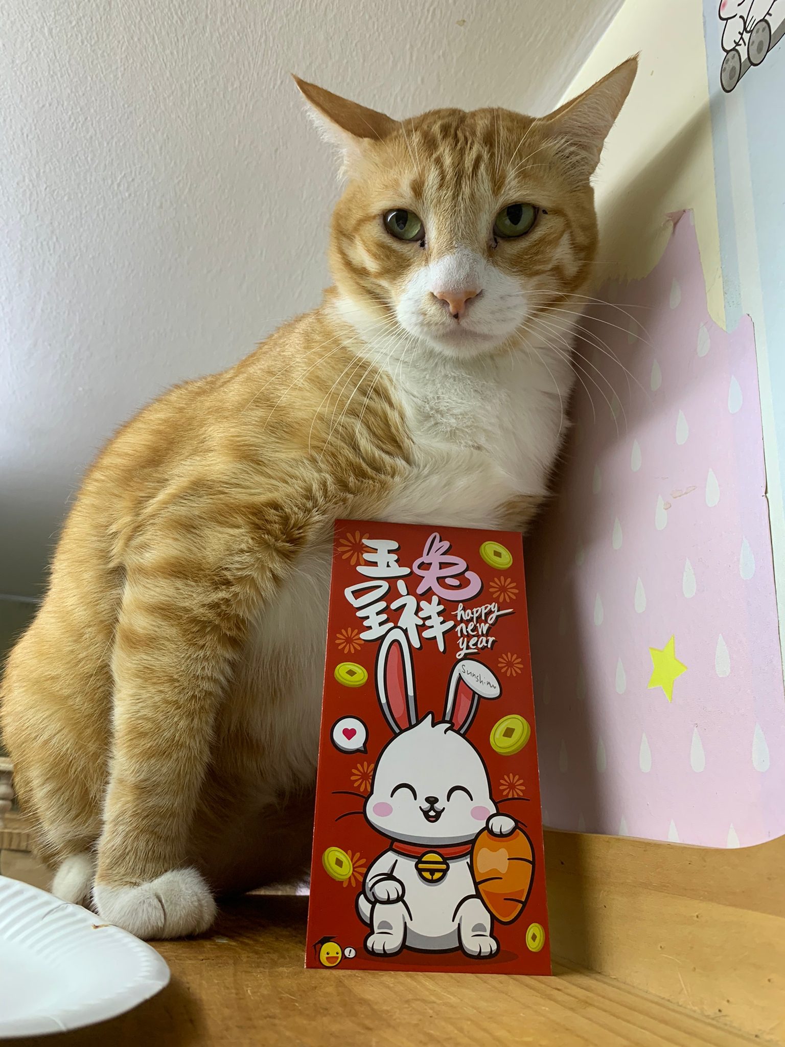 12pm+: given him a Ang bao. 压岁钱、told him stay healthy and cute baby. He so stiff, but didn’t attack me la. I told him take so many years Ang bao le