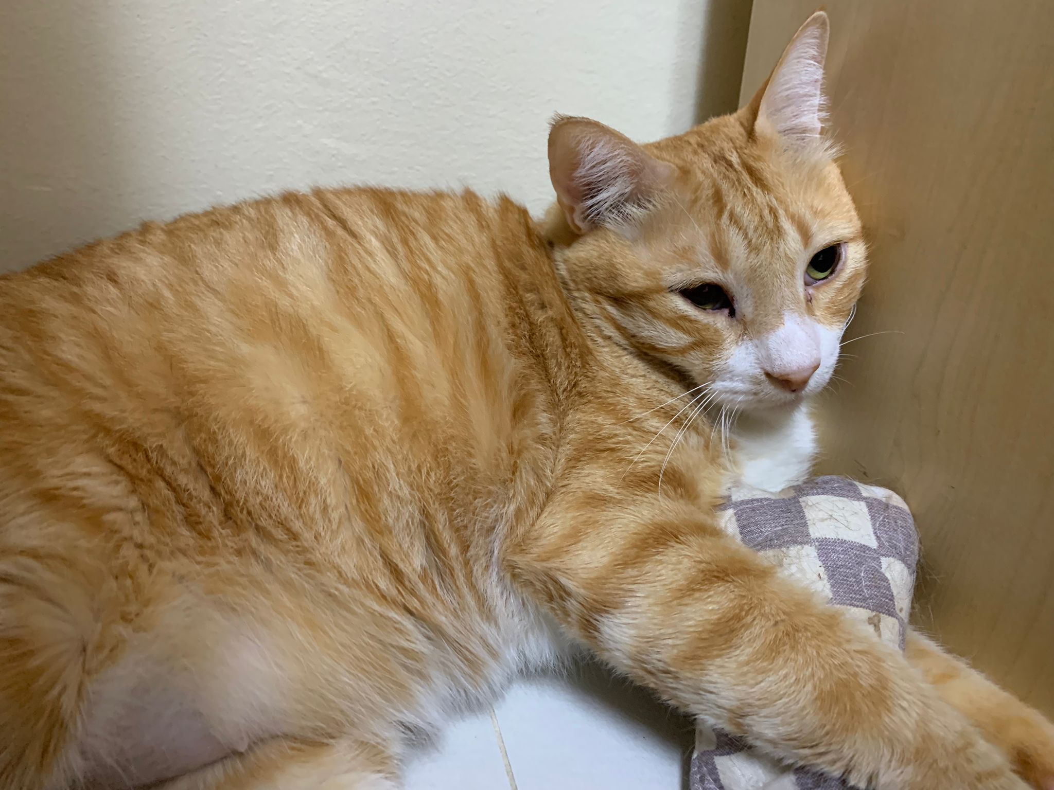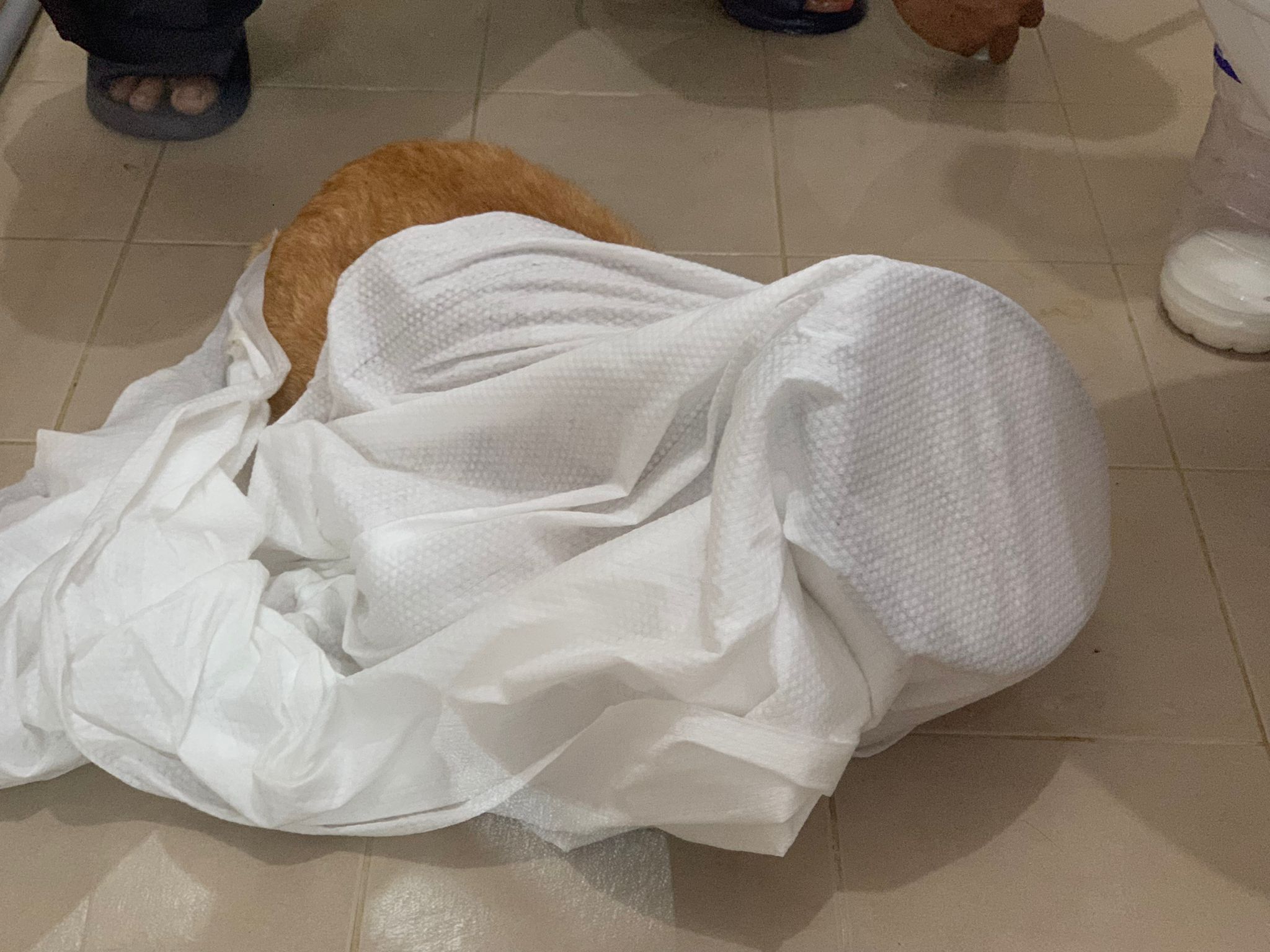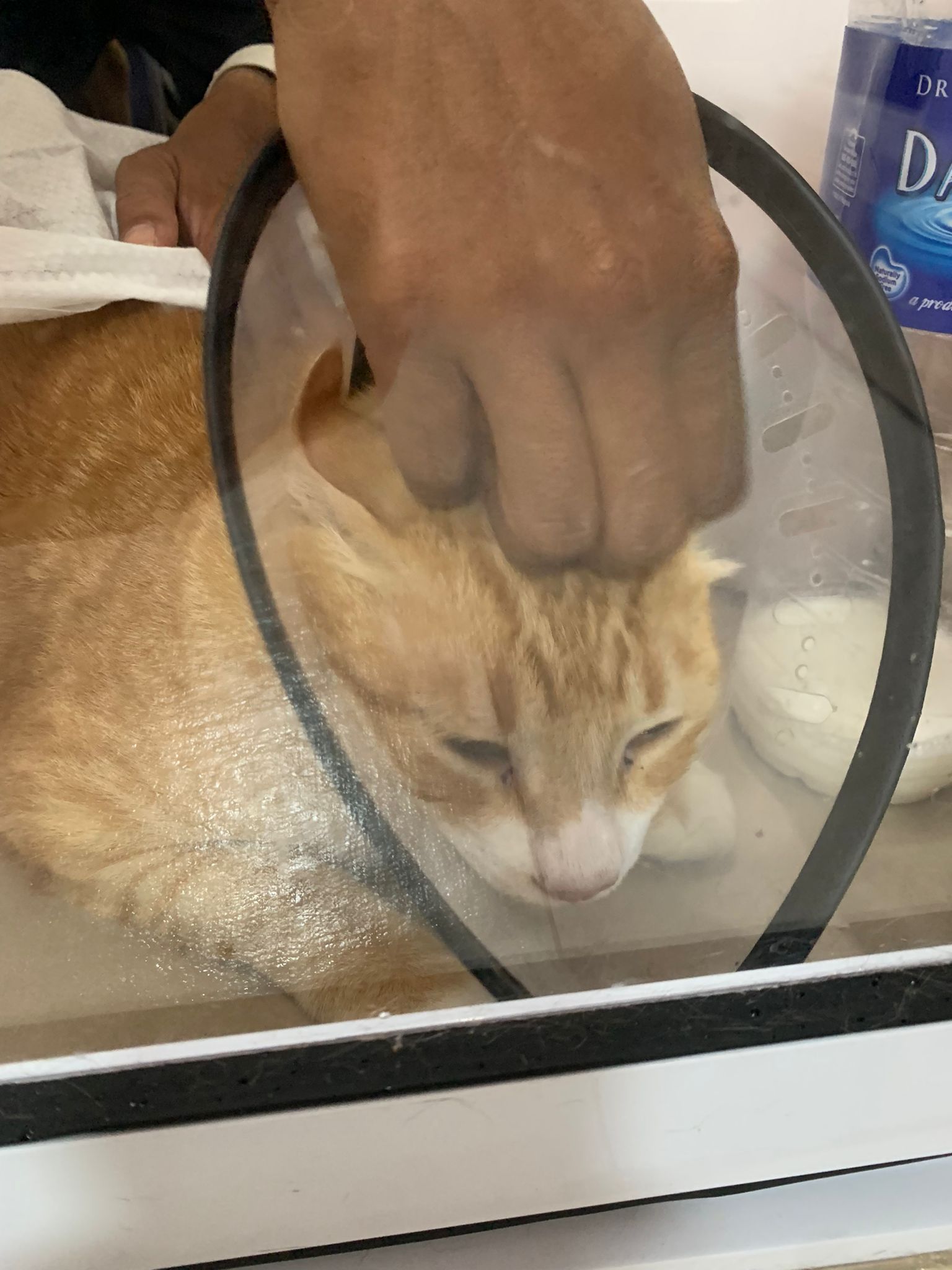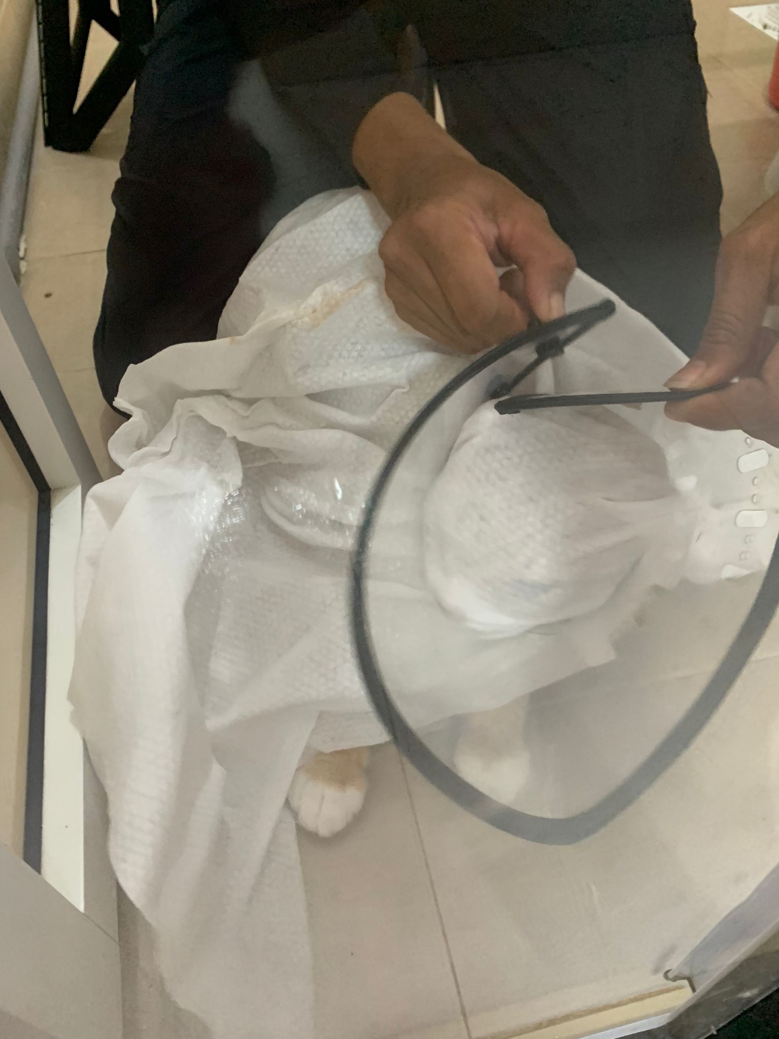 9pm: sigh the bandage on his hind leg still intact, I can’t remove at all. Day 02 it’s on.