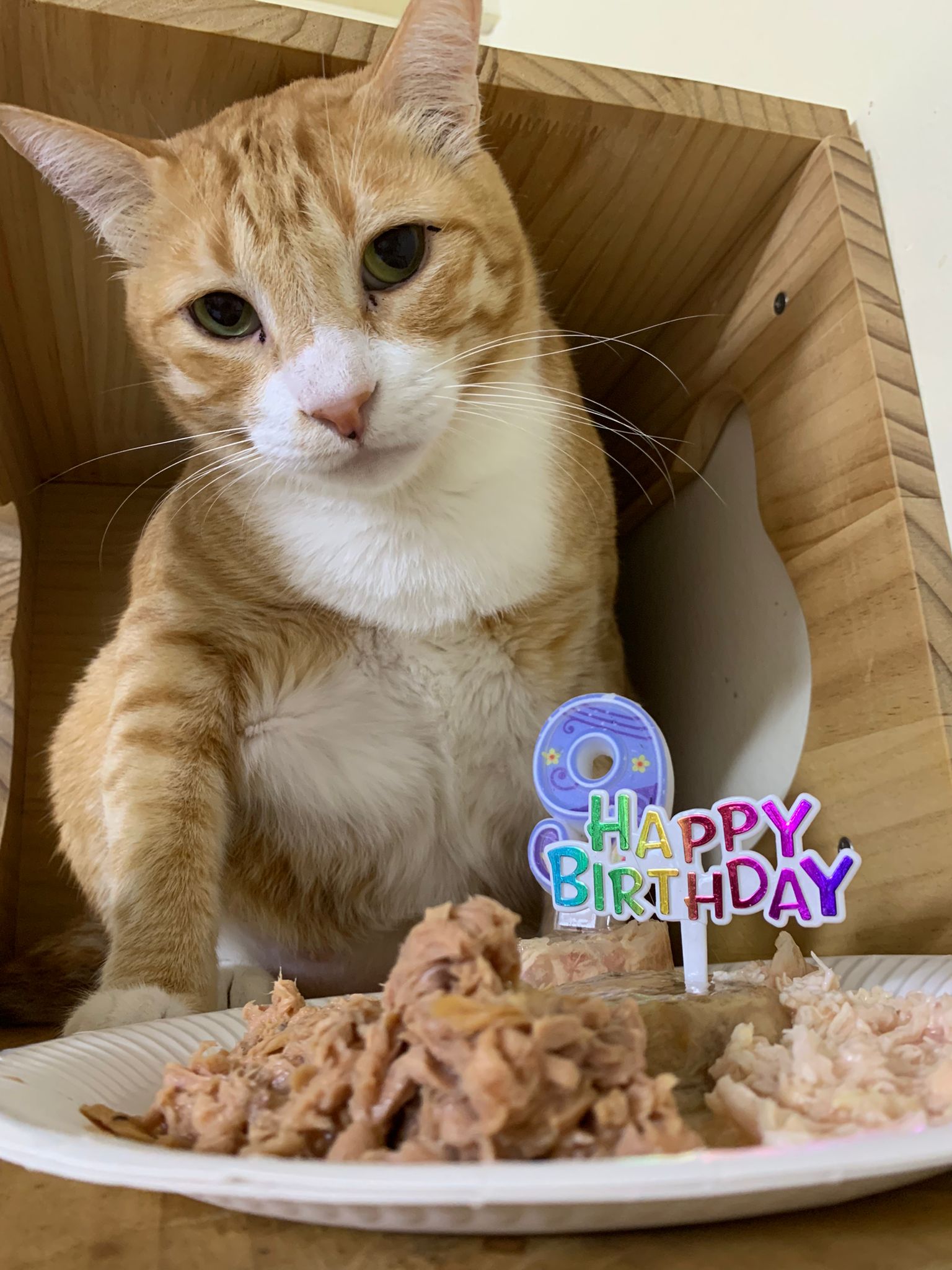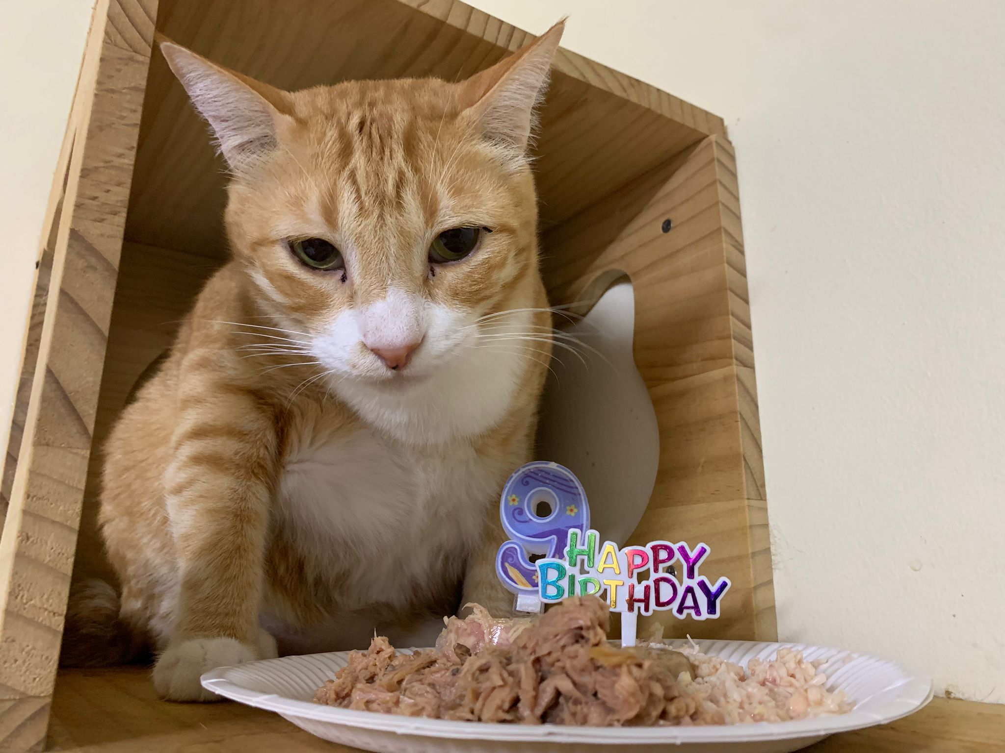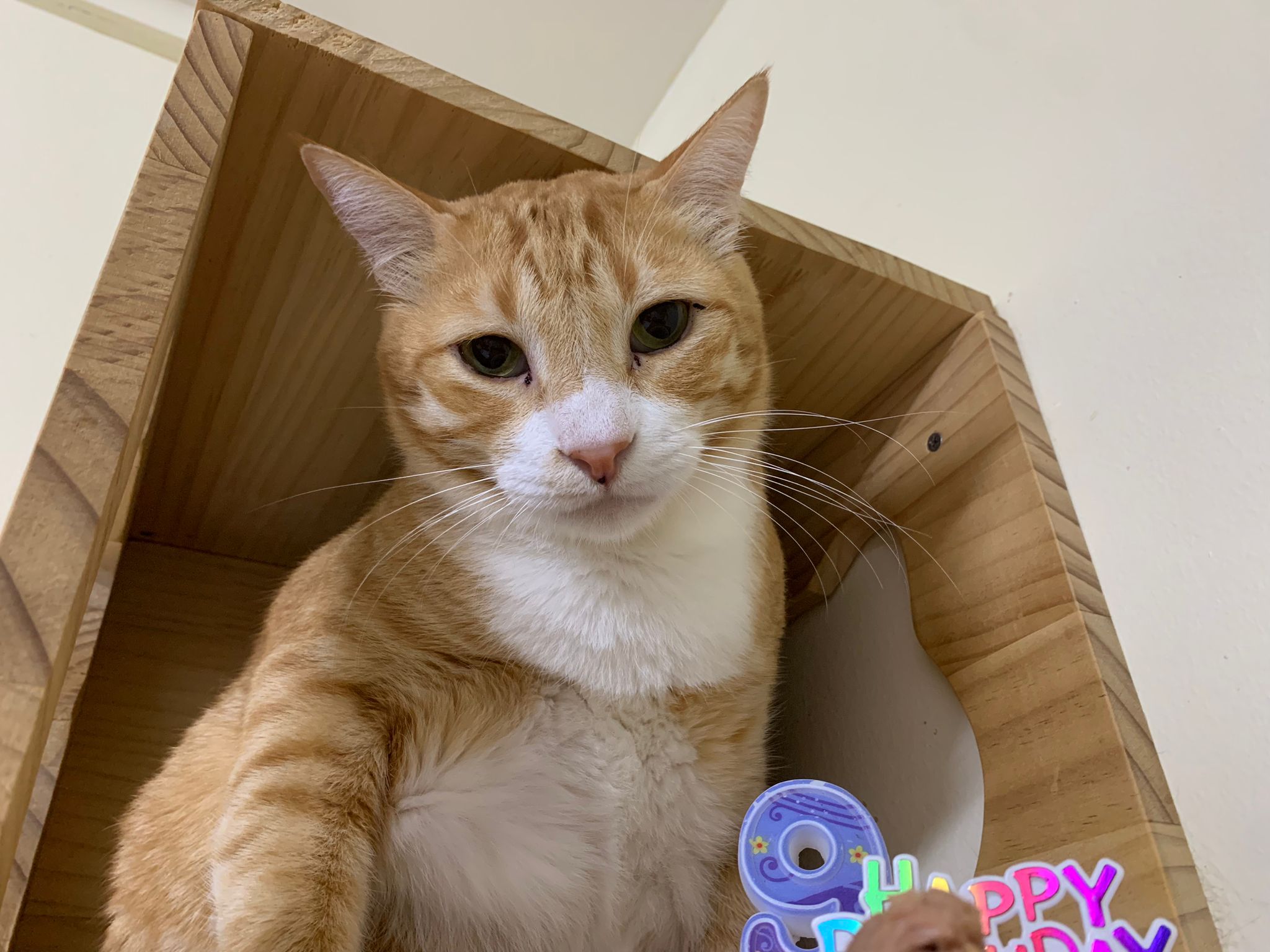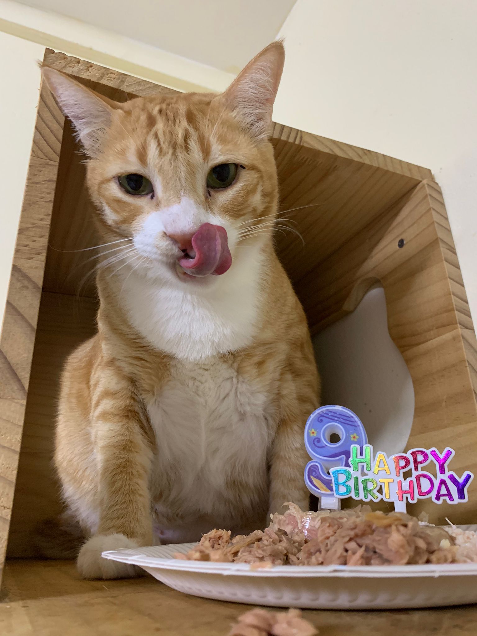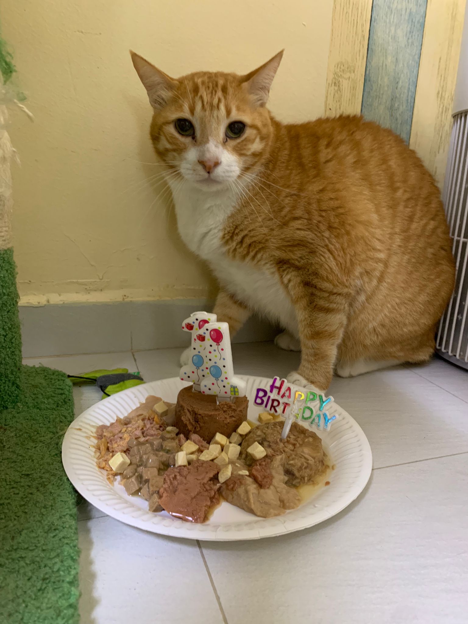 10am+: today celebrate Jack 9th bday in 猫房, he is at the bottom on floor, I manage to sayang his butt for once. Ha. Better than nothing. He didn’t fly away.
