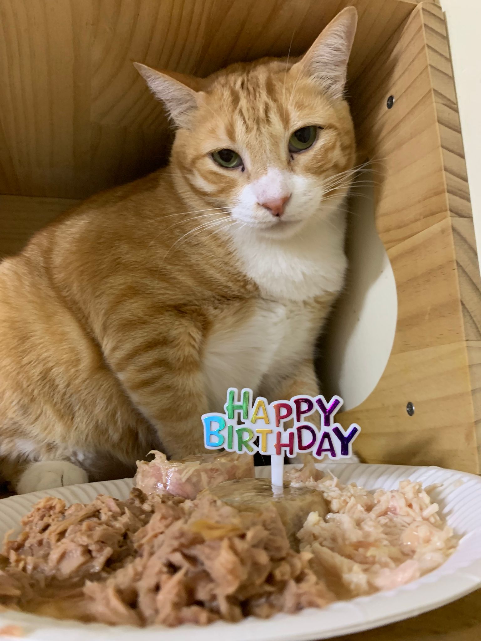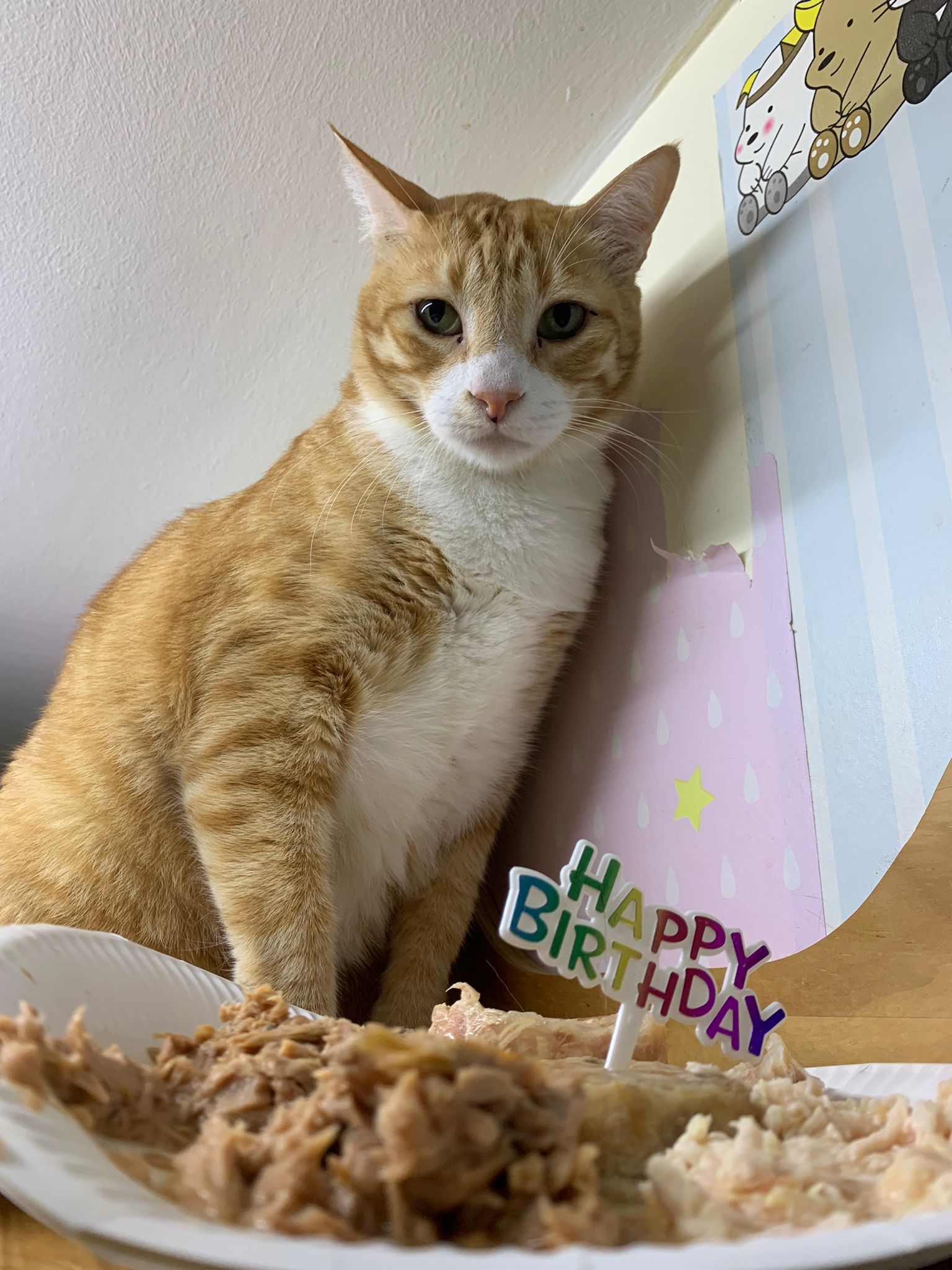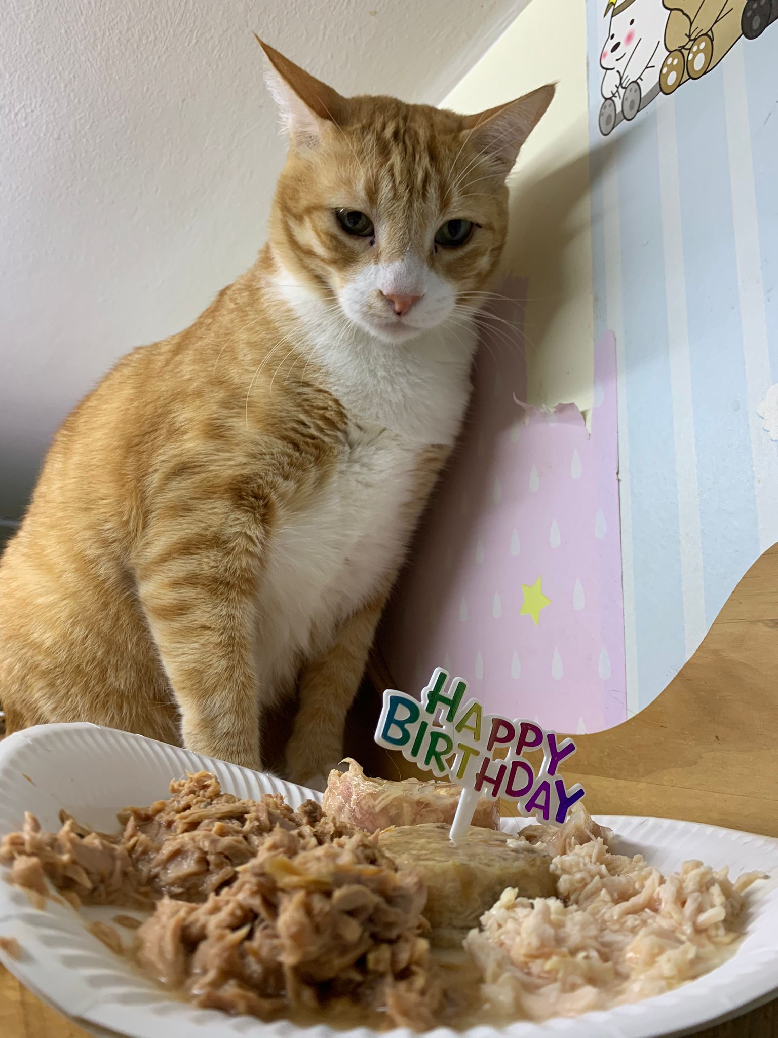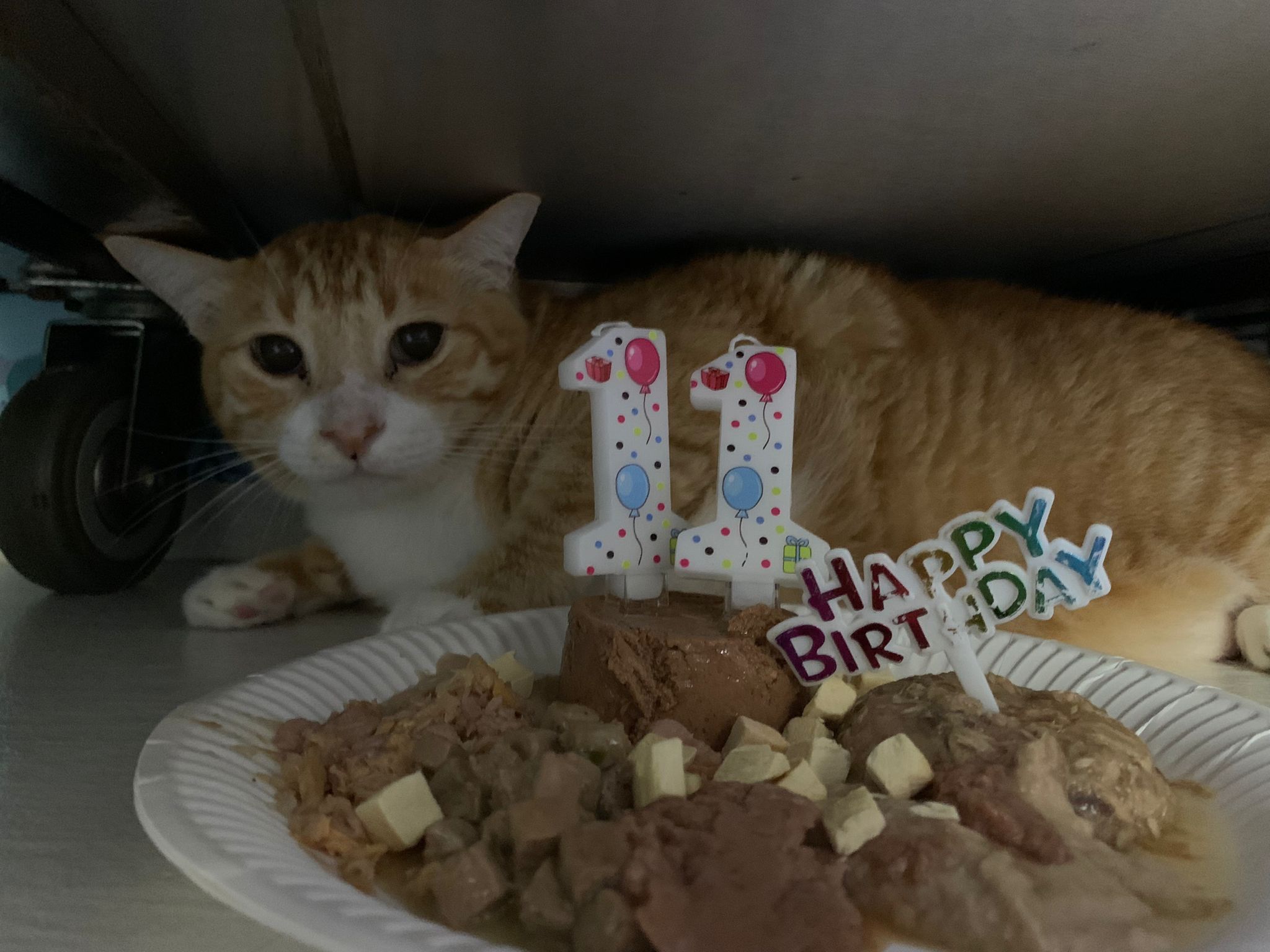 10am+: today celebrate Jack 9th bday in 猫房, he is at the bottom on floor, I manage to sayang his butt for once. Ha. Better than nothing. He didn’t fly away.
