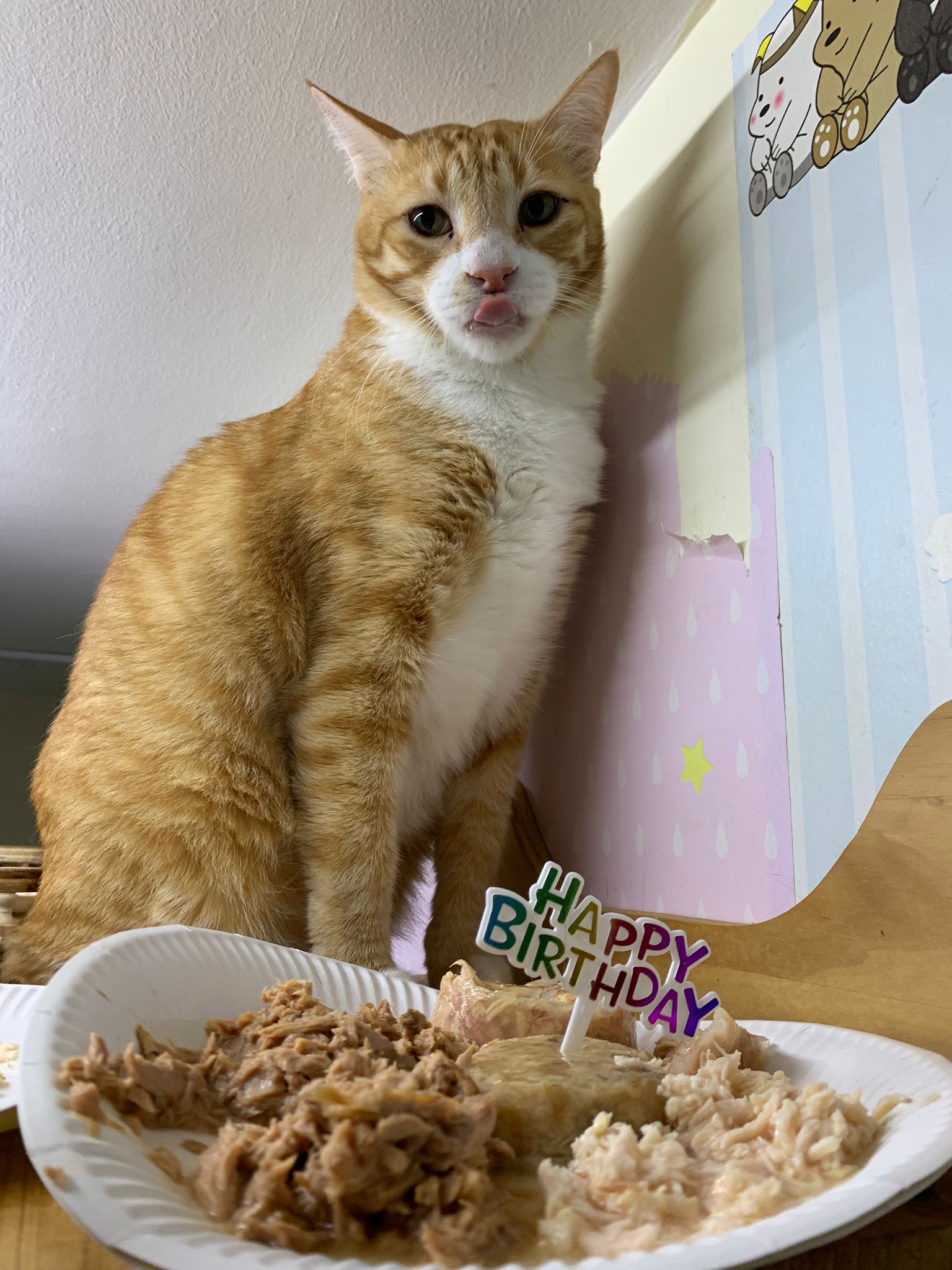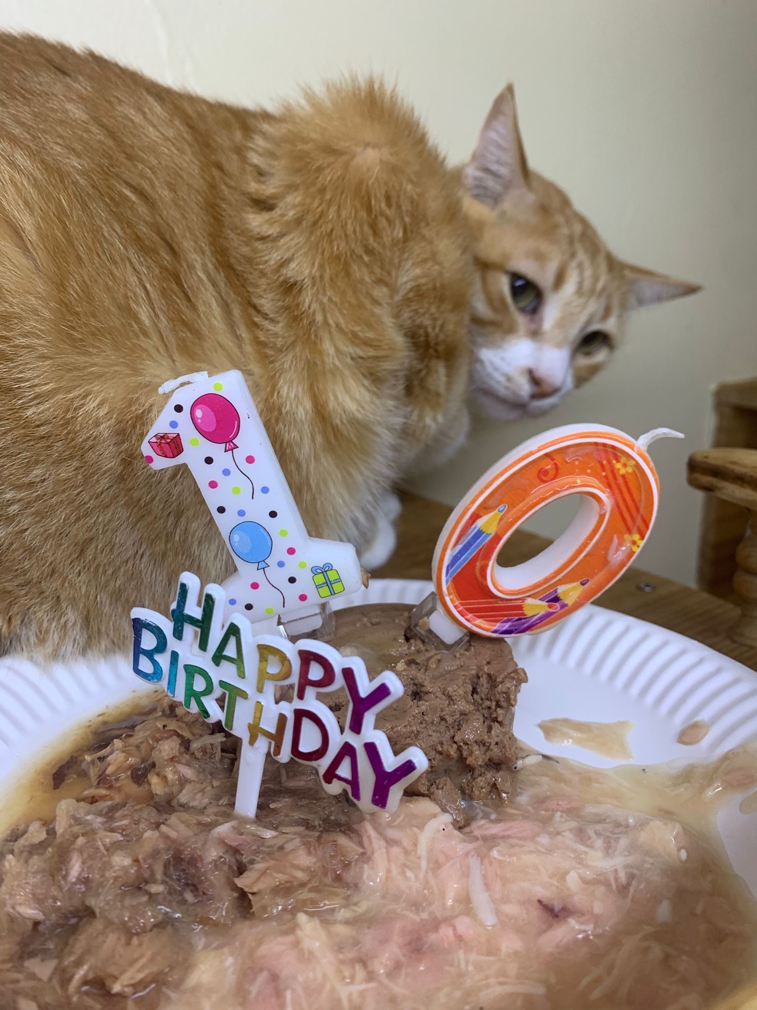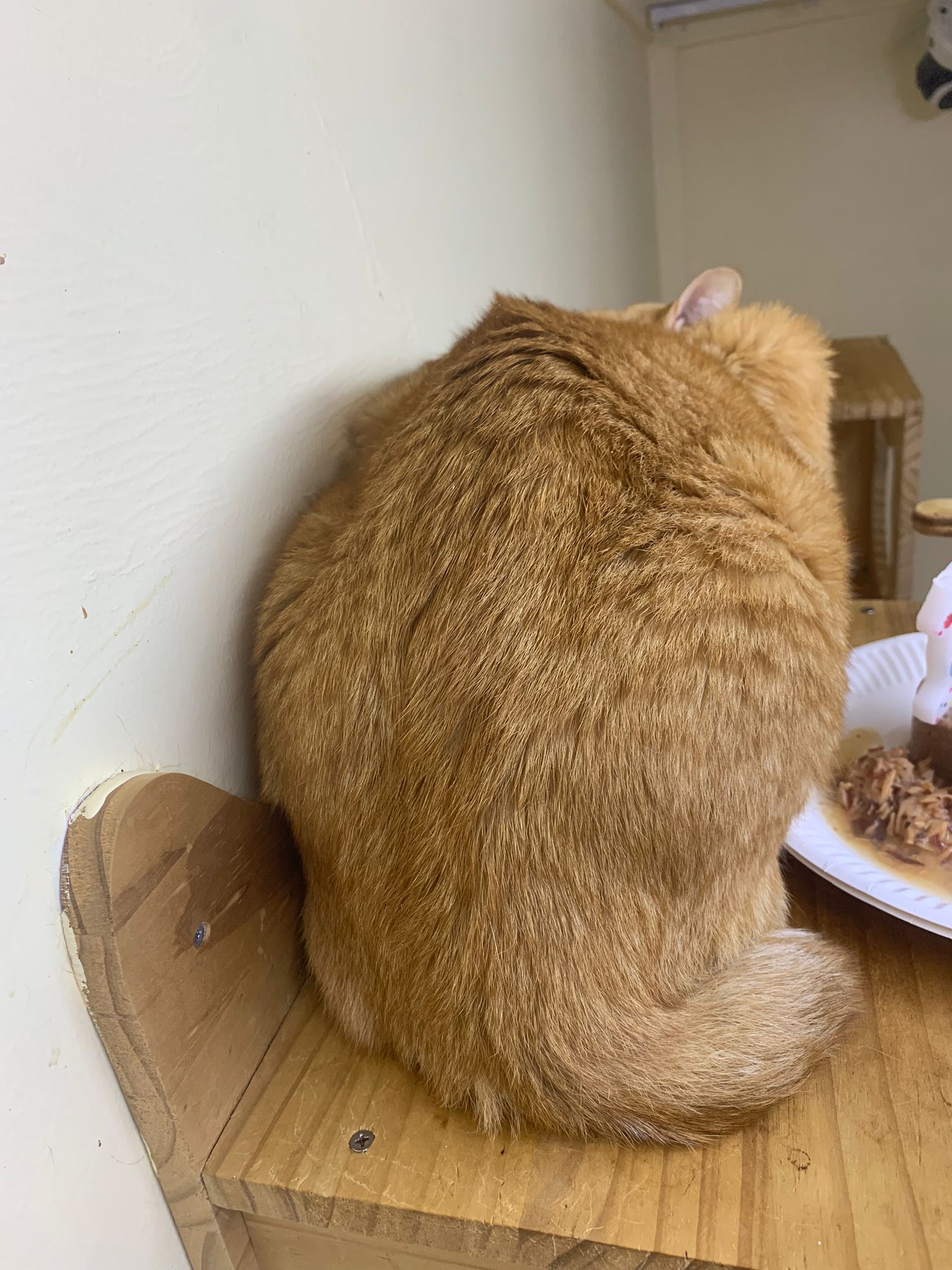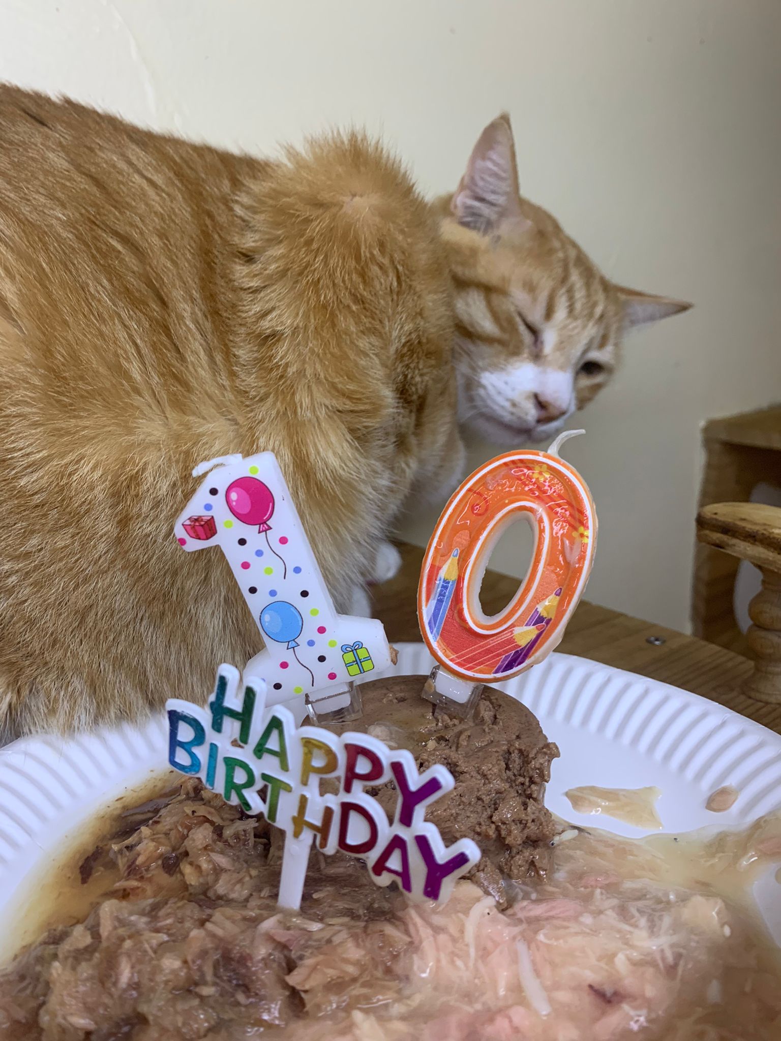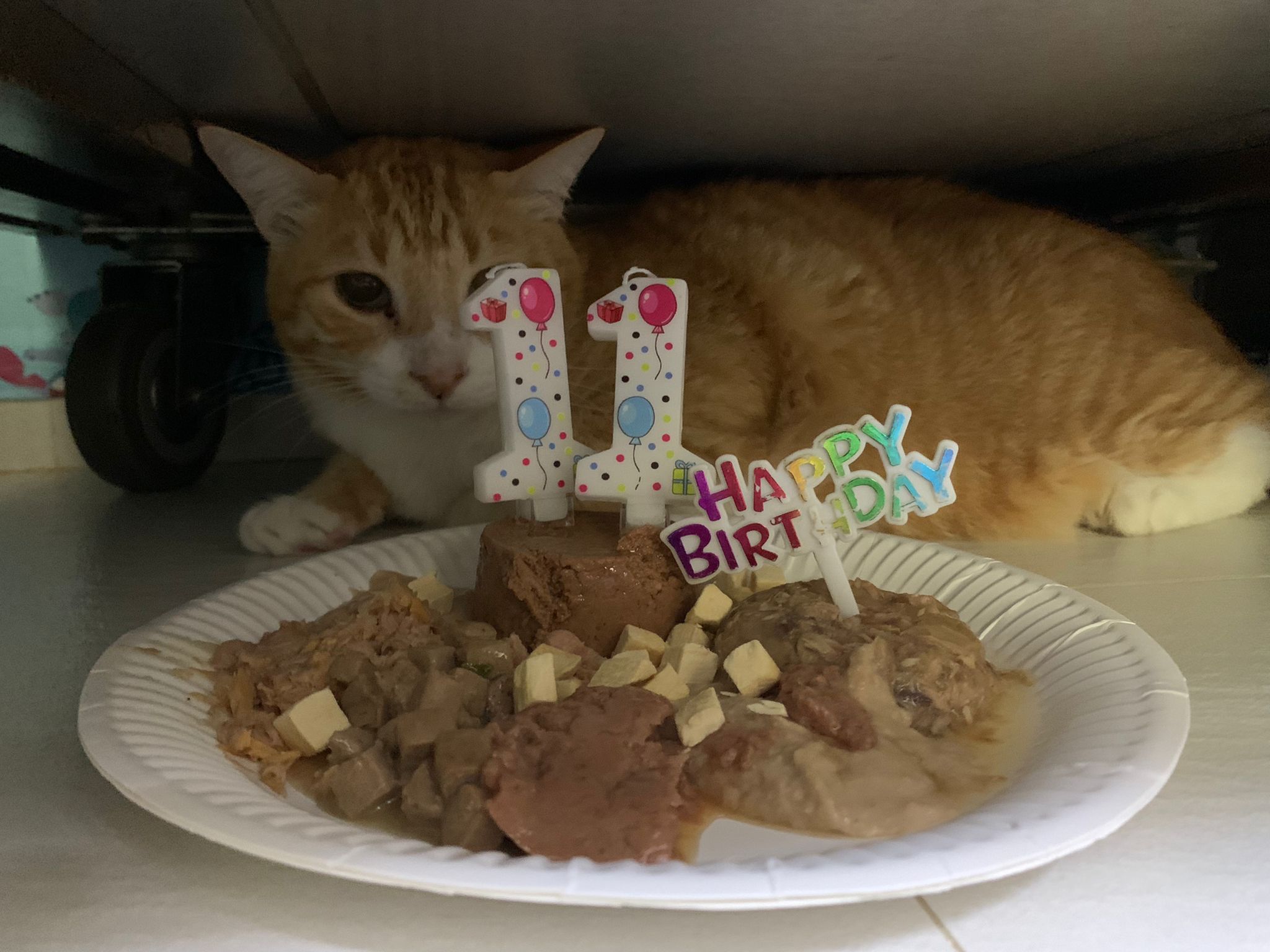 10am+: today celebrate Jack 9th bday in 猫房, he is at the bottom on floor, I manage to sayang his butt for once. Ha. Better than nothing. He didn’t fly away.