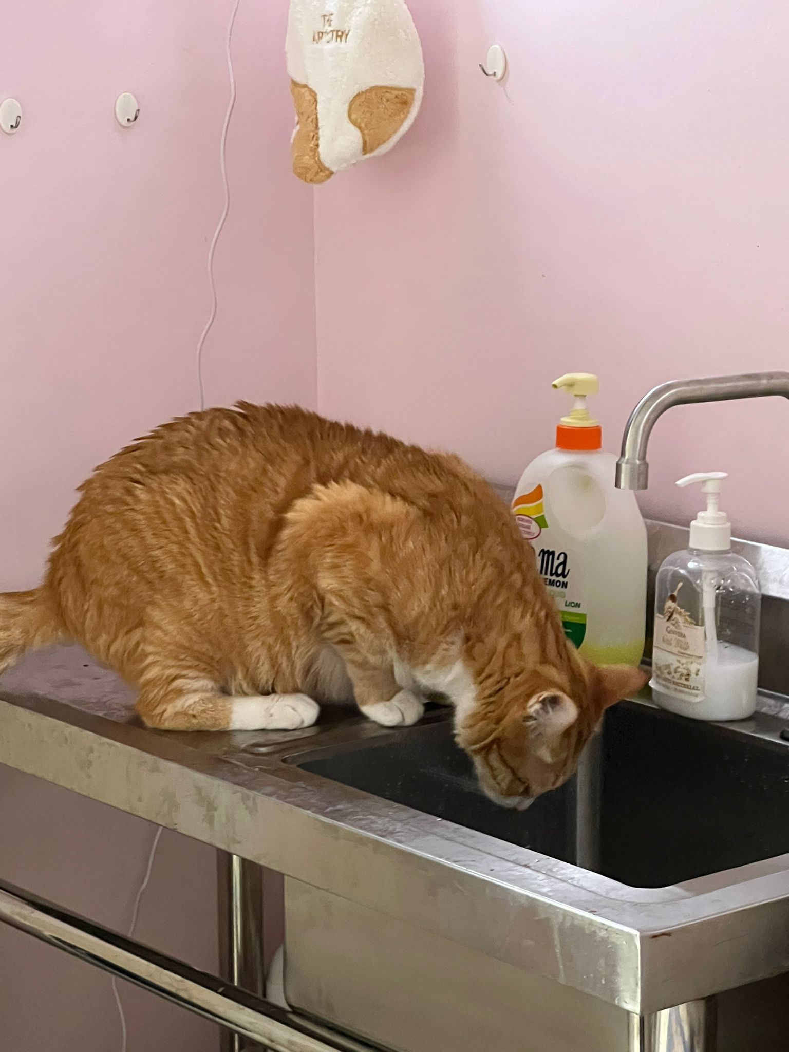 11.16am: still bathing cos just now started v late, talking about groomer cat who got kidney n heart issue.