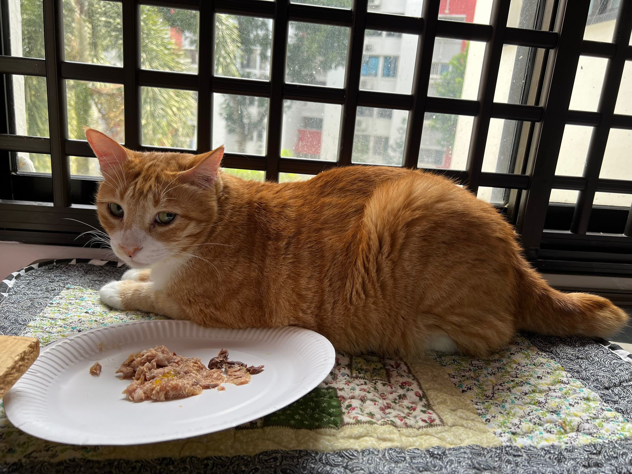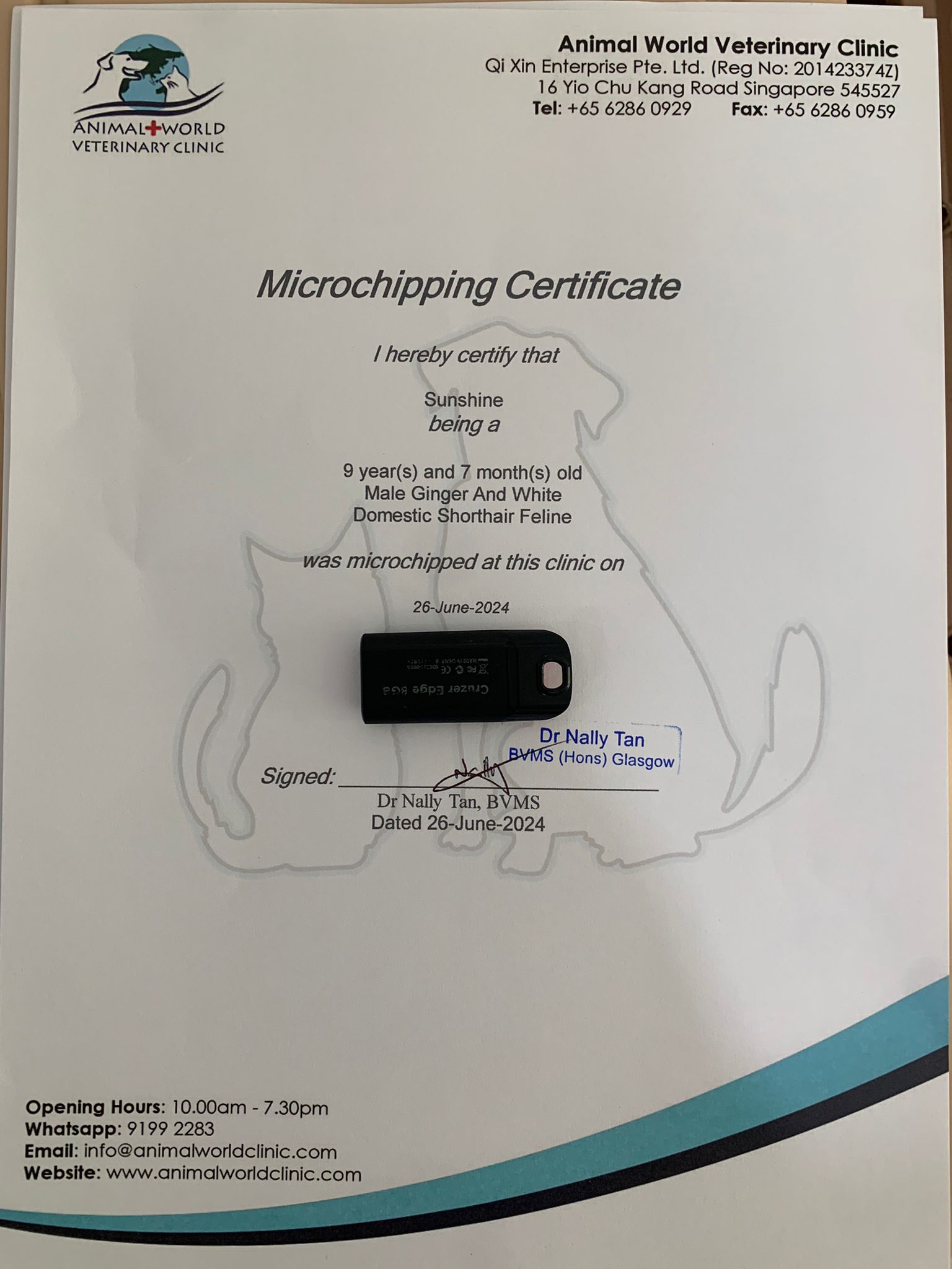 Morning: Sunshine base on 6.93kg 26.6.24 – I give for 7.5kg cat for him today. Keep running away, eventually manage to give without touching his fur, but got drops onto his scruff area la.