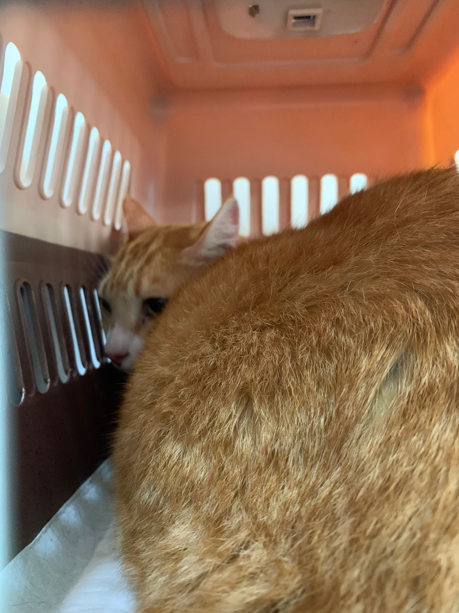 10am: catch him go retest fiv felv. Horribly difficult, doax, scold, slaps, smack, whack, bang – all can’t get him to go into carrier. I think he even ate the food w gabapentin still so difficult. He even shit all over the ratten shelf.