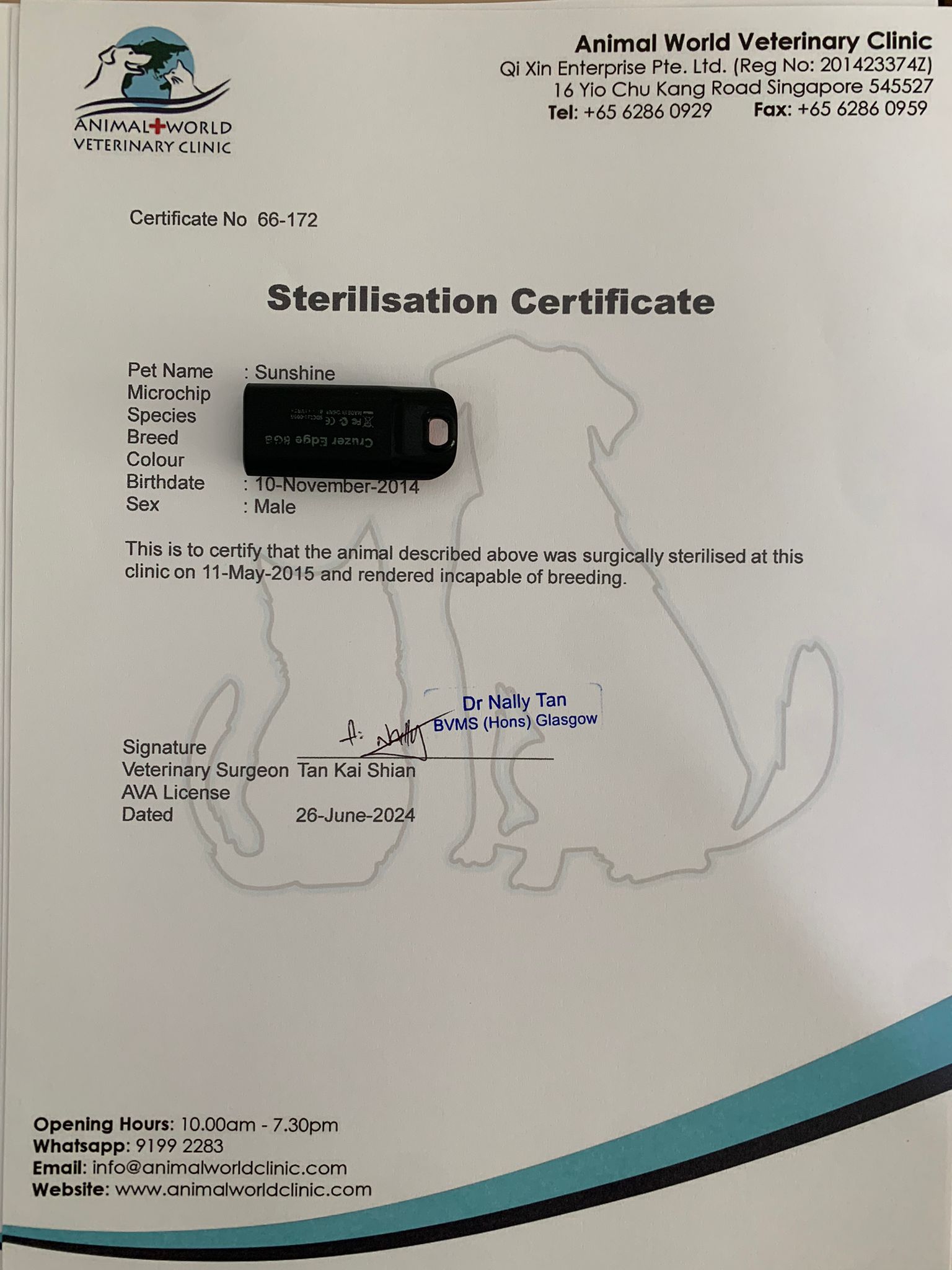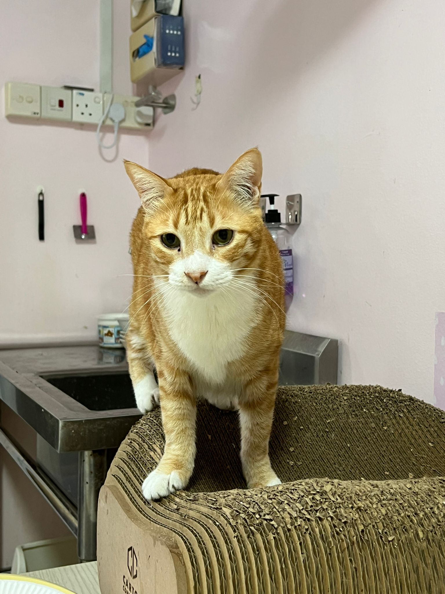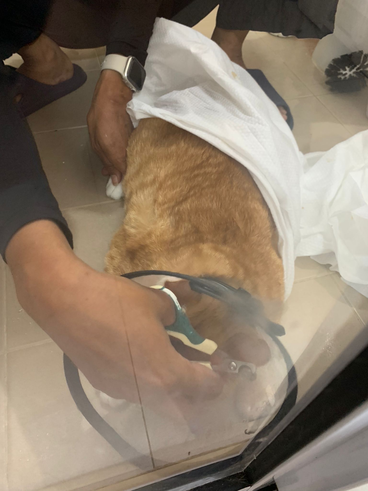 Got hiss at me and even want attack me. end up manage to get him to vet. I told Jennifer if need sedate amber, sunshine n renny, go ahead – I know no choice. Think the very calm male nurse and Jennifer professional! Came out without any issue. Nail cutting not possible though.