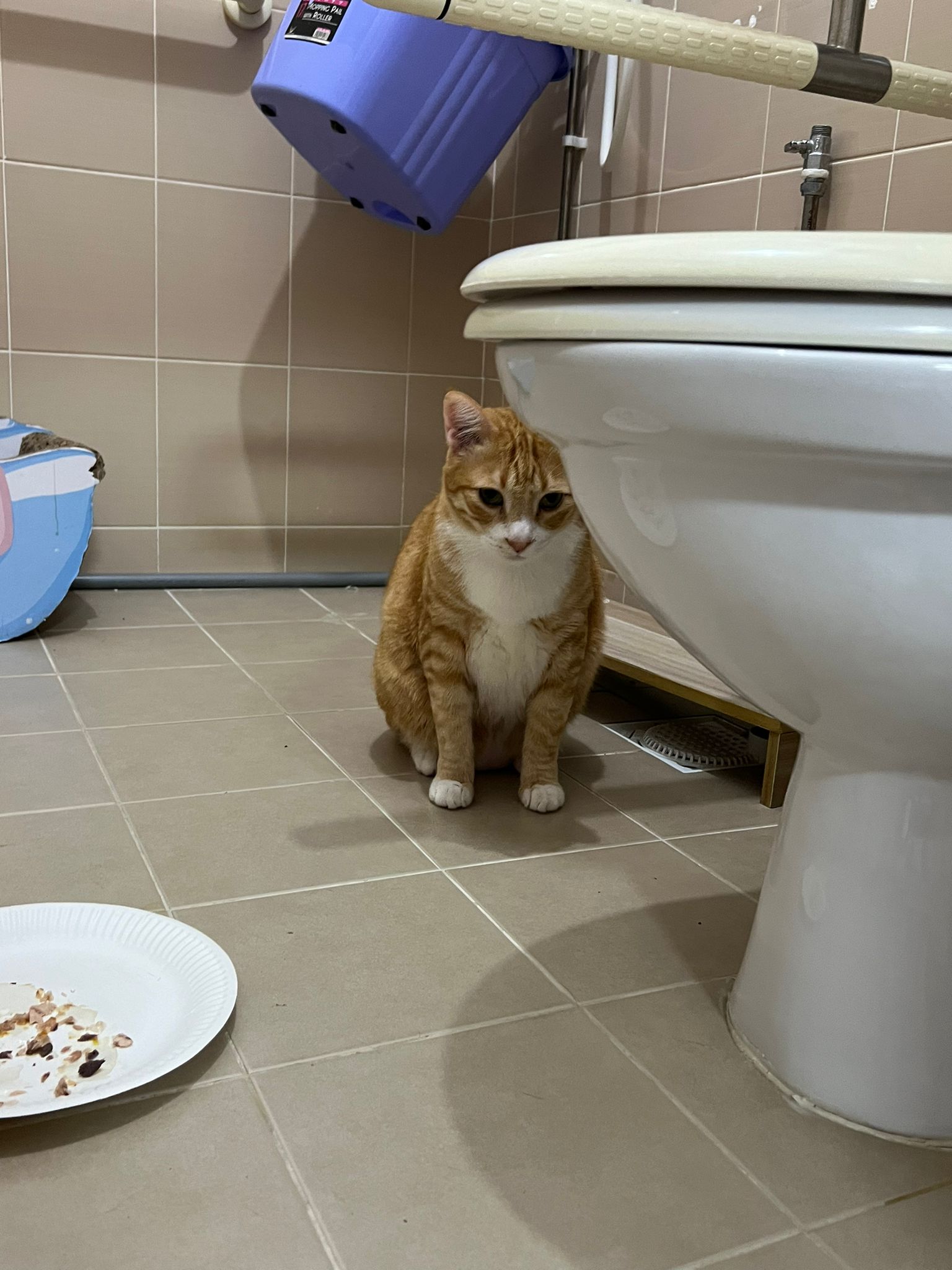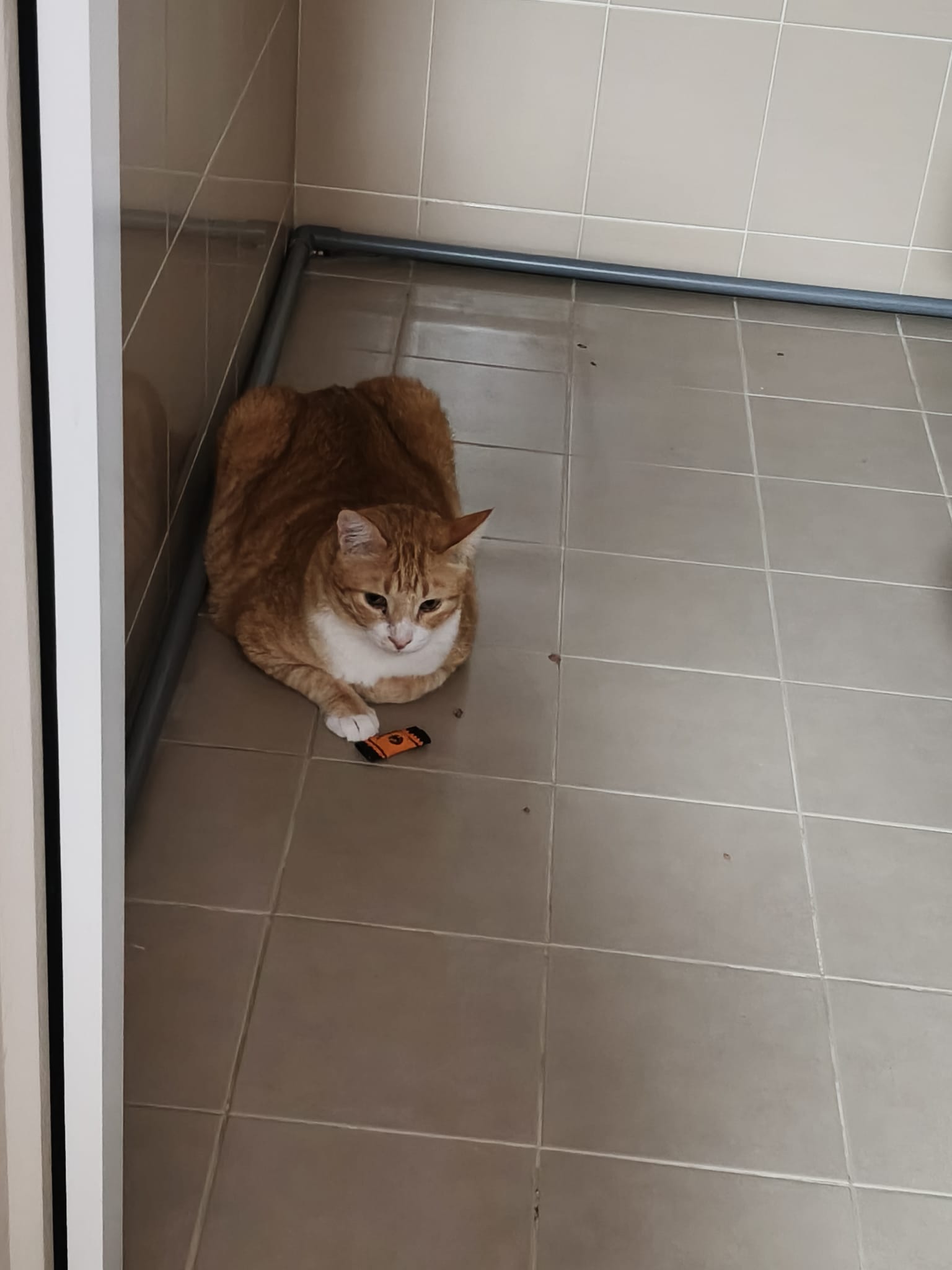 Sunshine capture on bridge. He scare till pee all over. But somehow like amber. Quite ok la. Will flip some ard the toilet