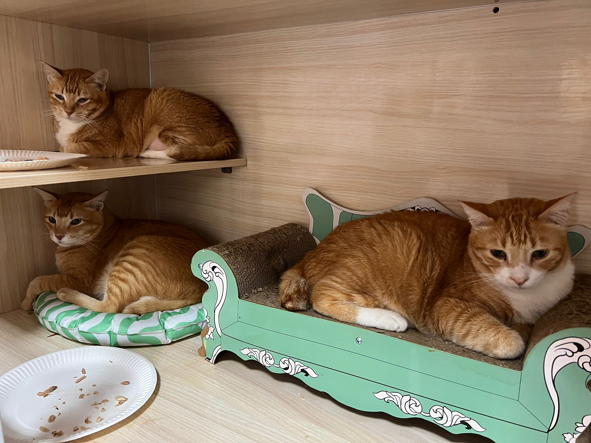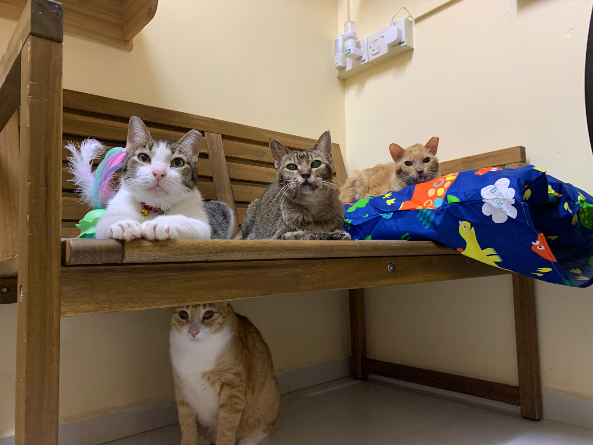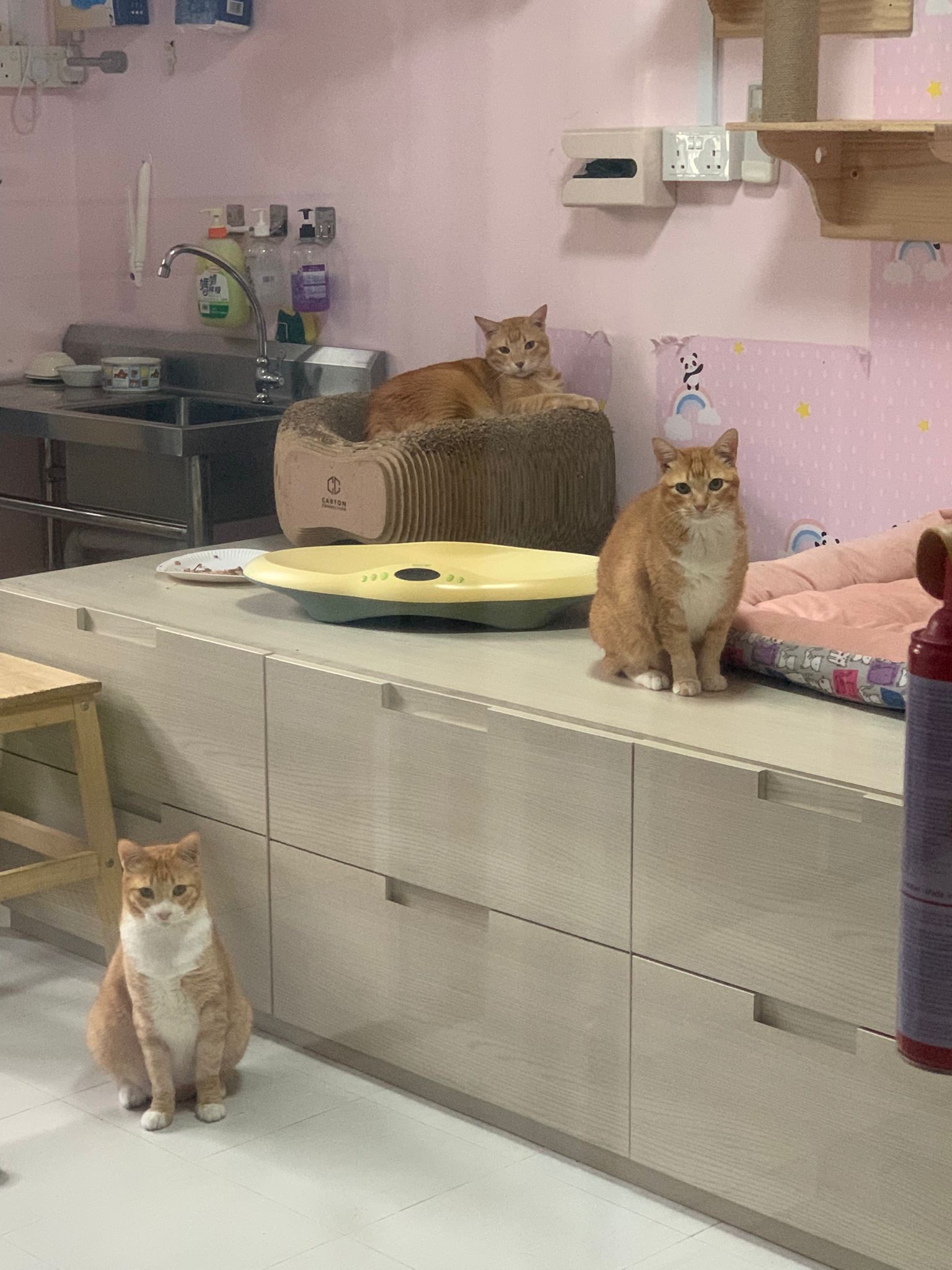 All 猫房 cats including amber. Exclude sunshine and renny, cos sunshine will attack