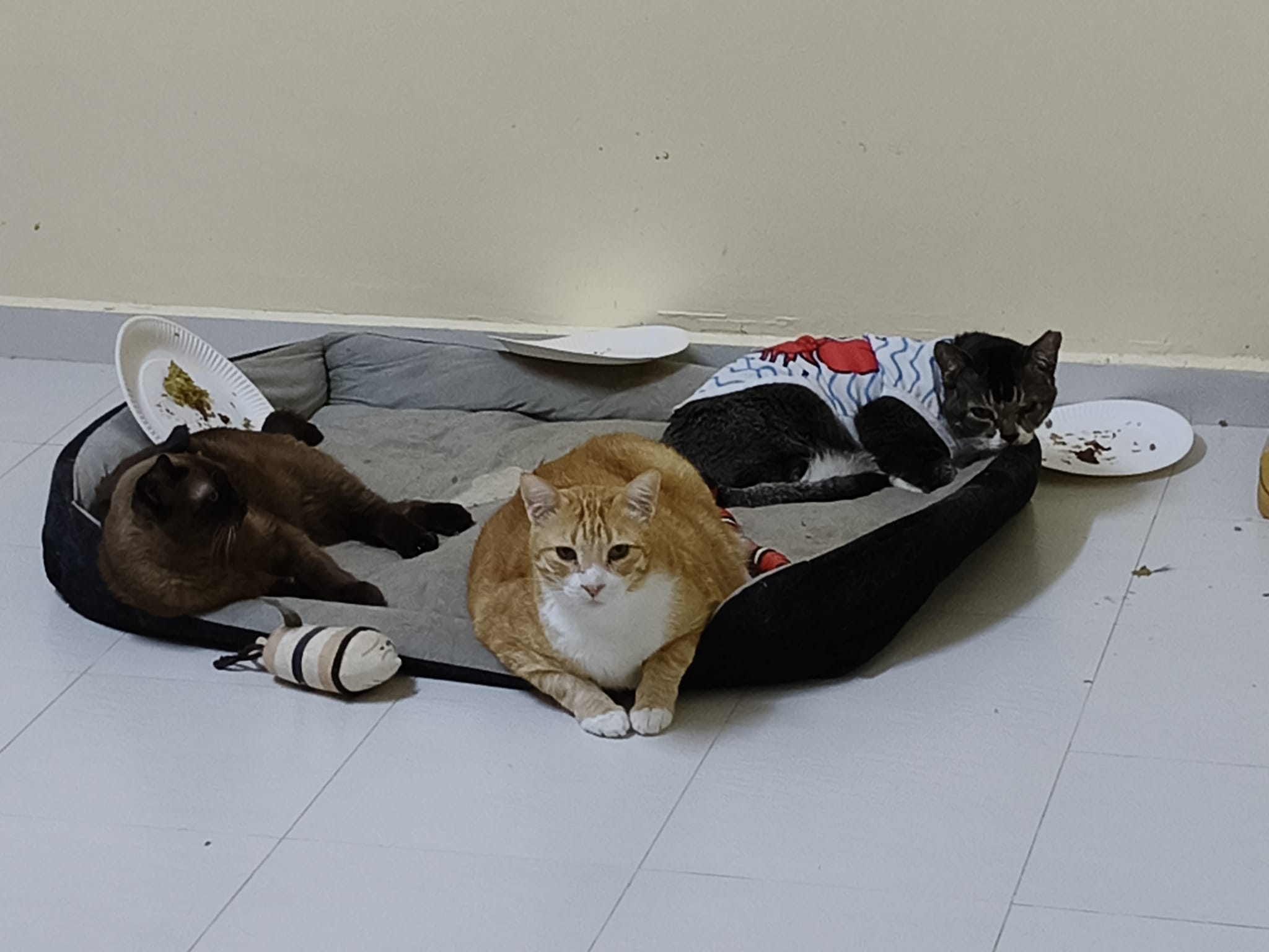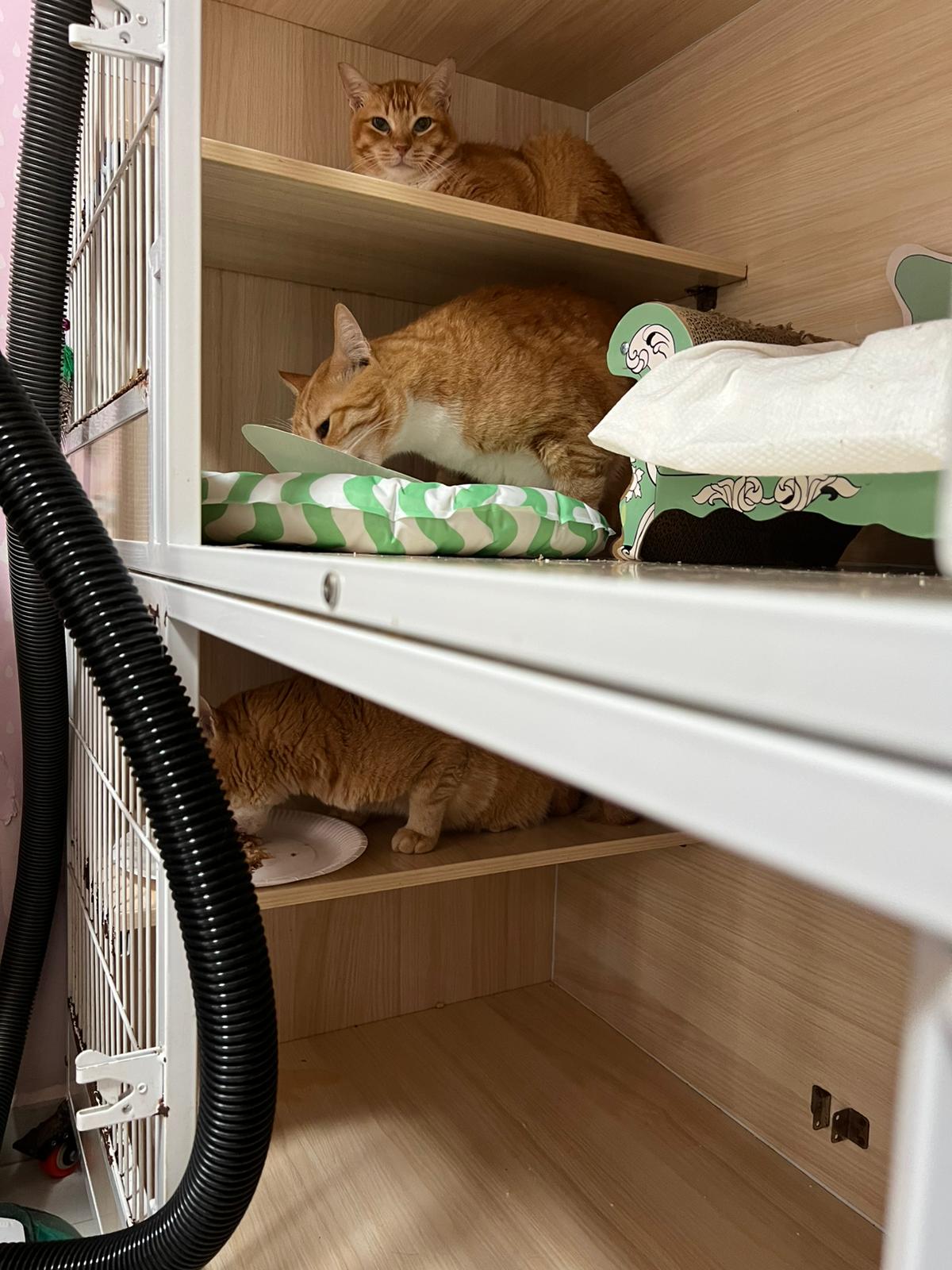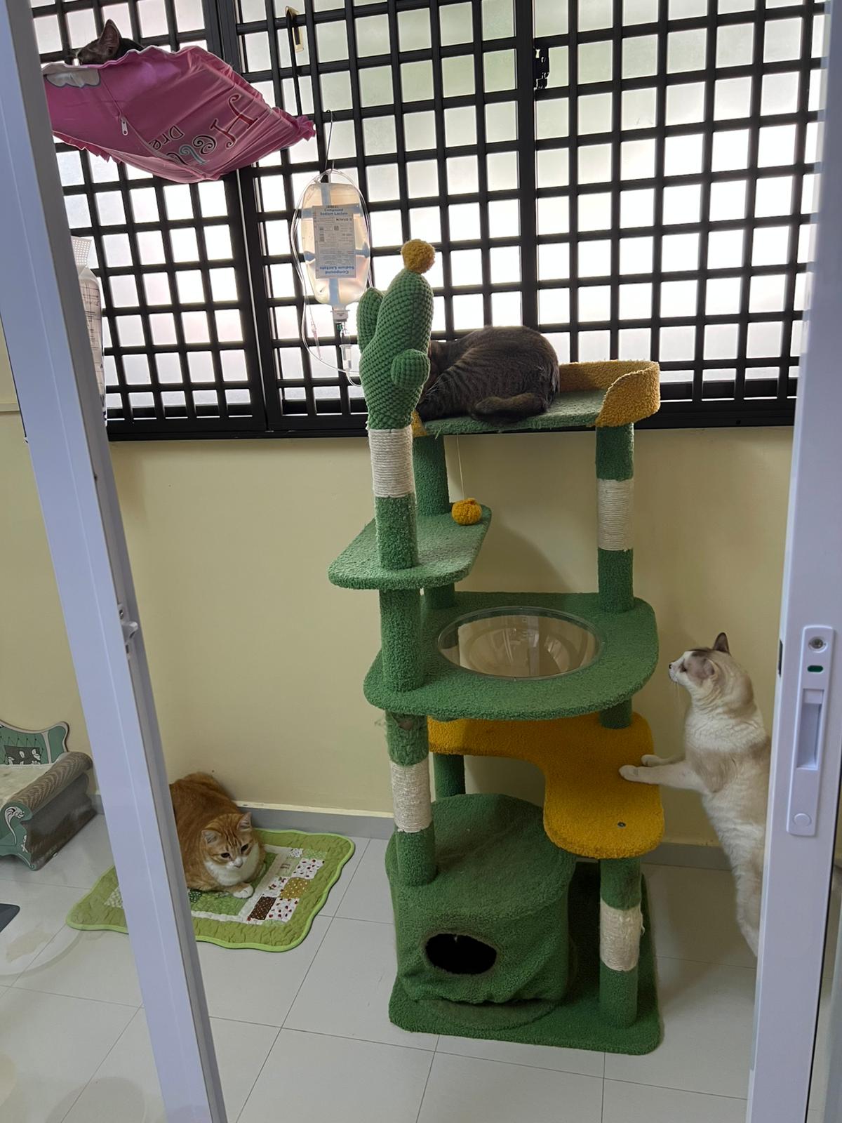 11am+: I go back 猫房 try to tell everyone n sayang everyone that ah mao love them and pamper them but I can’t come so frequent le, even come have to do medi n leave, they know I’m worry and love them can le. Sunshine is the only one I didn’t get to touch. He hide in the corner of the cactus tree, told him good Monday just stay there cos I wanna vacant the other tv room.