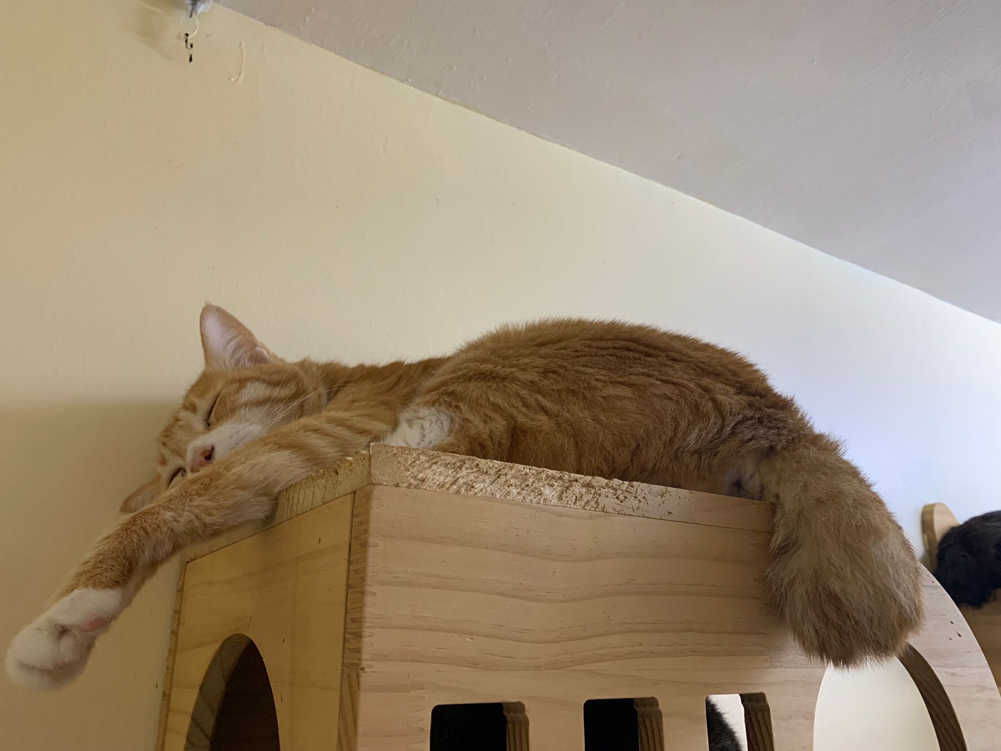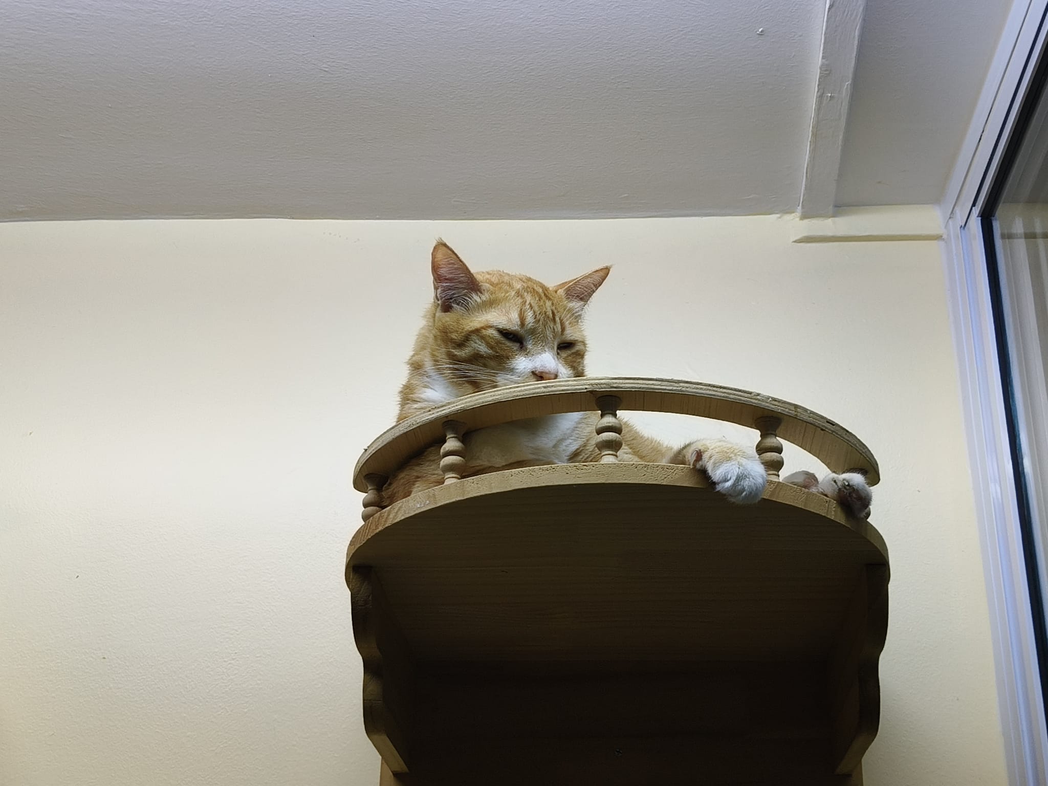11.20am: sleeping soundly on top of the deck above nala and he didn’t wake up. Keke. Got one point he awake n is sayang a little of his leg n his face still blur blur. 11.31am: sleeping again.