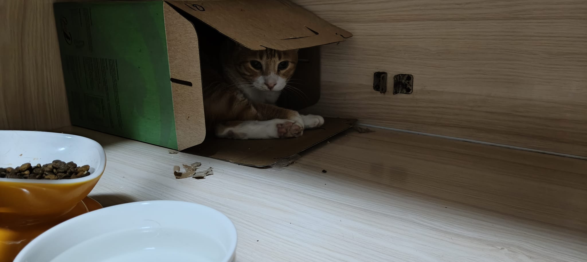 3.40pm: still in bin, I got to scare him out n he go the top. Serve him teabreak