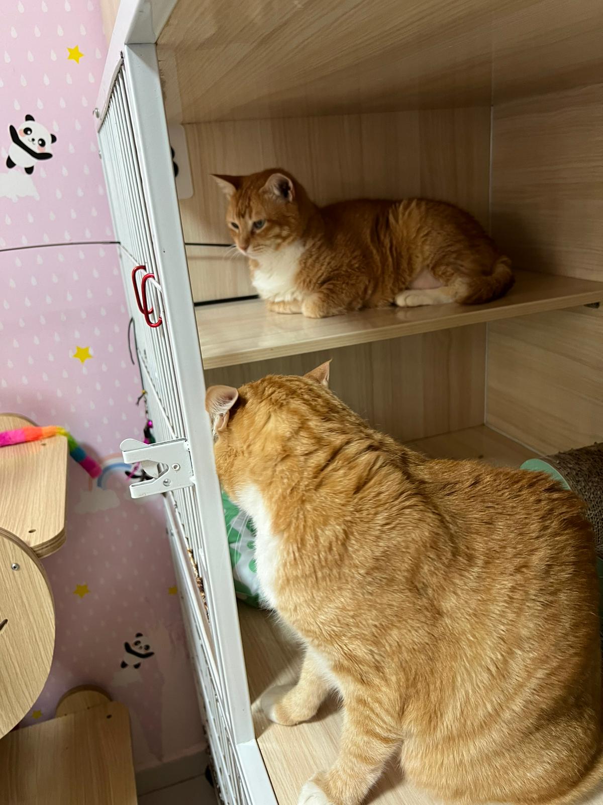 Morning; this period Duno why I’m not that happy to see the 2 of them keep staying in cage,,, why? I hope they r well. Tmr will skip sayang them w the wane cos I don’t like the way Amber hiss, like later heart attack. Sunshine is calm. Though he growl