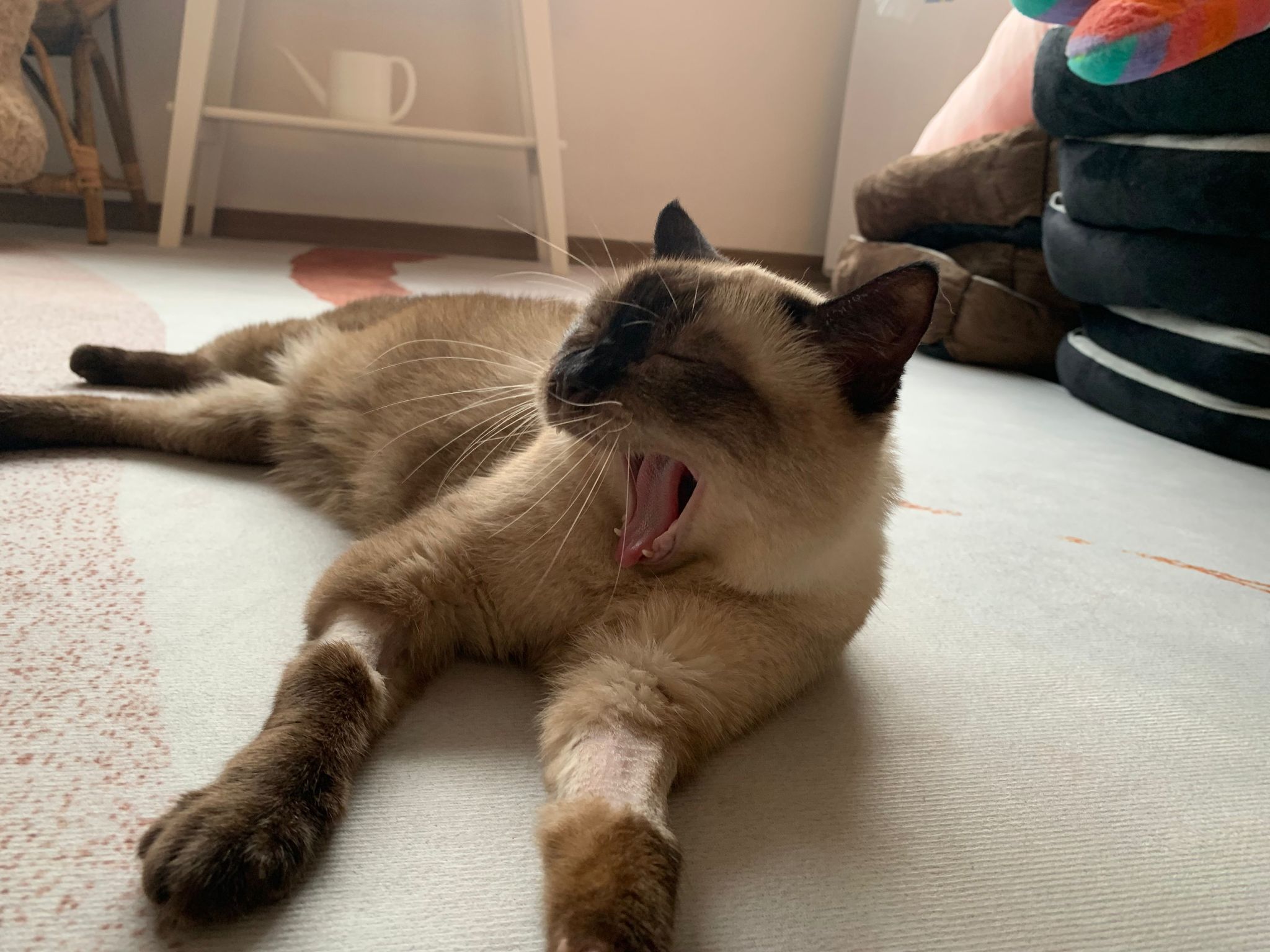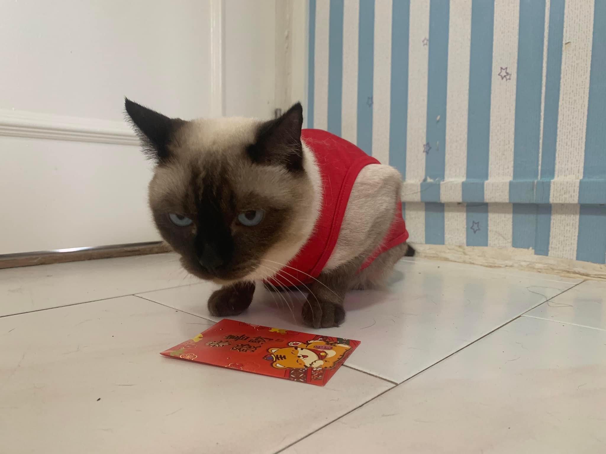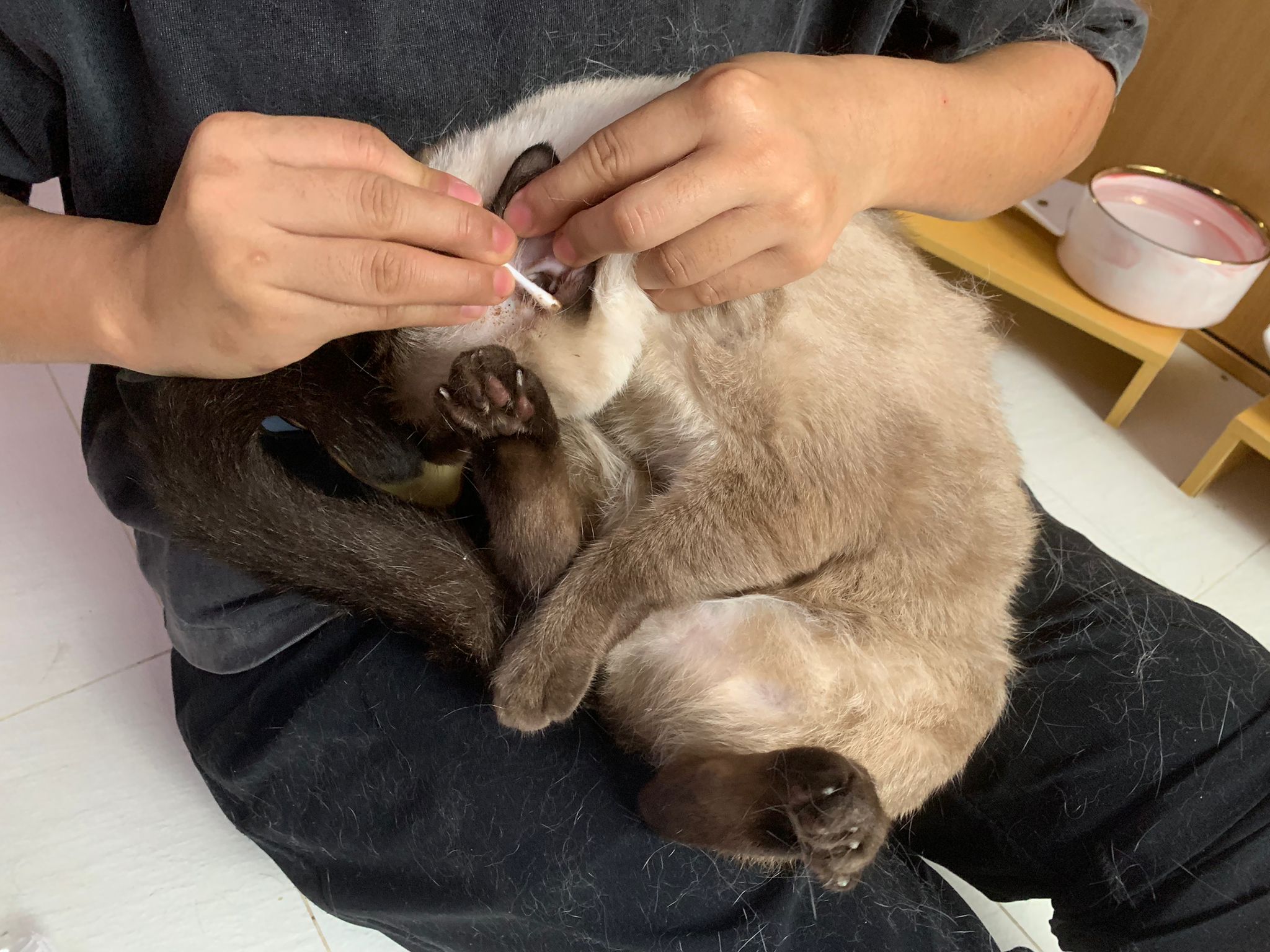 Morning: her mouth got saliva, pls don’t have d dental problem ah, we don’t have good dental vet in Singapore le. wipe her mouth le then took photos aiya.