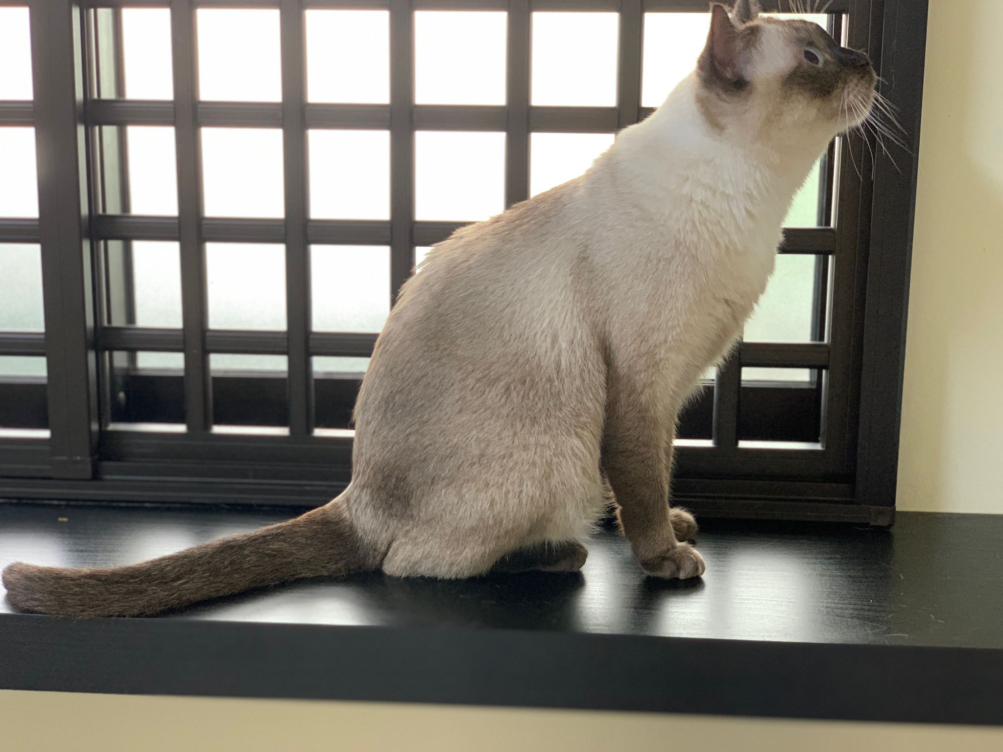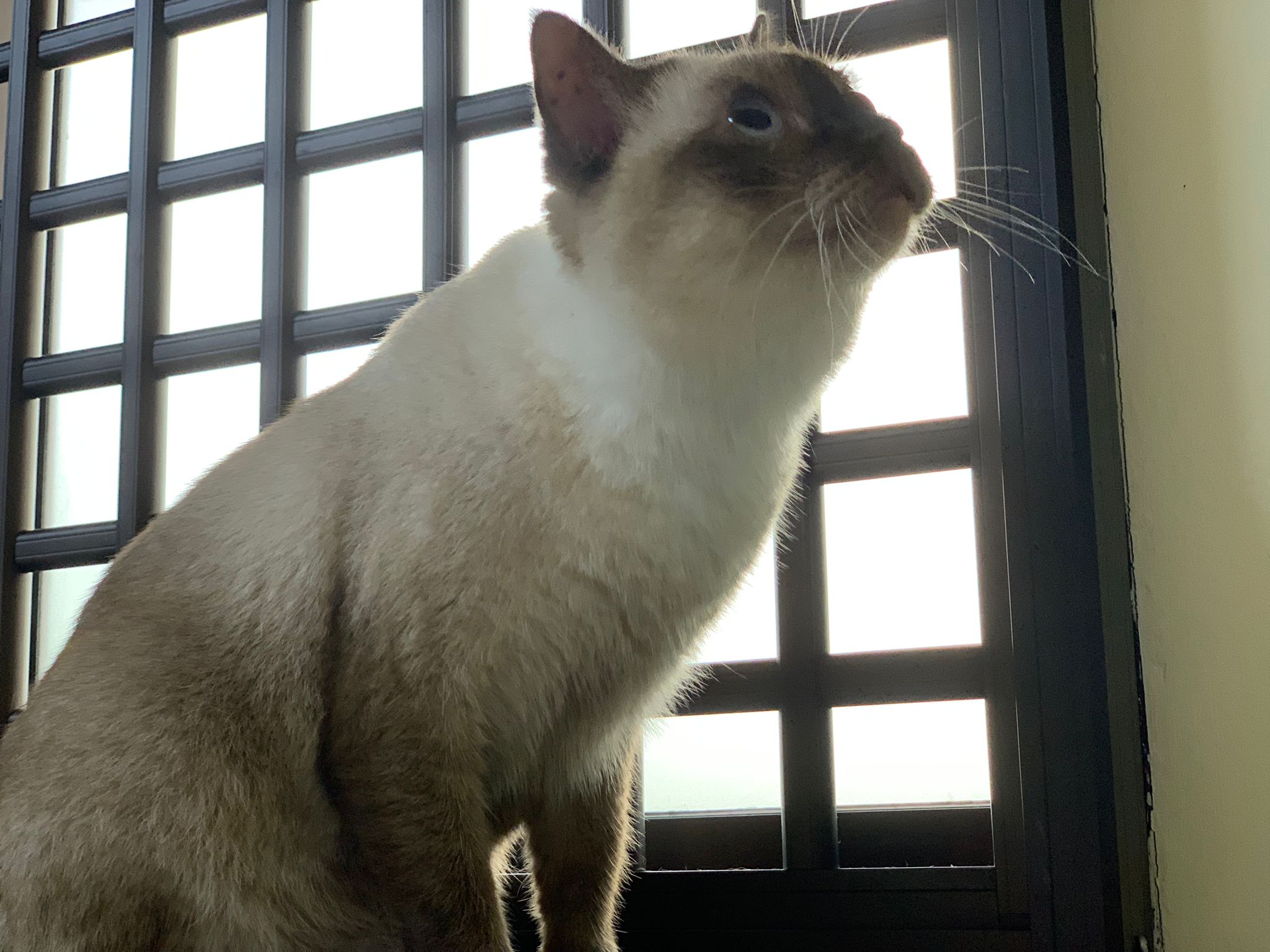 Morning: curious girl standing at the window looking out at plants. Told her aircon compressor Uncle dead, we will revive him on coming Tues. 4.00kg – lose 10g in 20 days.