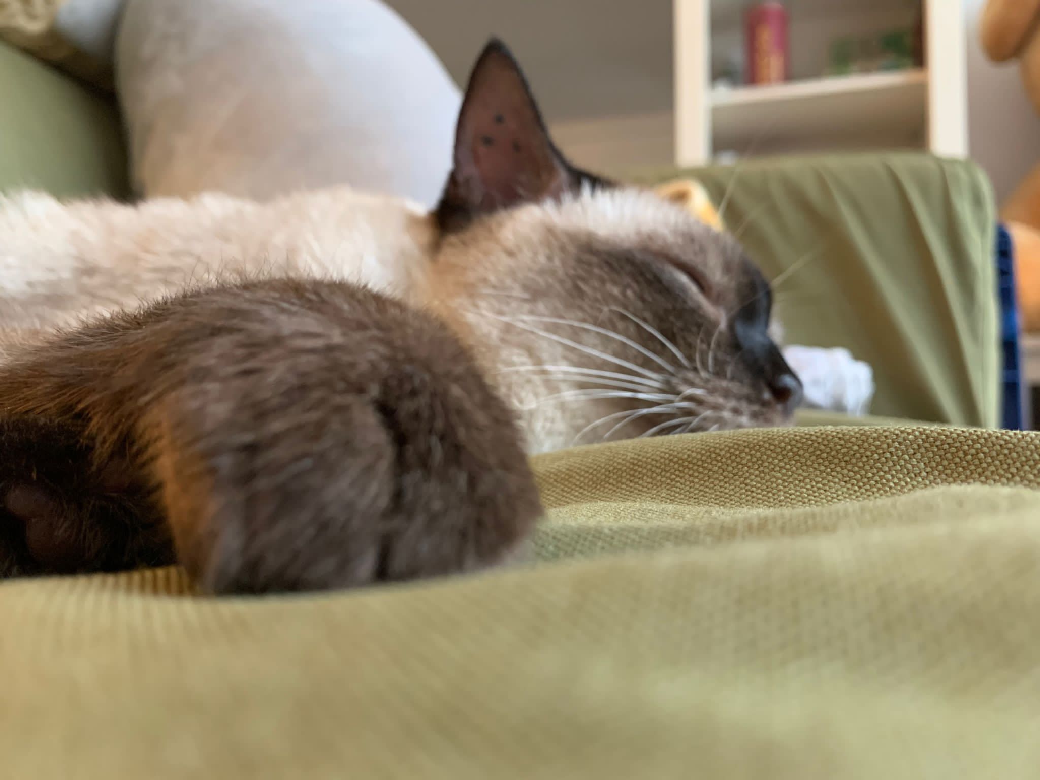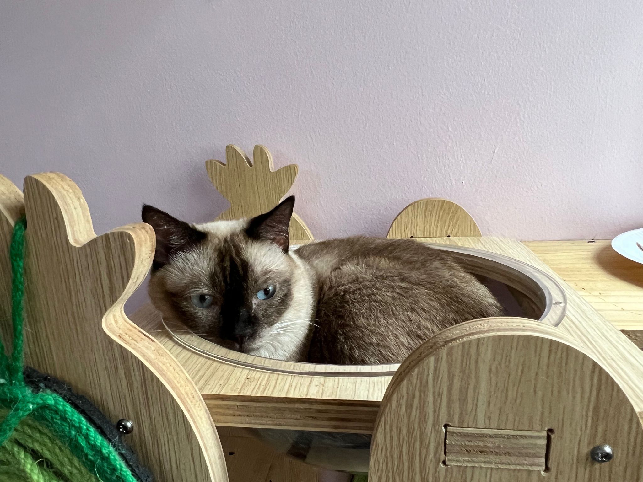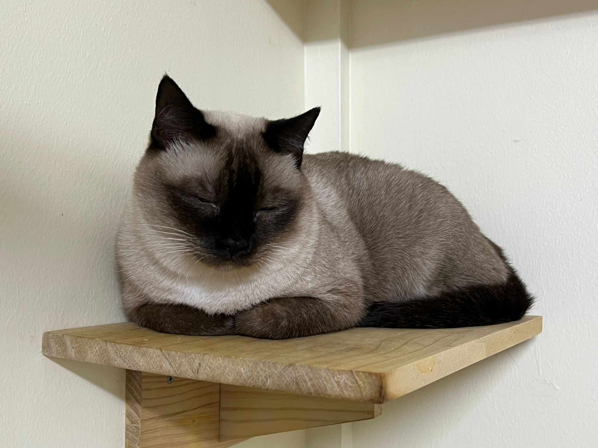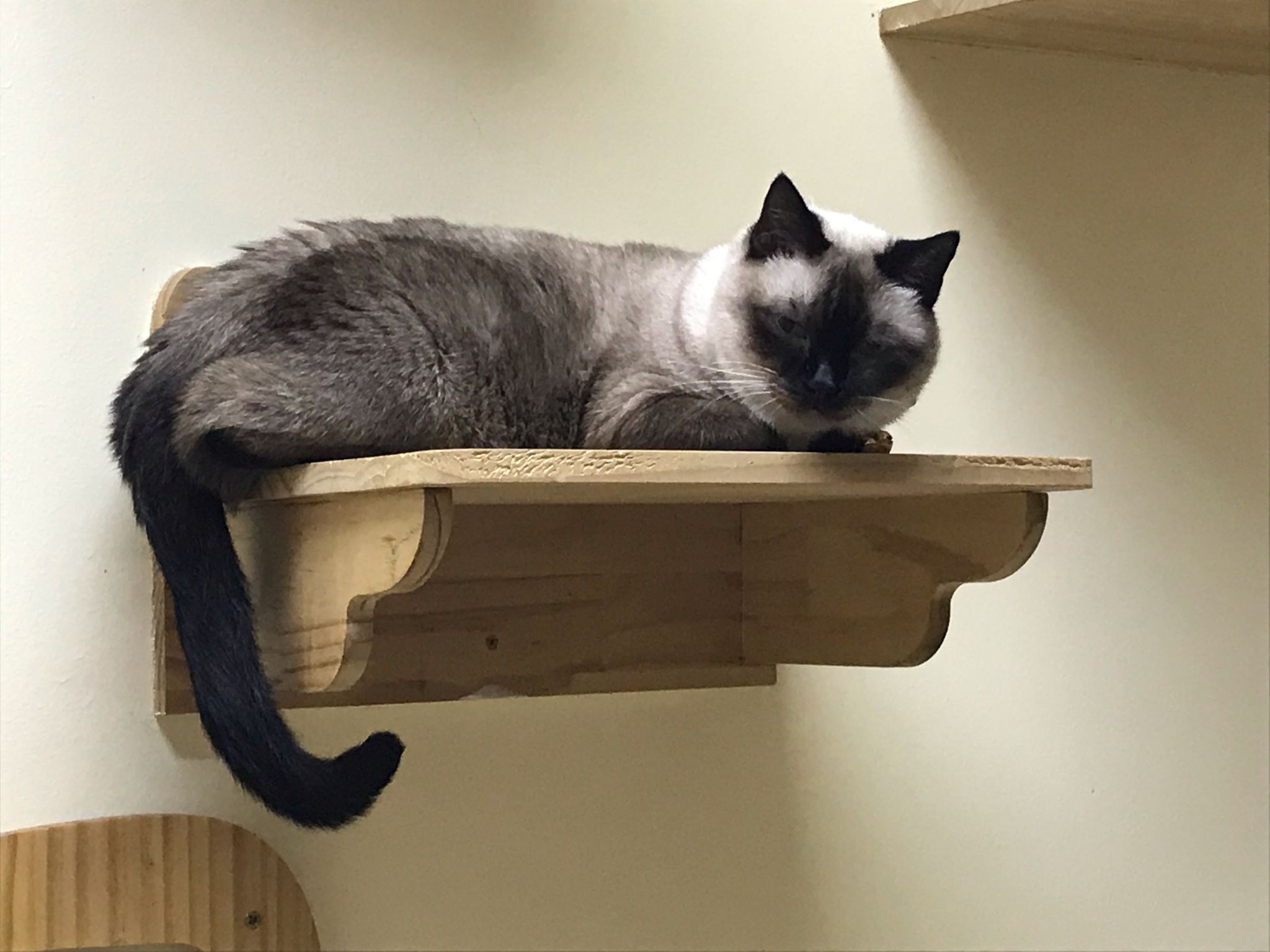 Morning: yesterday brownie and junior don’t give her any chance to go up the cabinet by the window, this morning she is sooooo happy that she flop right there, sleep there n don’t want to move at all.