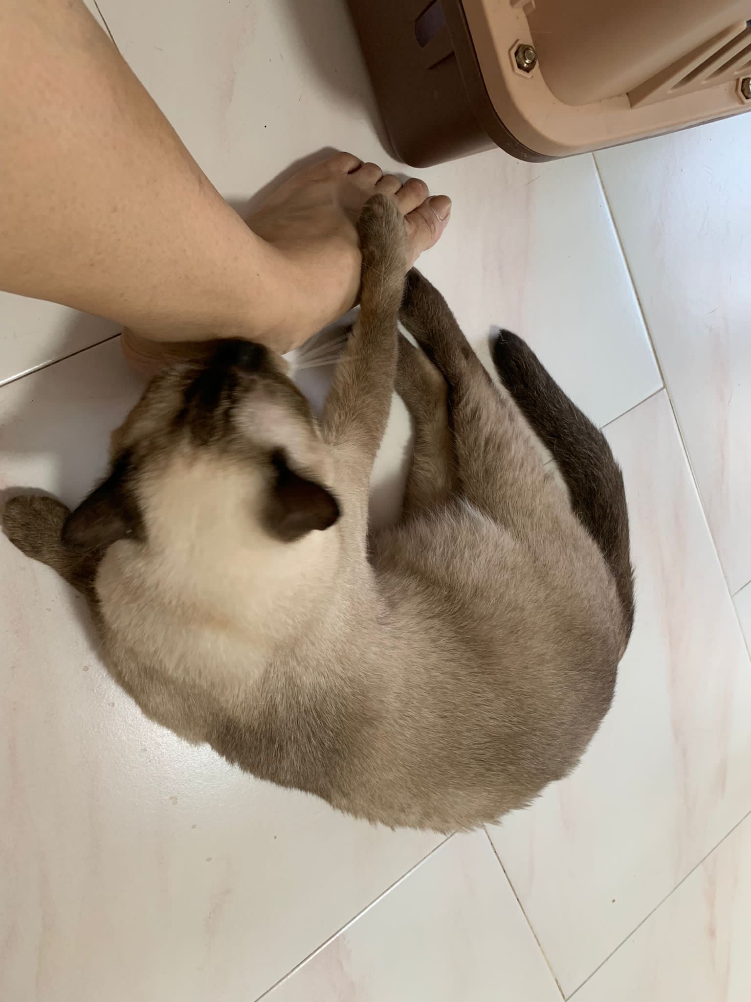• But she jump down on floor to ask me for sayang, I can even make her 翘屁股。- almost want to tell belly up but suddenly seem to want to bite me (v fast change in mood) – stop n I’m safe