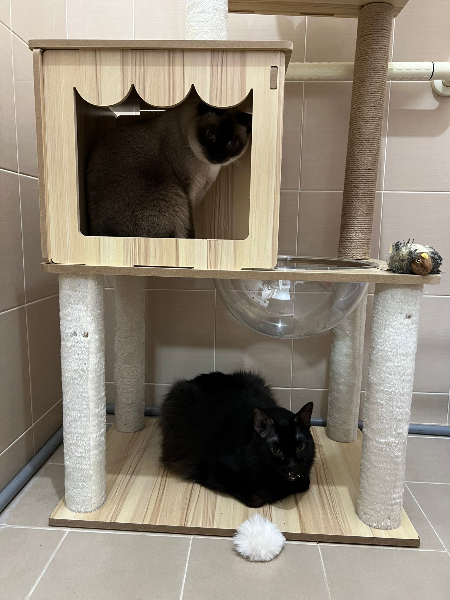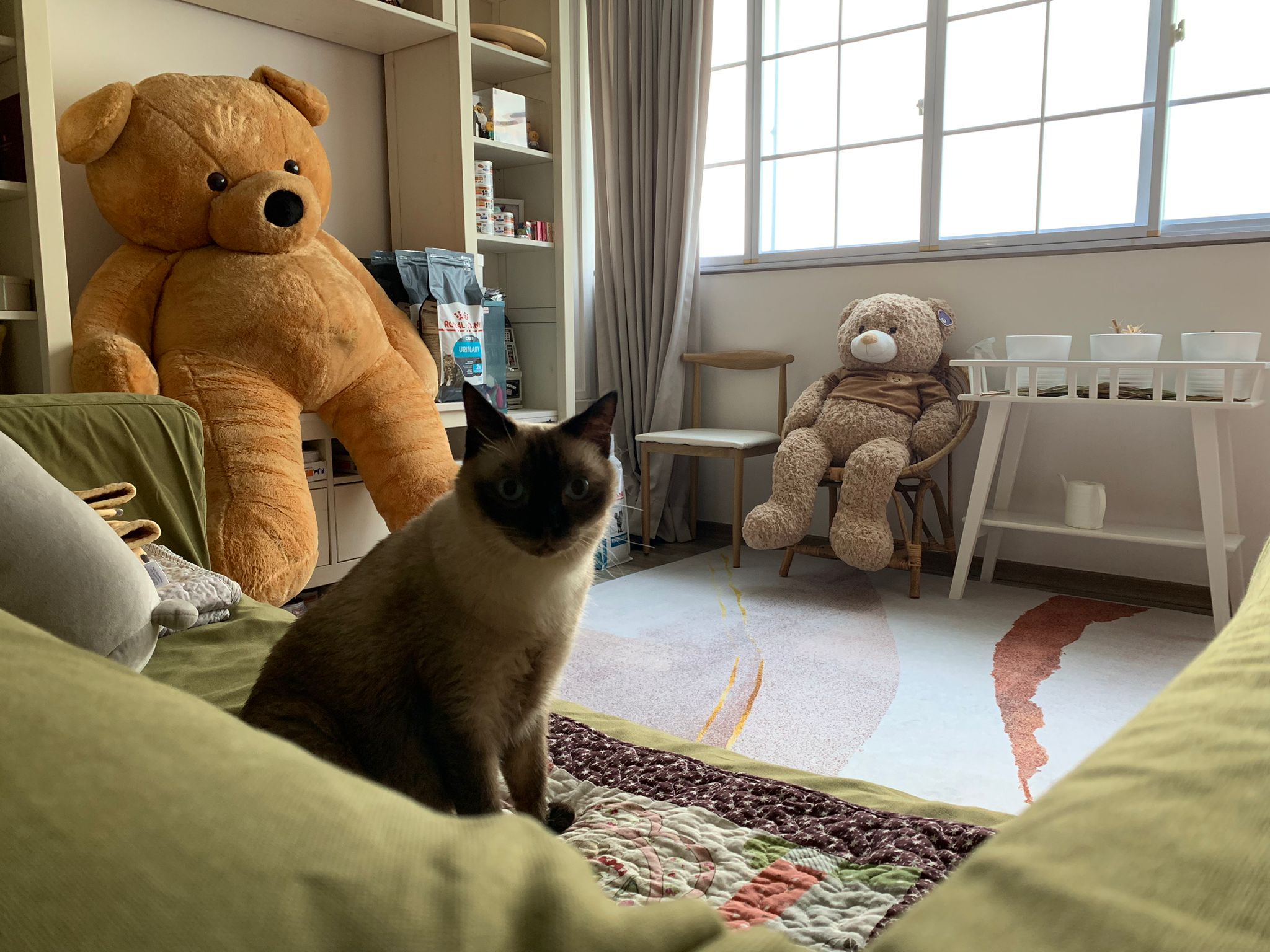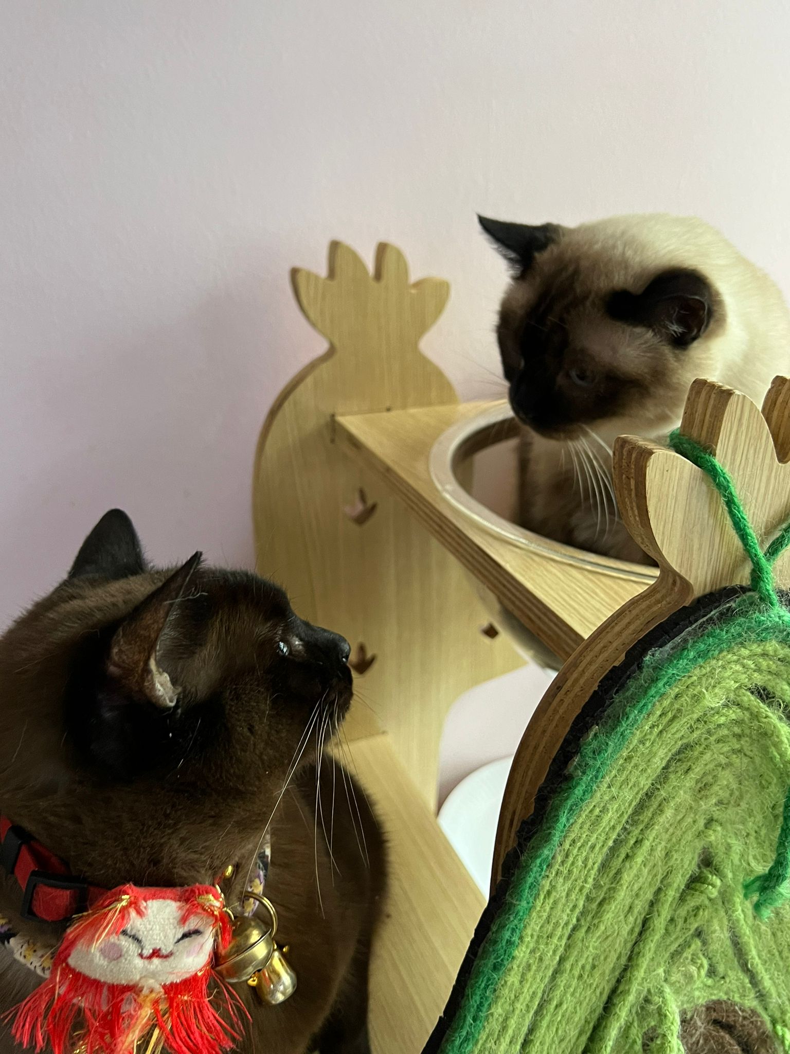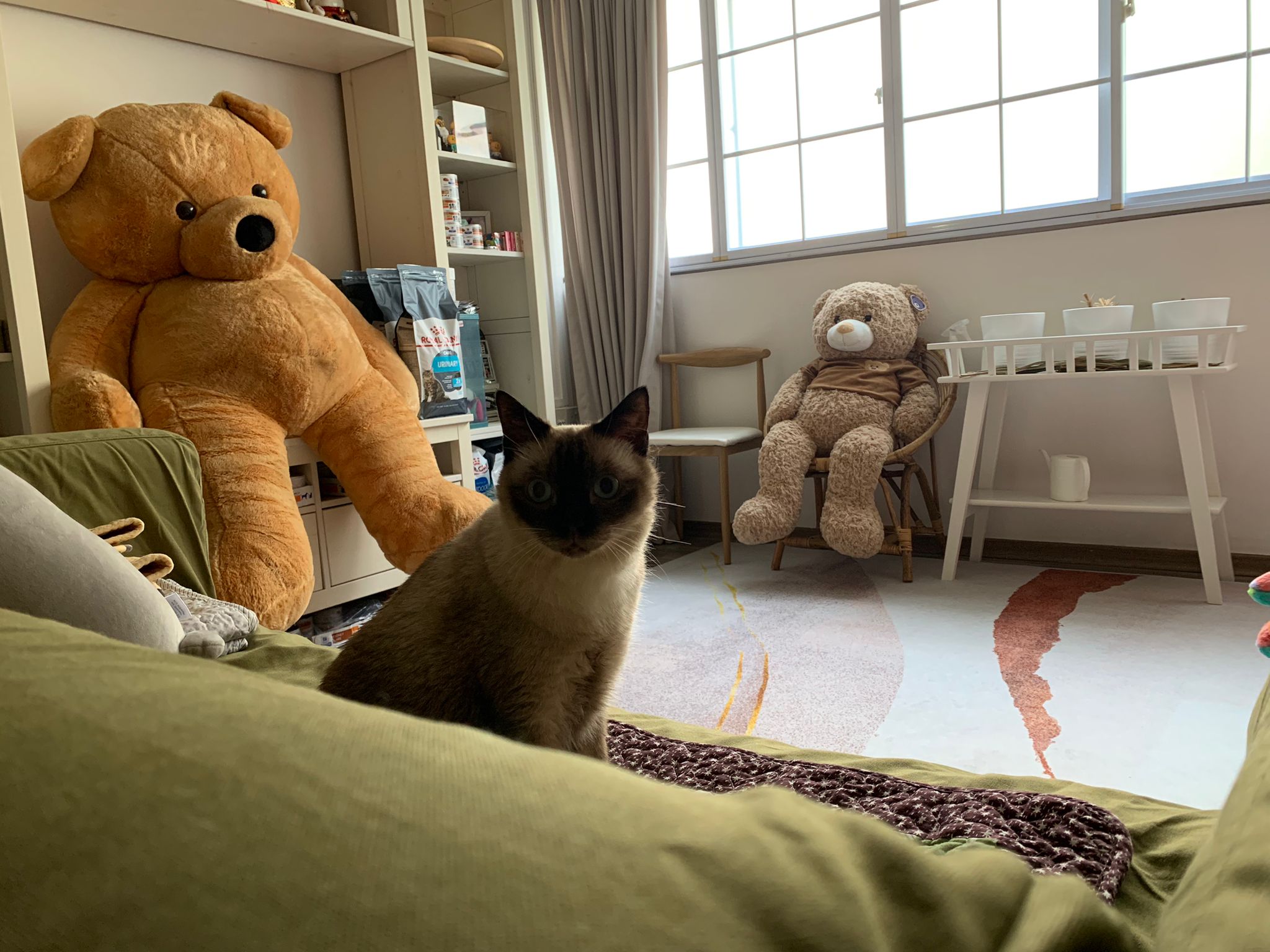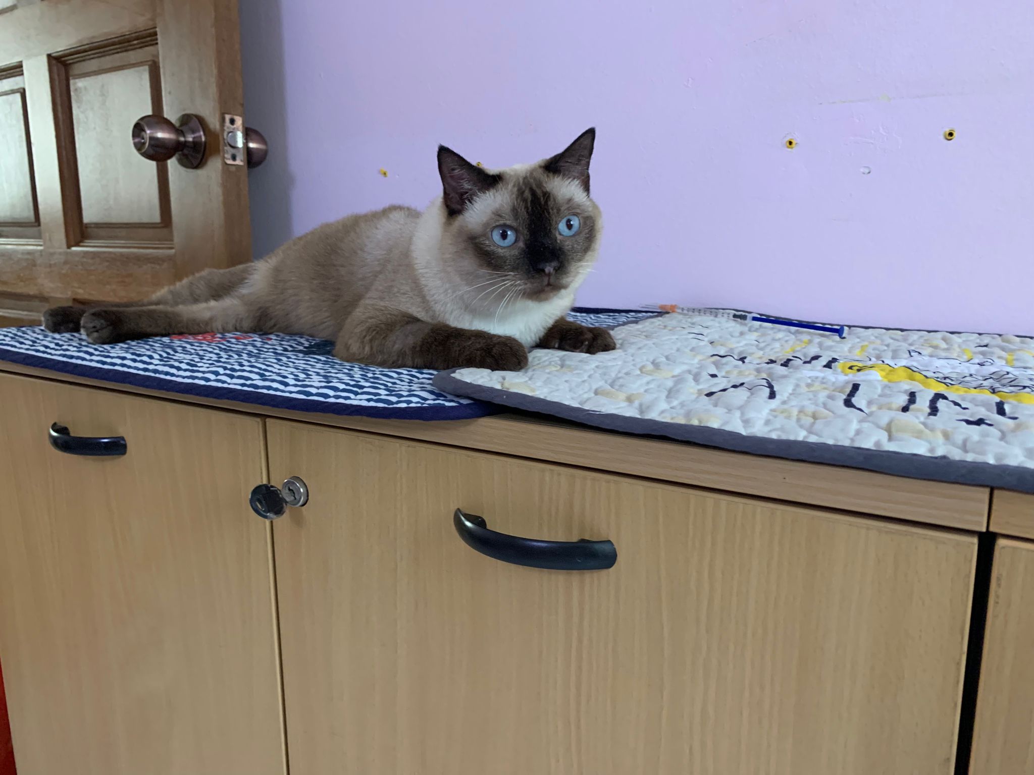 9am+: tao station on top of that window cabinet, sena wanna sit beside her, she stare at her, making sure she didn’t touch her. End up both of them sit together; didnt disturb each other. Kiss the 2, n take photos of them. Ha