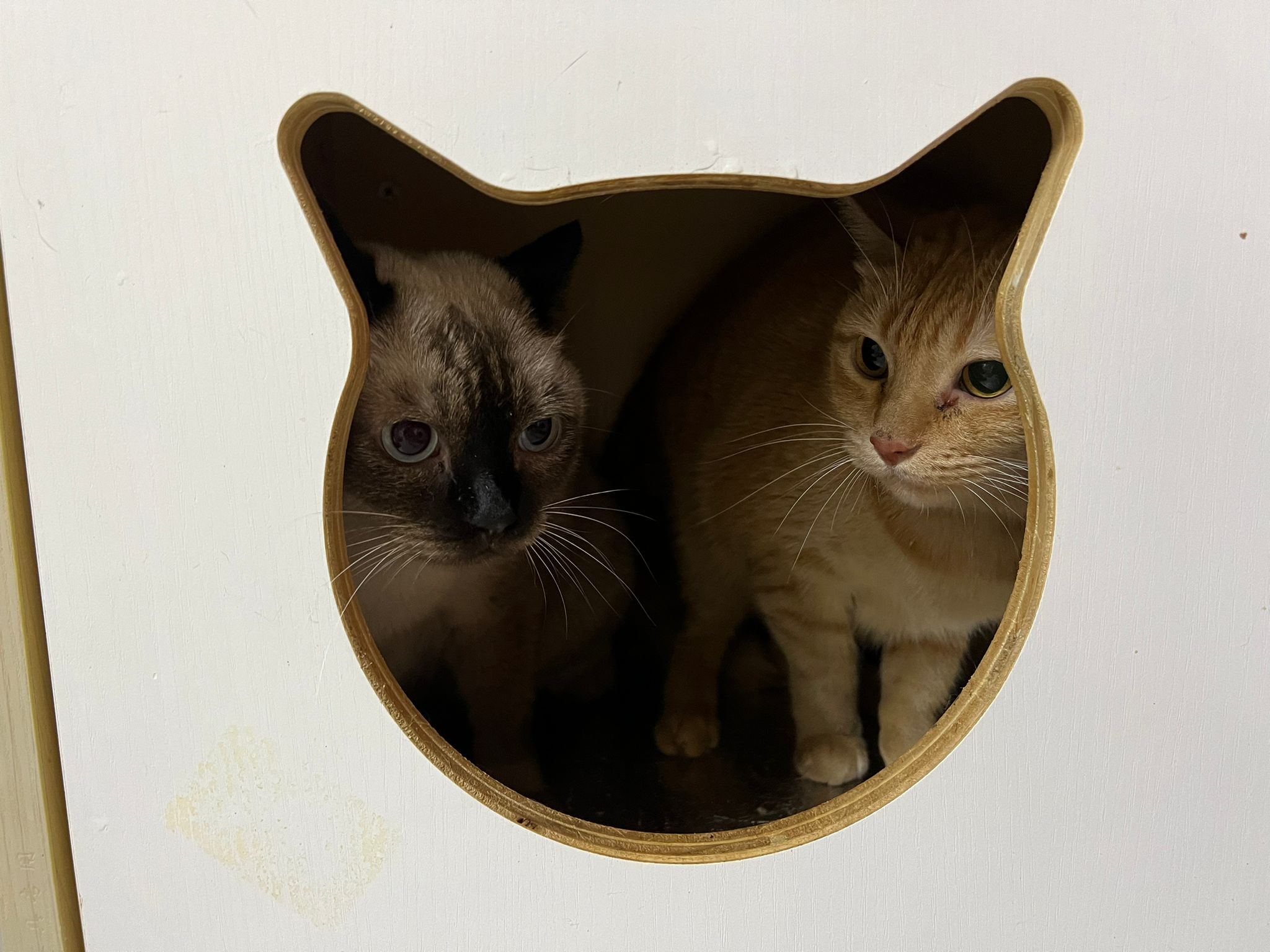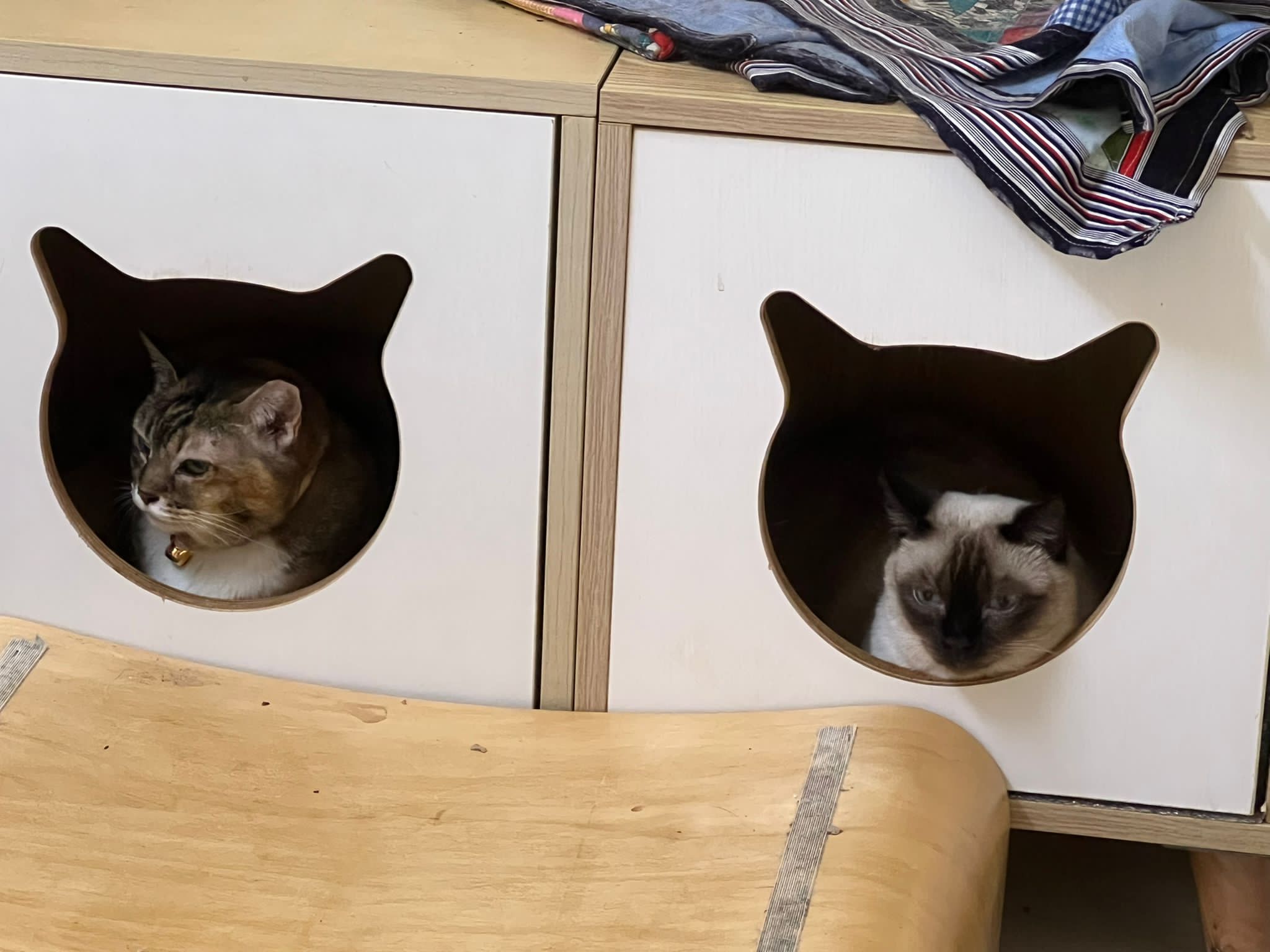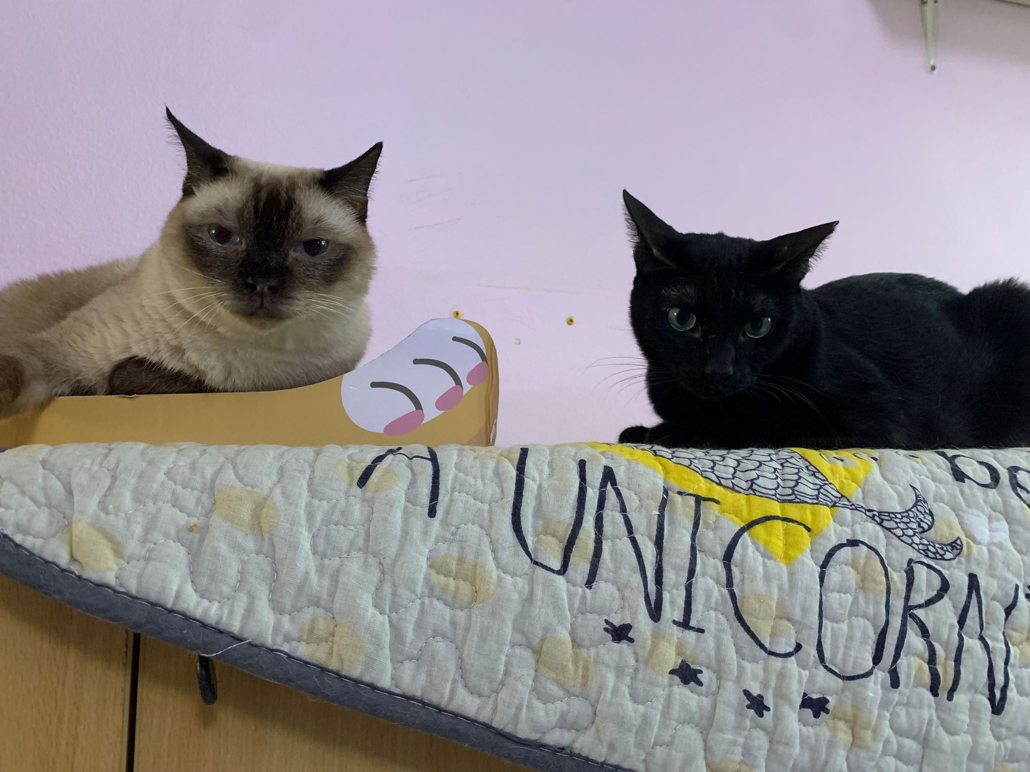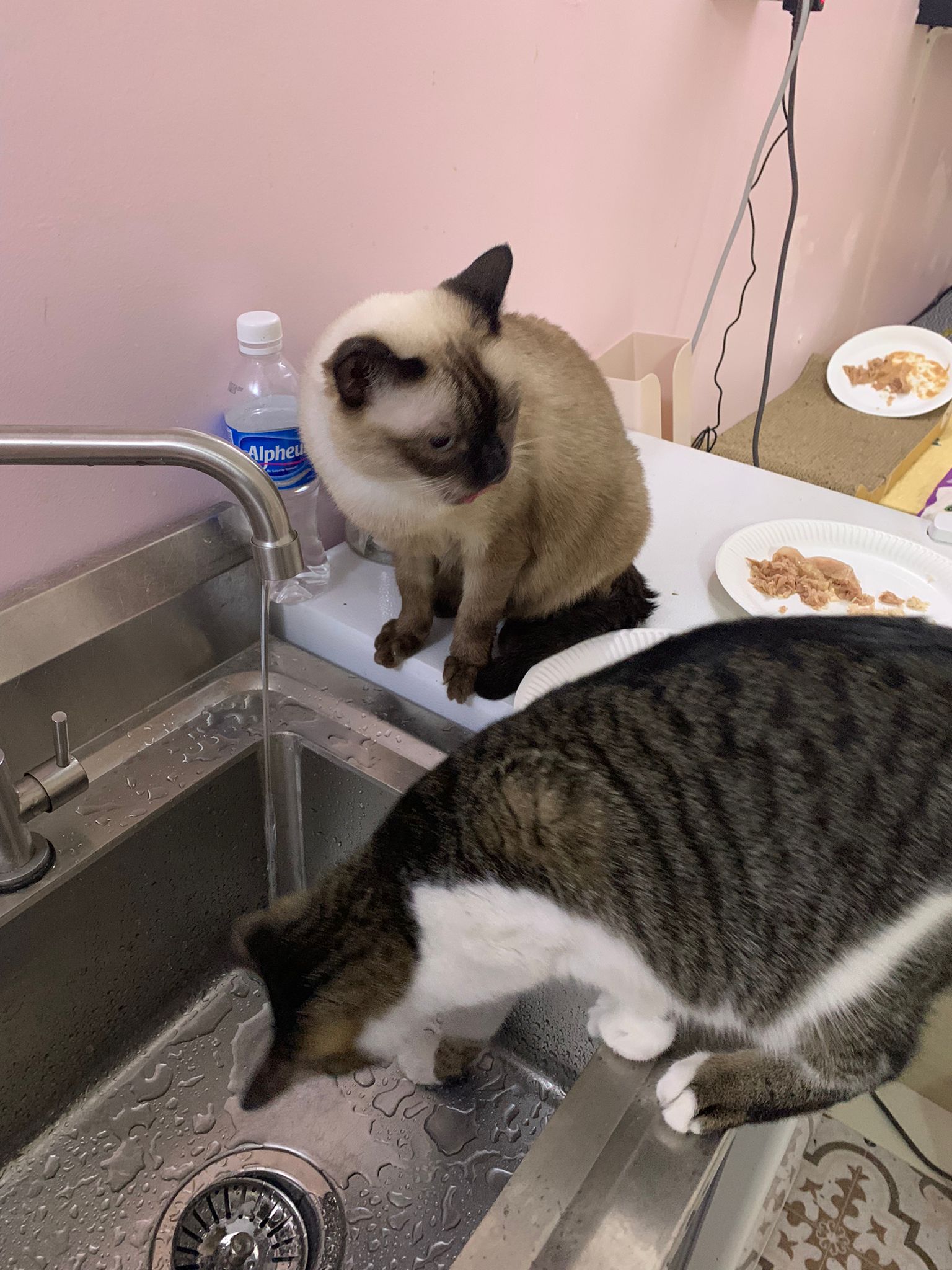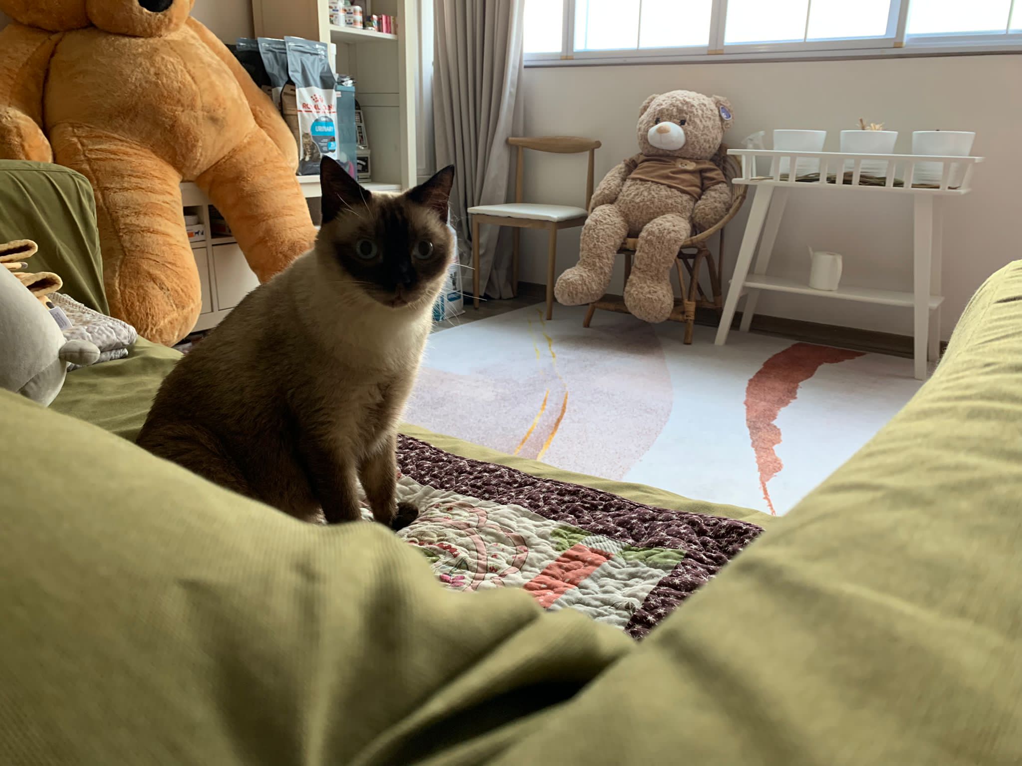 9am+: tao station on top of that window cabinet, sena wanna sit beside her, she stare at her, making sure she didn’t touch her. End up both of them sit together; didnt disturb each other. Kiss the 2, n take photos of them. Ha