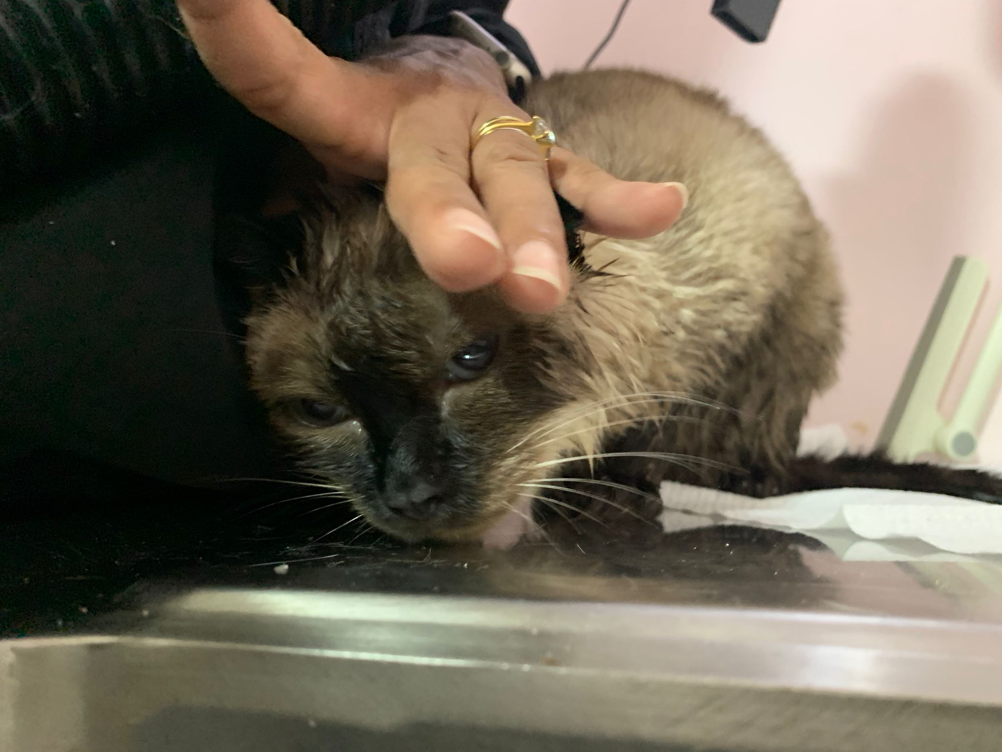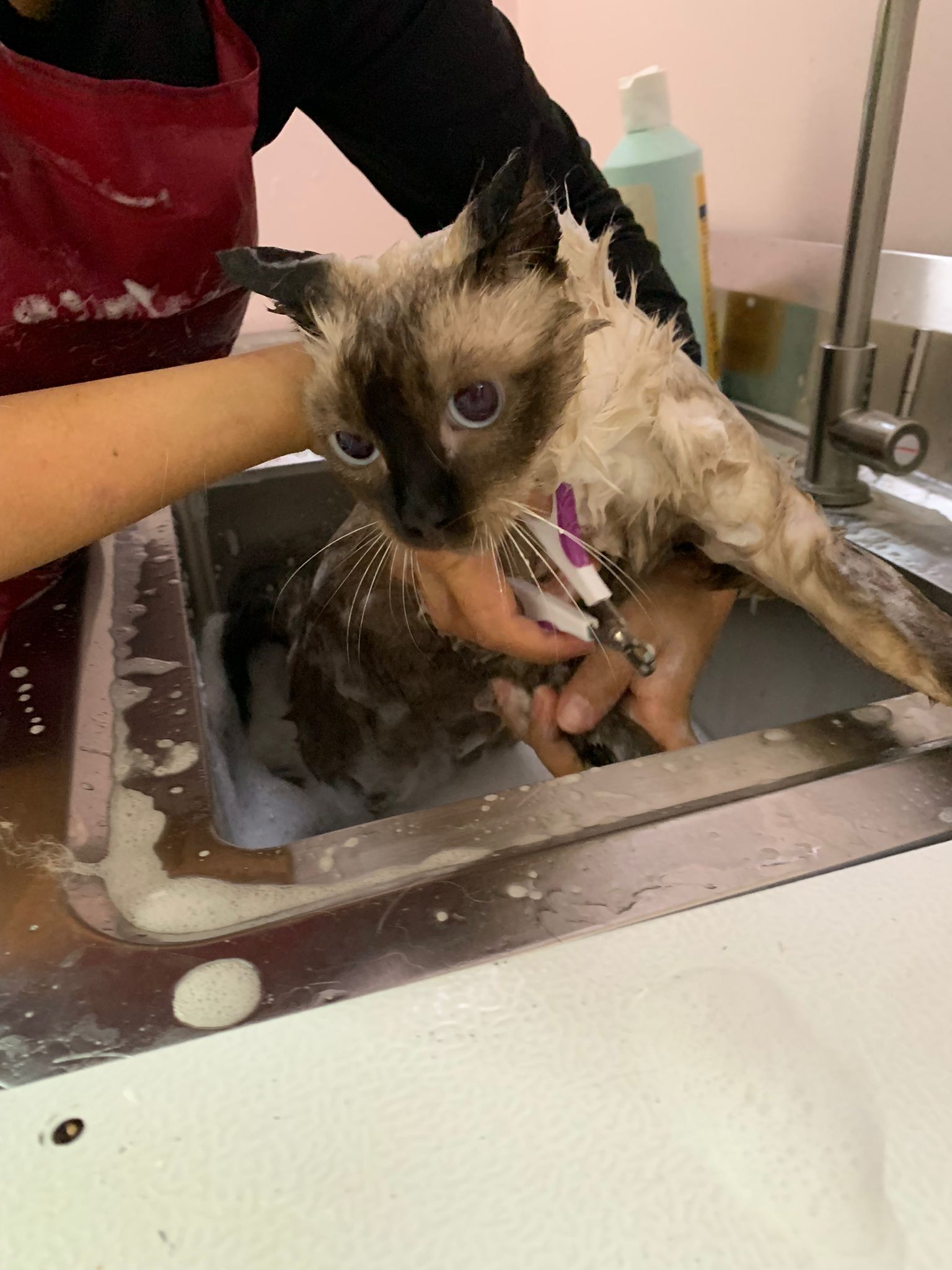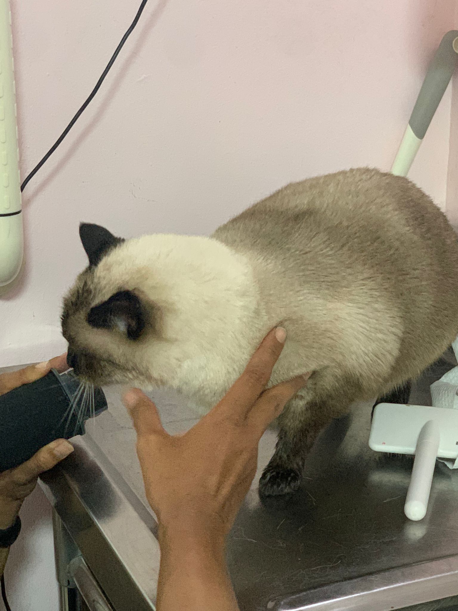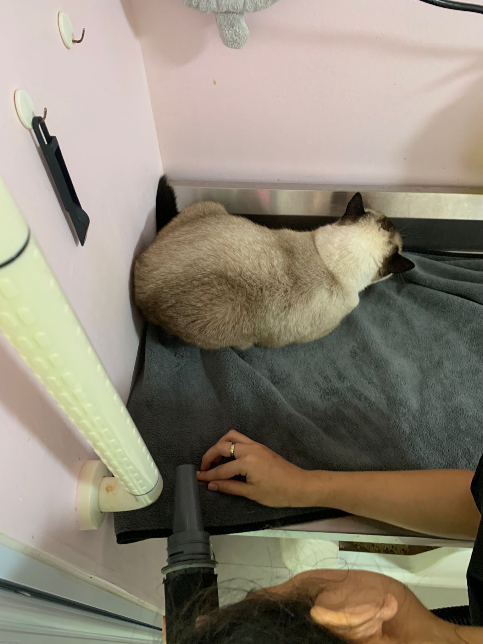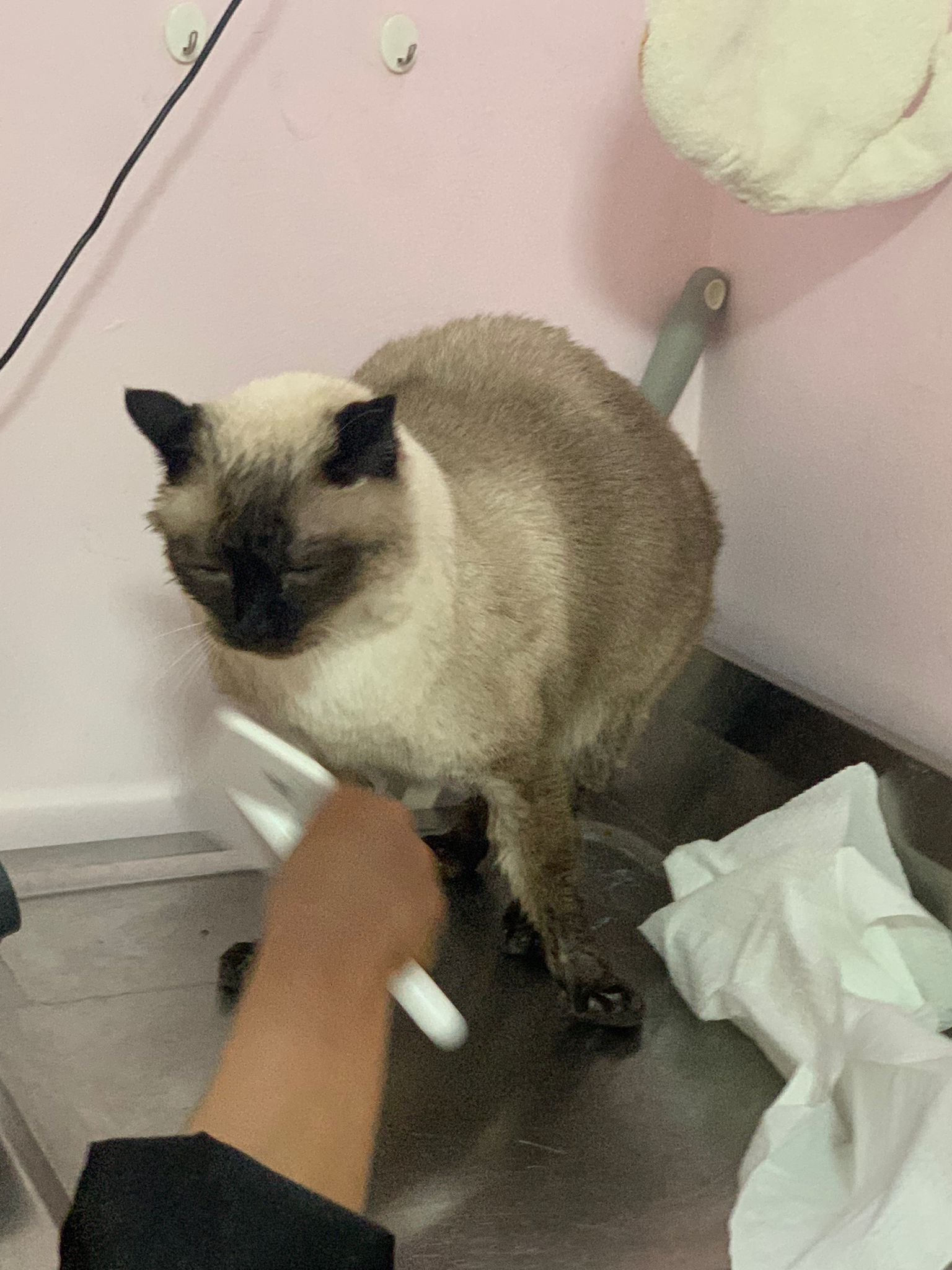 11.01am: 2 groomers reach. Tao is the 3rd to groom. g2 cut her nails and do the pre bath stuff first. She seduce tao w ciao treat at first so she is safe. G2 told me she gave “my cats” ketanine treatment, so not sure is it everyone have that. Generally tao is fine today, not much restraint, can also blow dry.