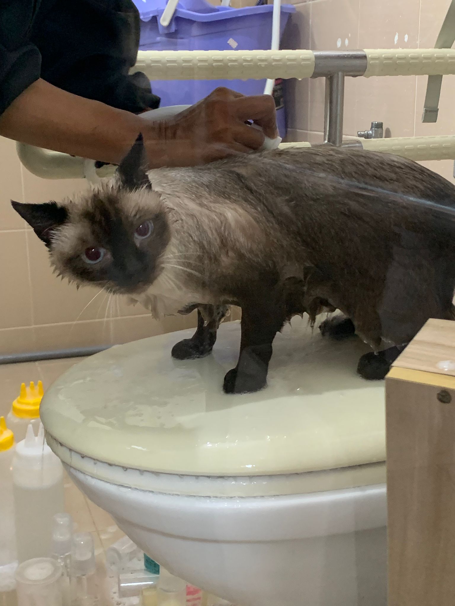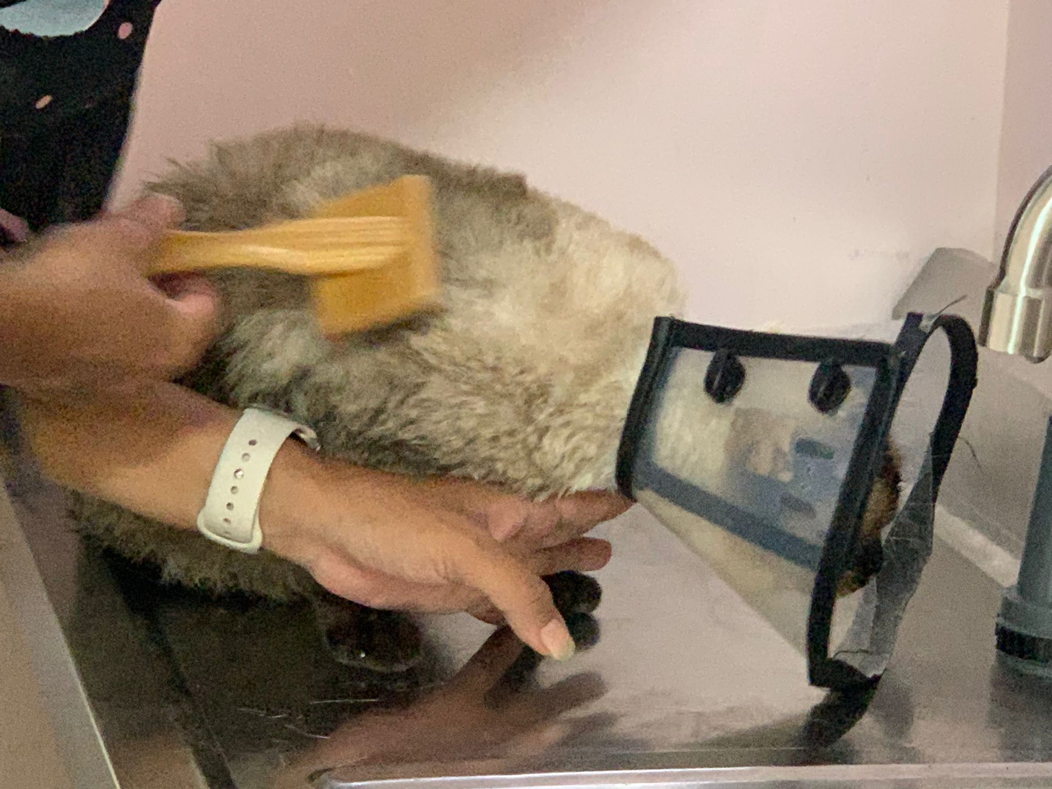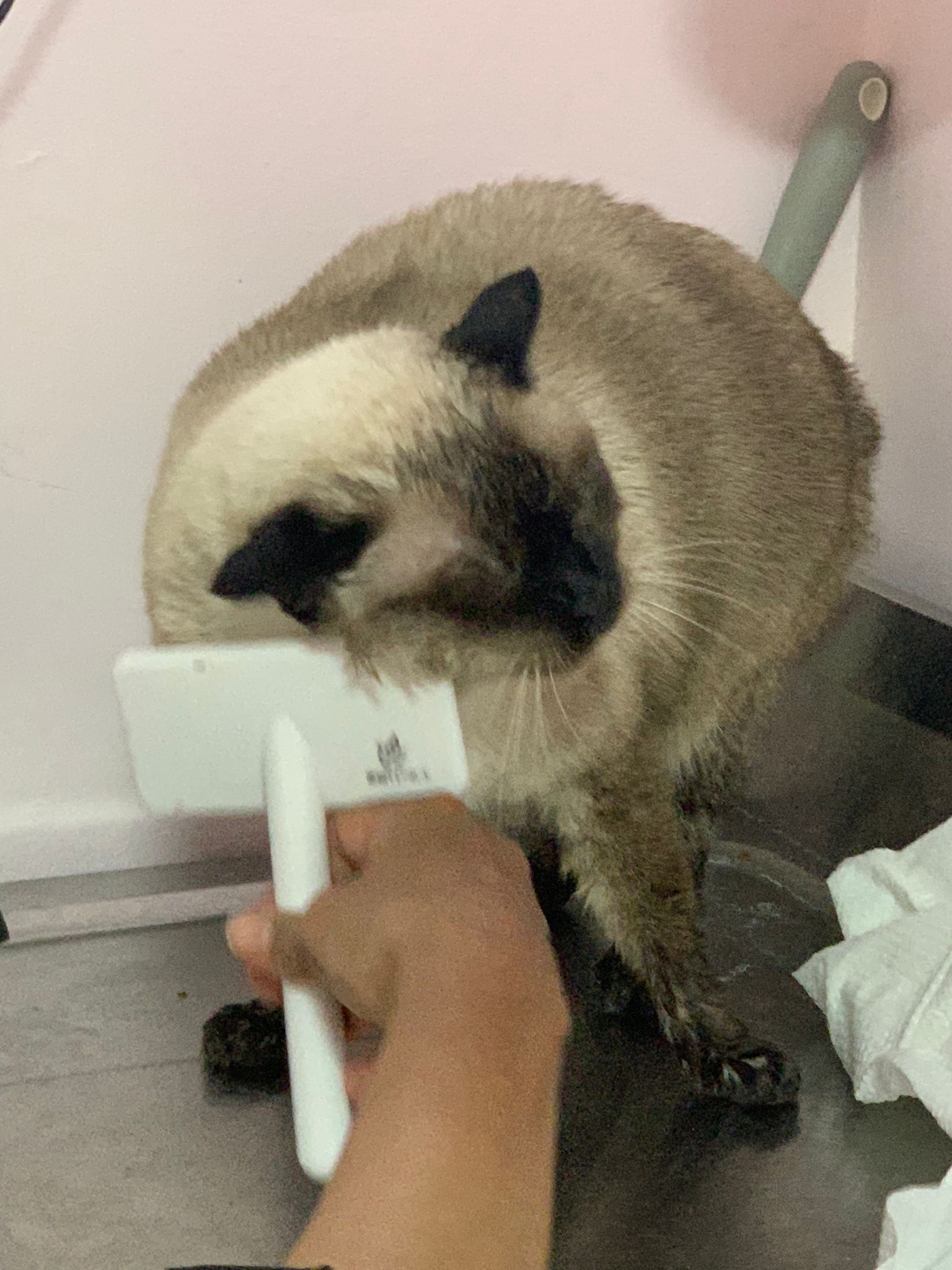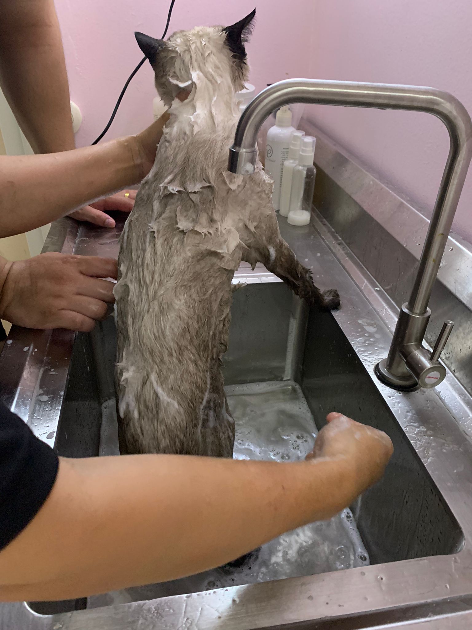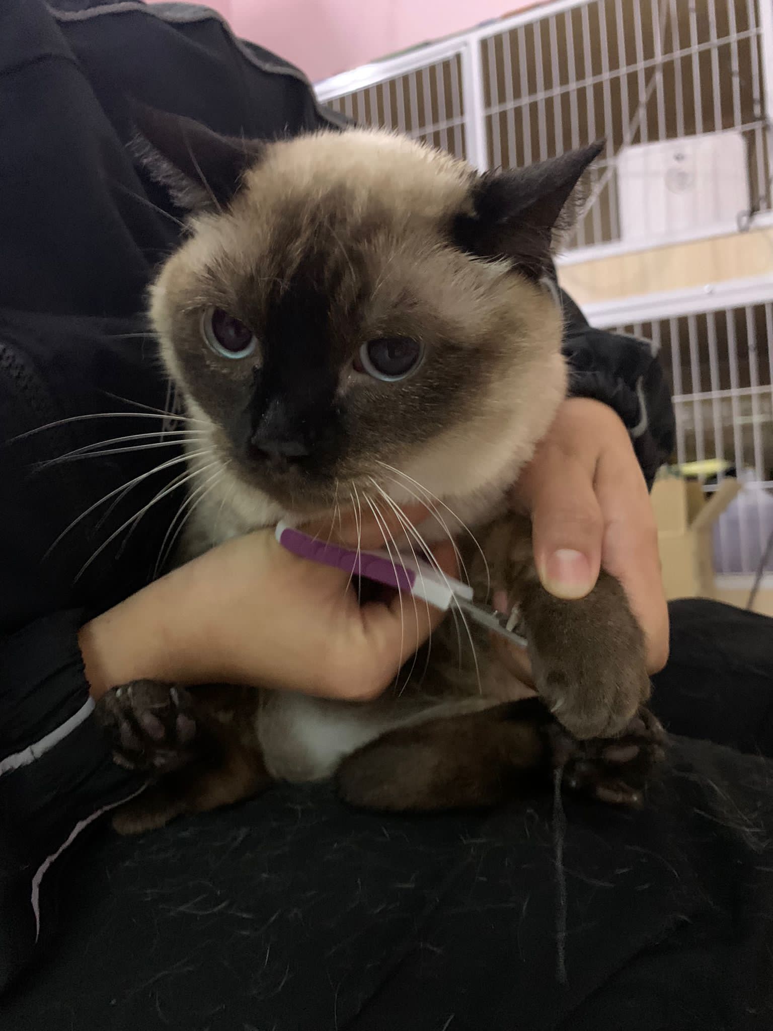 11.01am: 2 groomers reach. Tao is the 3rd to groom. g2 cut her nails and do the pre bath stuff first. She seduce tao w ciao treat at first so she is safe. G2 told me she gave “my cats” ketanine treatment, so not sure is it everyone have that. Generally tao is fine today, not much restraint, can also blow dry.