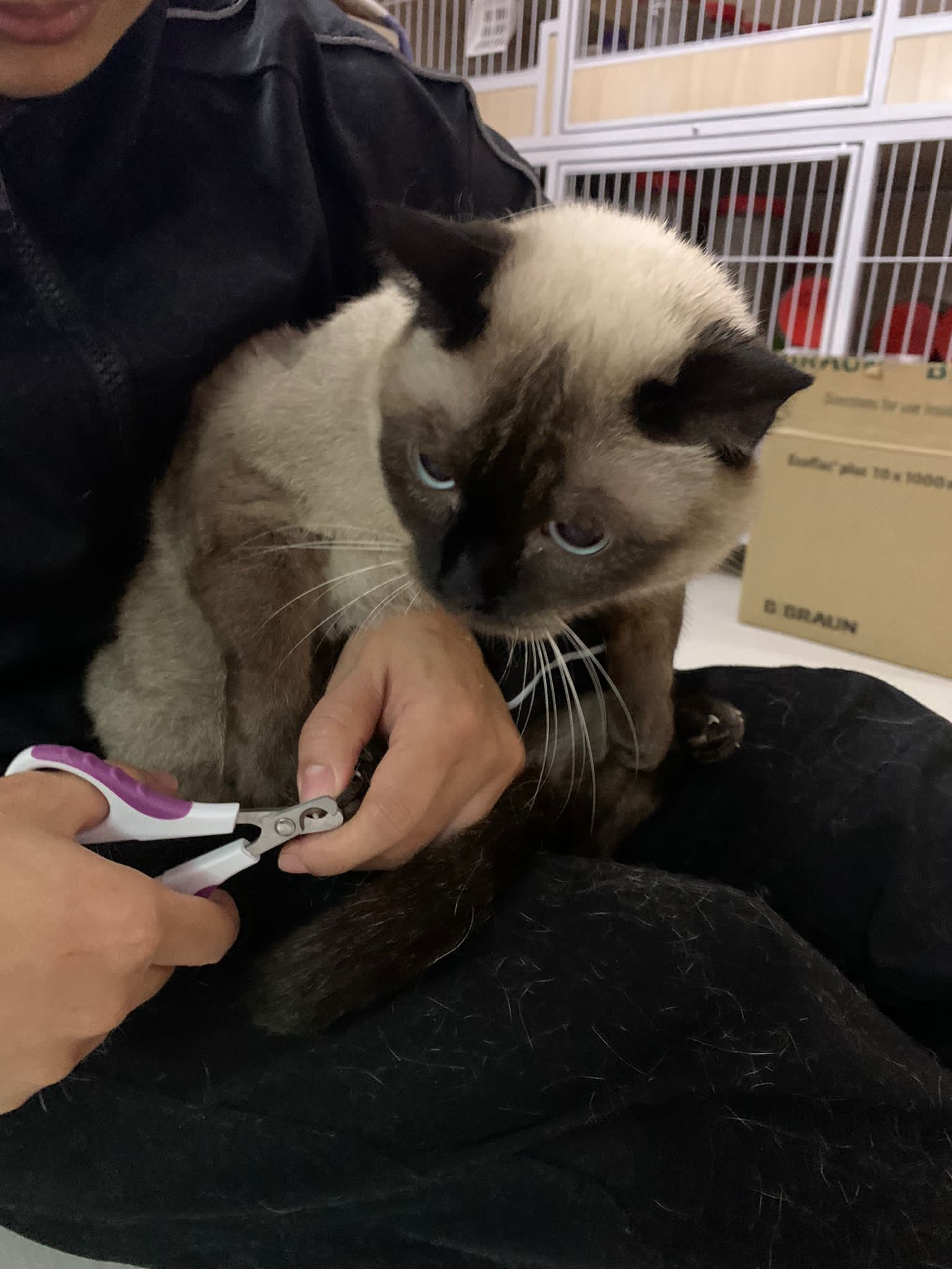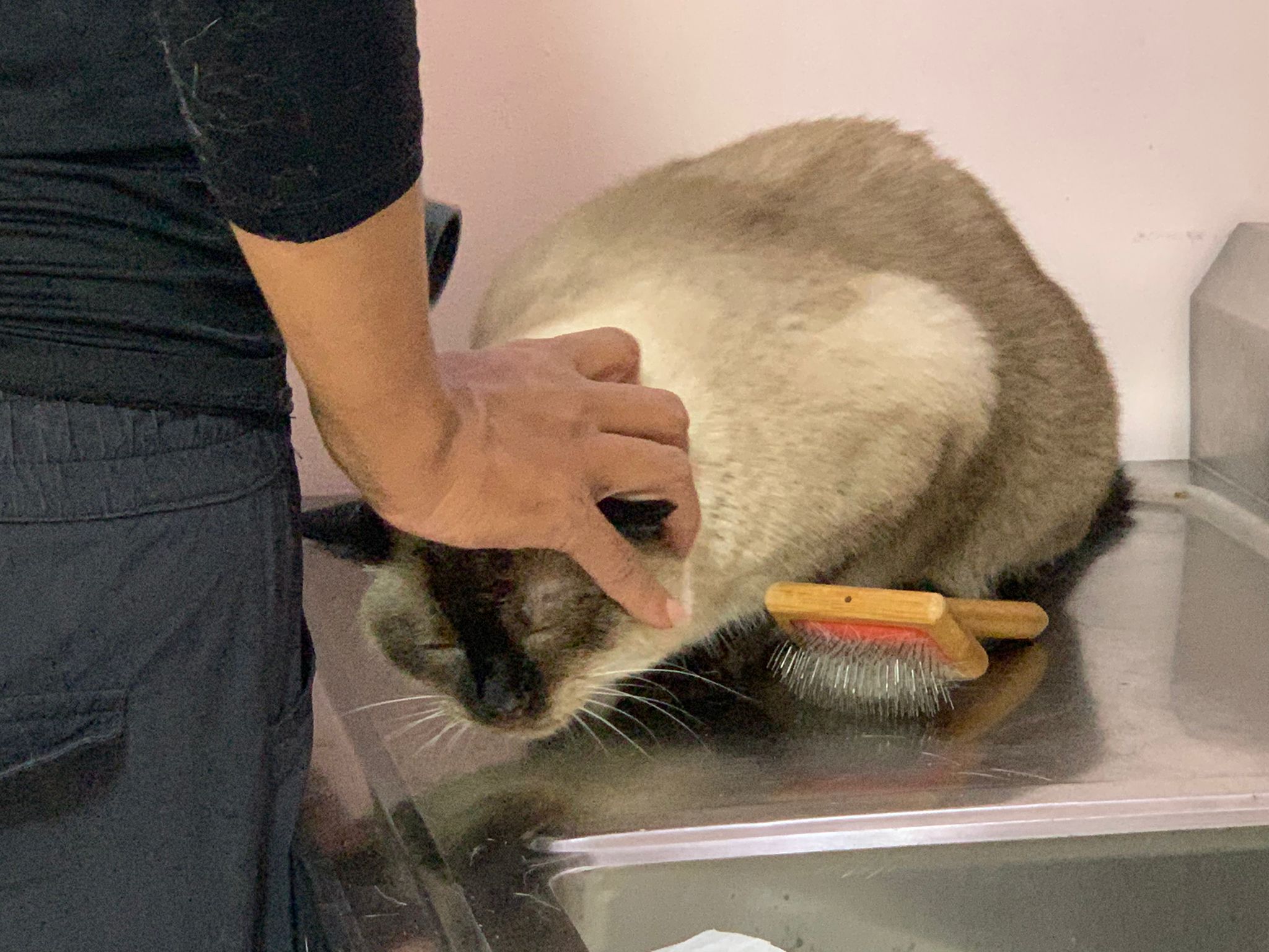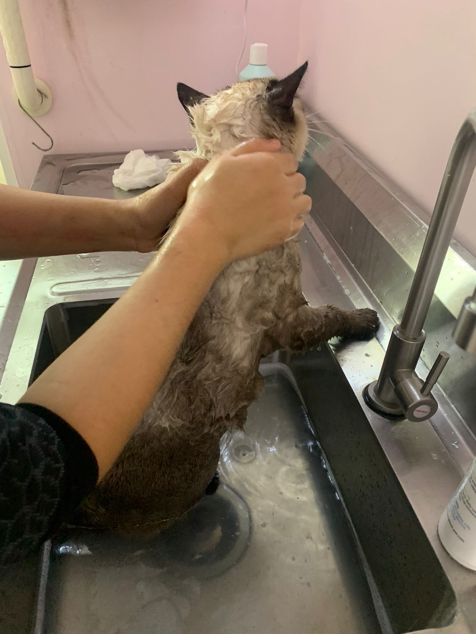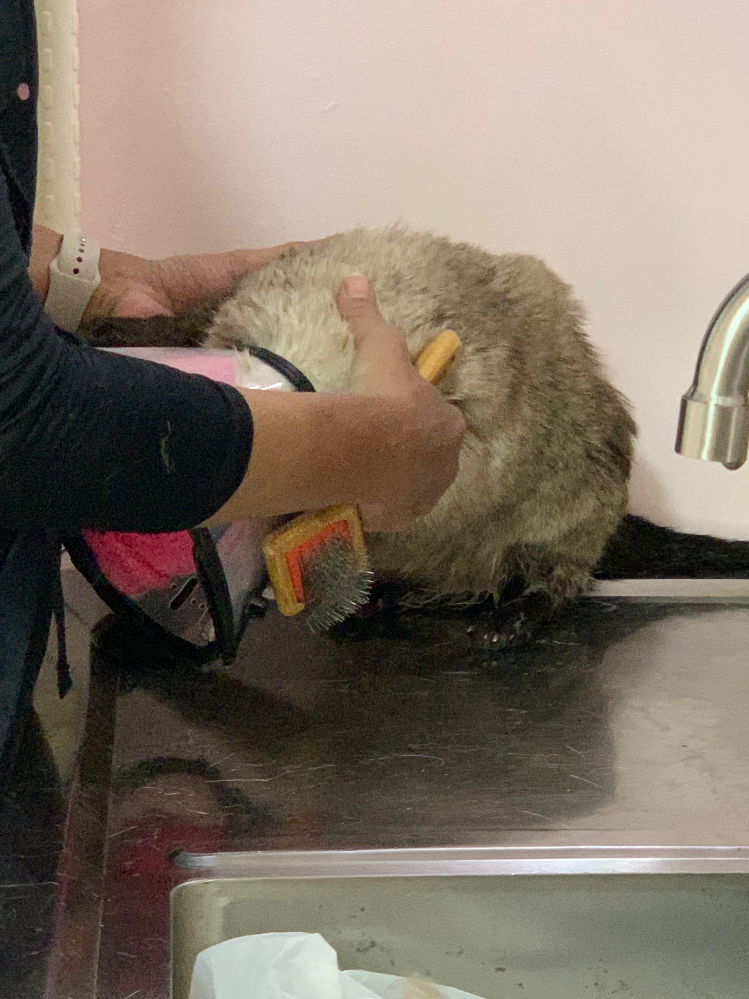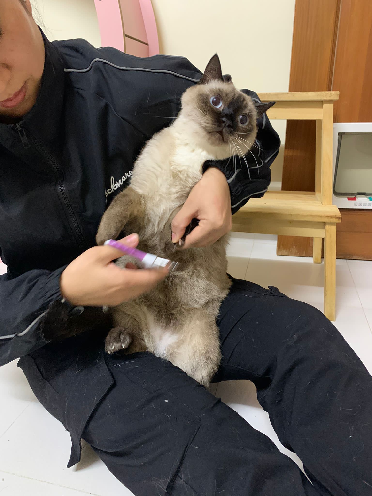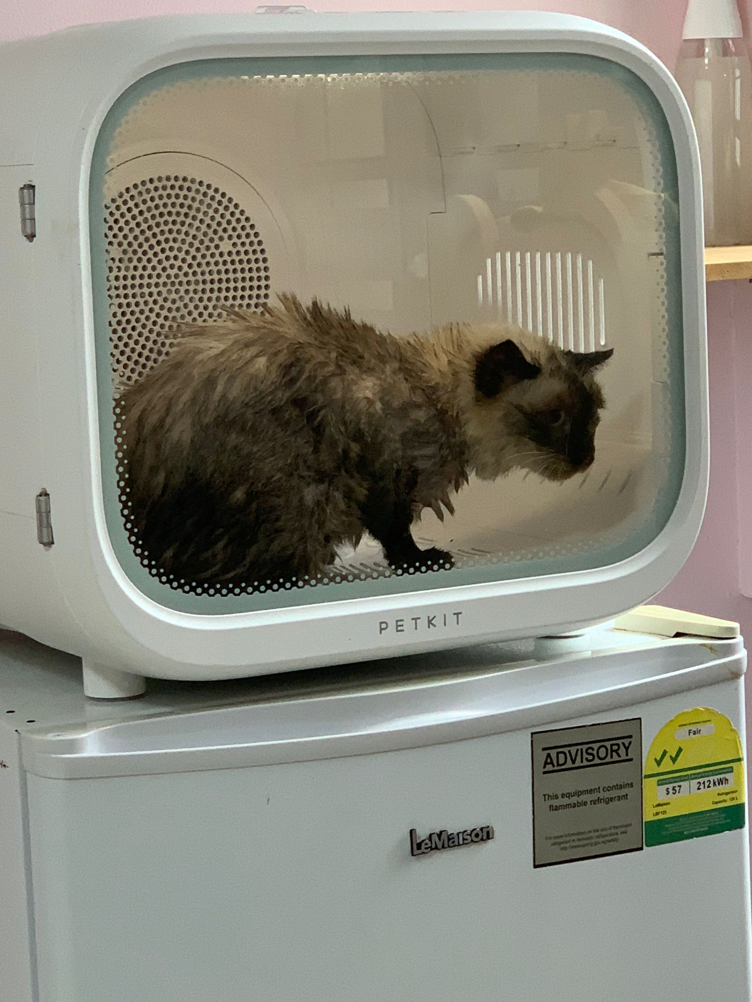 11.01am: 2 groomers reach. Tao is the 3rd to groom. g2 cut her nails and do the pre bath stuff first. She seduce tao w ciao treat at first so she is safe. G2 told me she gave “my cats” ketanine treatment, so not sure is it everyone have that. Generally tao is fine today, not much restraint, can also blow dry.