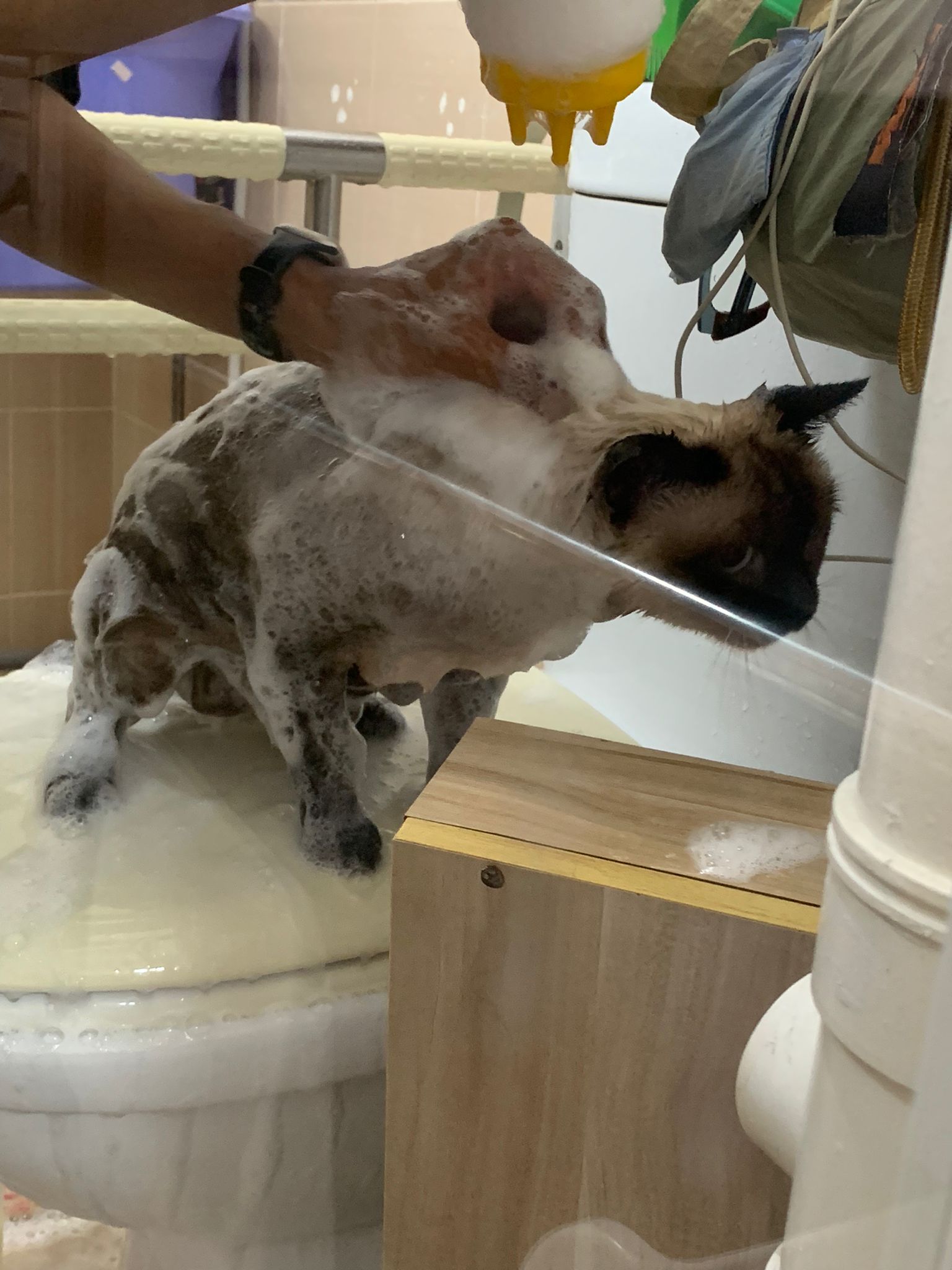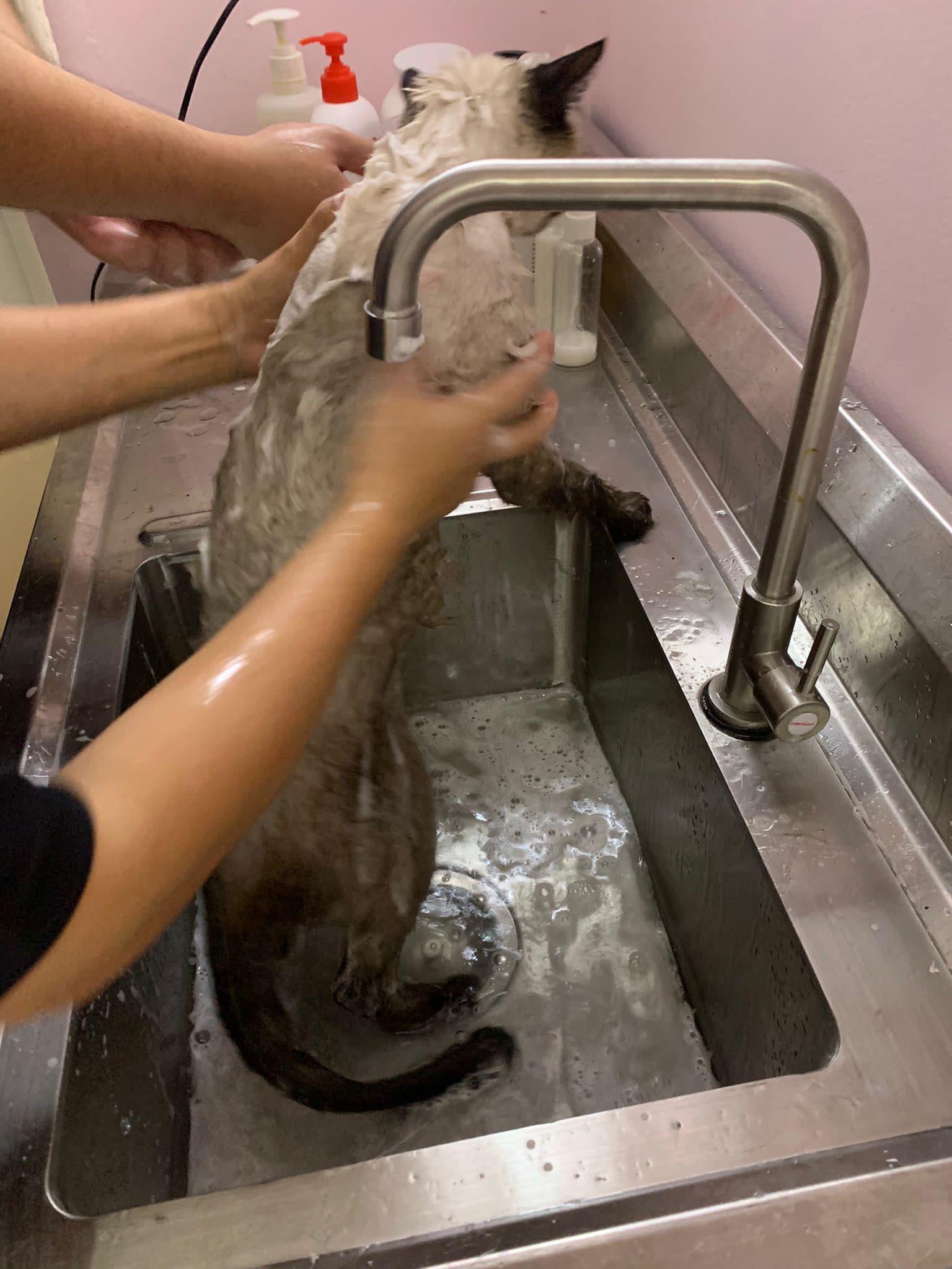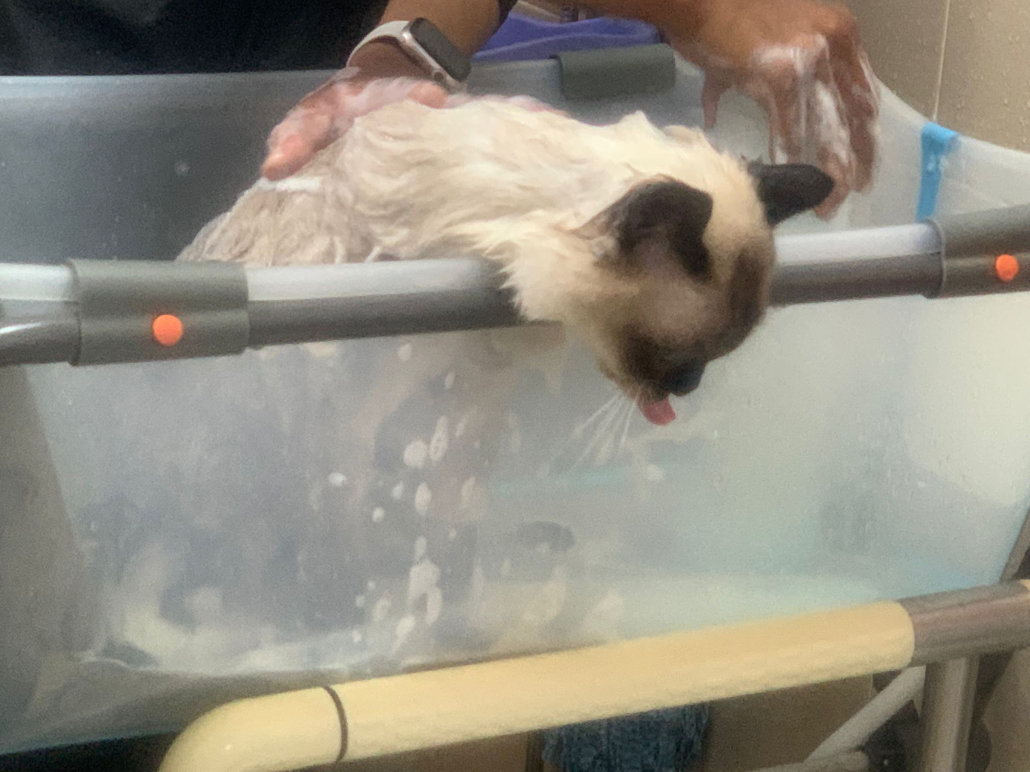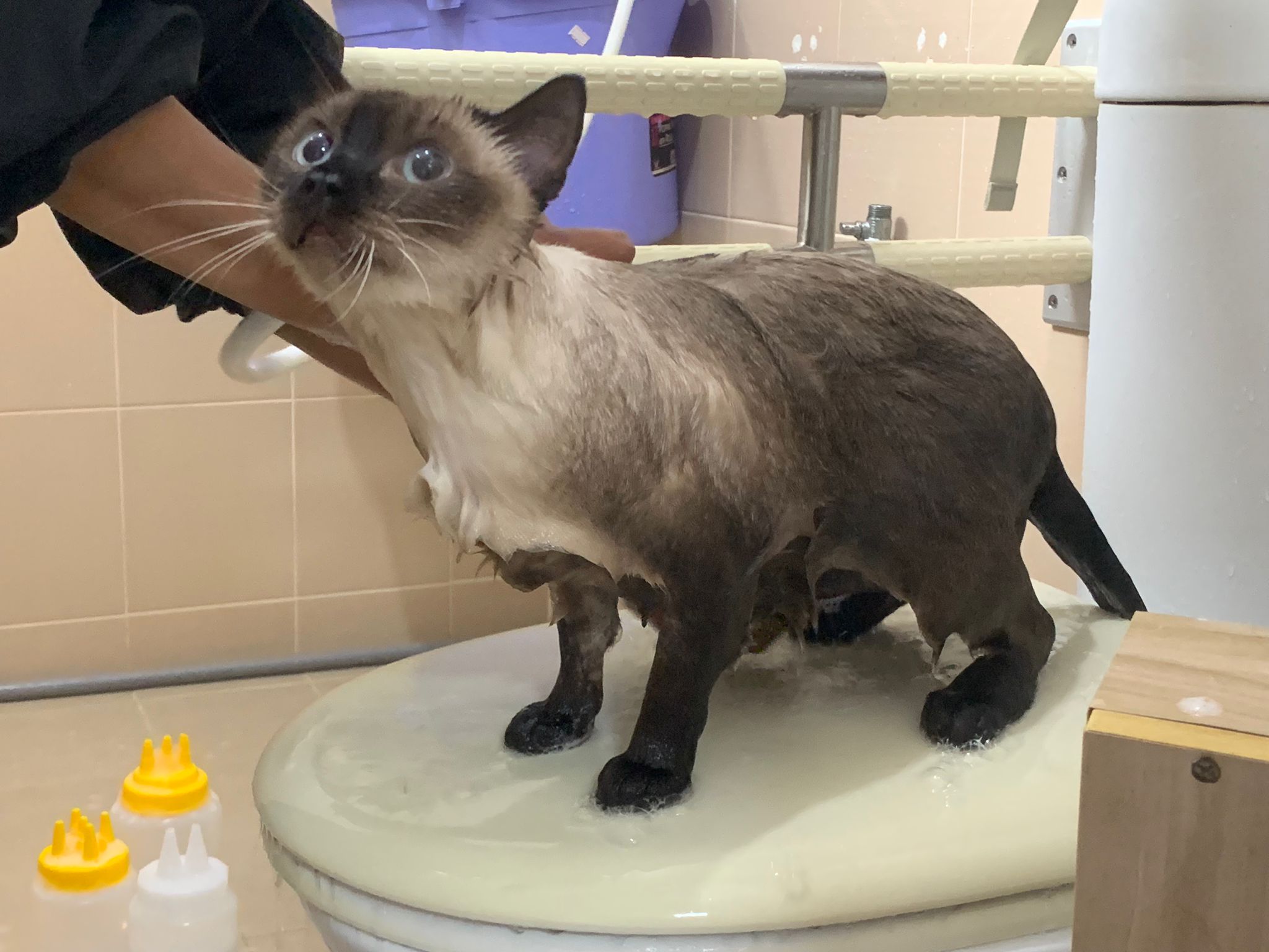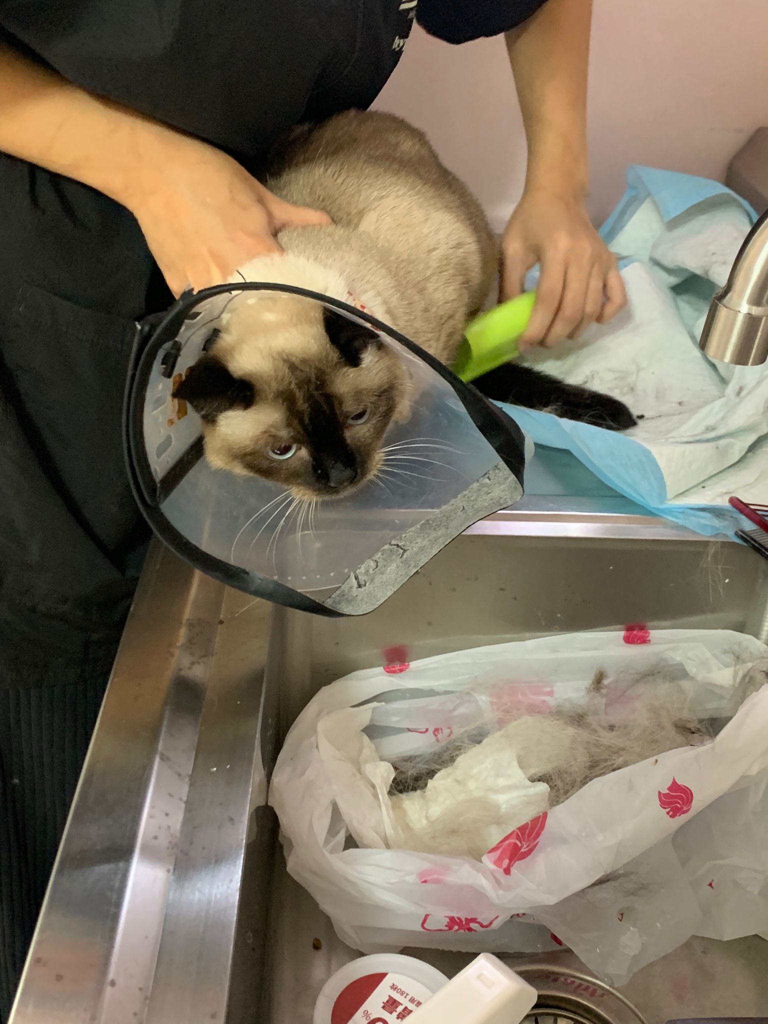 11.01am: 2 groomers reach. Tao is the 3rd to groom. g2 cut her nails and do the pre bath stuff first. She seduce tao w ciao treat at first so she is safe. G2 told me she gave “my cats” ketanine treatment, so not sure is it everyone have that. Generally tao is fine today, not much restraint, can also blow dry.