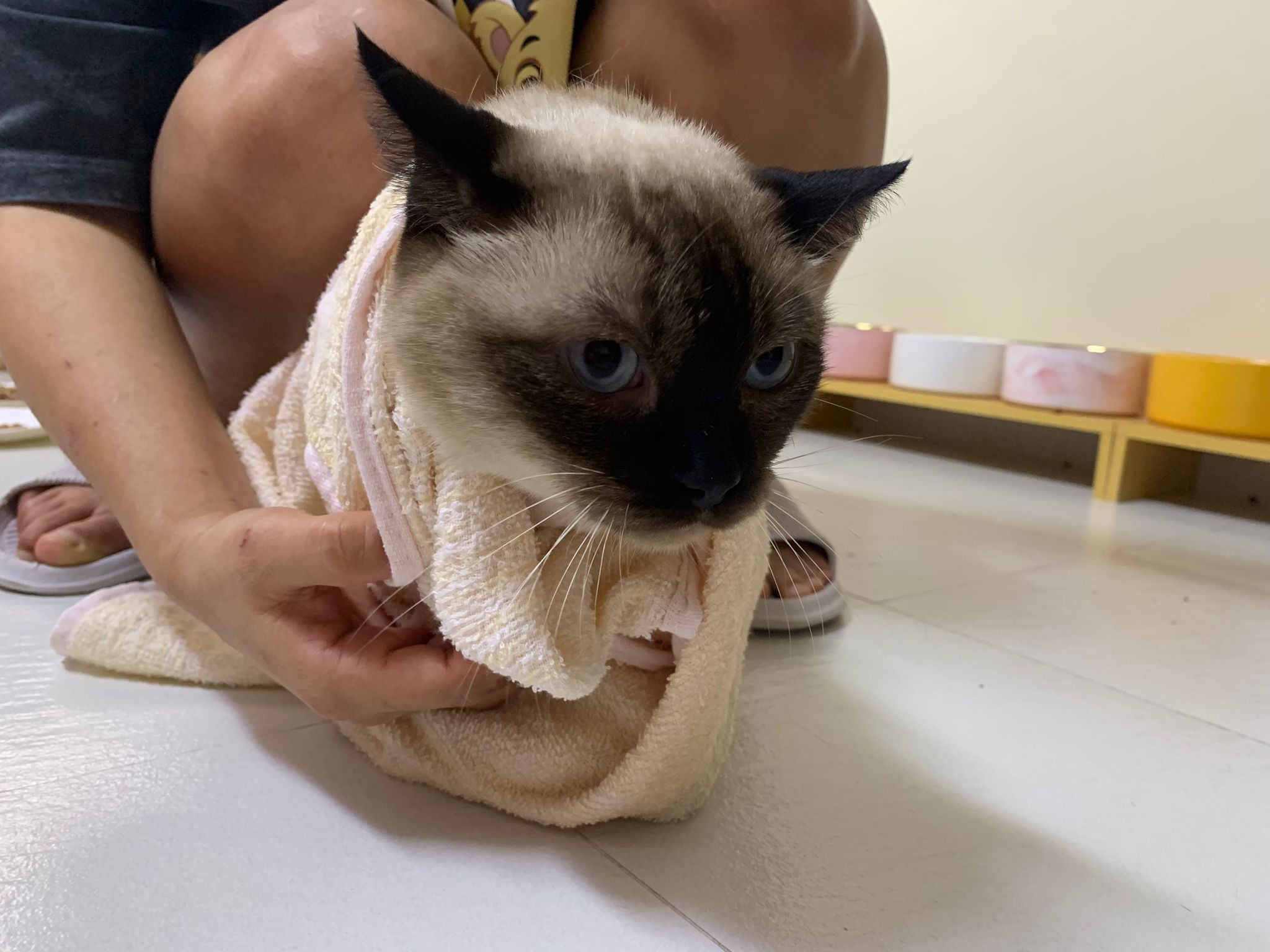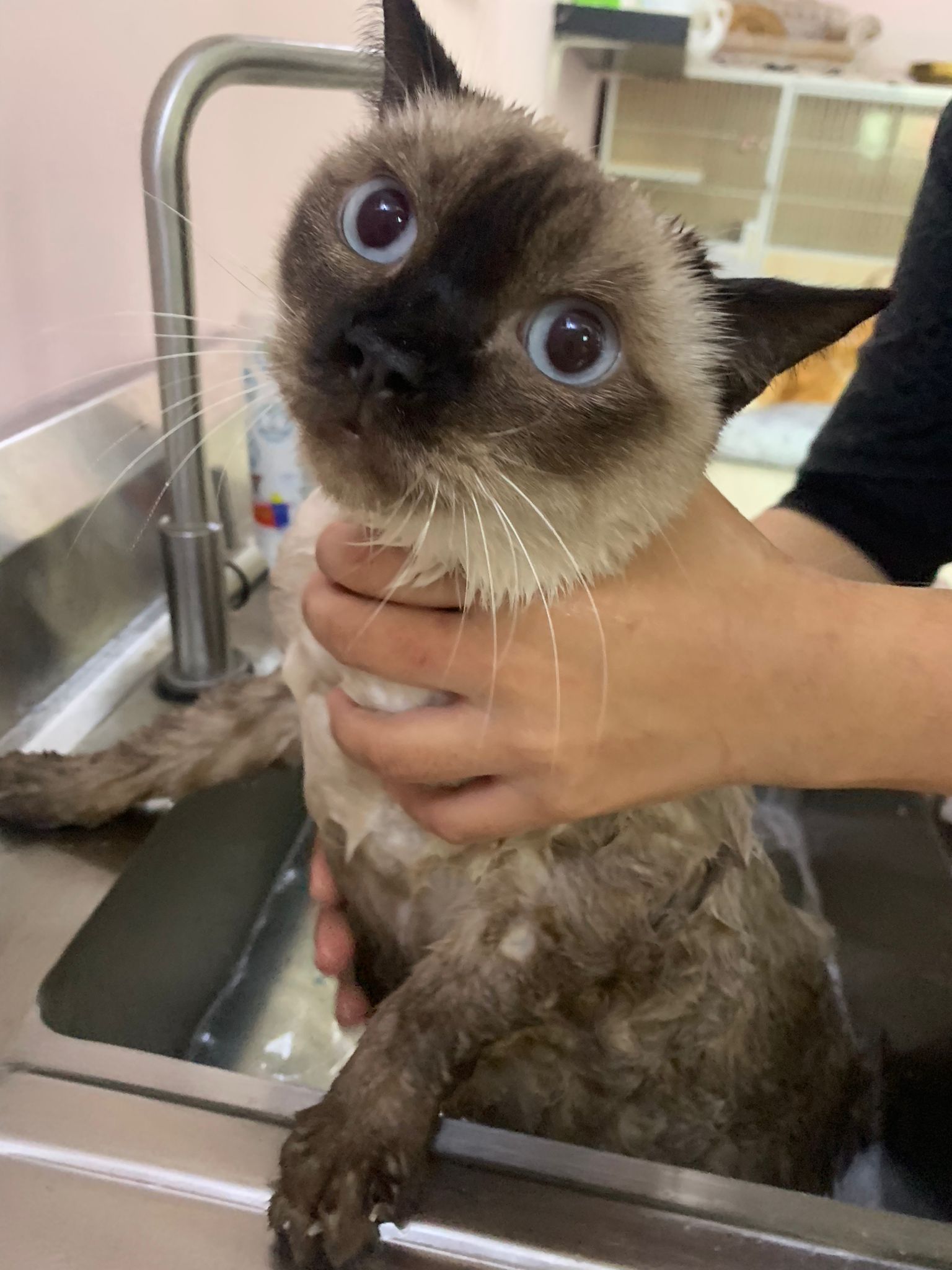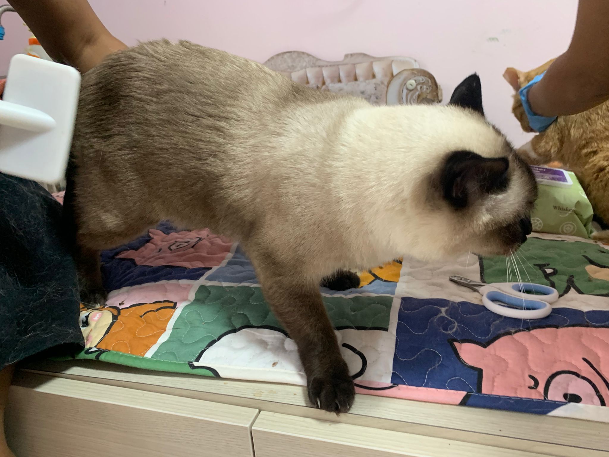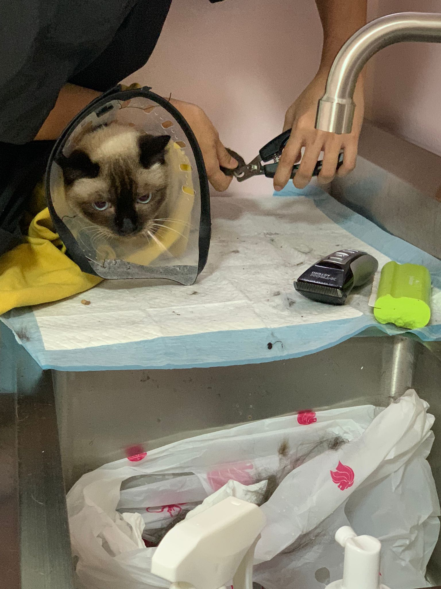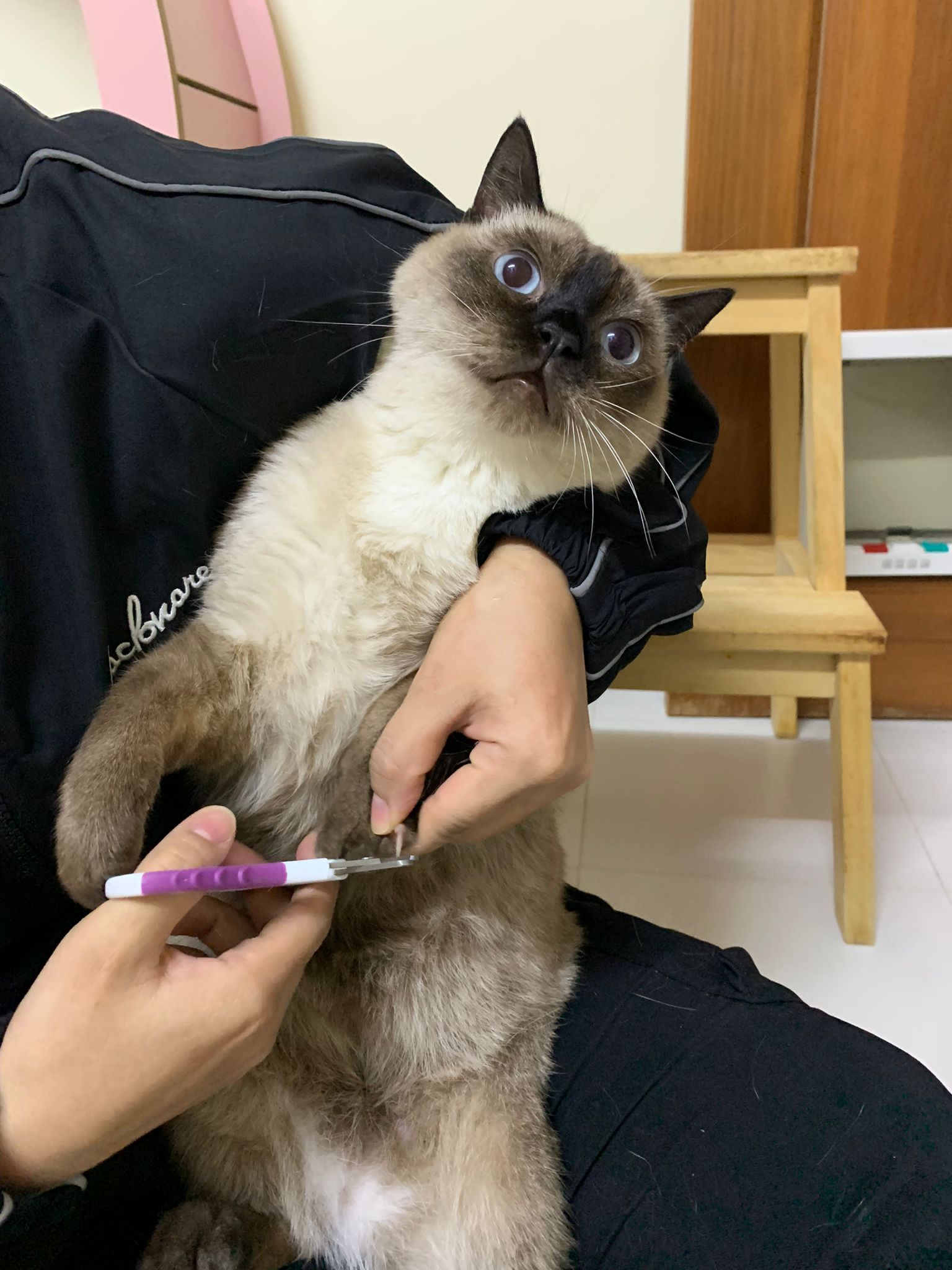 11.01am: 2 groomers reach. Tao is the 3rd to groom. g2 cut her nails and do the pre bath stuff first. She seduce tao w ciao treat at first so she is safe. G2 told me she gave “my cats” ketanine treatment, so not sure is it everyone have that. Generally tao is fine today, not much restraint, can also blow dry.