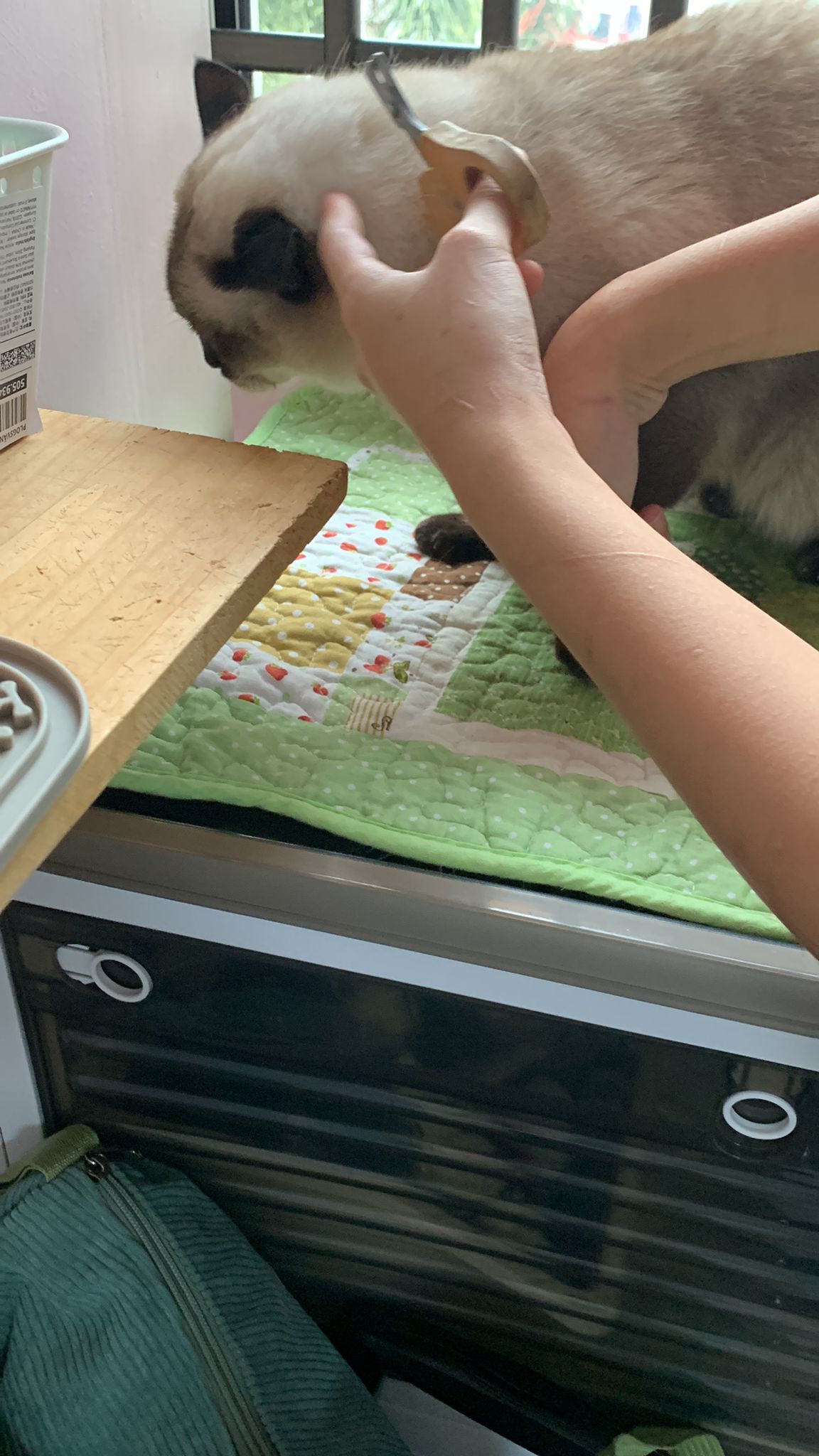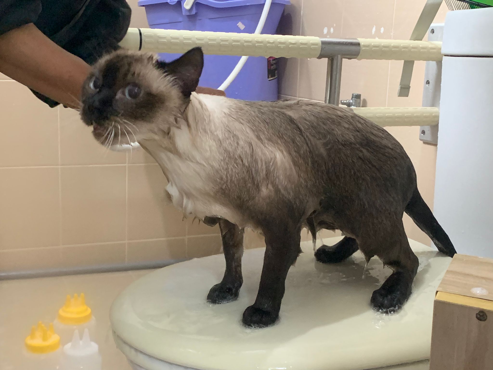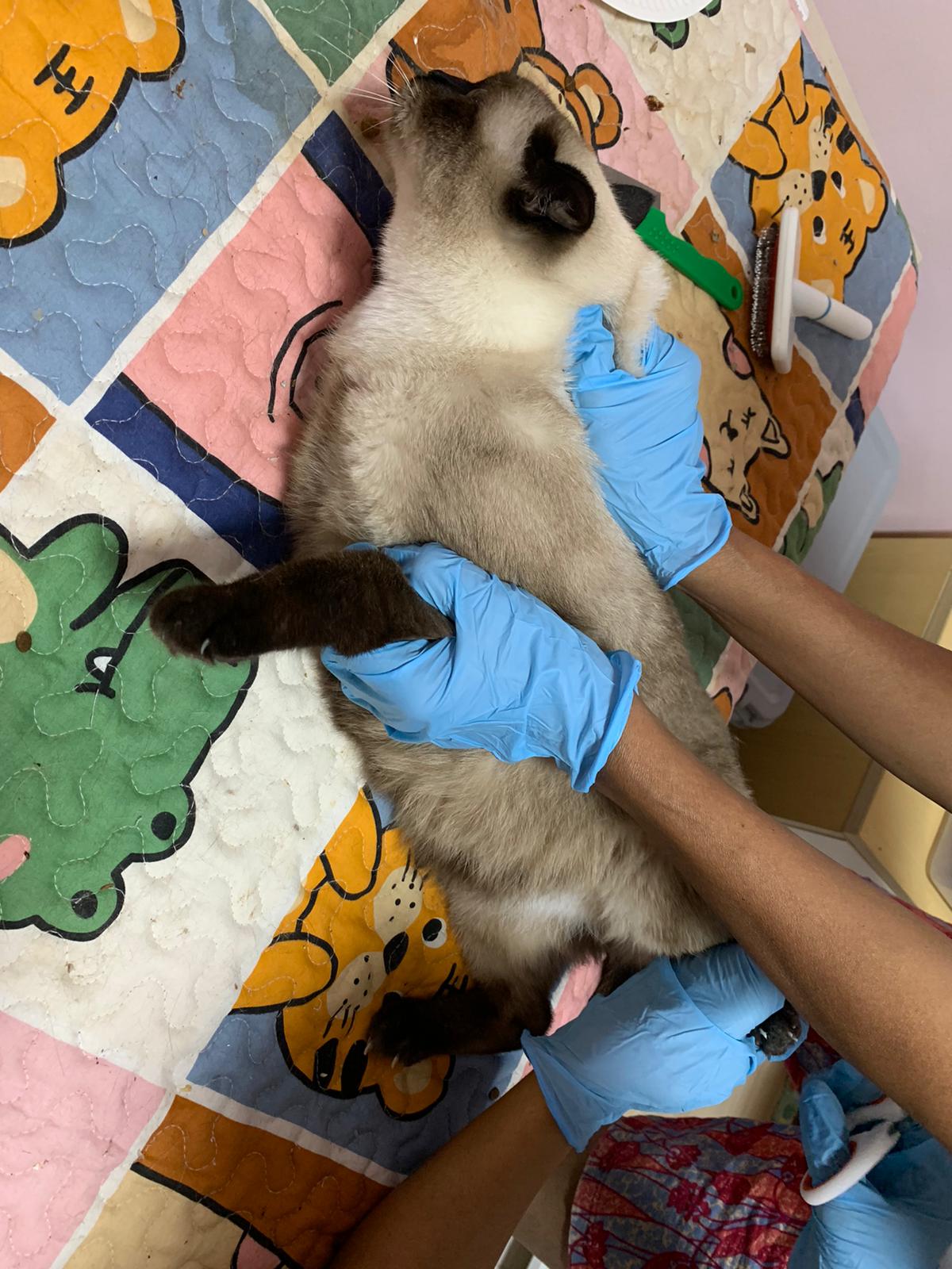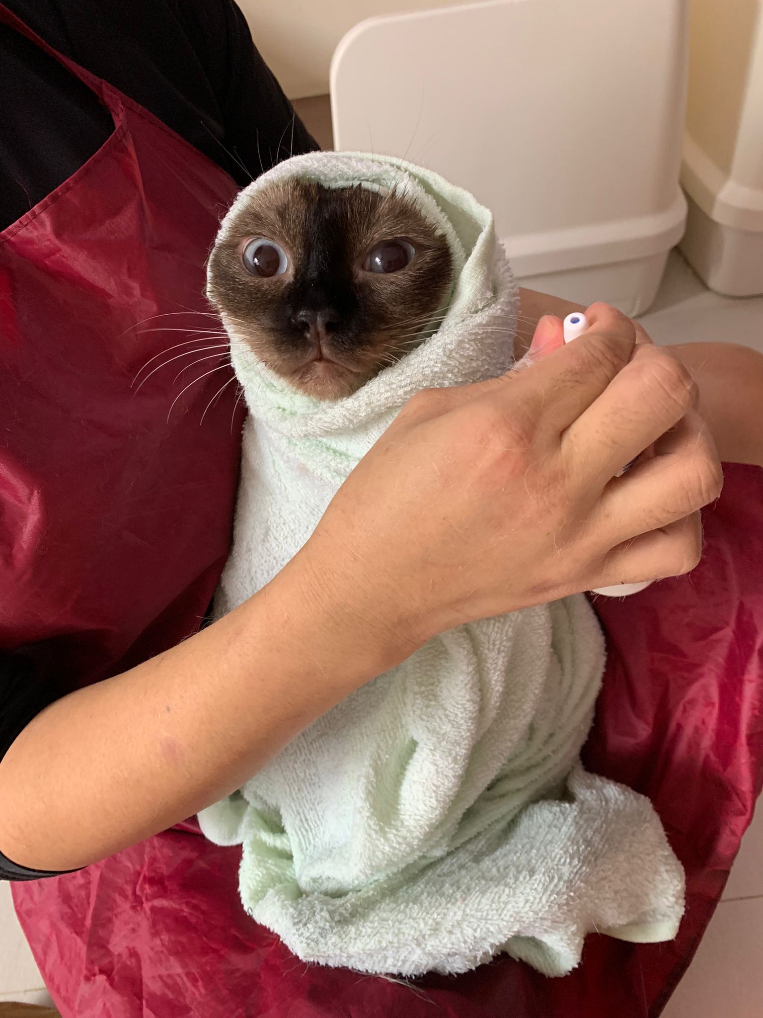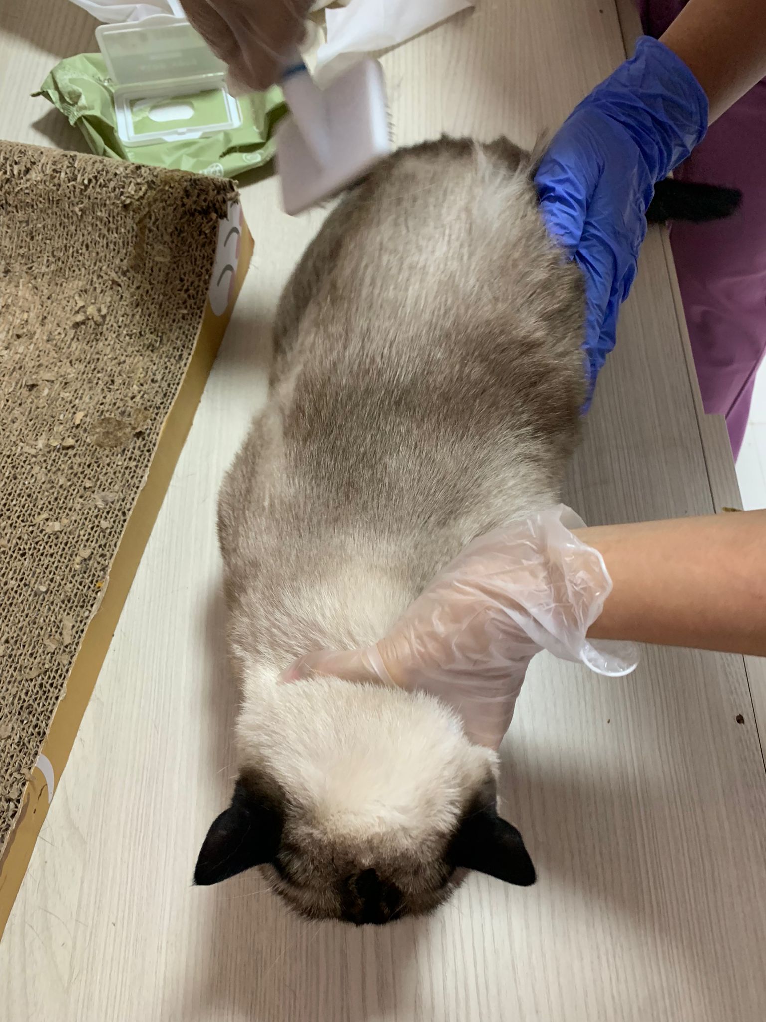 11.01am: 2 groomers reach. Tao is the 3rd to groom. g2 cut her nails and do the pre bath stuff first. She seduce tao w ciao treat at first so she is safe. G2 told me she gave “my cats” ketanine treatment, so not sure is it everyone have that. Generally tao is fine today, not much restraint, can also blow dry.