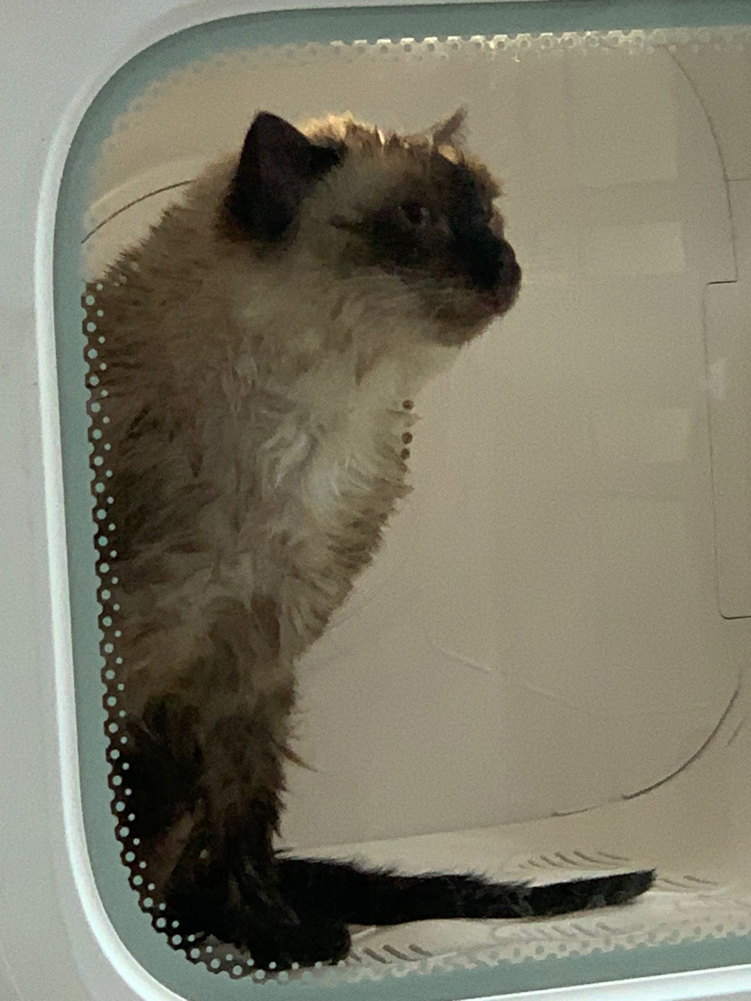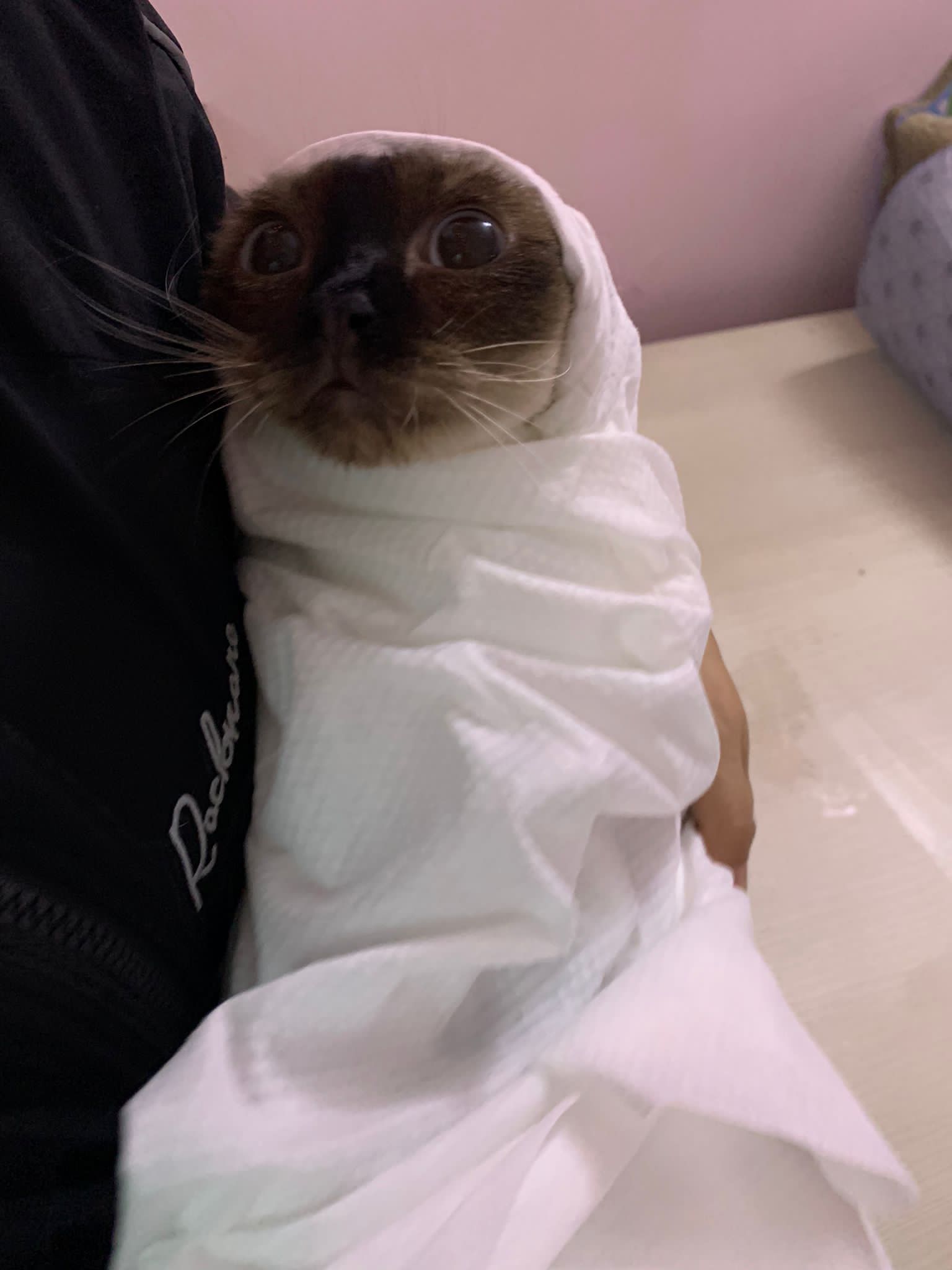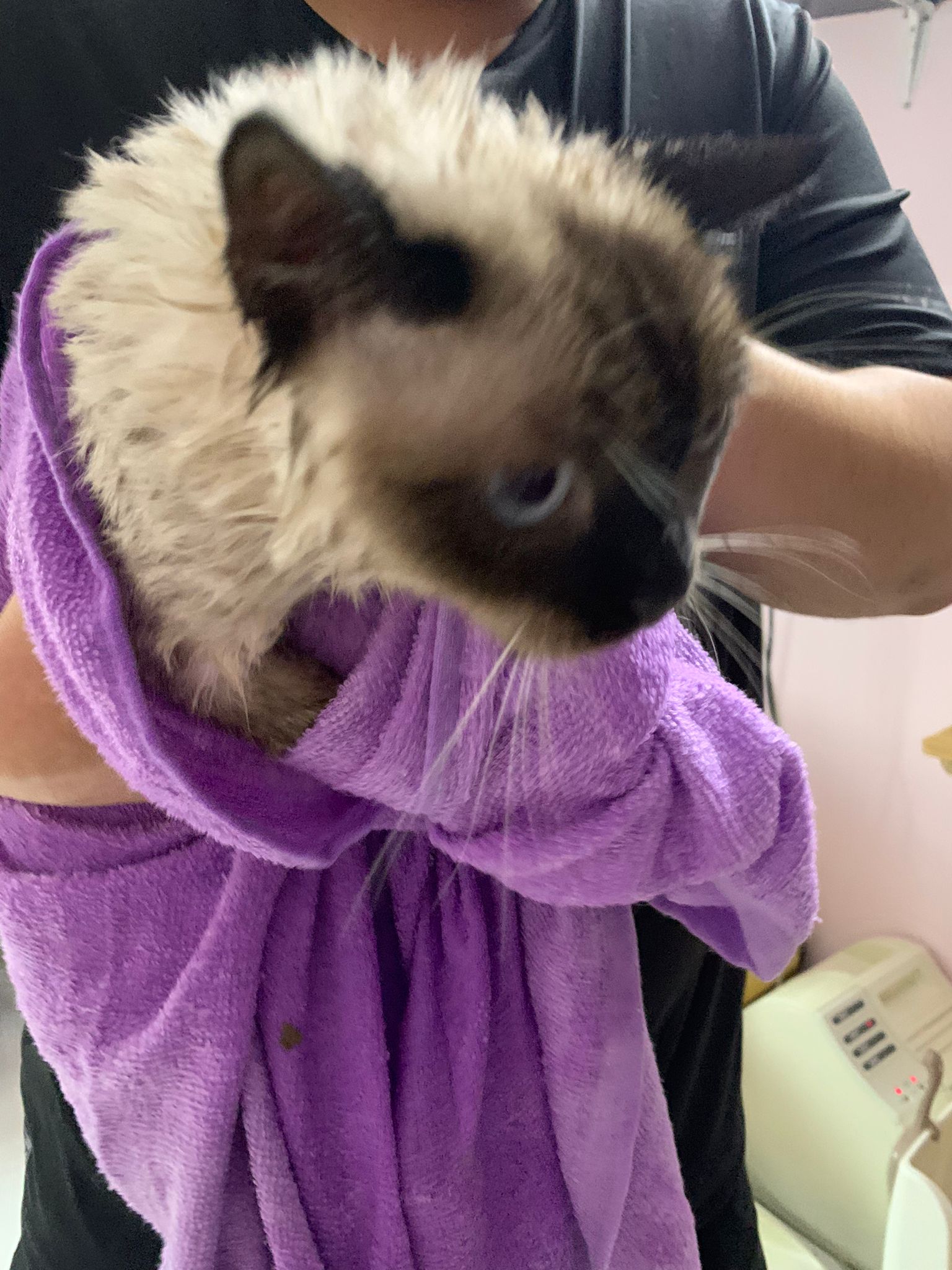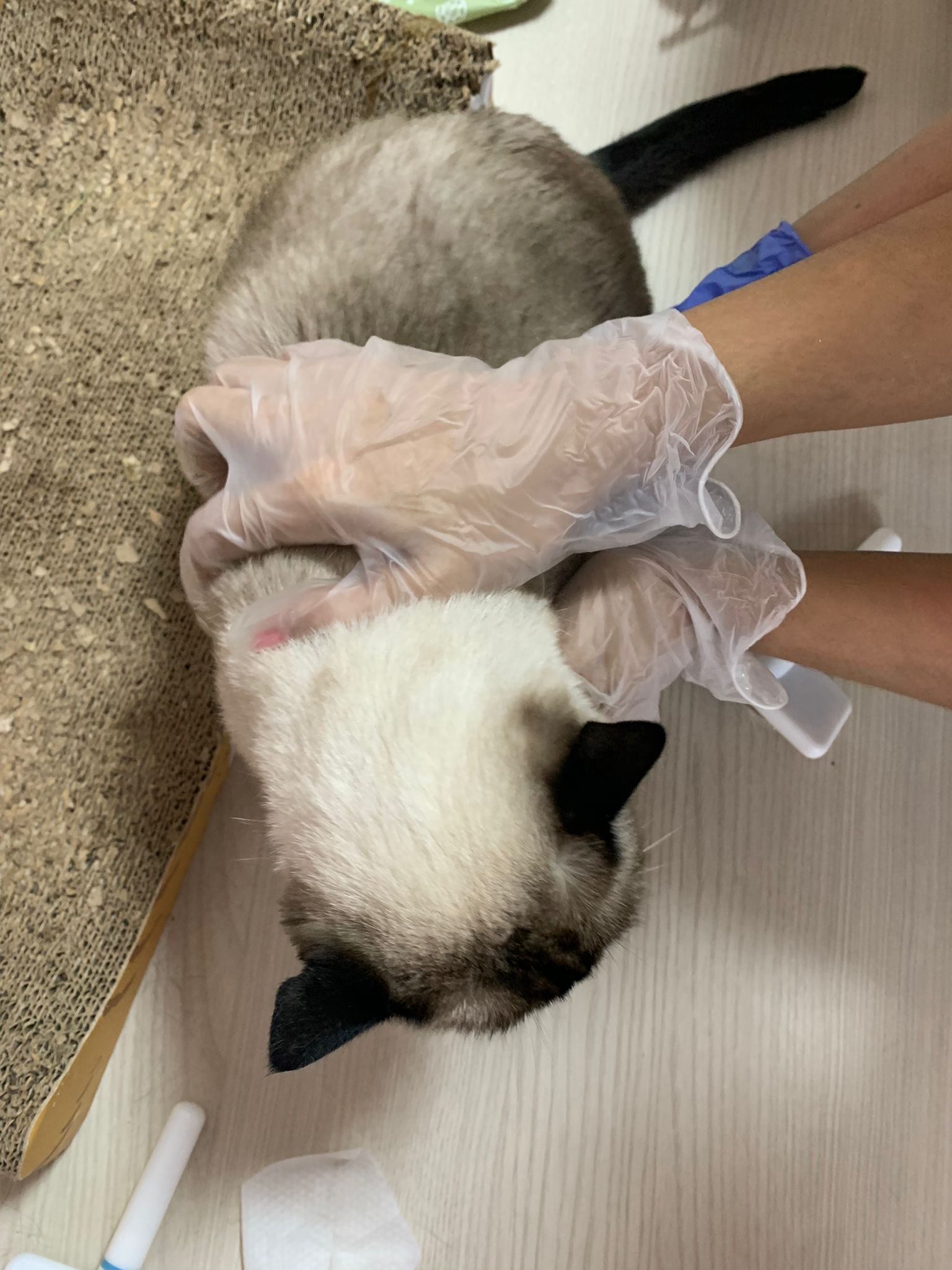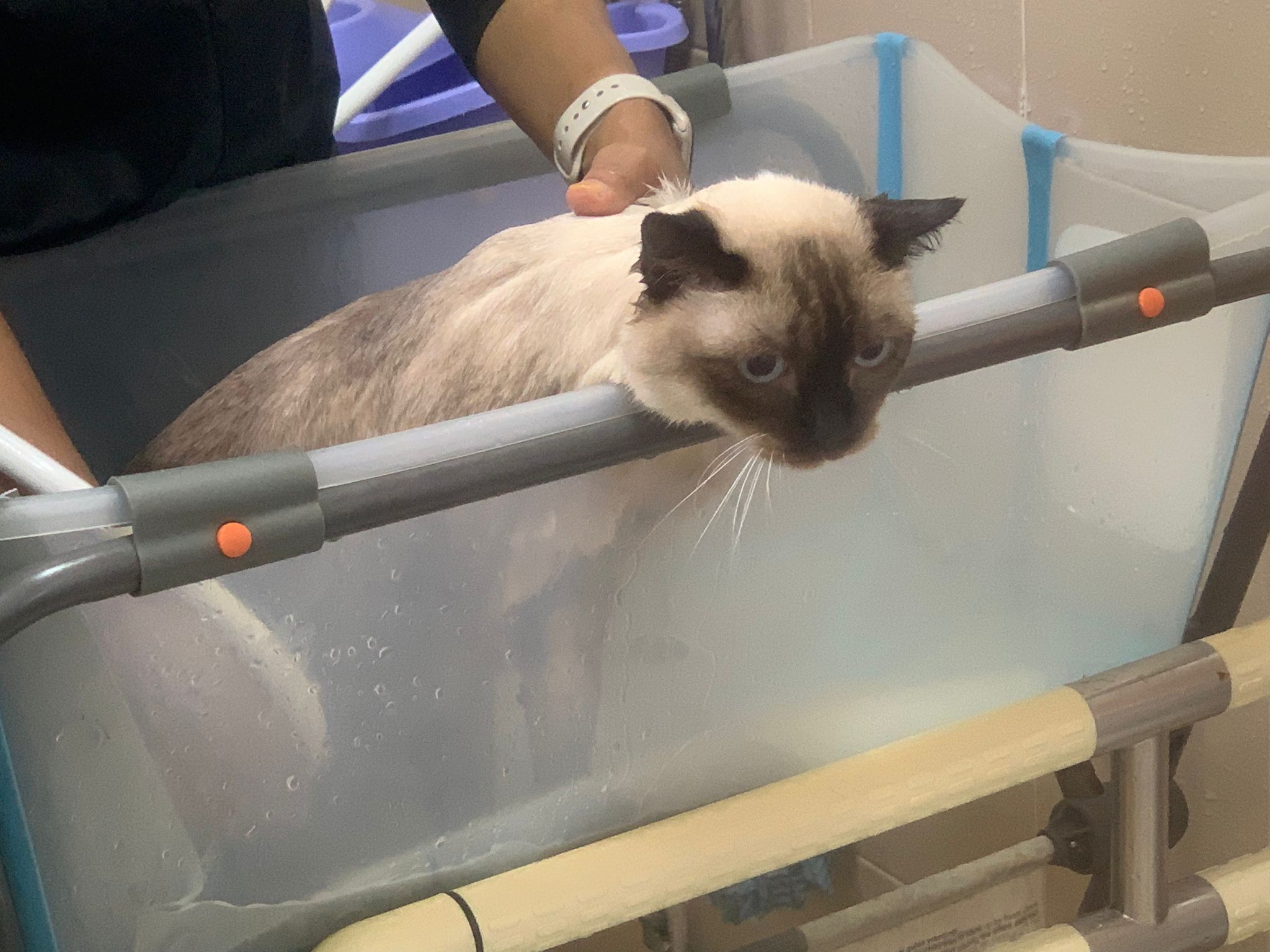 11.01am: 2 groomers reach. Tao is the 3rd to groom. g2 cut her nails and do the pre bath stuff first. She seduce tao w ciao treat at first so she is safe. G2 told me she gave “my cats” ketanine treatment, so not sure is it everyone have that. Generally tao is fine today, not much restraint, can also blow dry.