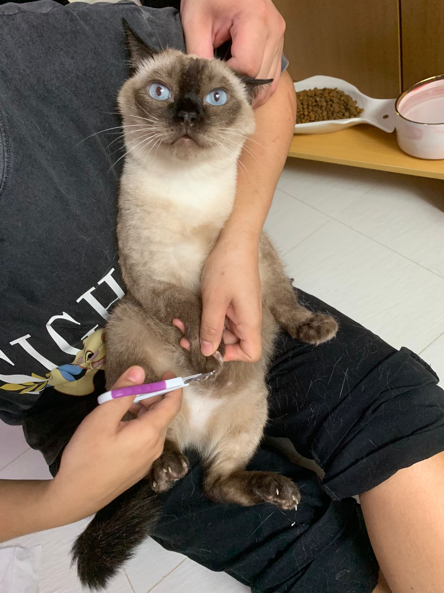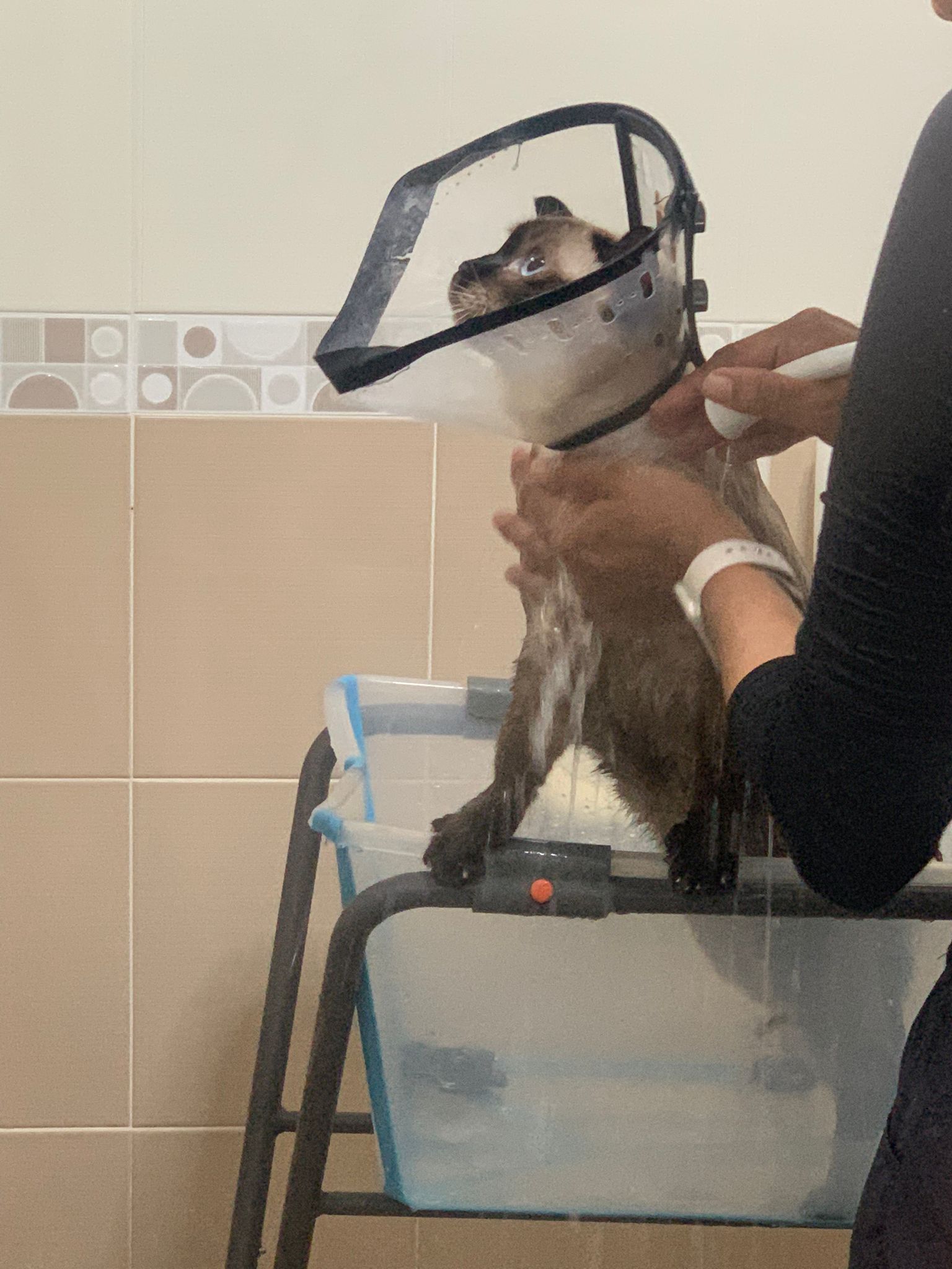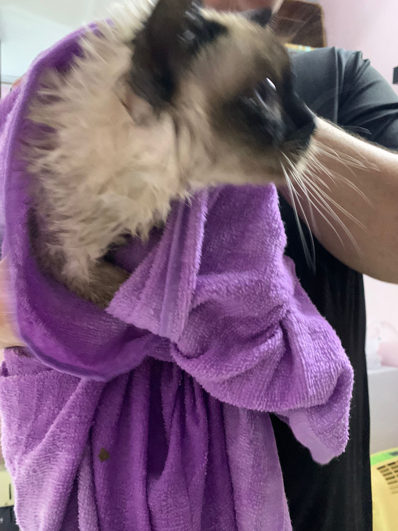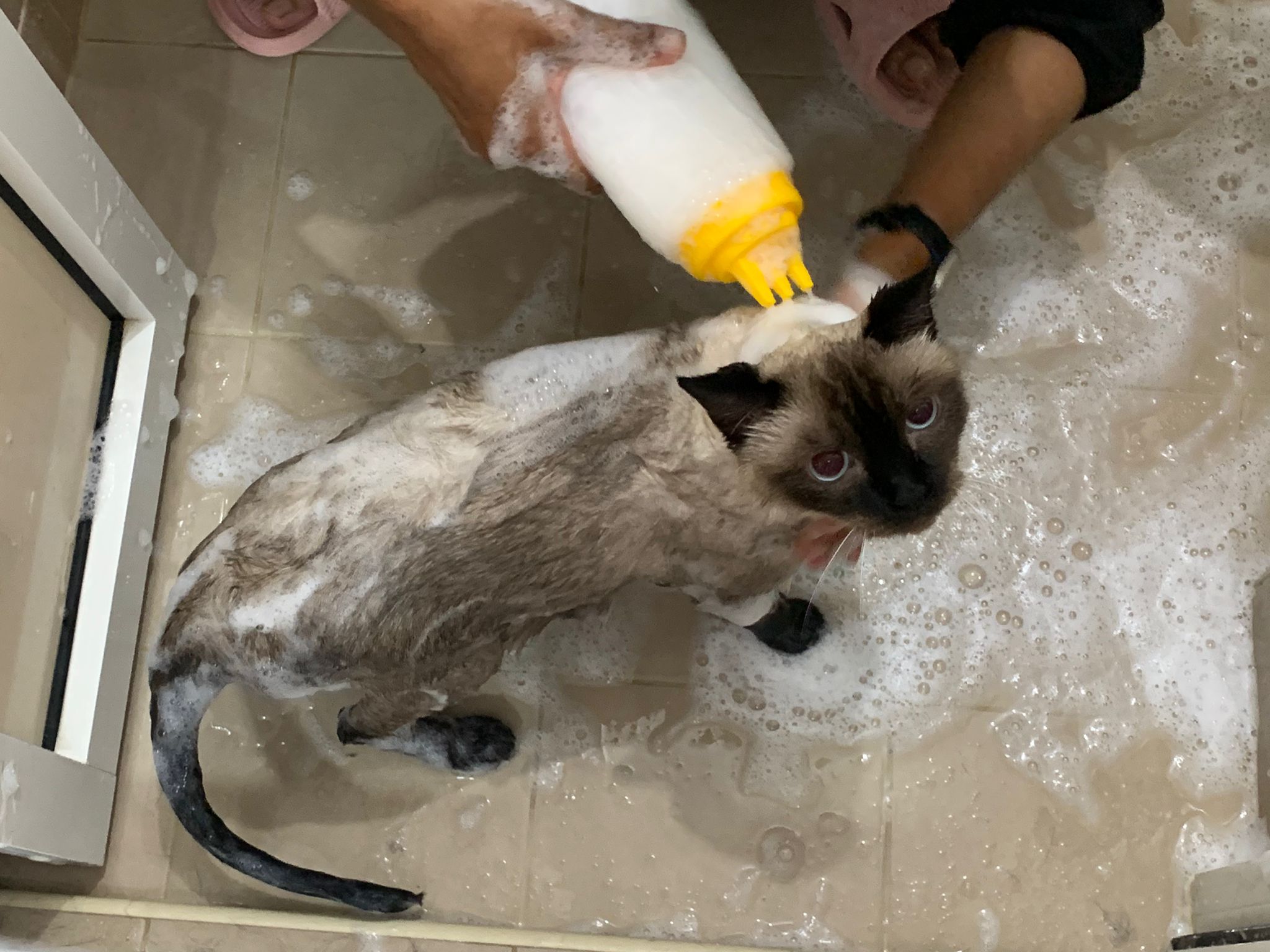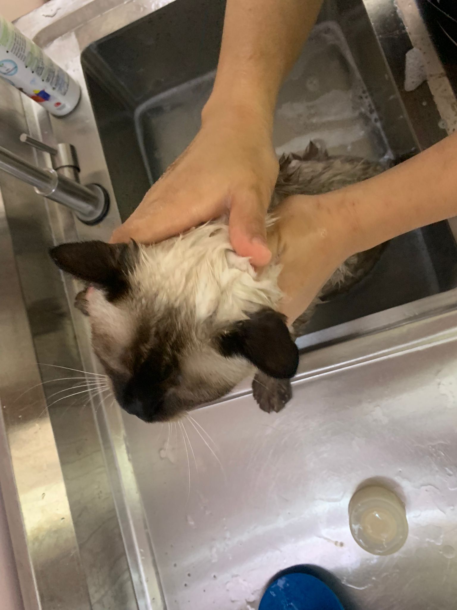 11.01am: 2 groomers reach. Tao is the 3rd to groom. g2 cut her nails and do the pre bath stuff first. She seduce tao w ciao treat at first so she is safe. G2 told me she gave “my cats” ketanine treatment, so not sure is it everyone have that. Generally tao is fine today, not much restraint, can also blow dry.