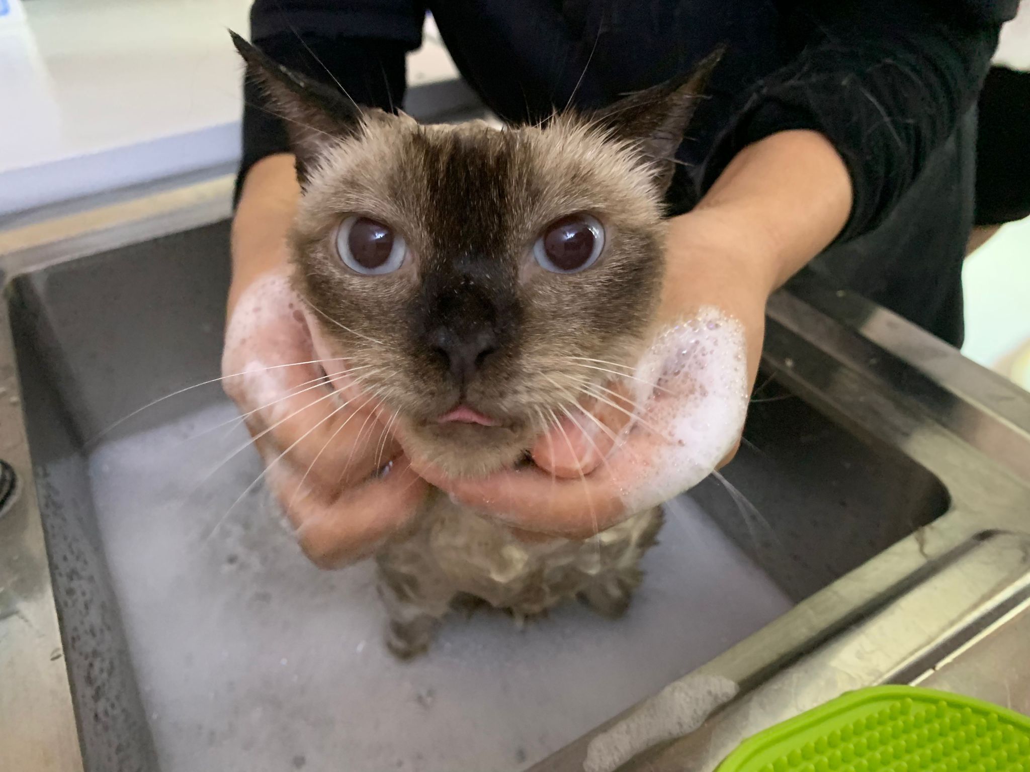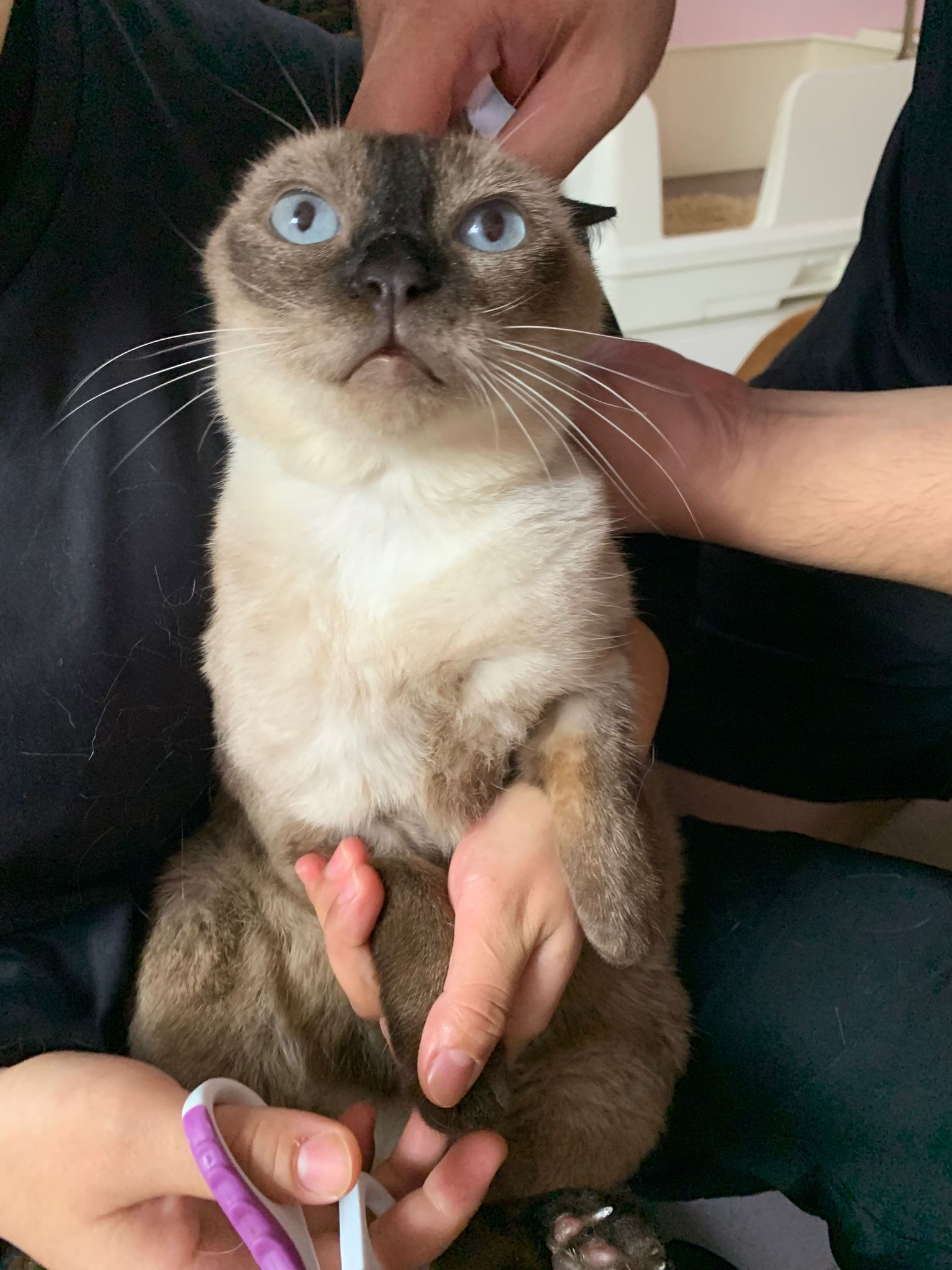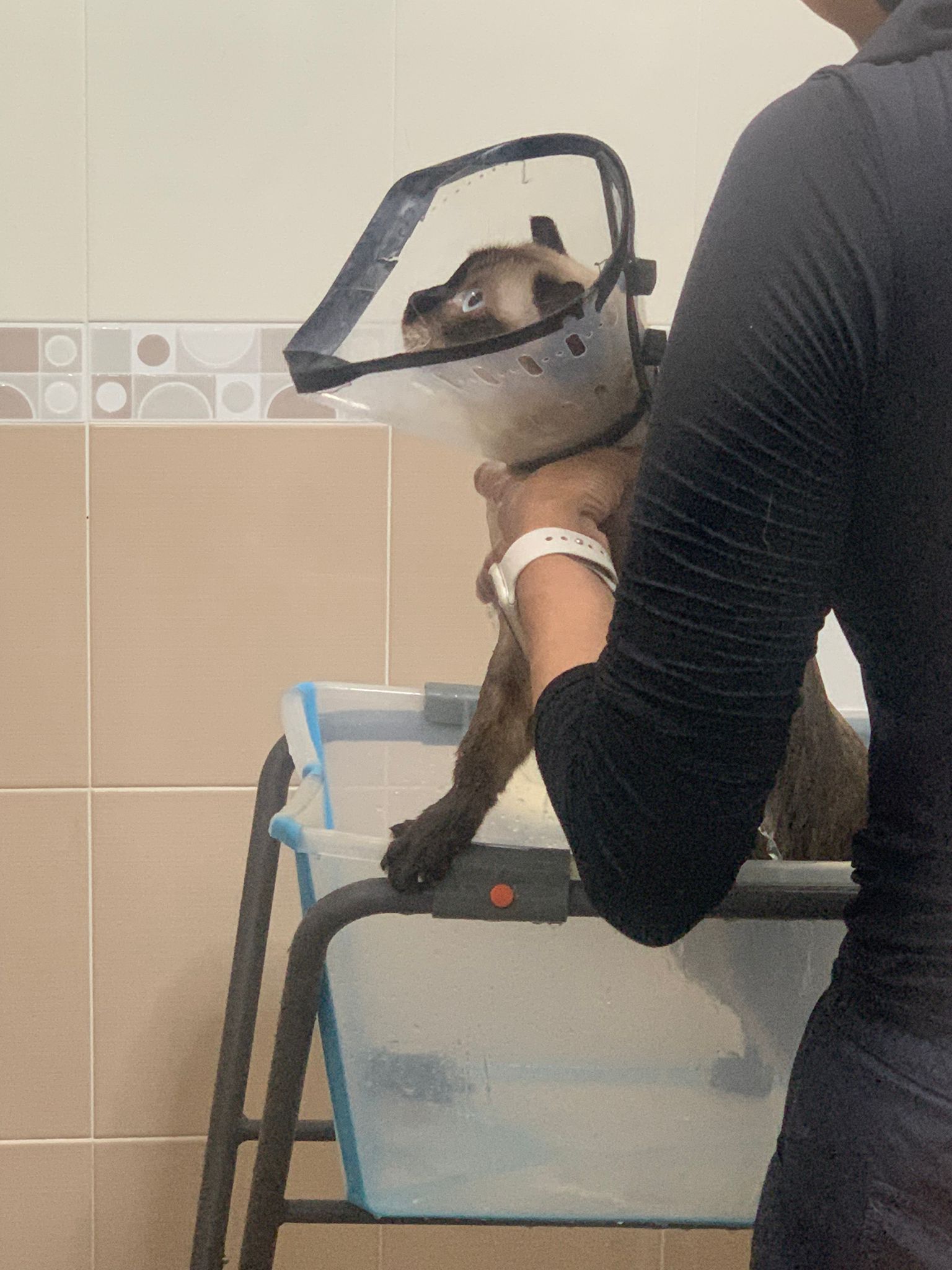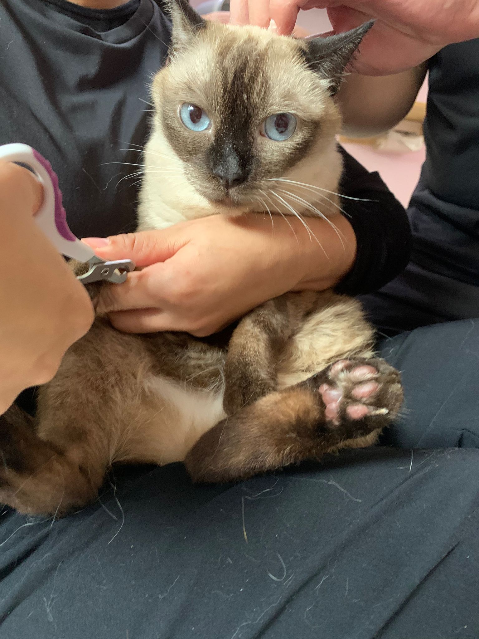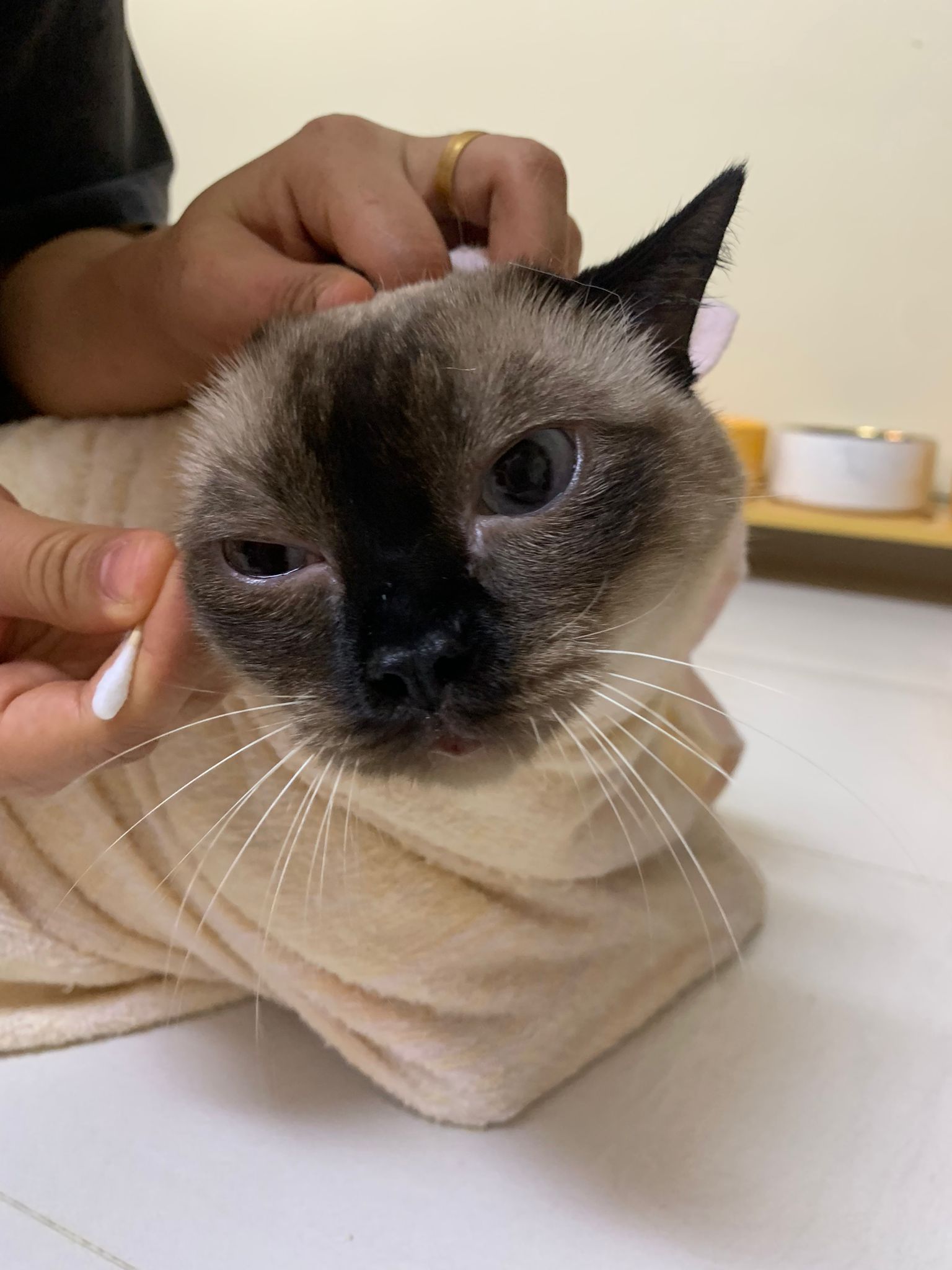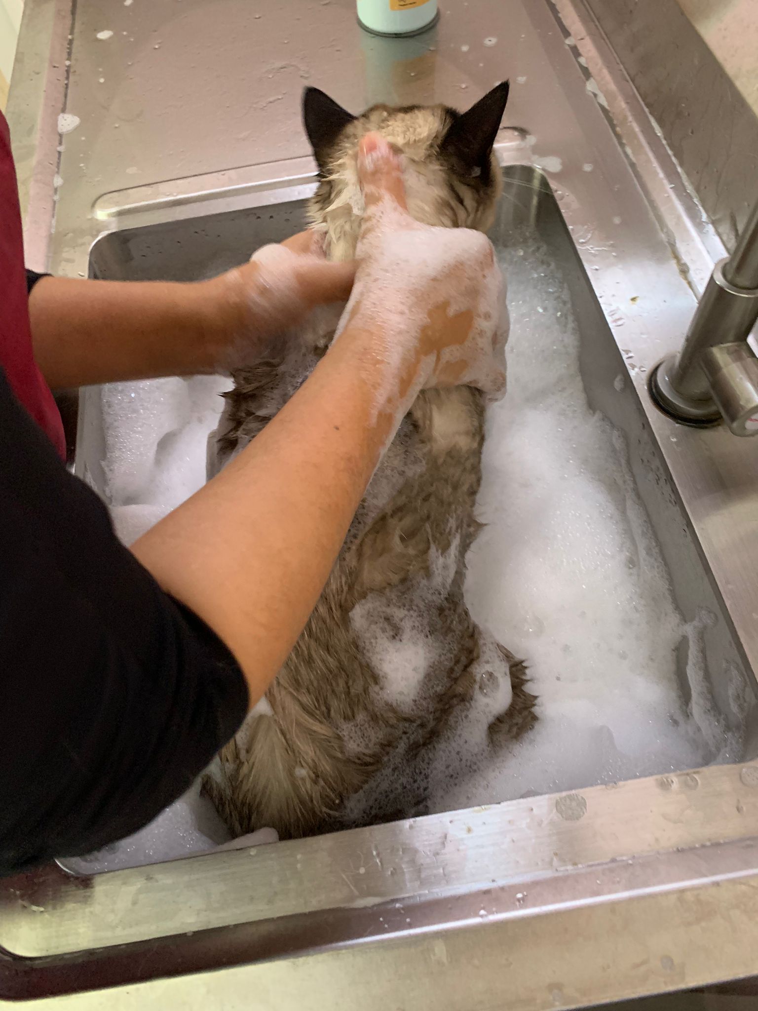 11.01am: 2 groomers reach. Tao is the 3rd to groom. g2 cut her nails and do the pre bath stuff first. She seduce tao w ciao treat at first so she is safe. G2 told me she gave “my cats” ketanine treatment, so not sure is it everyone have that. Generally tao is fine today, not much restraint, can also blow dry.