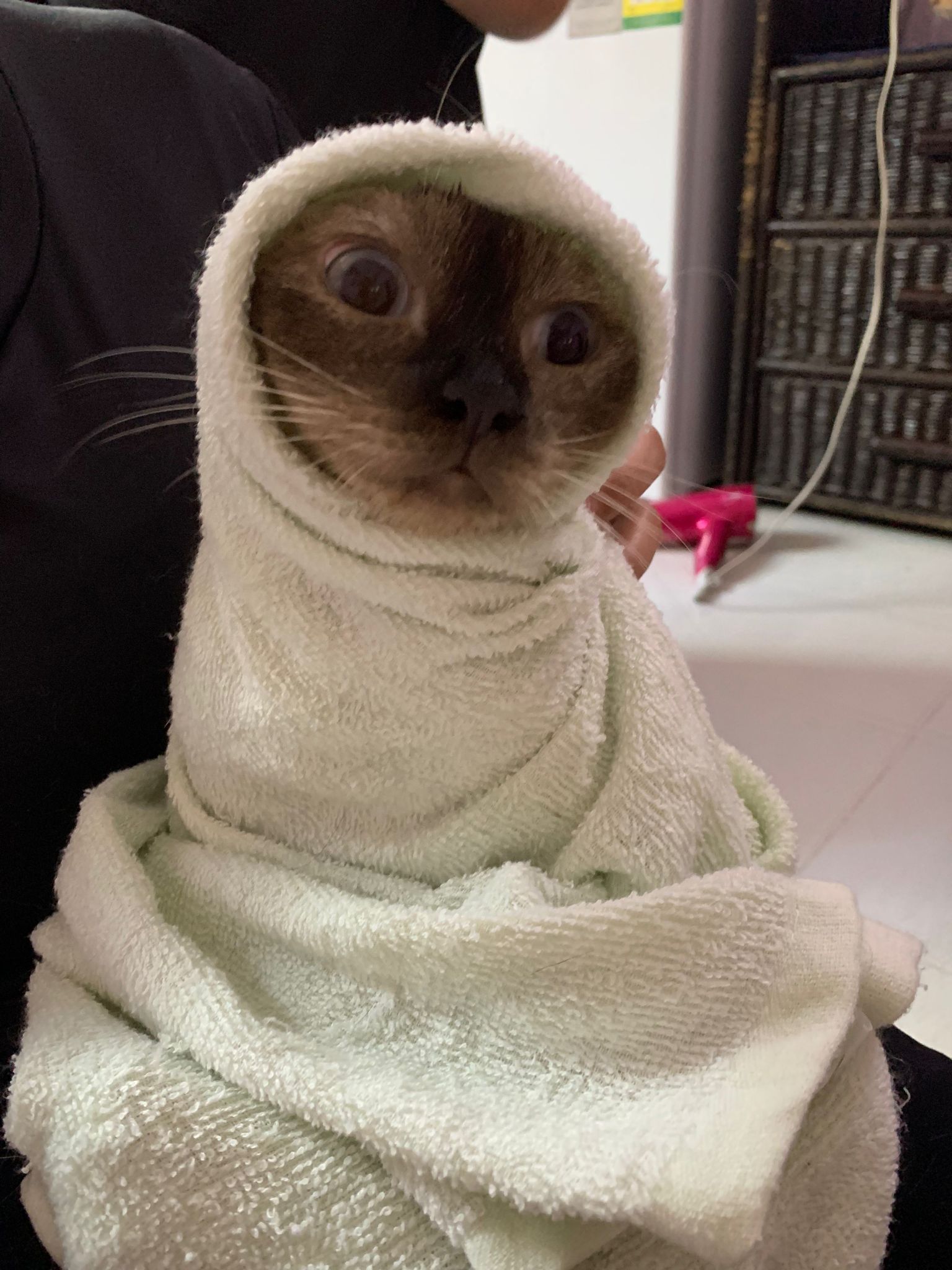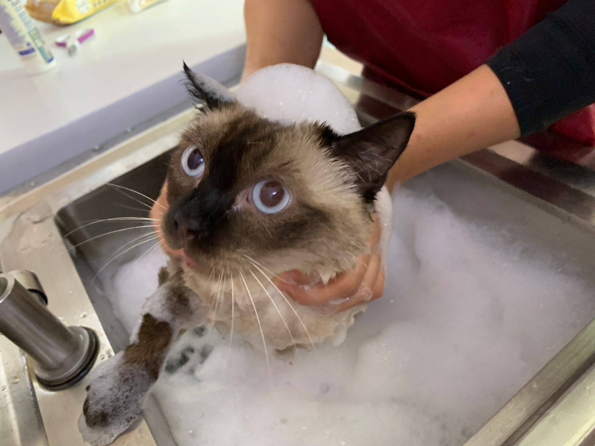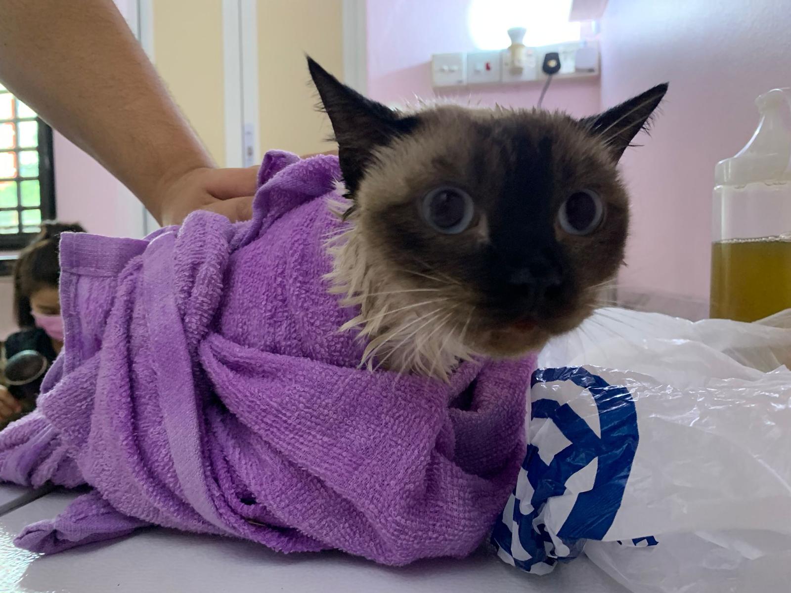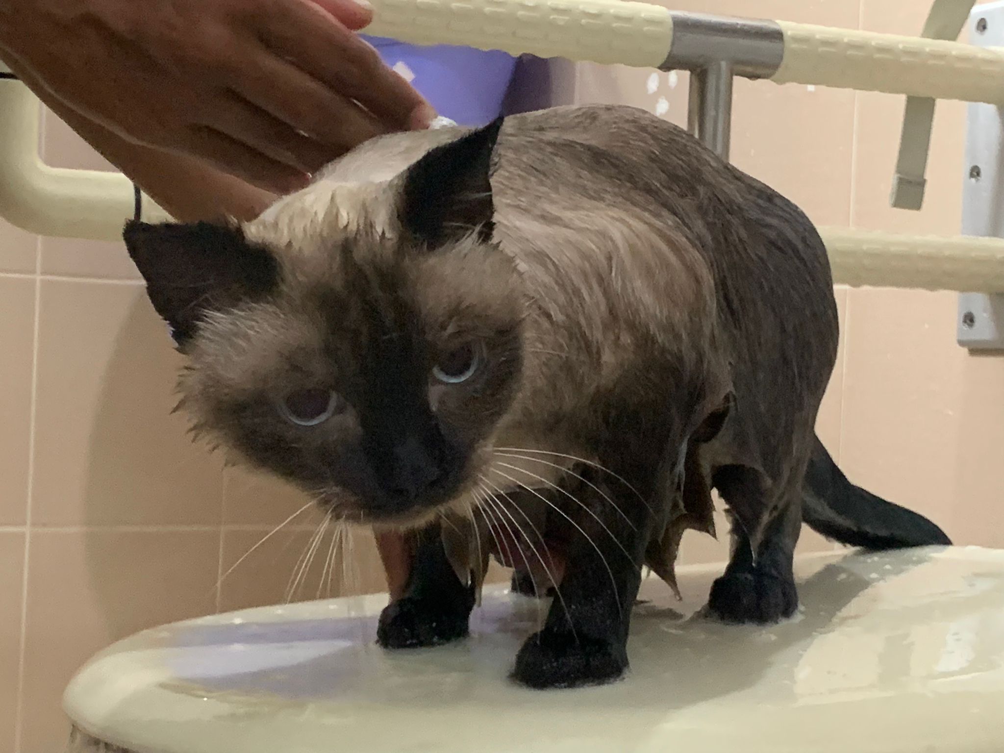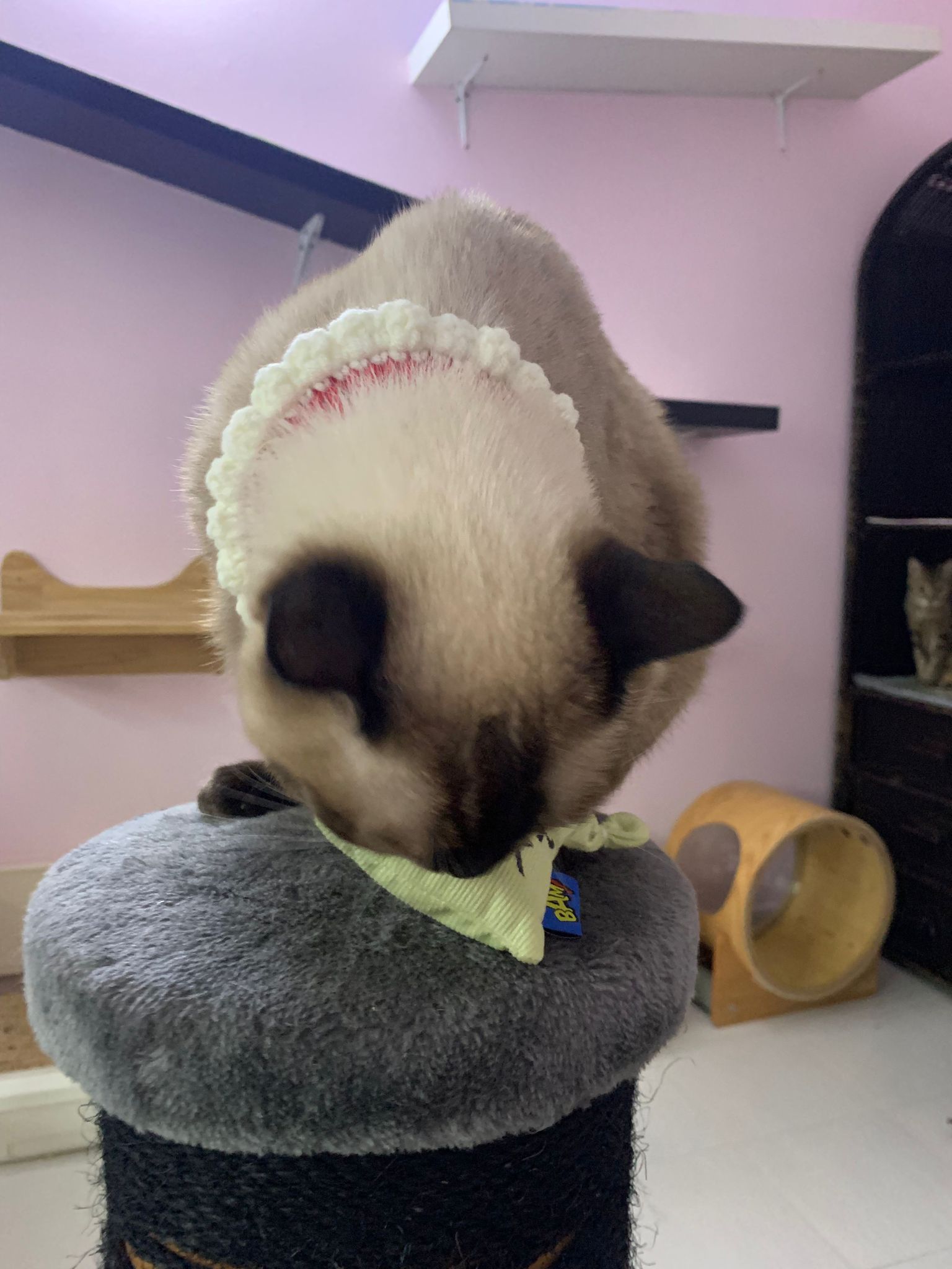 11.01am: 2 groomers reach. Tao is the 3rd to groom. g2 cut her nails and do the pre bath stuff first. She seduce tao w ciao treat at first so she is safe. G2 told me she gave “my cats” ketanine treatment, so not sure is it everyone have that. Generally tao is fine today, not much restraint, can also blow dry.