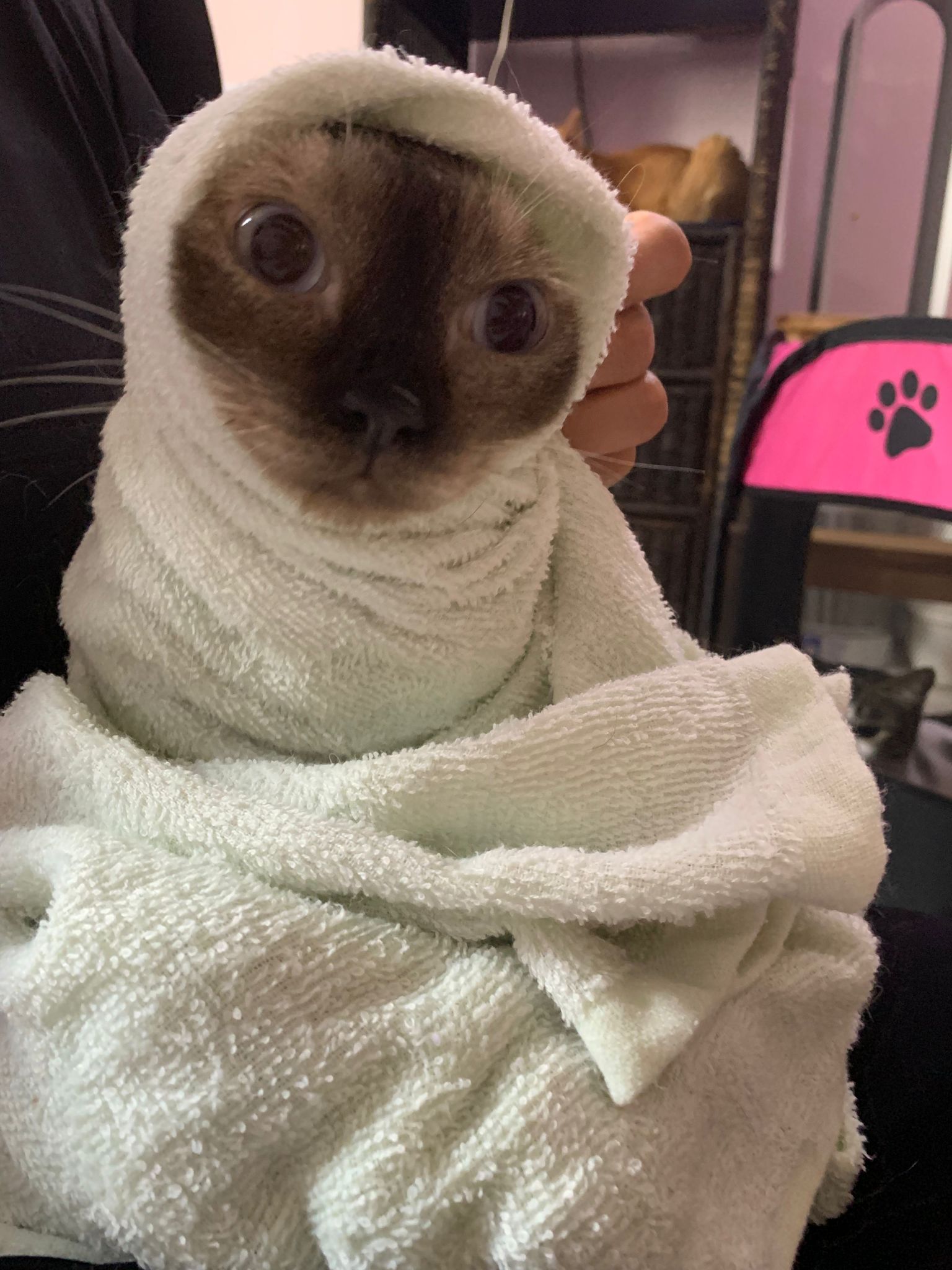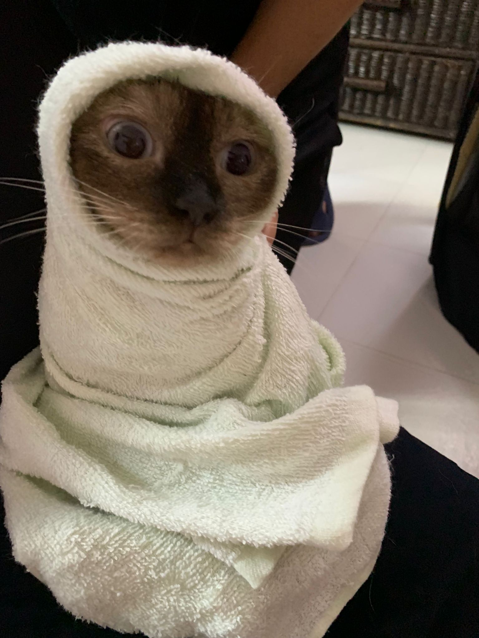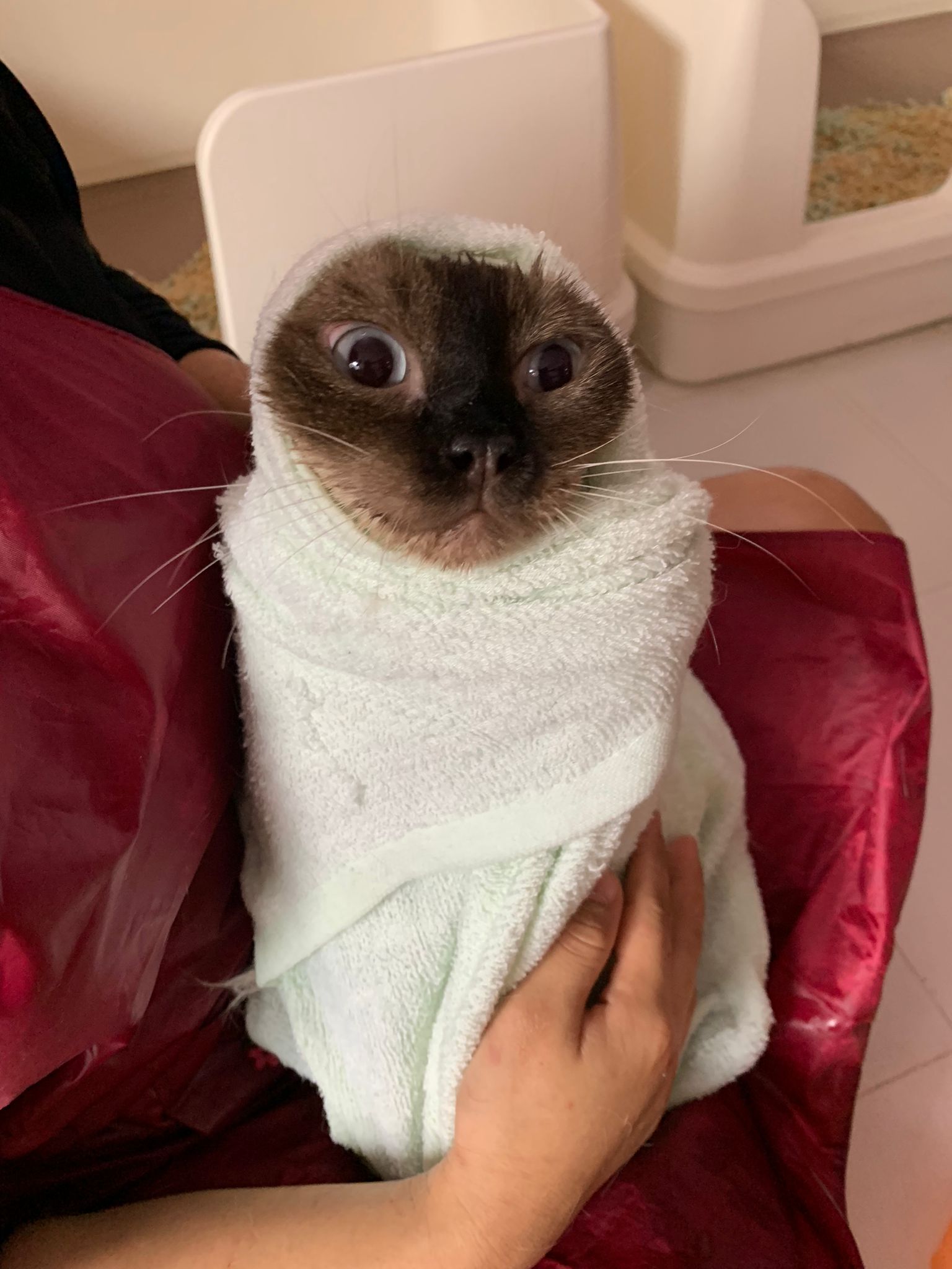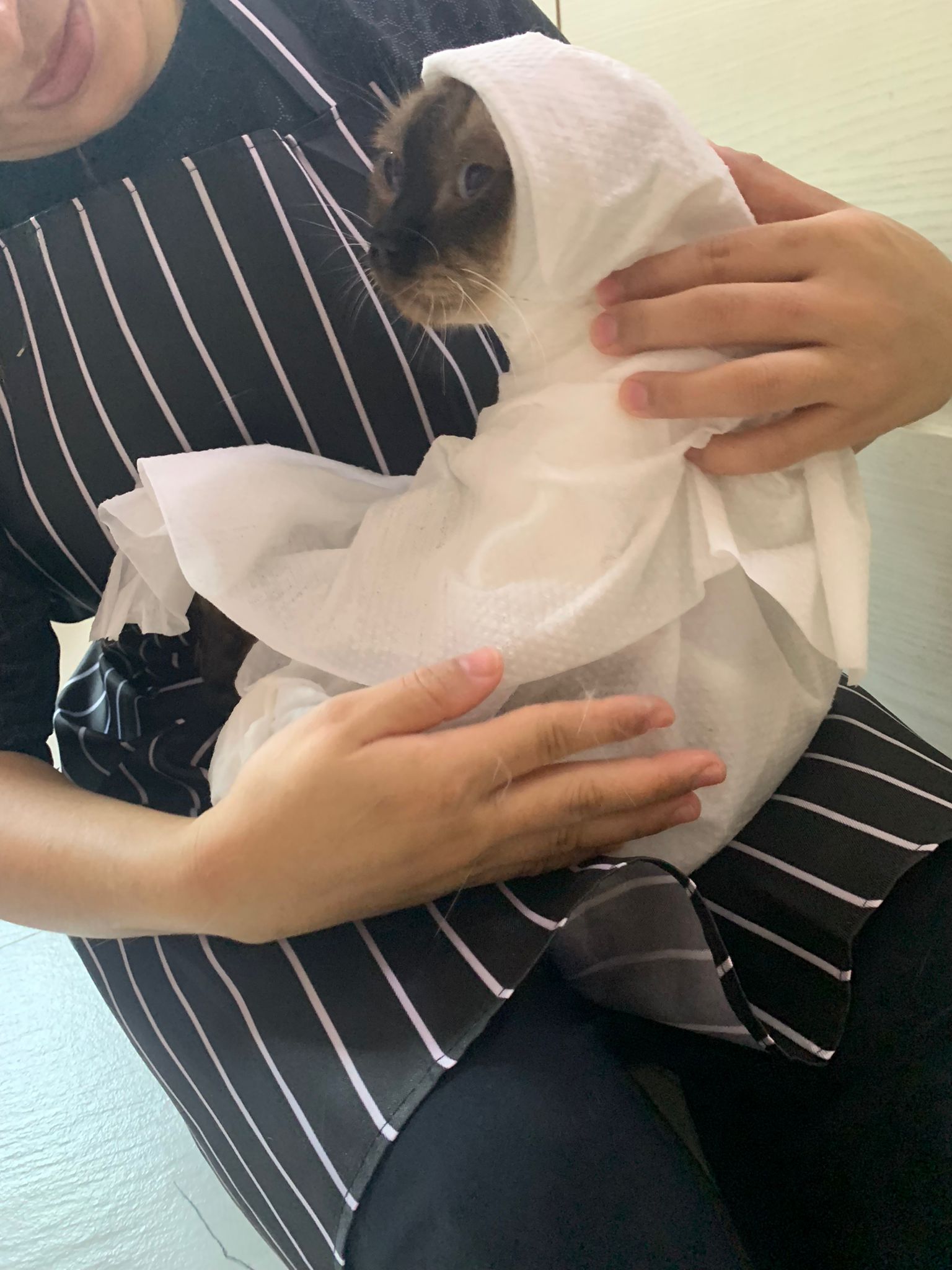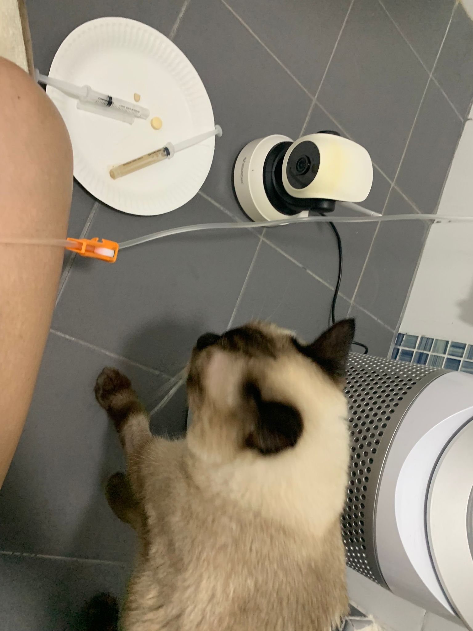 11.01am: 2 groomers reach. Tao is the 3rd to groom. g2 cut her nails and do the pre bath stuff first. She seduce tao w ciao treat at first so she is safe. G2 told me she gave “my cats” ketanine treatment, so not sure is it everyone have that. Generally tao is fine today, not much restraint, can also blow dry.