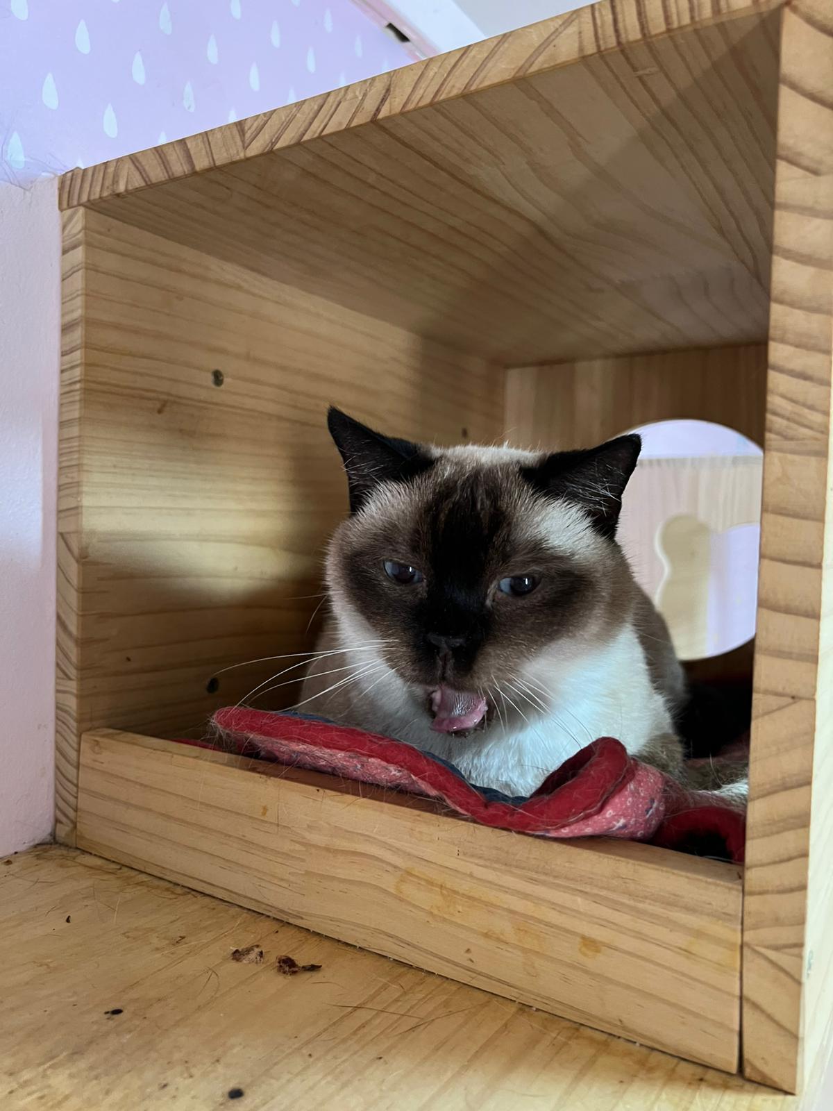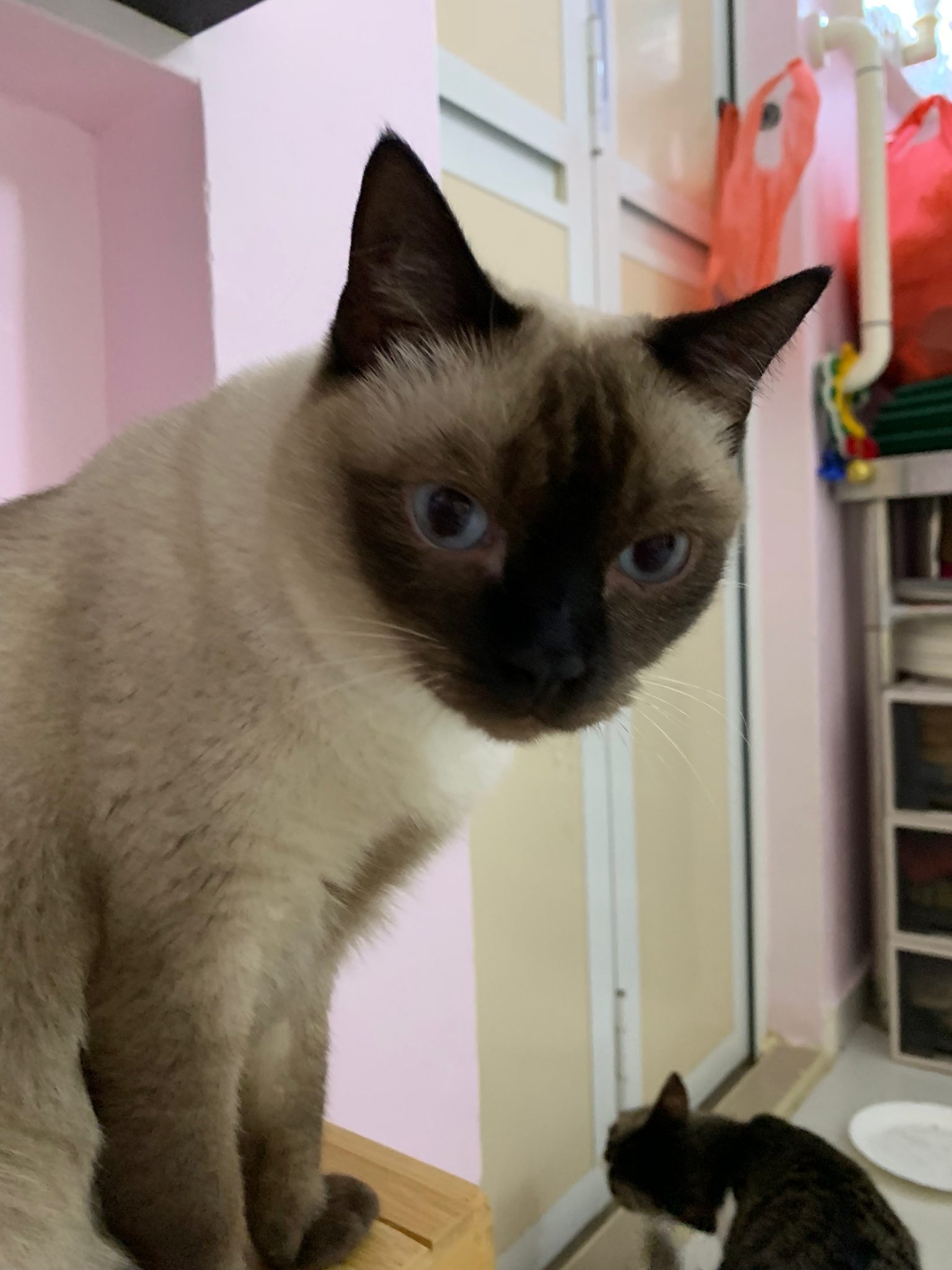 A princess like cat, full of attitude. Many ask why she is not adopted yet when she is so pretty… cos it’s more of u dare to adopt her or not? U willing to tolerate her or not? More suitable for single cat household cos she bully cats, esp male cats and she anyhow poo n pee if the bin not clean. She is not suitable for first timer.