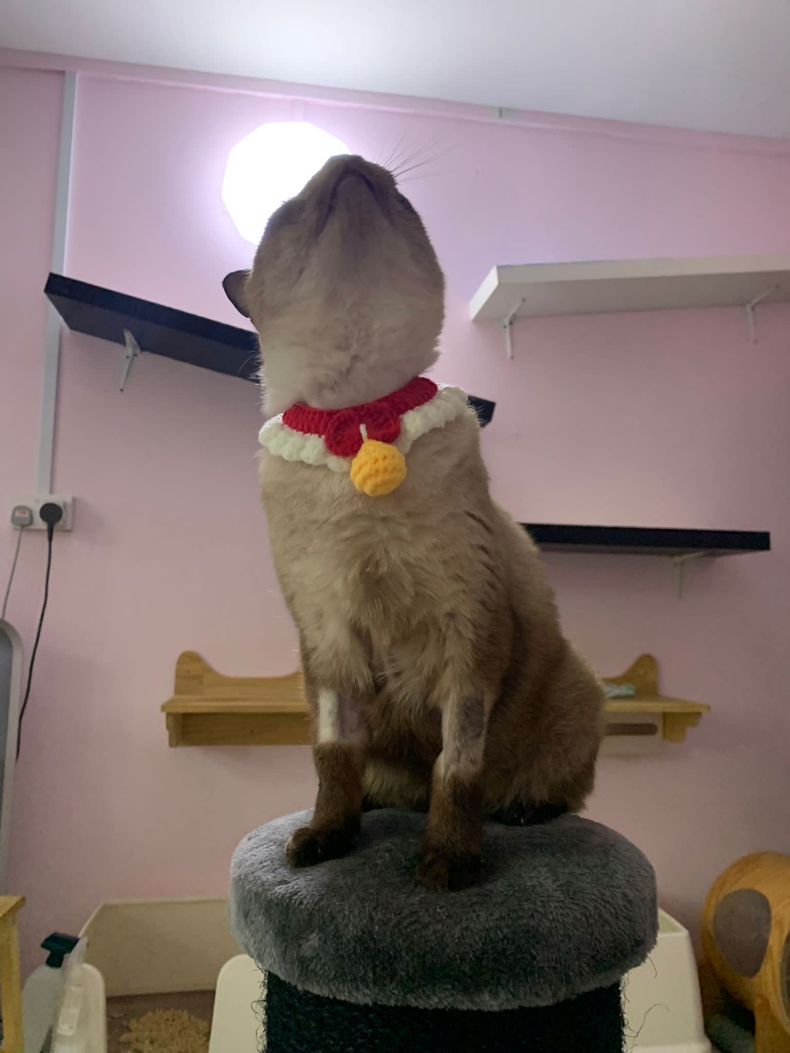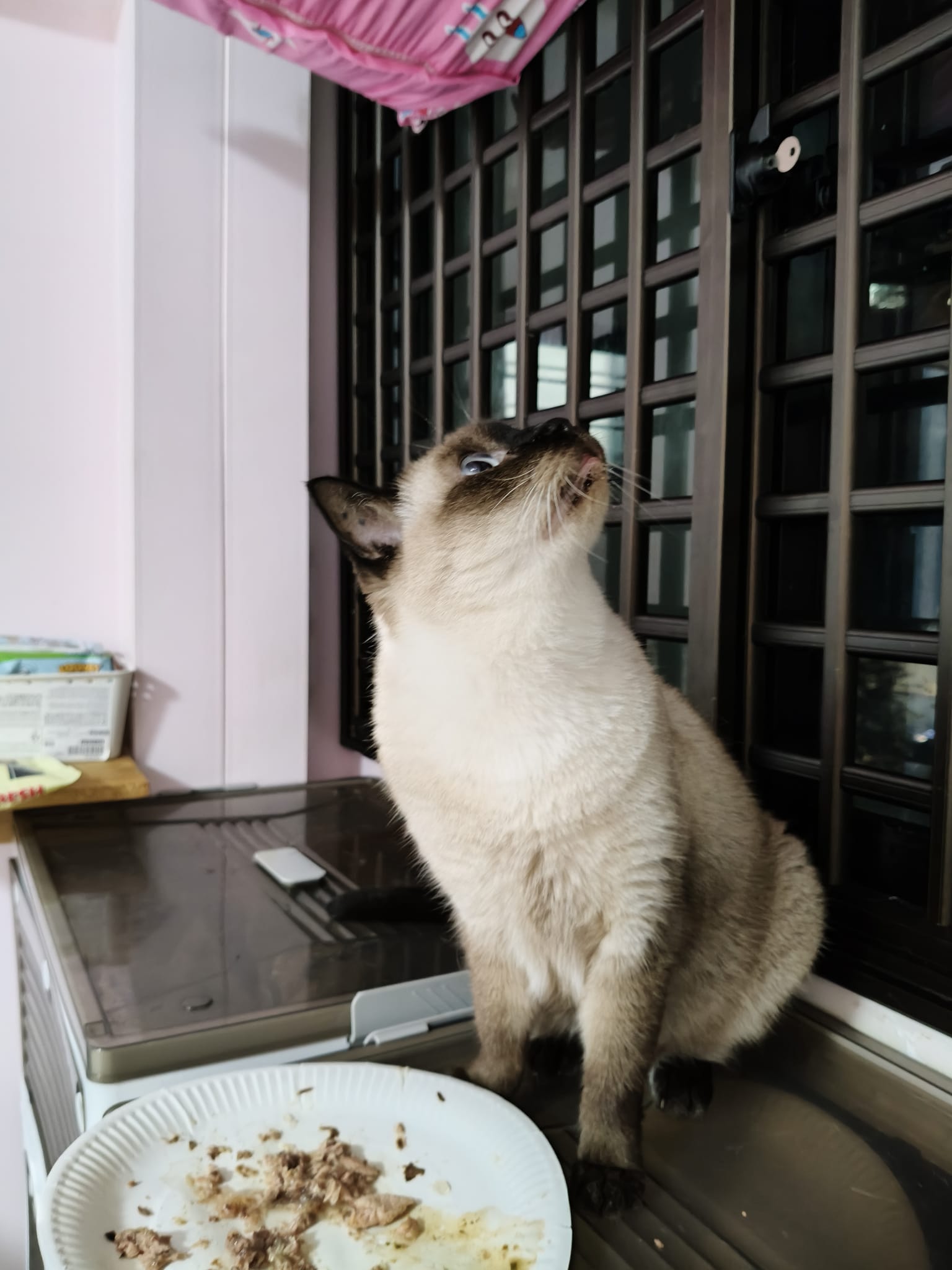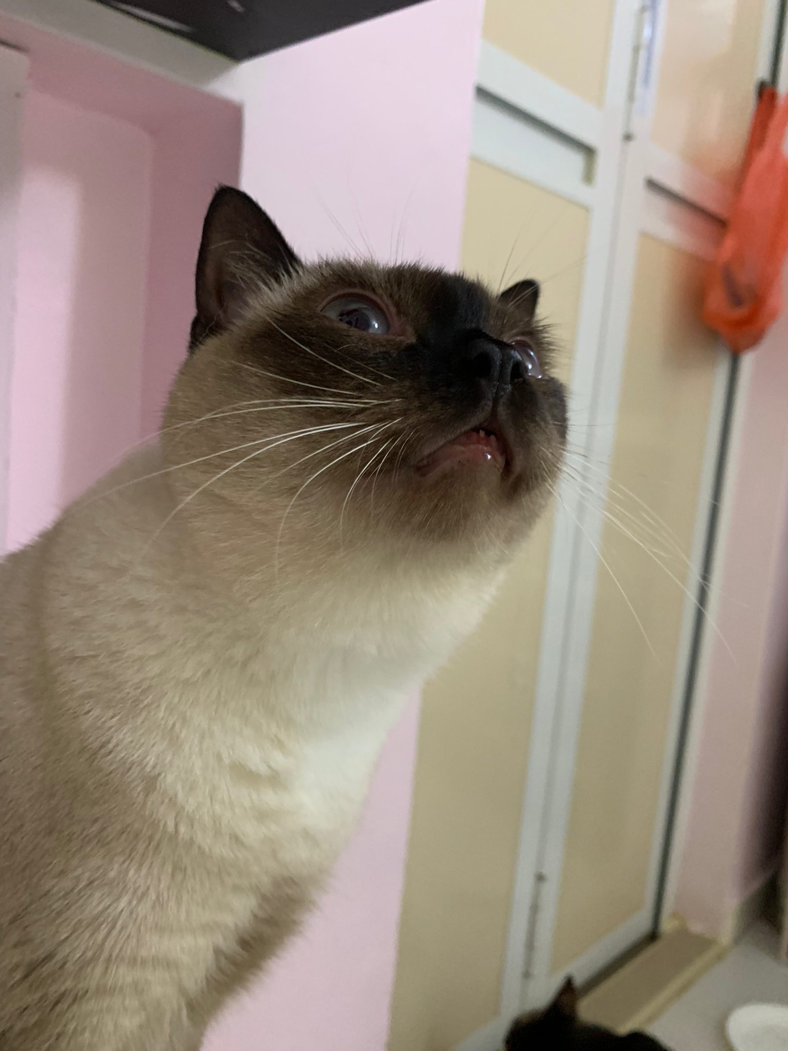 • it’s raining n I wanna serve her some supper she almost scream loudly – quite scary, earlier on is like meow without sound, now can be quite loud.